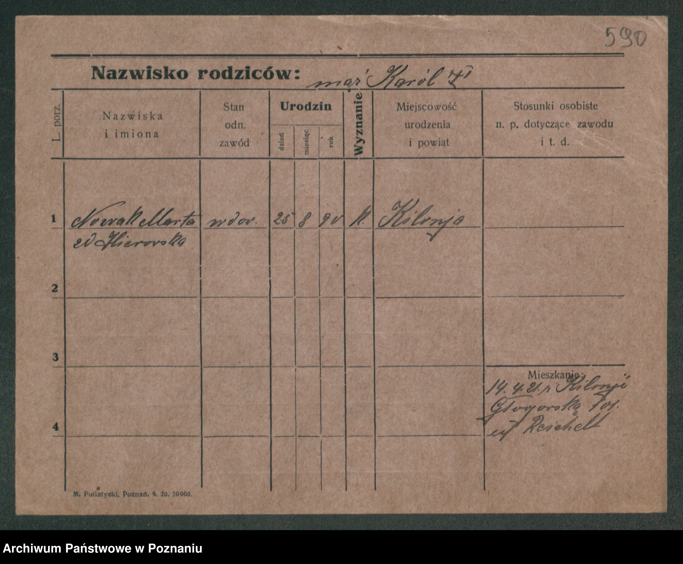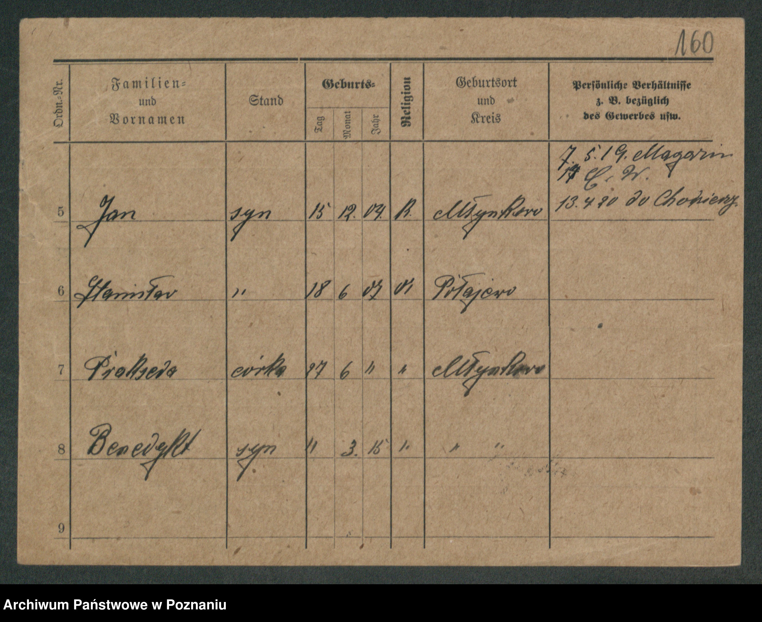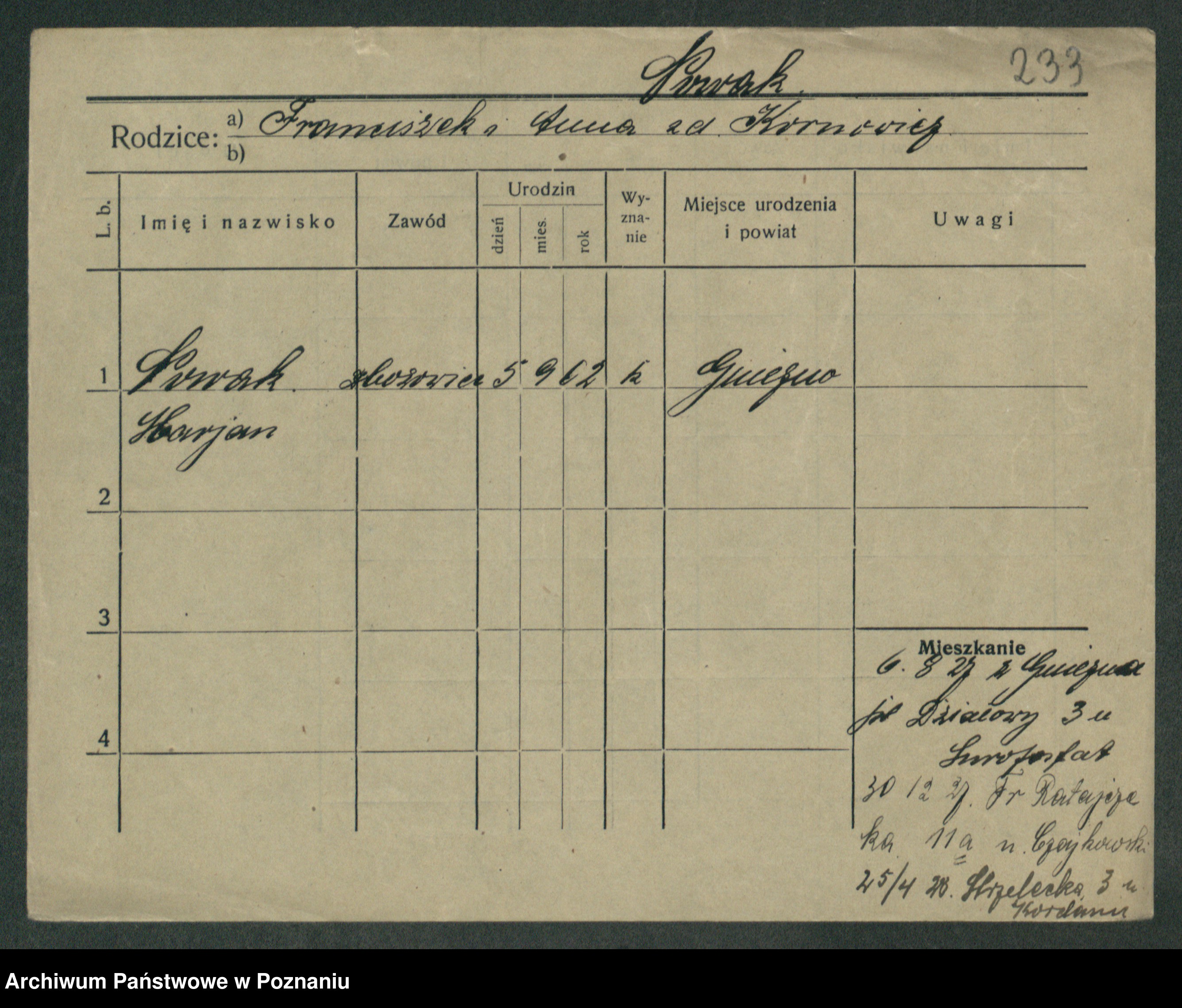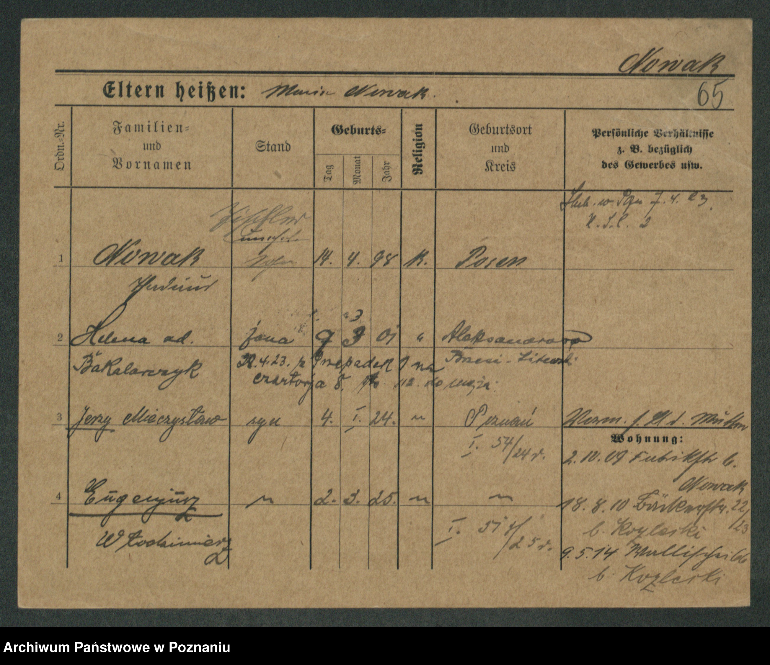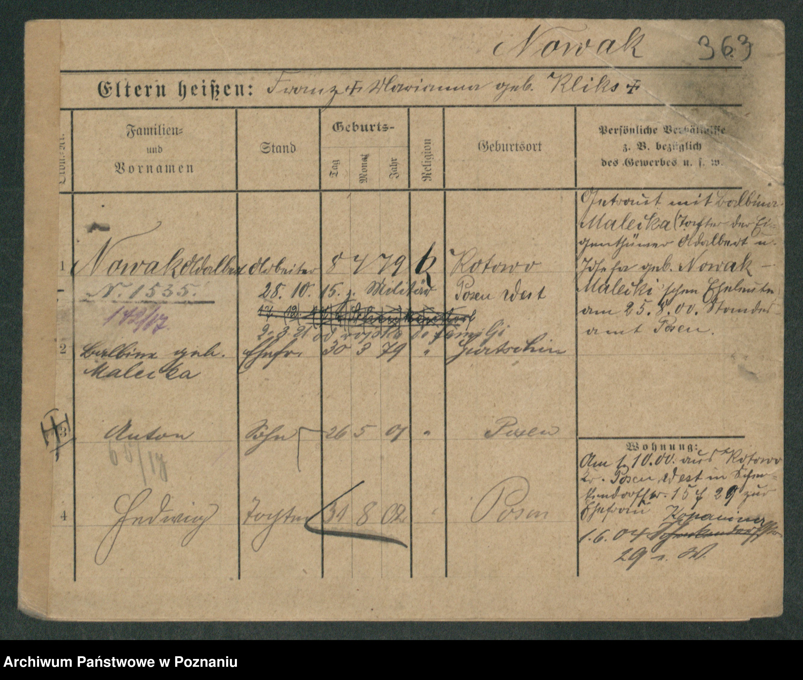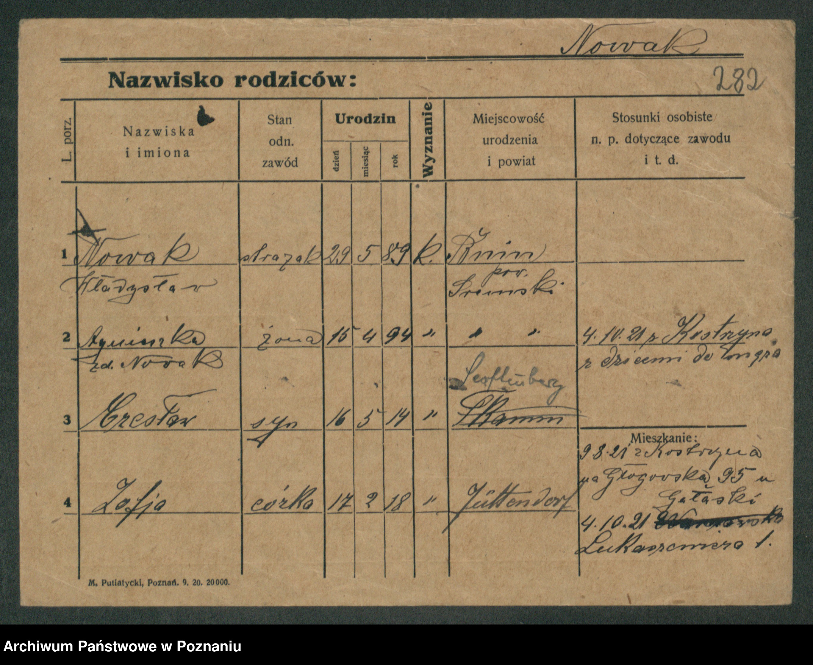 Podgląd karty osobowej dostępny jest po kliknięciu na nazwisko lub ikonkę karty. Można dokonywać powiększenia (ikony na górze) lub przechodzić między kolejnymi skanami (strzałki po bokach).