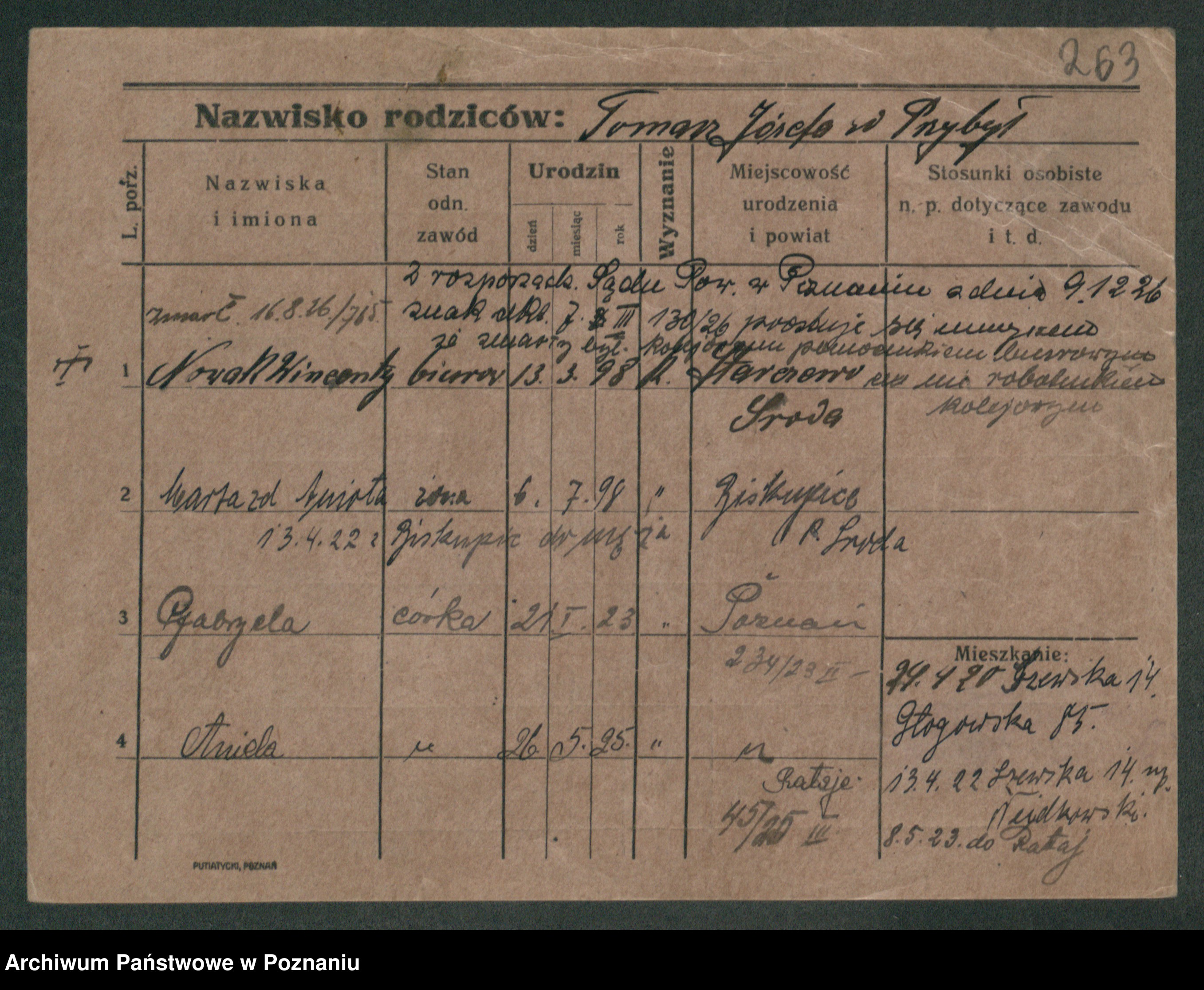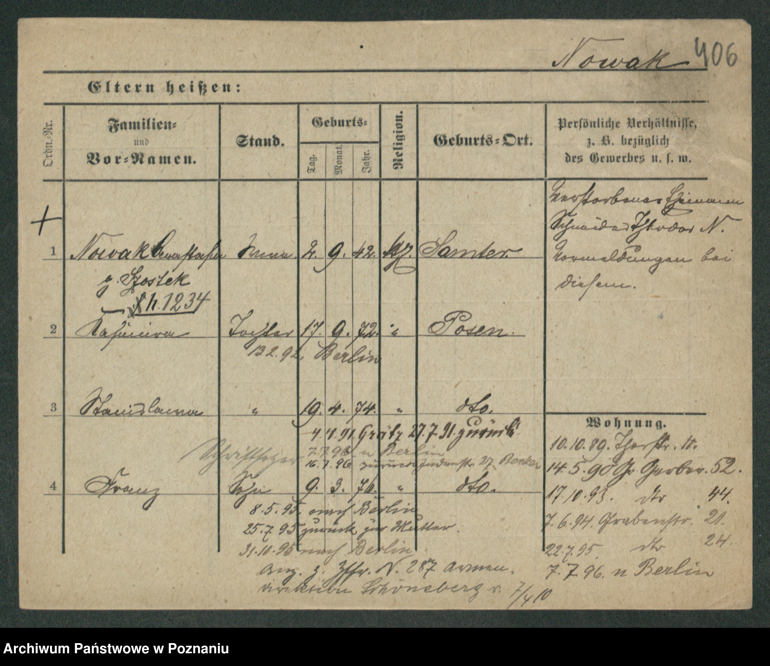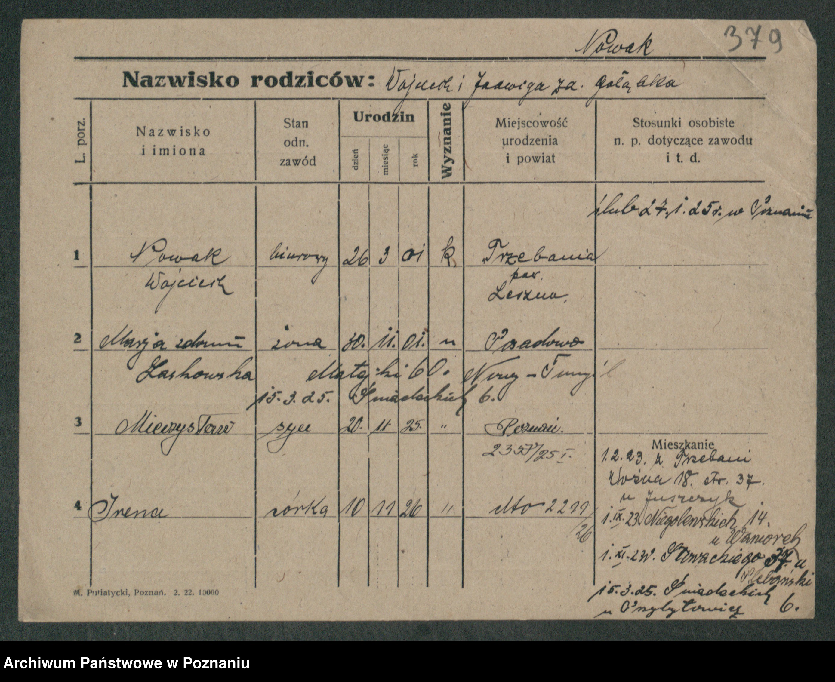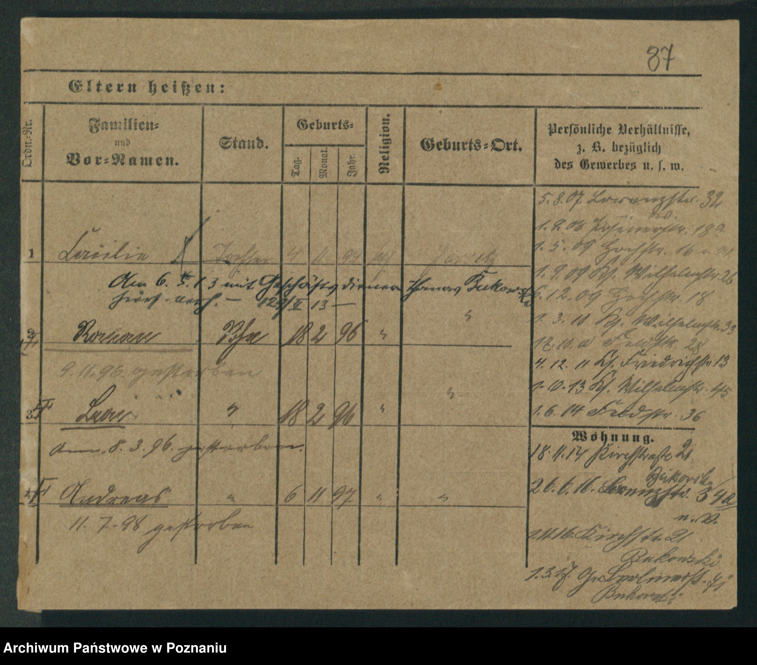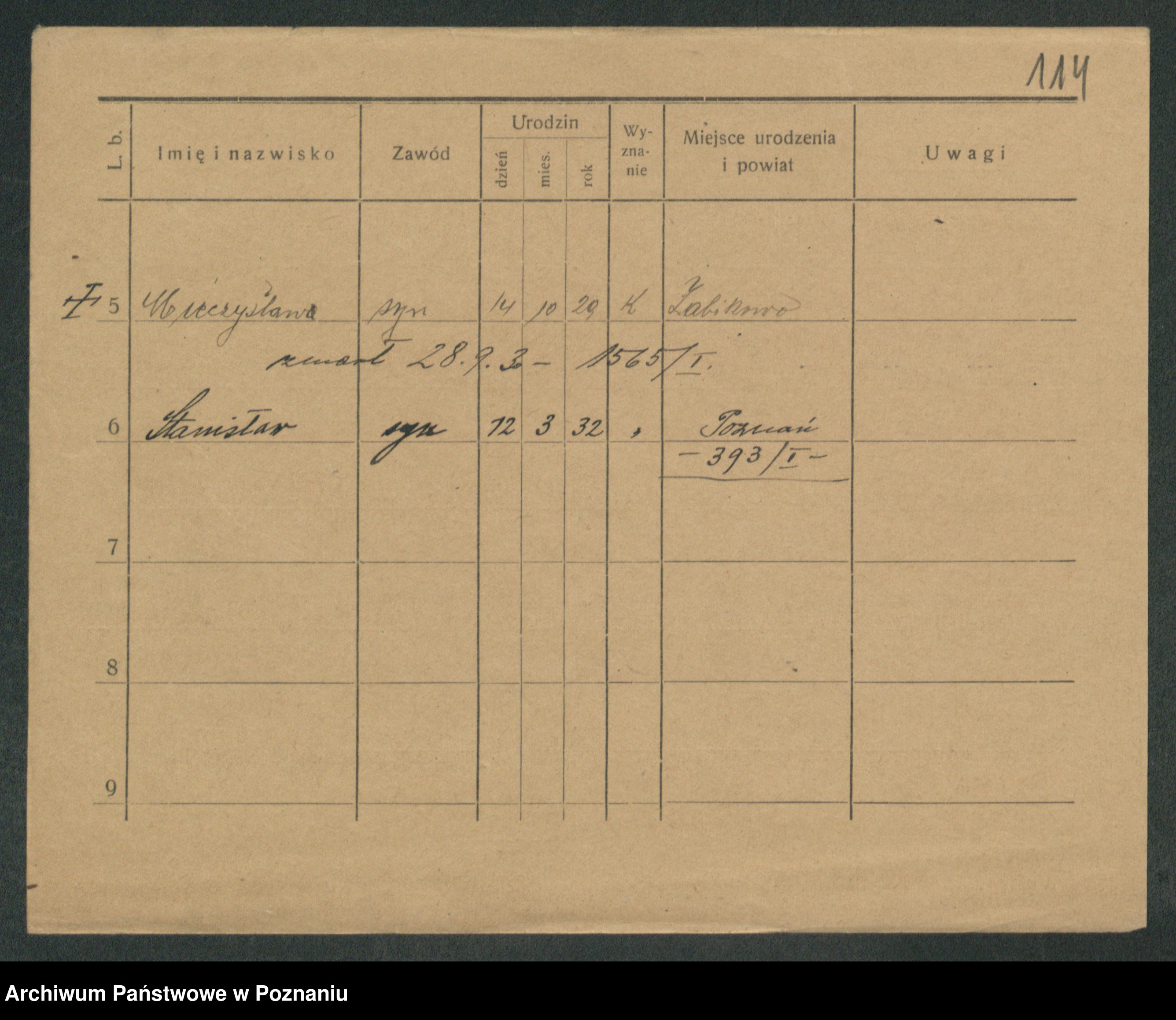 Podgląd karty osobowej dostępny jest po kliknięciu na nazwisko lub ikonkę karty. Można dokonywać powiększenia (ikony na górze) lub przechodzić między kolejnymi skanami (strzałki po bokach).