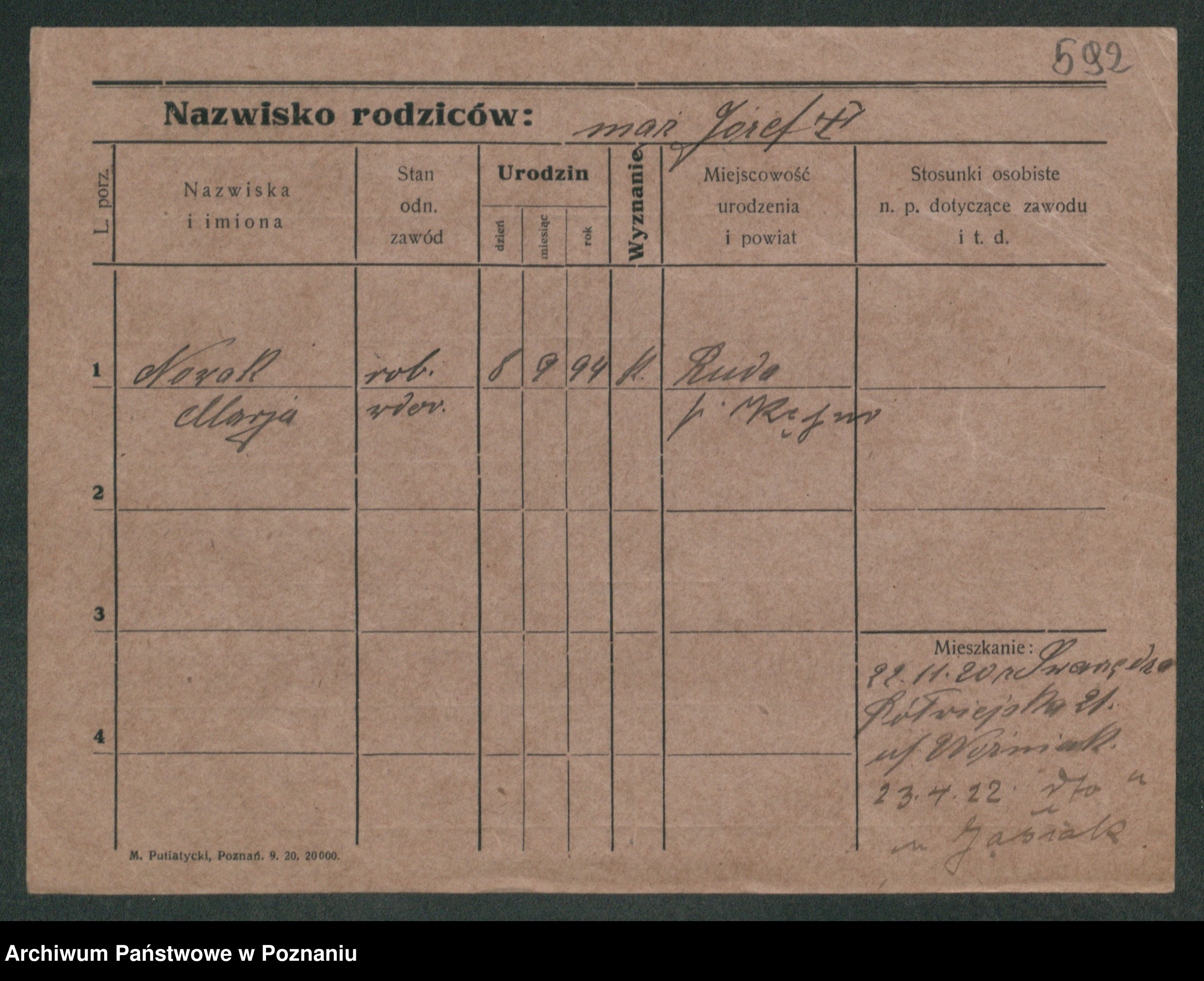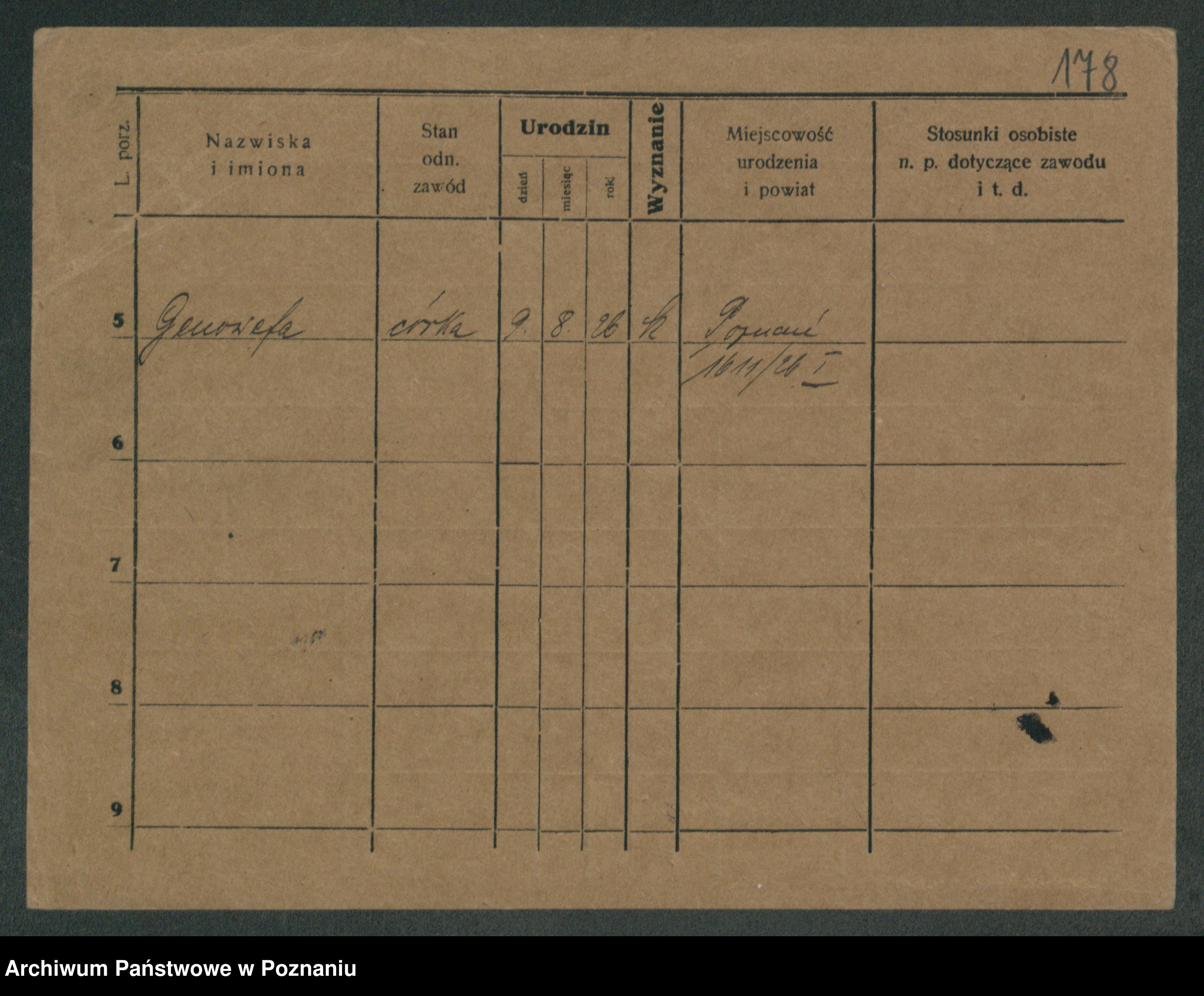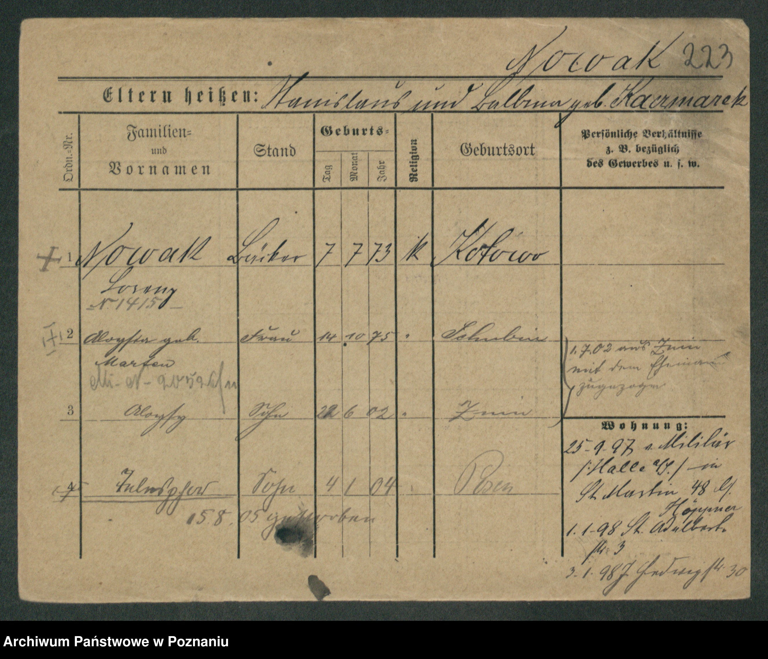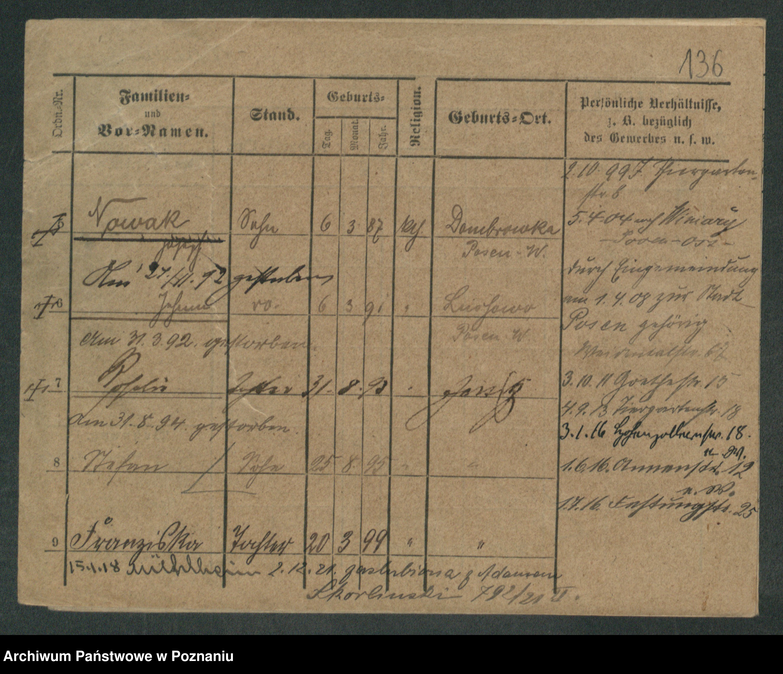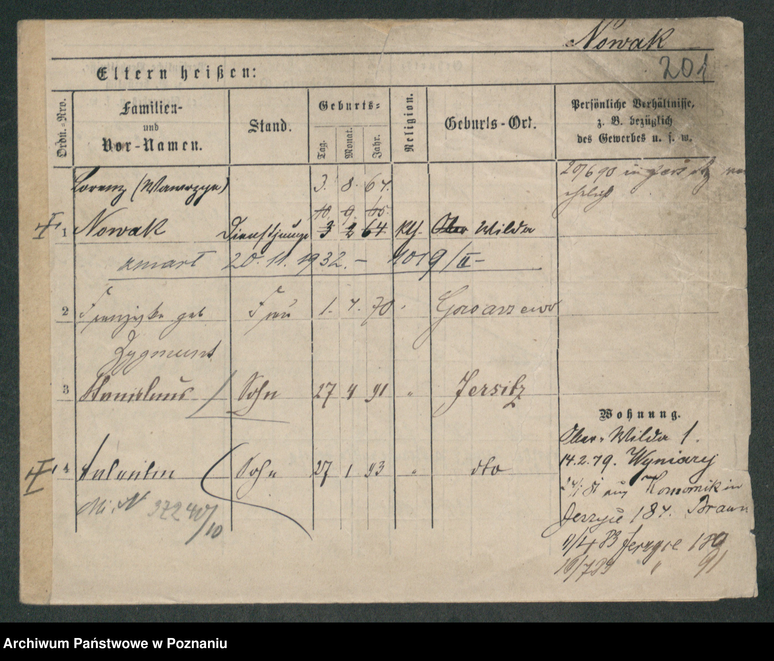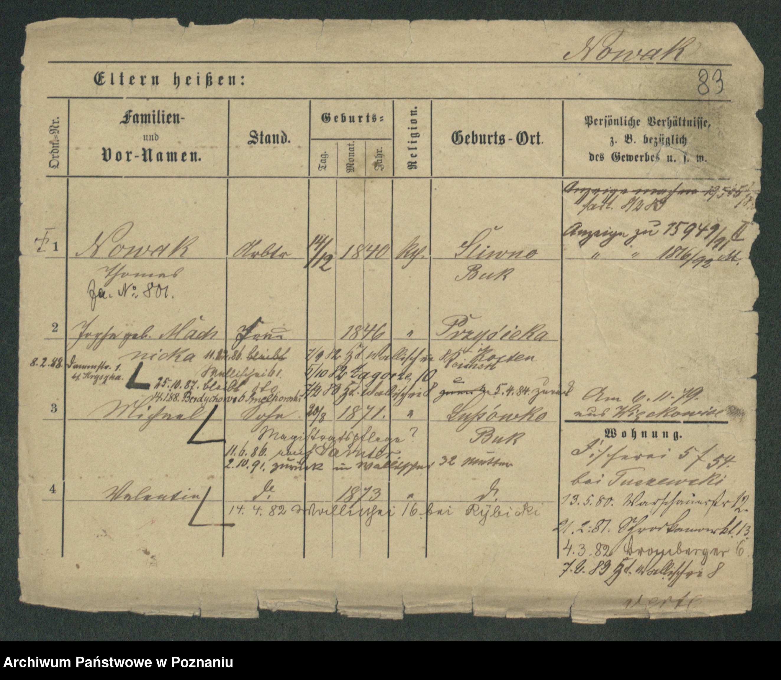 Podgląd karty osobowej dostępny jest po kliknięciu na nazwisko lub ikonkę karty. Można dokonywać powiększenia (ikony na górze) lub przechodzić między kolejnymi skanami (strzałki po bokach).