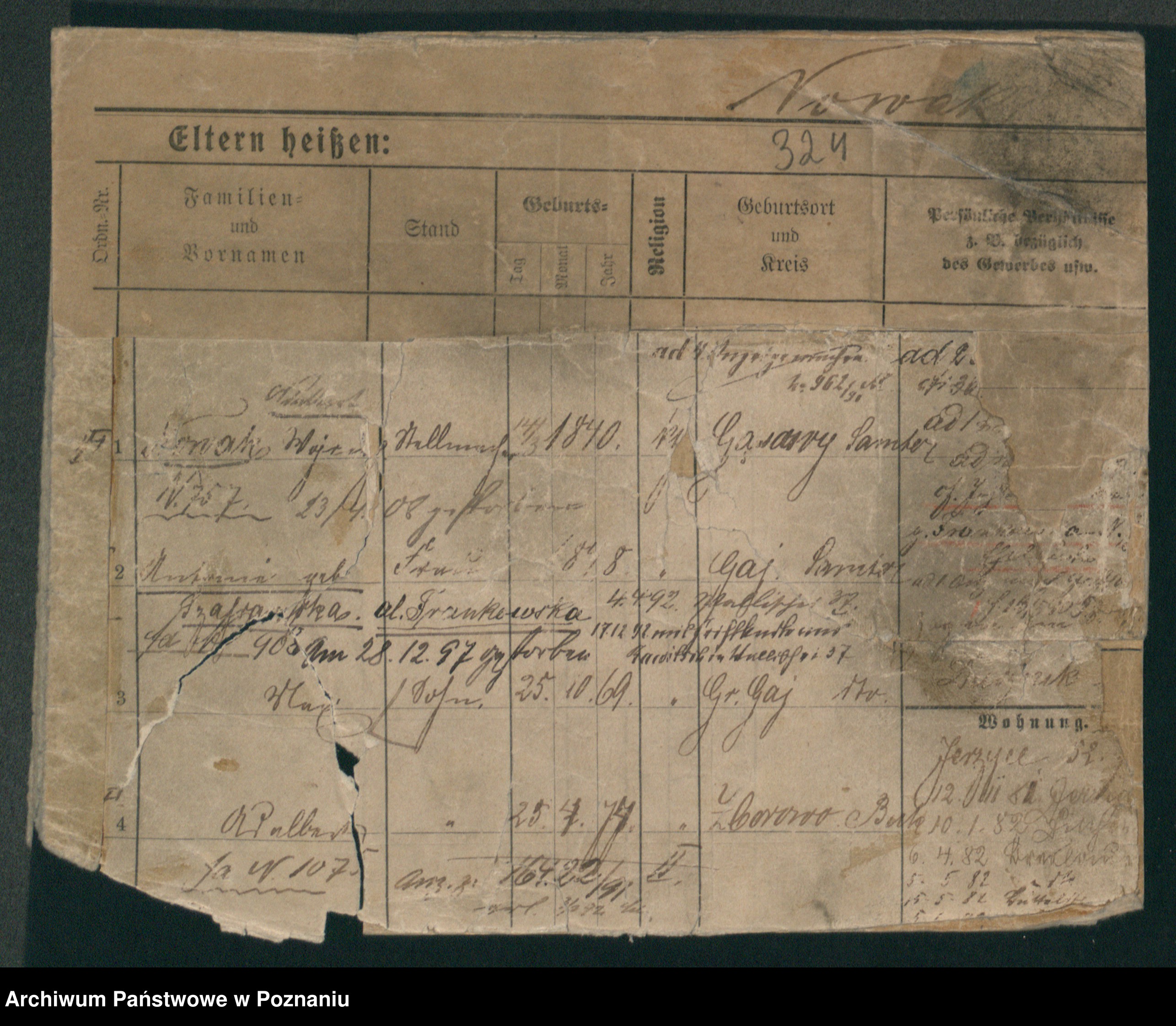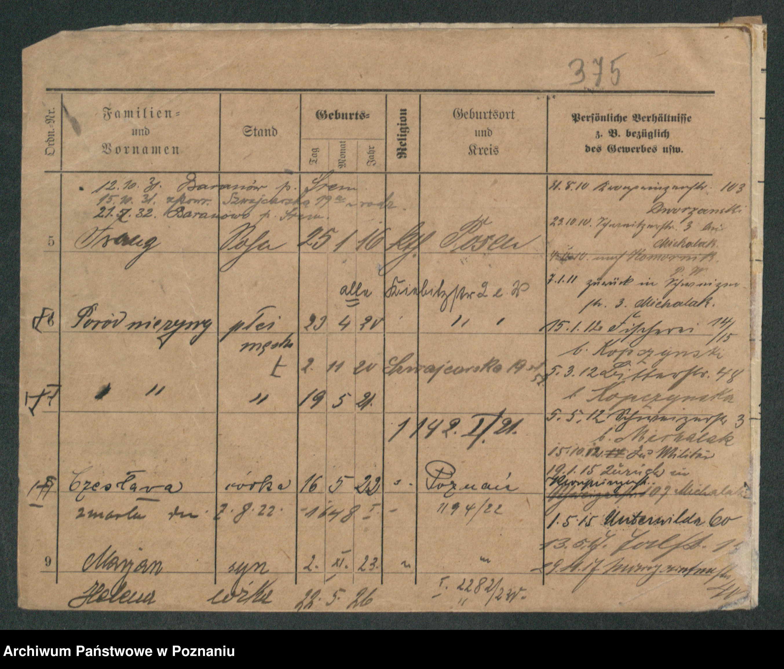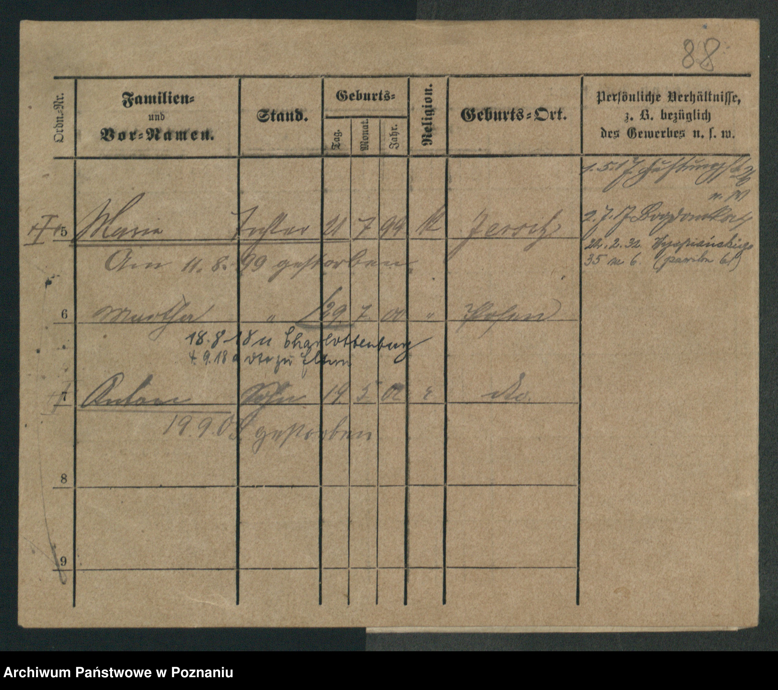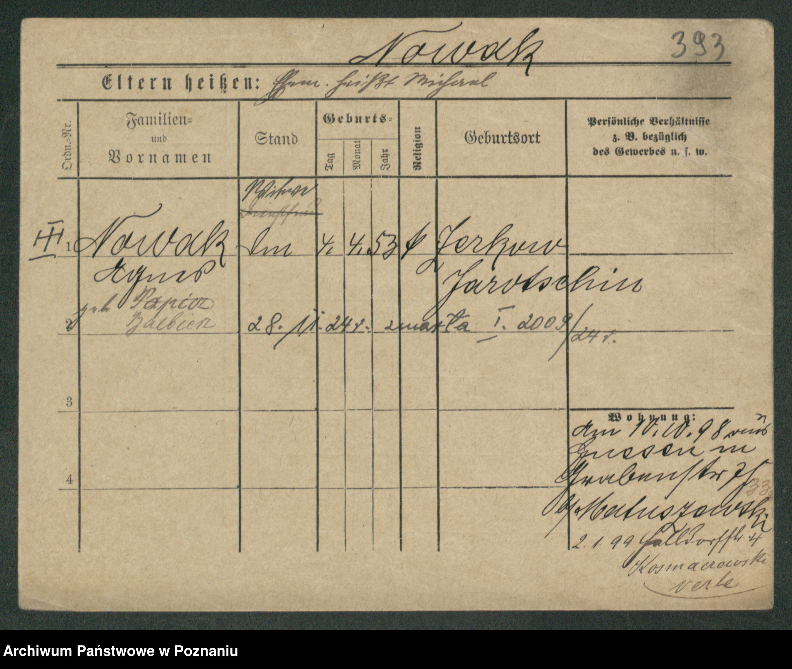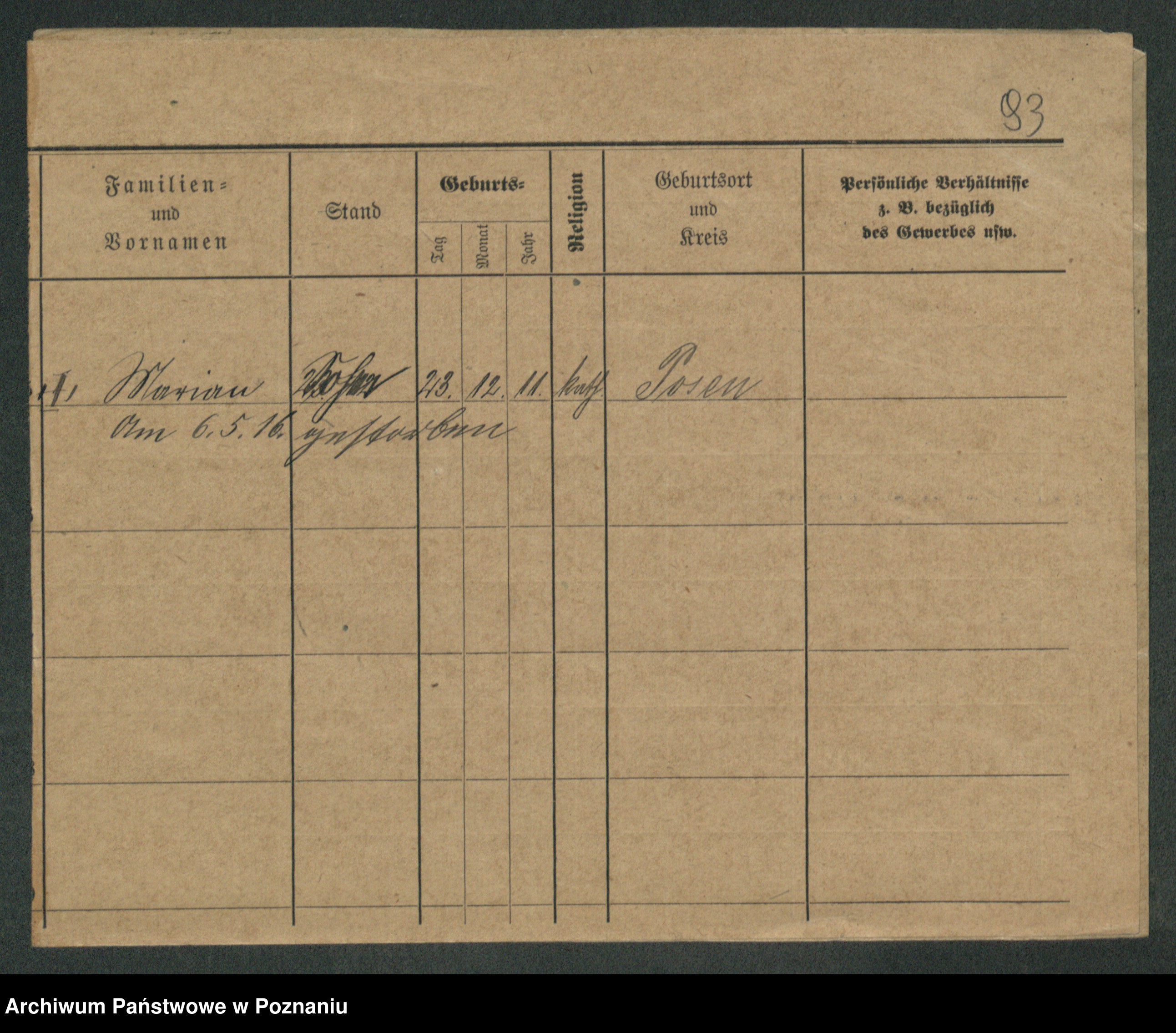 Podgląd karty osobowej dostępny jest po kliknięciu na nazwisko lub ikonkę karty. Można dokonywać powiększenia (ikony na górze) lub przechodzić między kolejnymi skanami (strzałki po bokach).