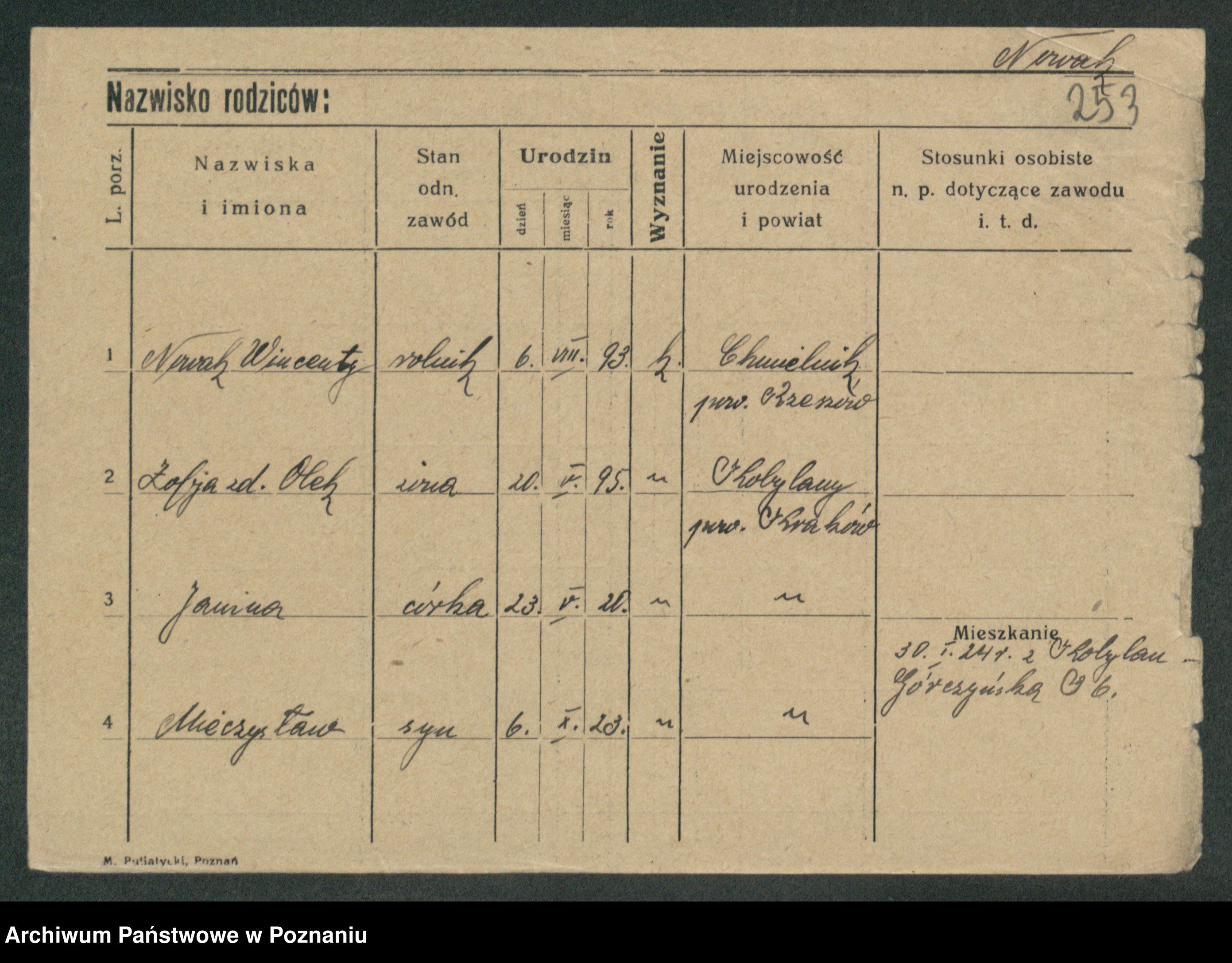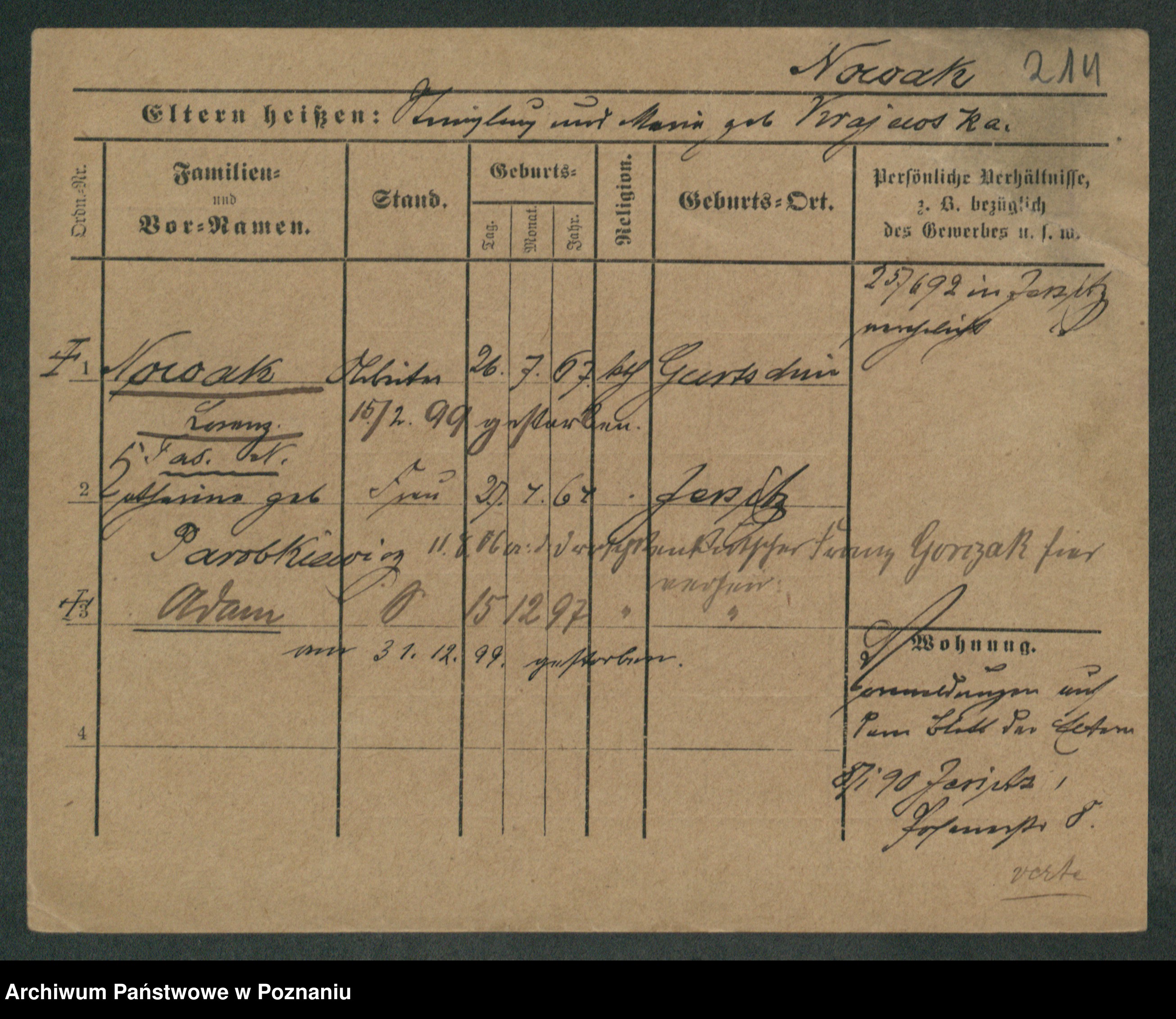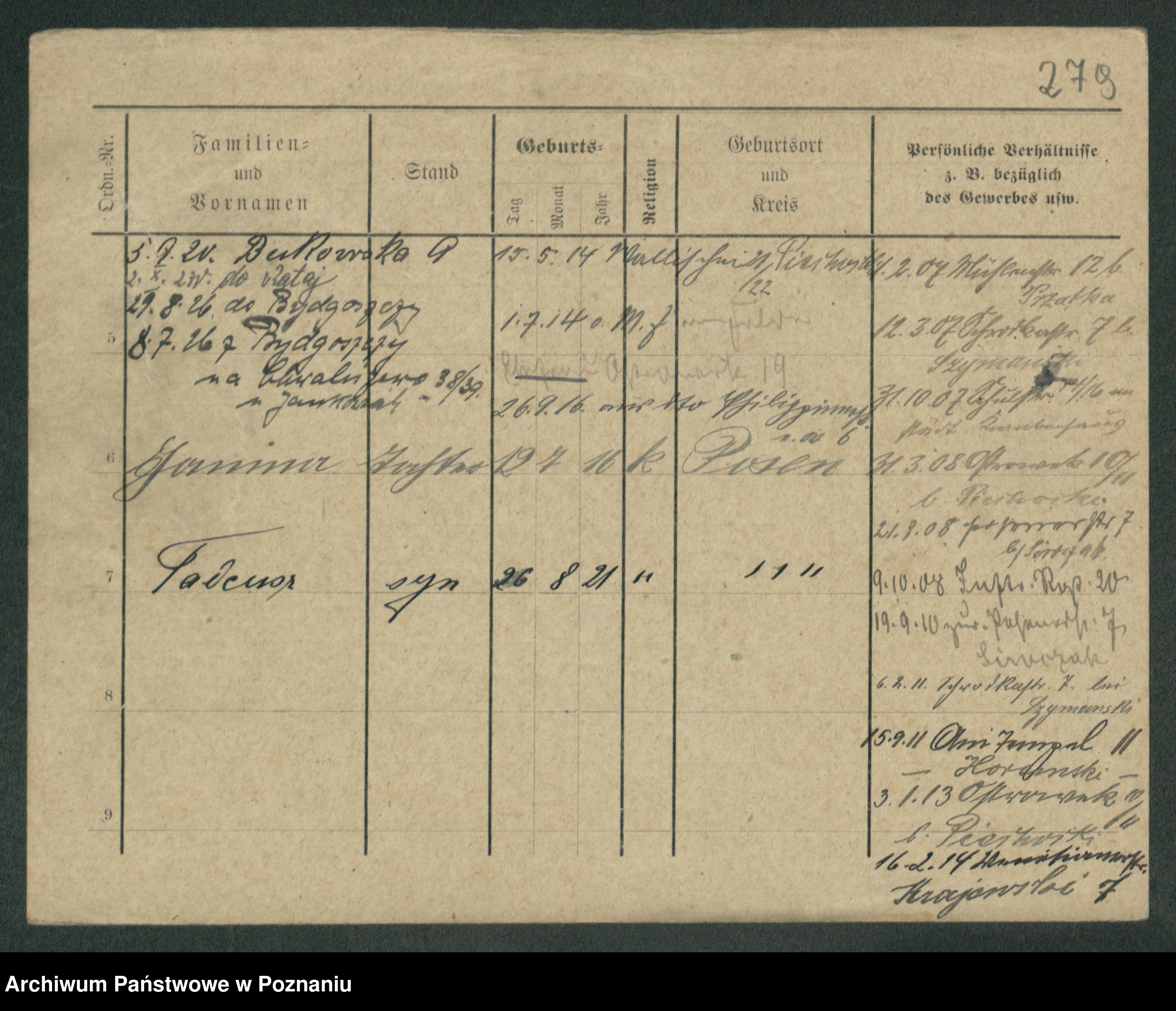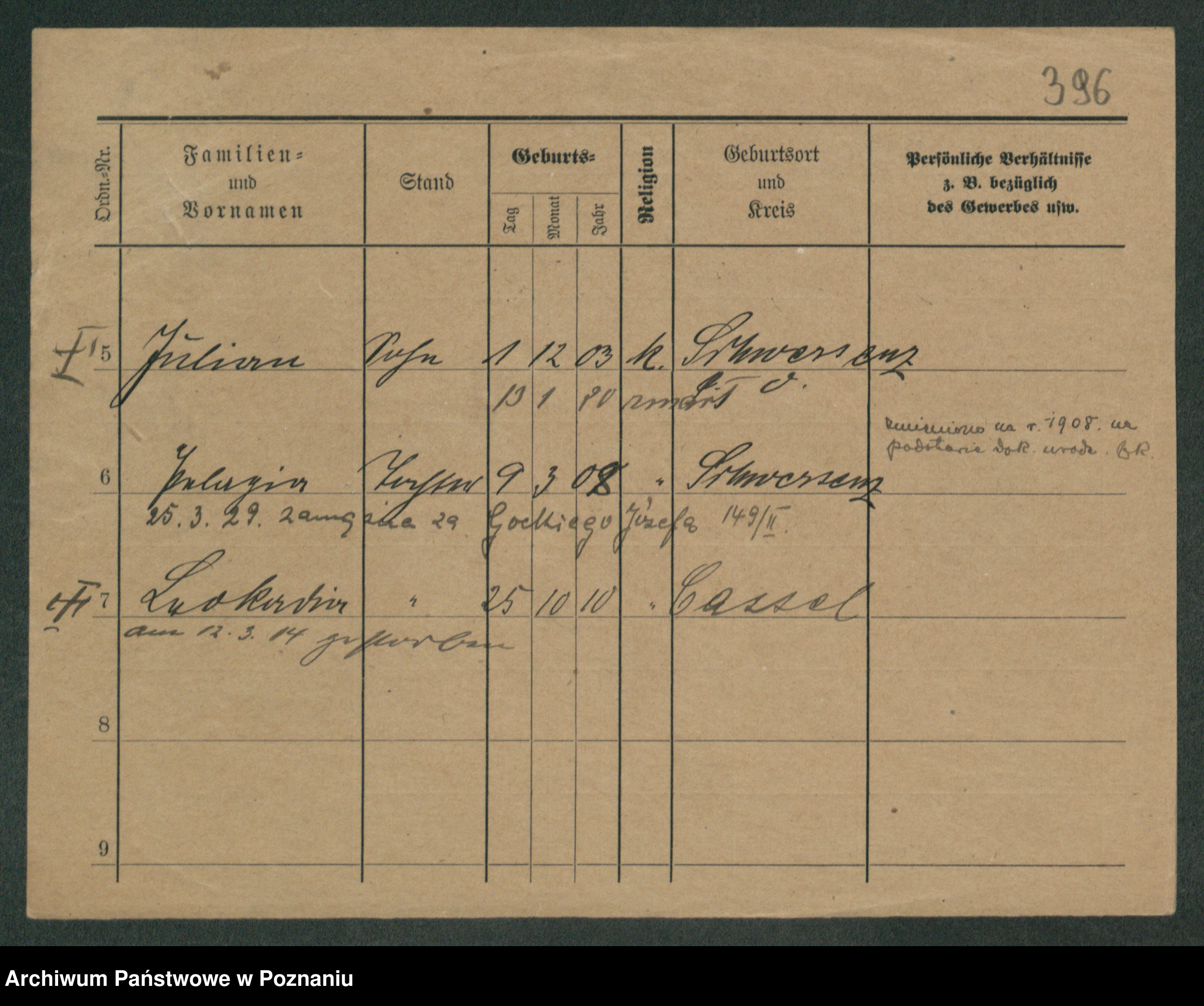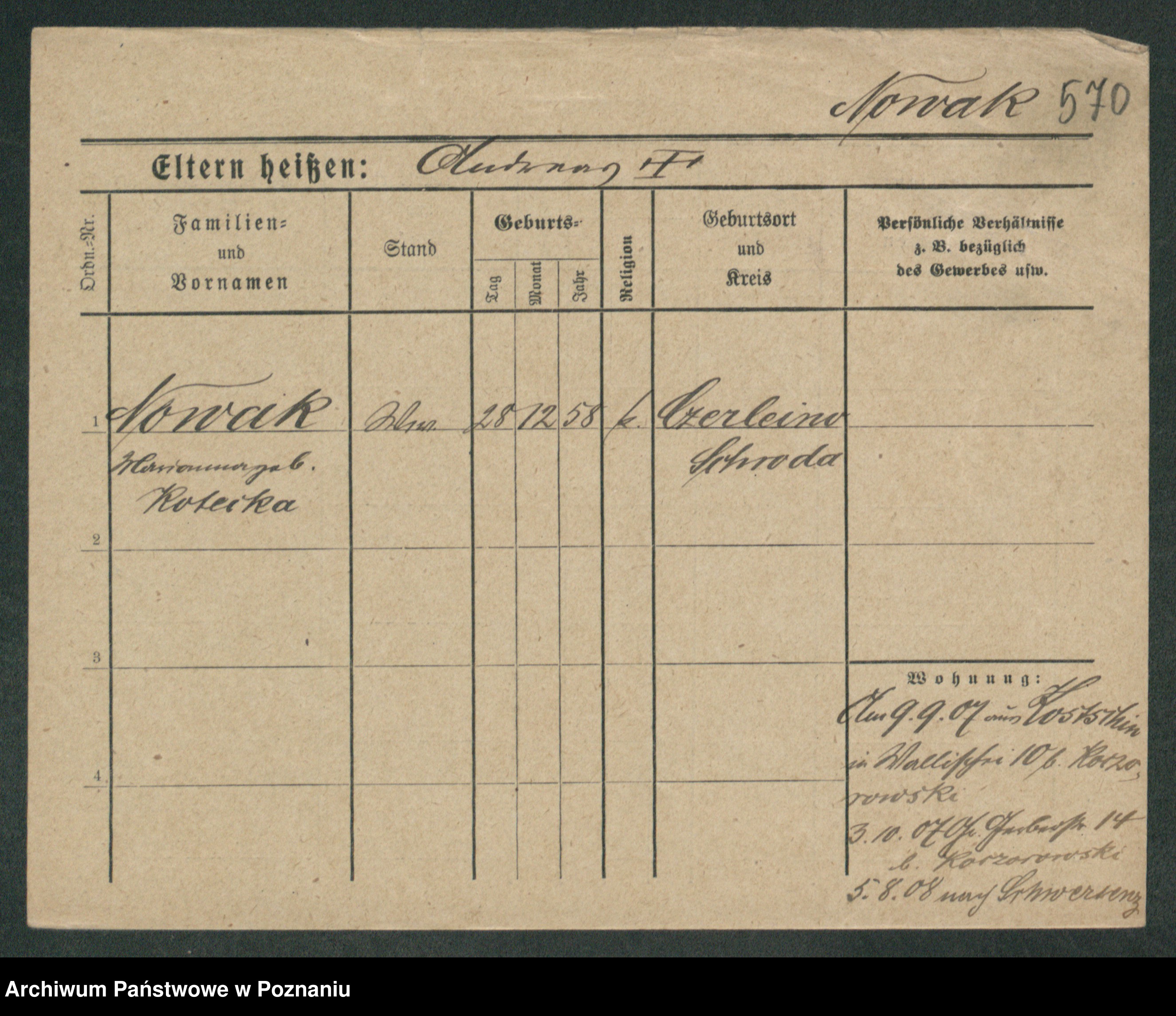 Podgląd karty osobowej dostępny jest po kliknięciu na nazwisko lub ikonkę karty. Można dokonywać powiększenia (ikony na górze) lub przechodzić między kolejnymi skanami (strzałki po bokach).