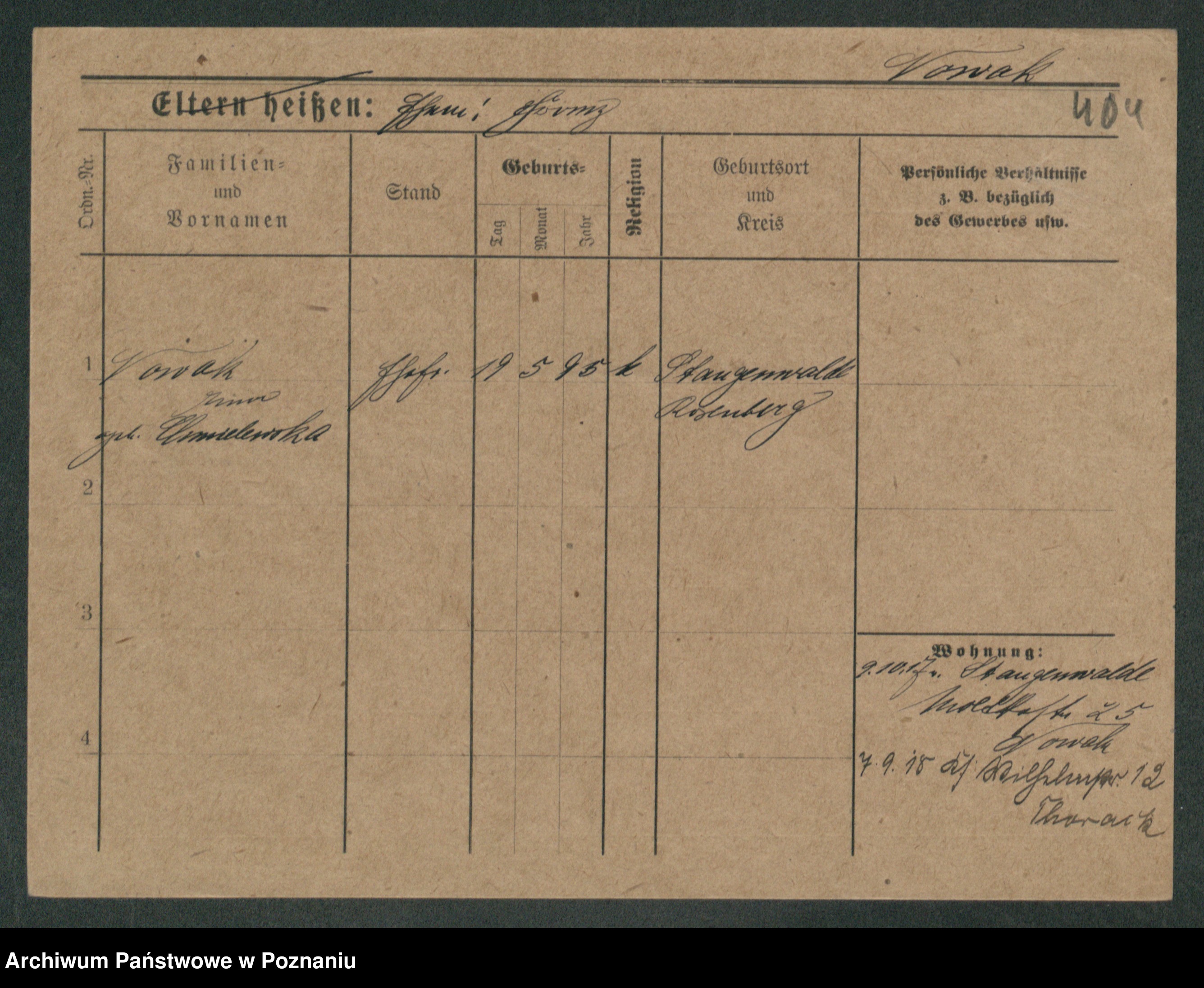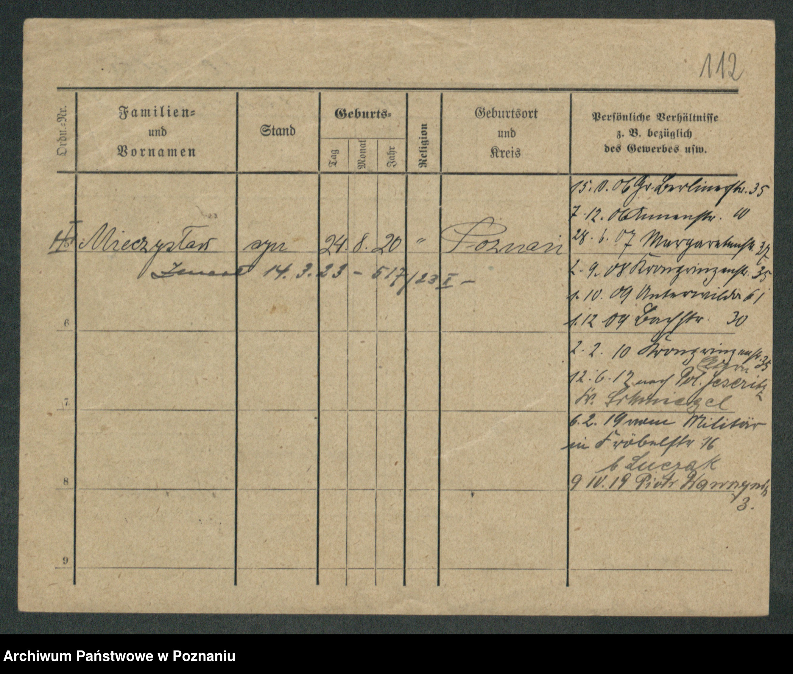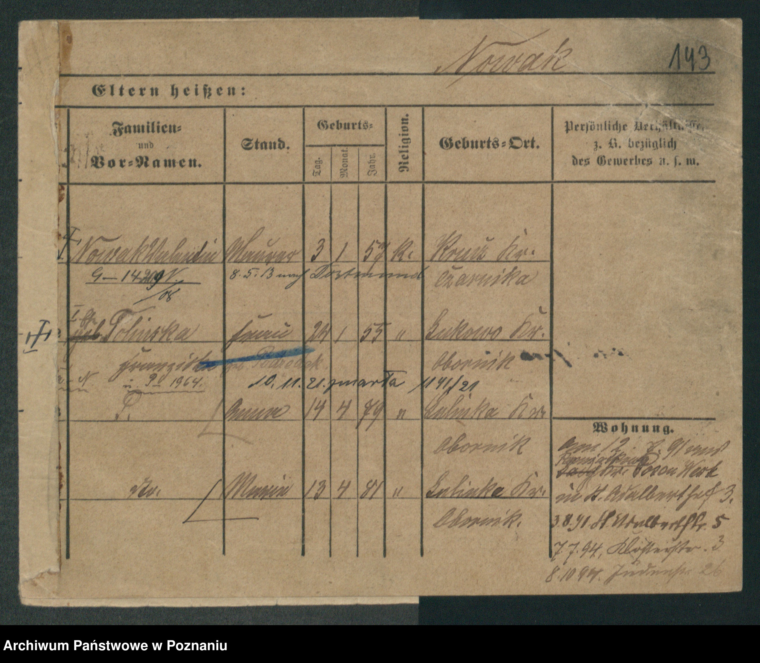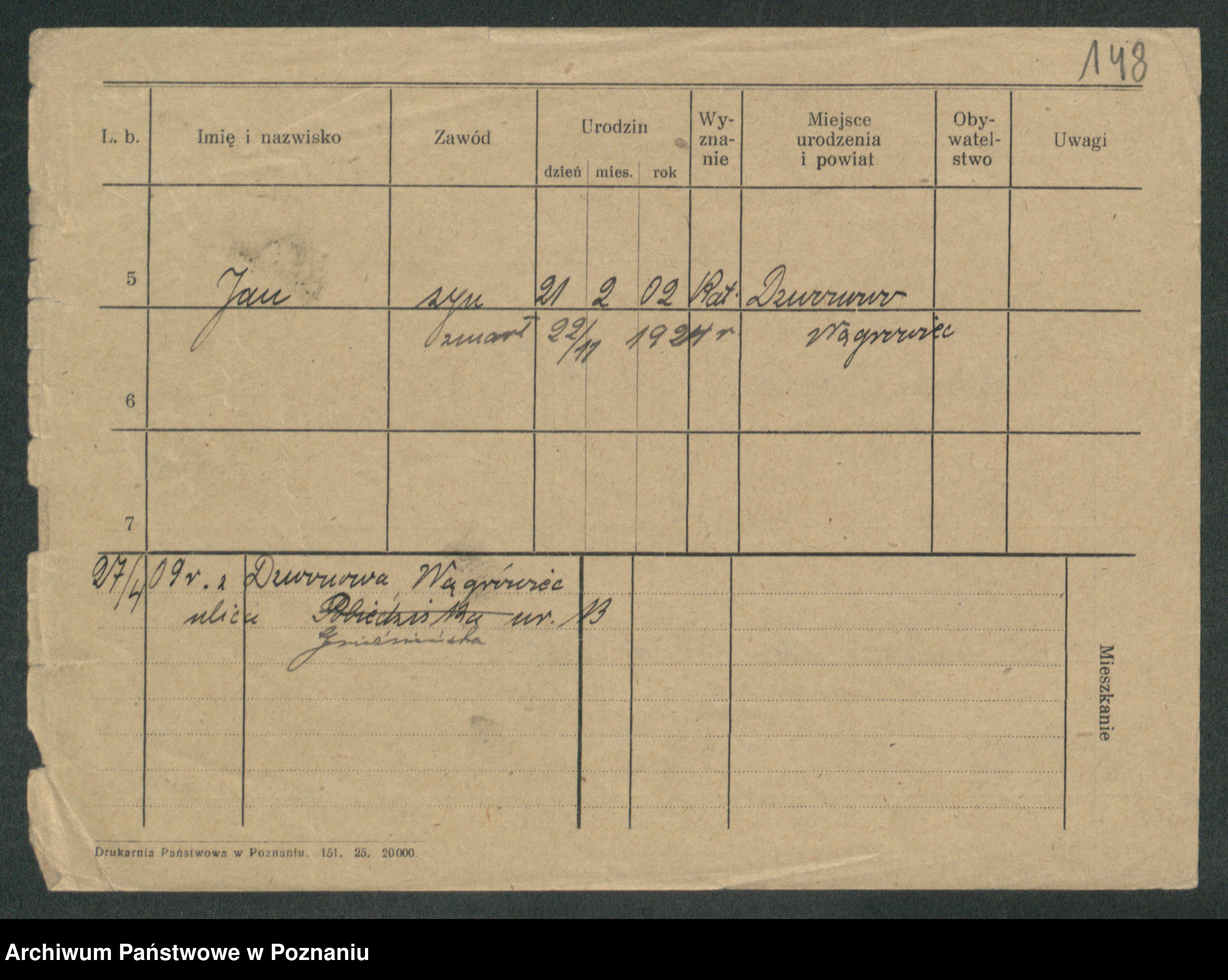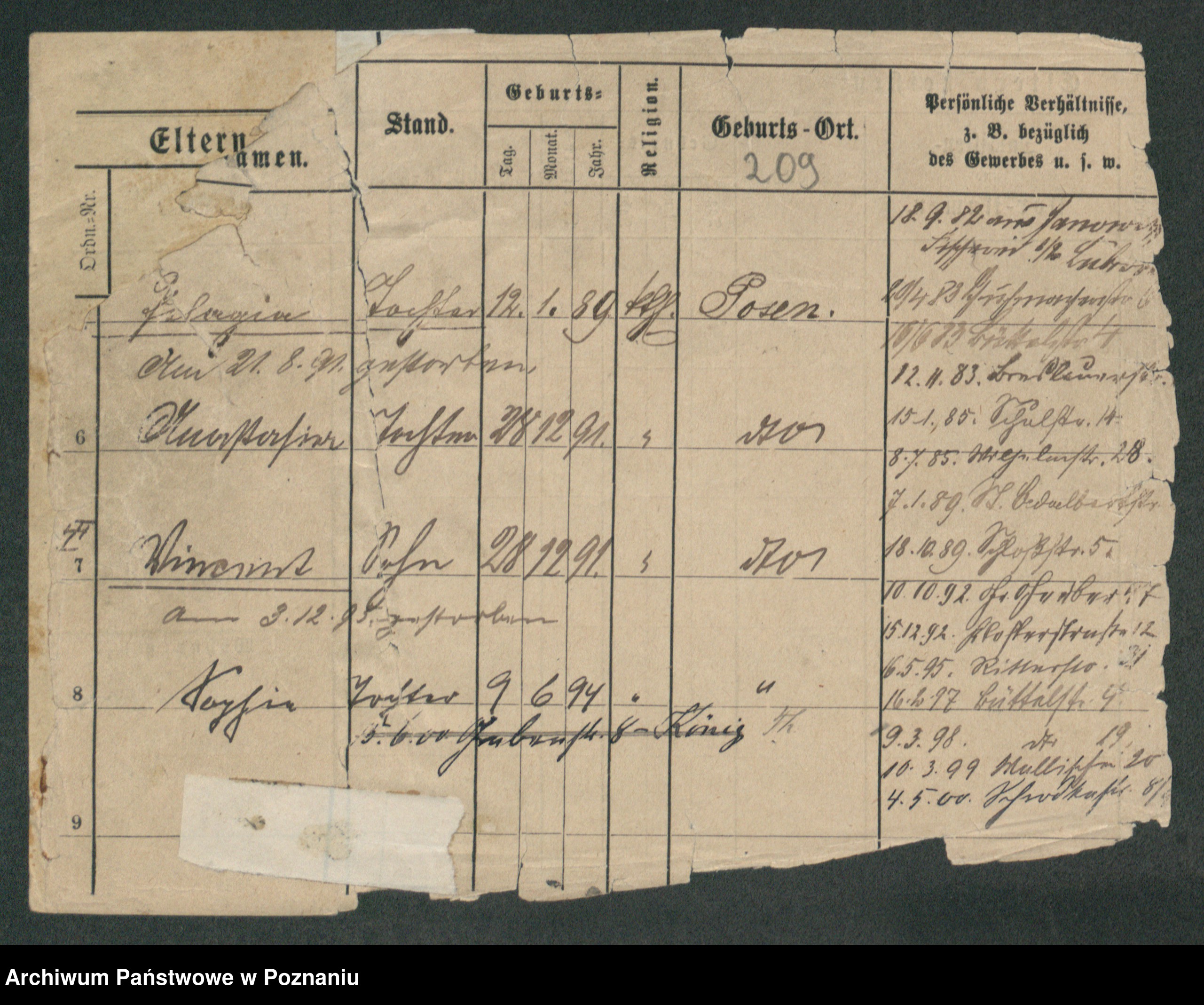 Podgląd karty osobowej dostępny jest po kliknięciu na nazwisko lub ikonkę karty. Można dokonywać powiększenia (ikony na górze) lub przechodzić między kolejnymi skanami (strzałki po bokach).