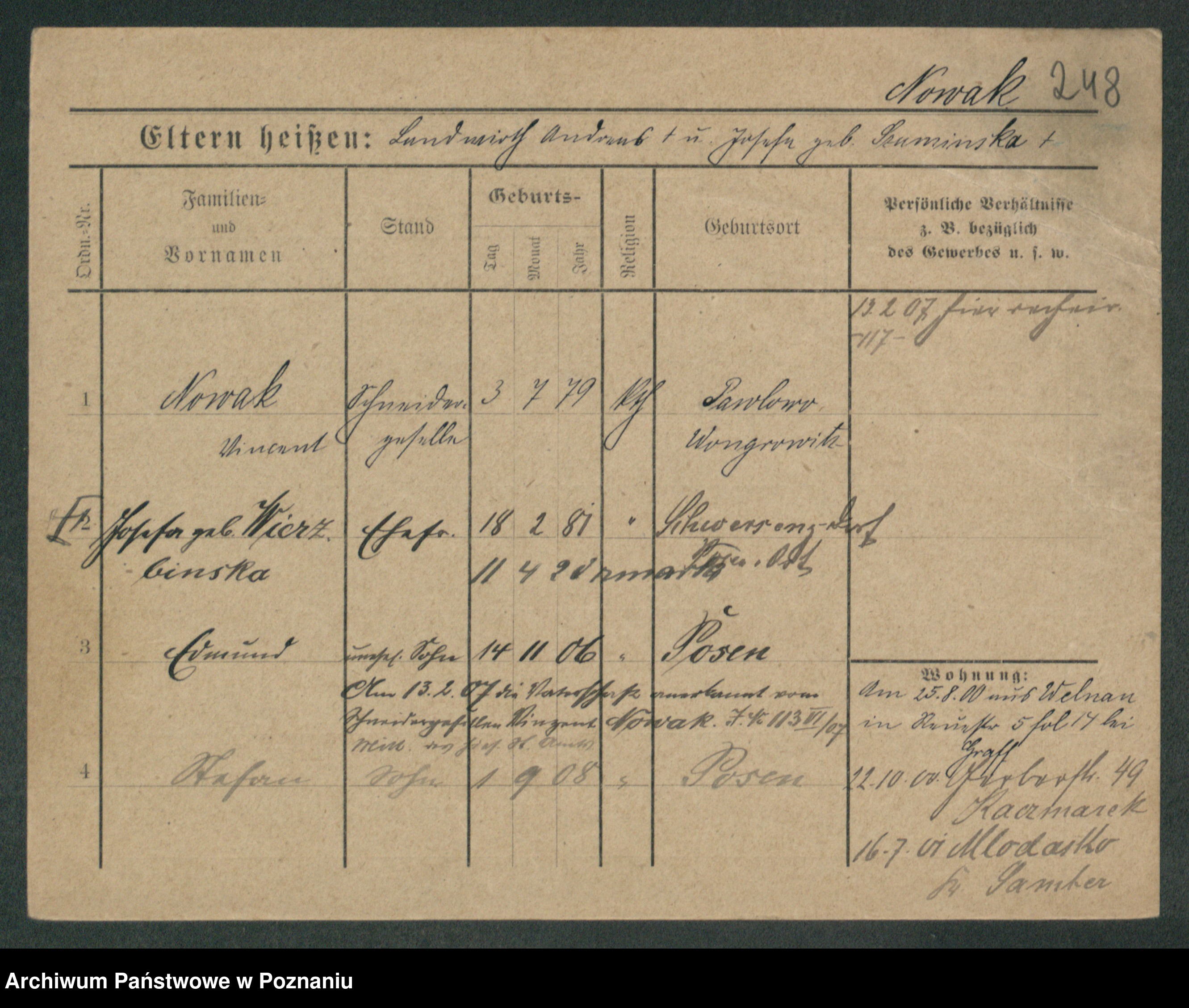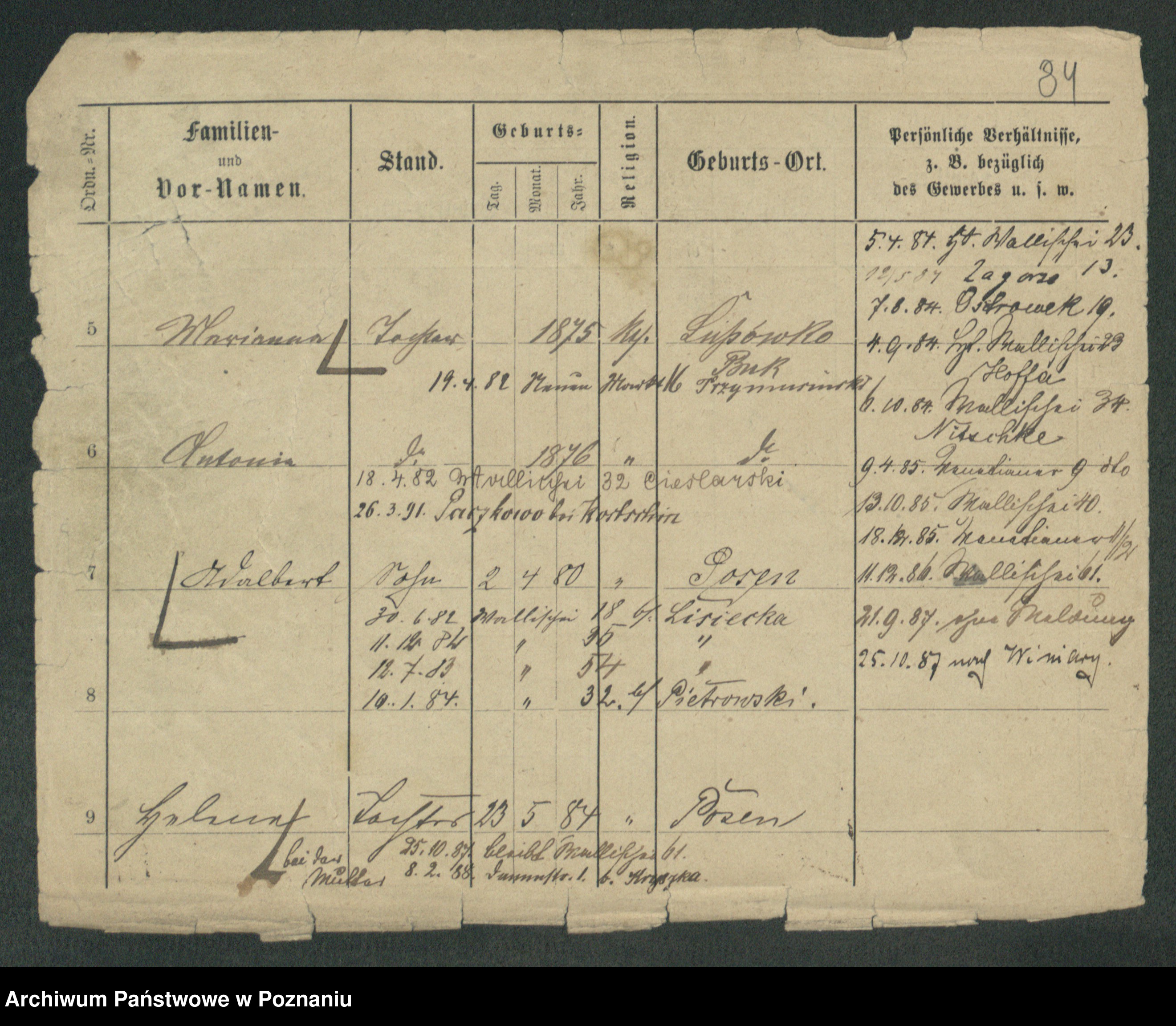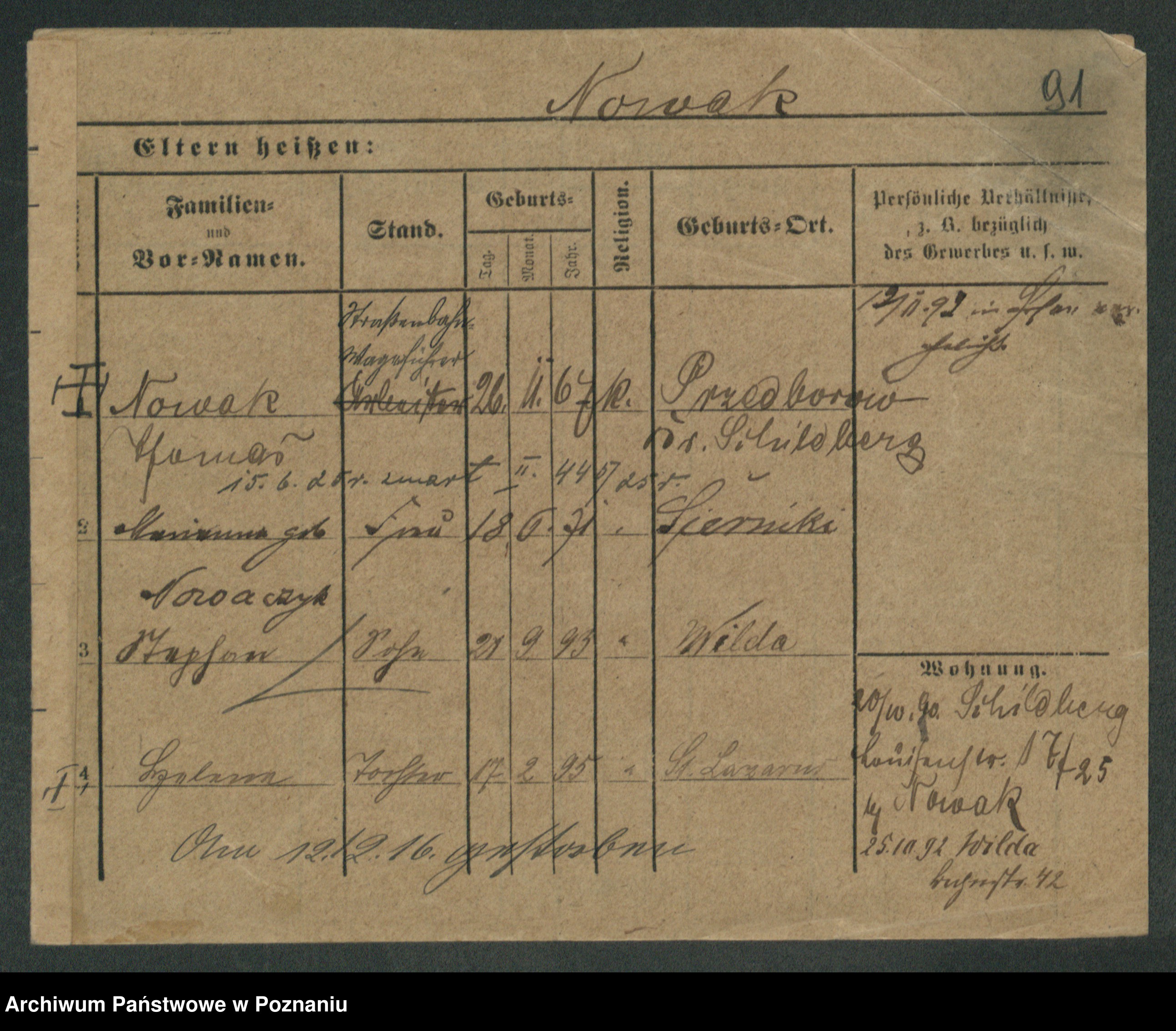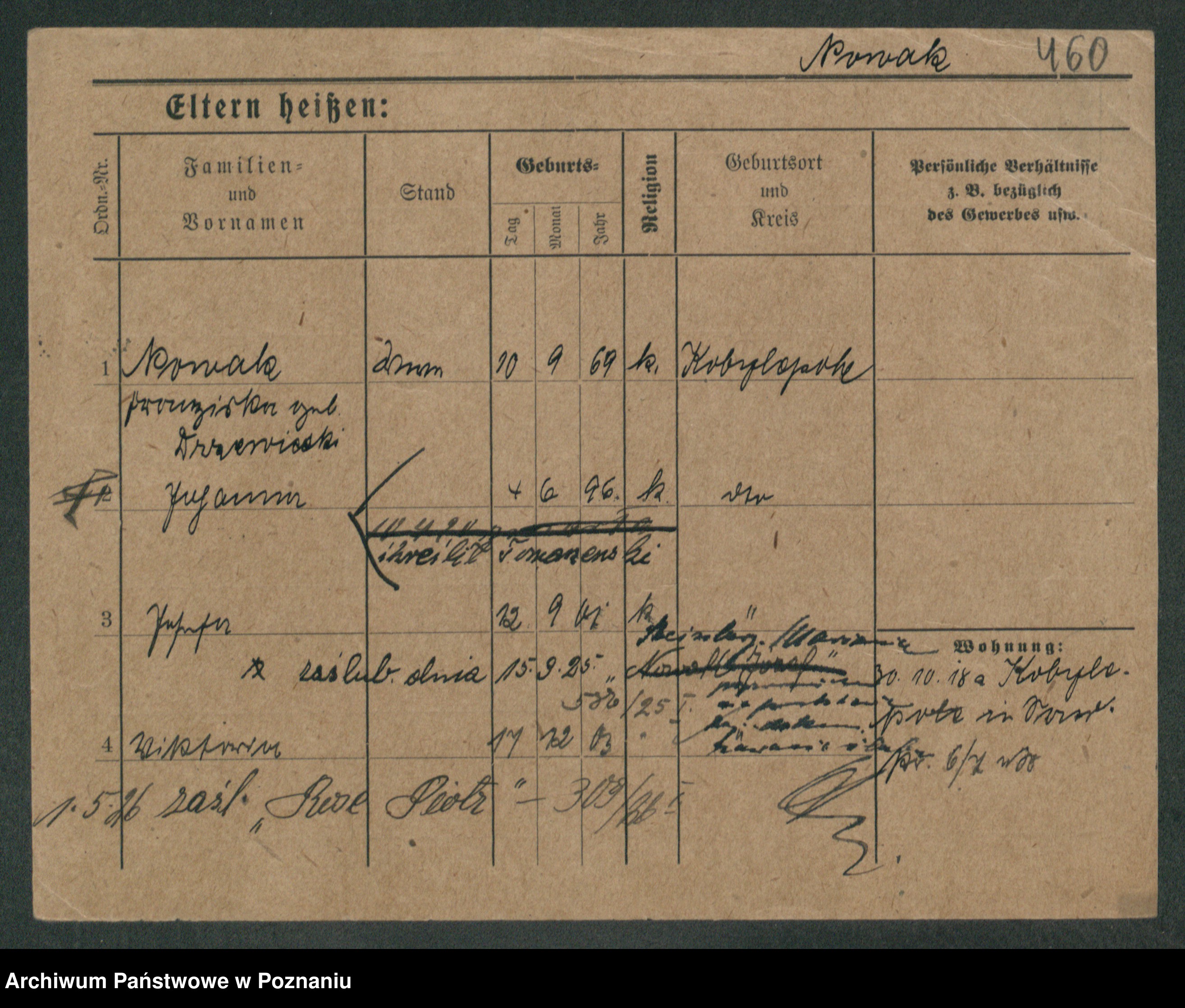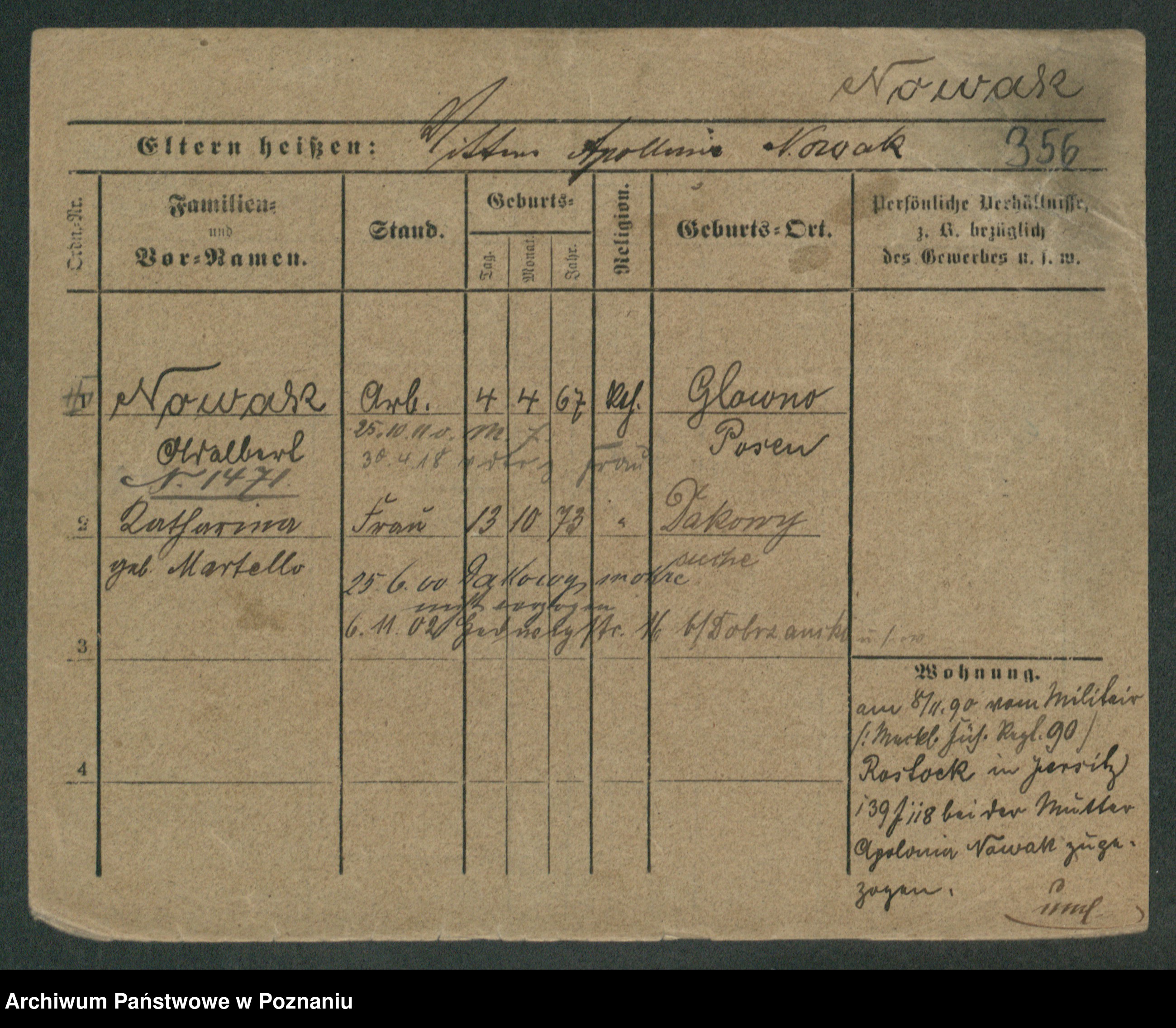 Podgląd karty osobowej dostępny jest po kliknięciu na nazwisko lub ikonkę karty. Można dokonywać powiększenia (ikony na górze) lub przechodzić między kolejnymi skanami (strzałki po bokach).