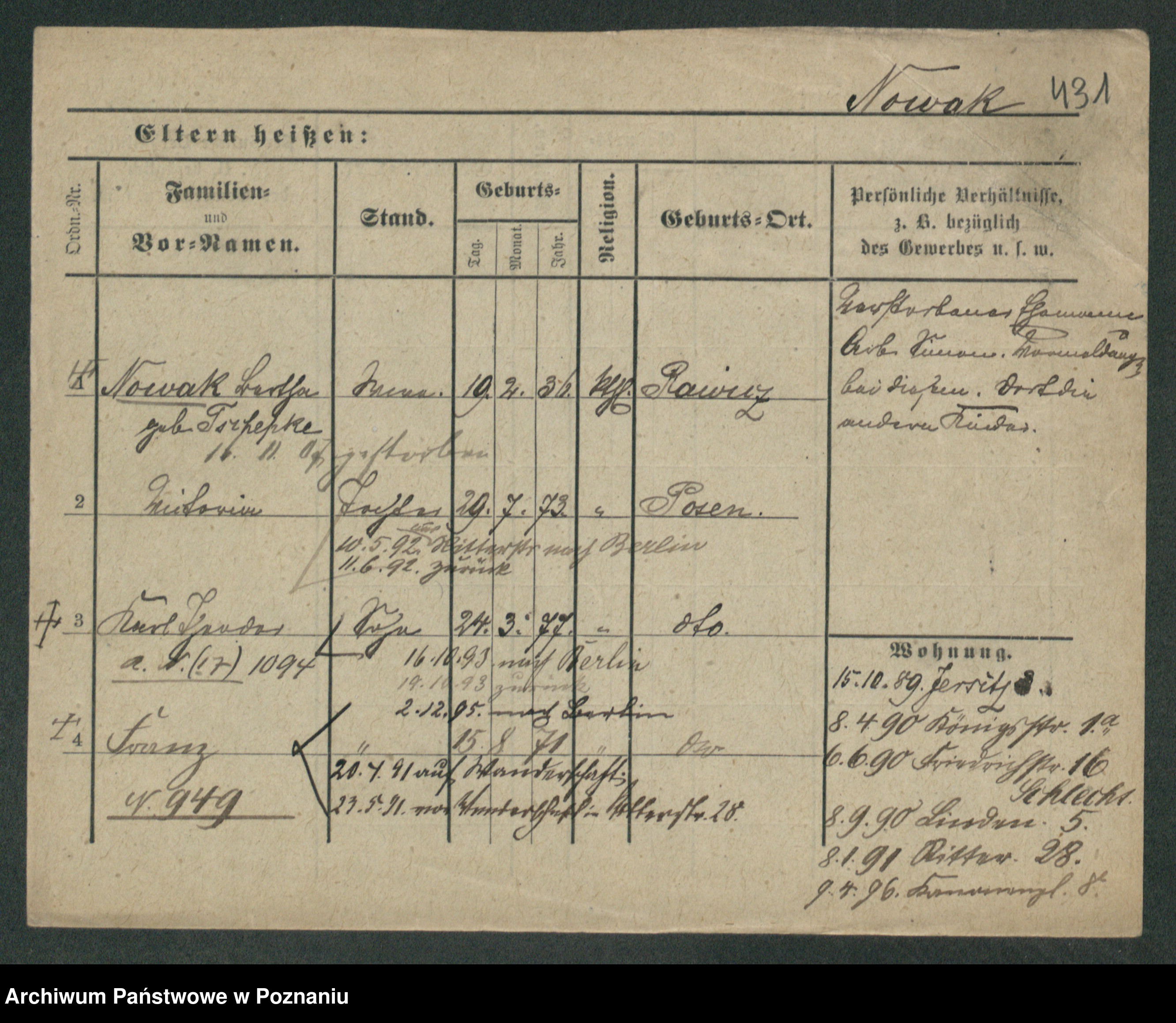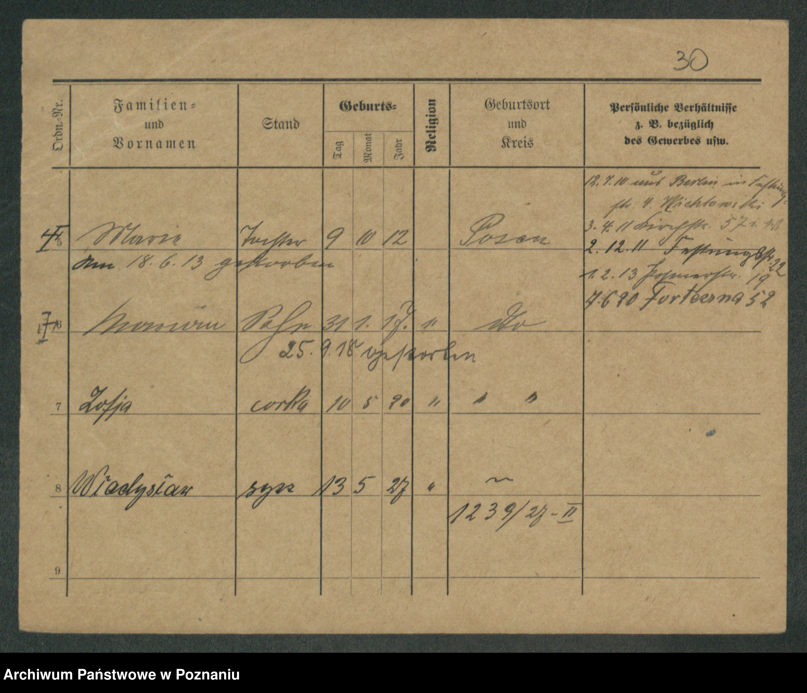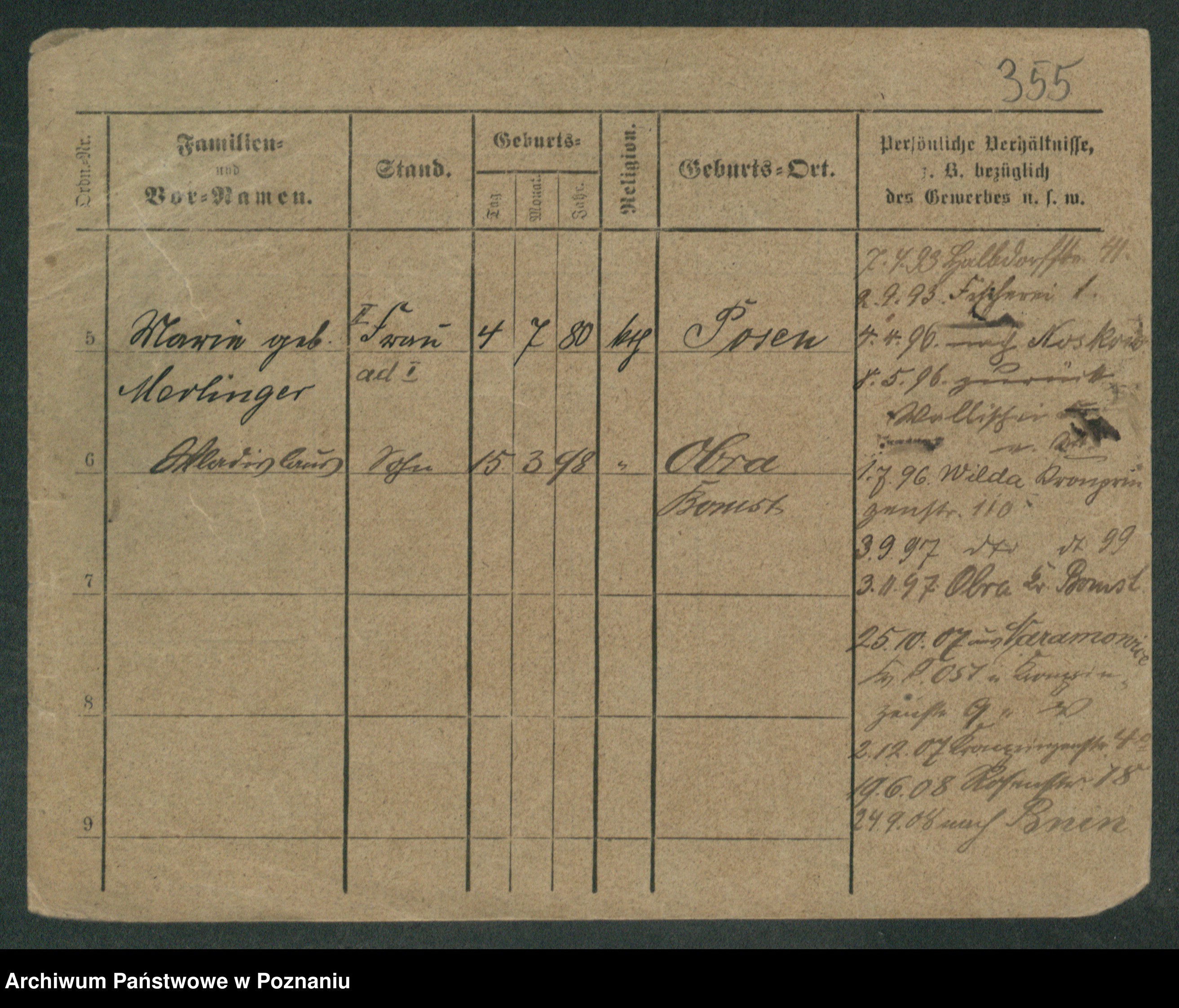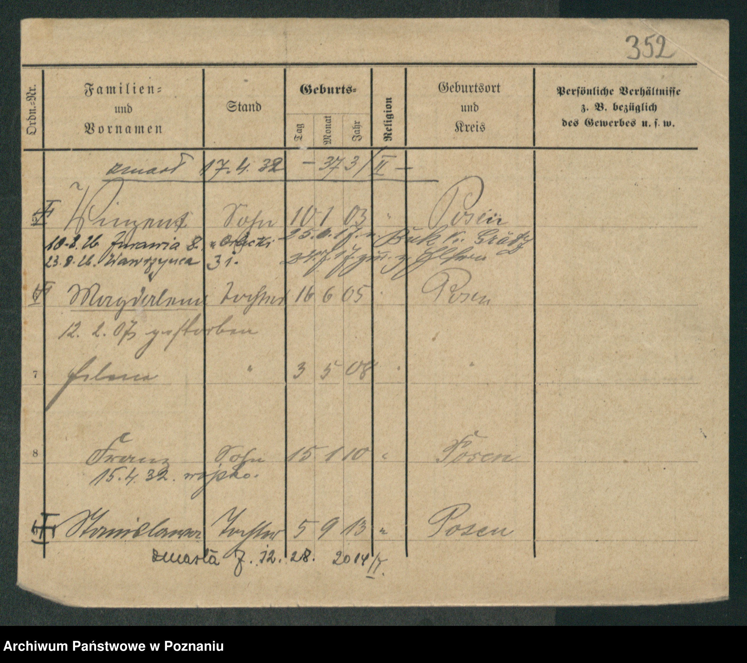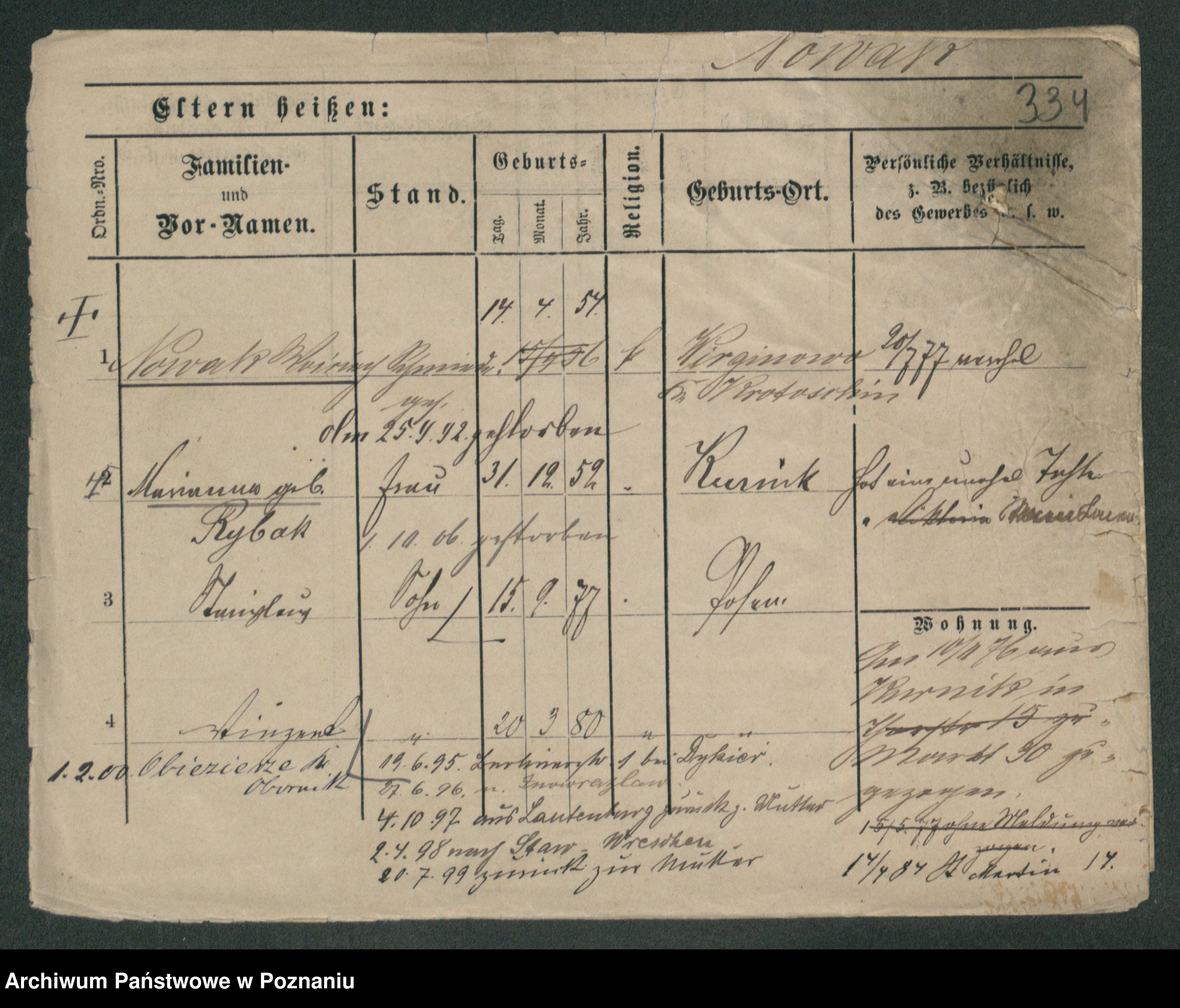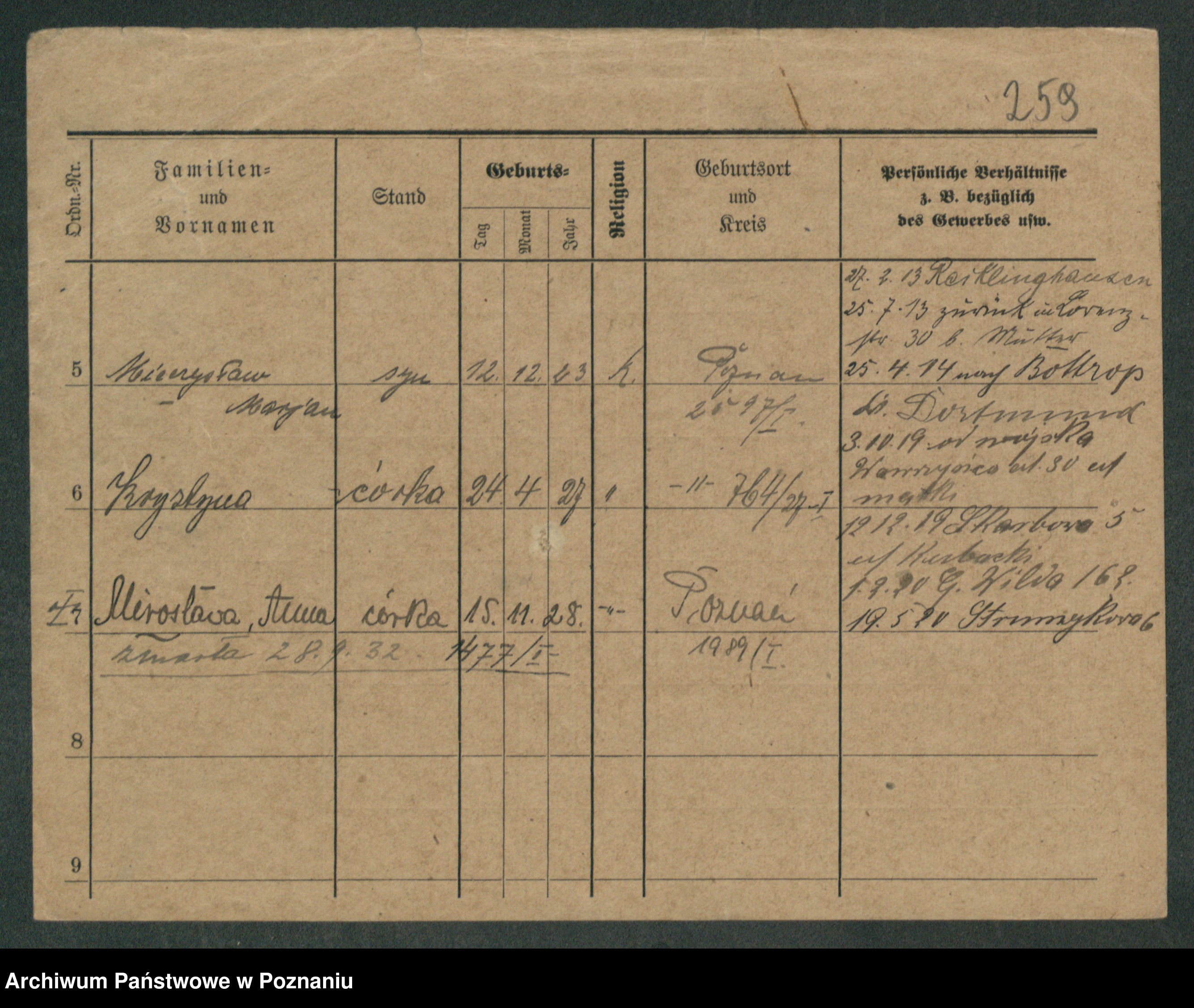 Podgląd karty osobowej dostępny jest po kliknięciu na nazwisko lub ikonkę karty. Można dokonywać powiększenia (ikony na górze) lub przechodzić między kolejnymi skanami (strzałki po bokach).