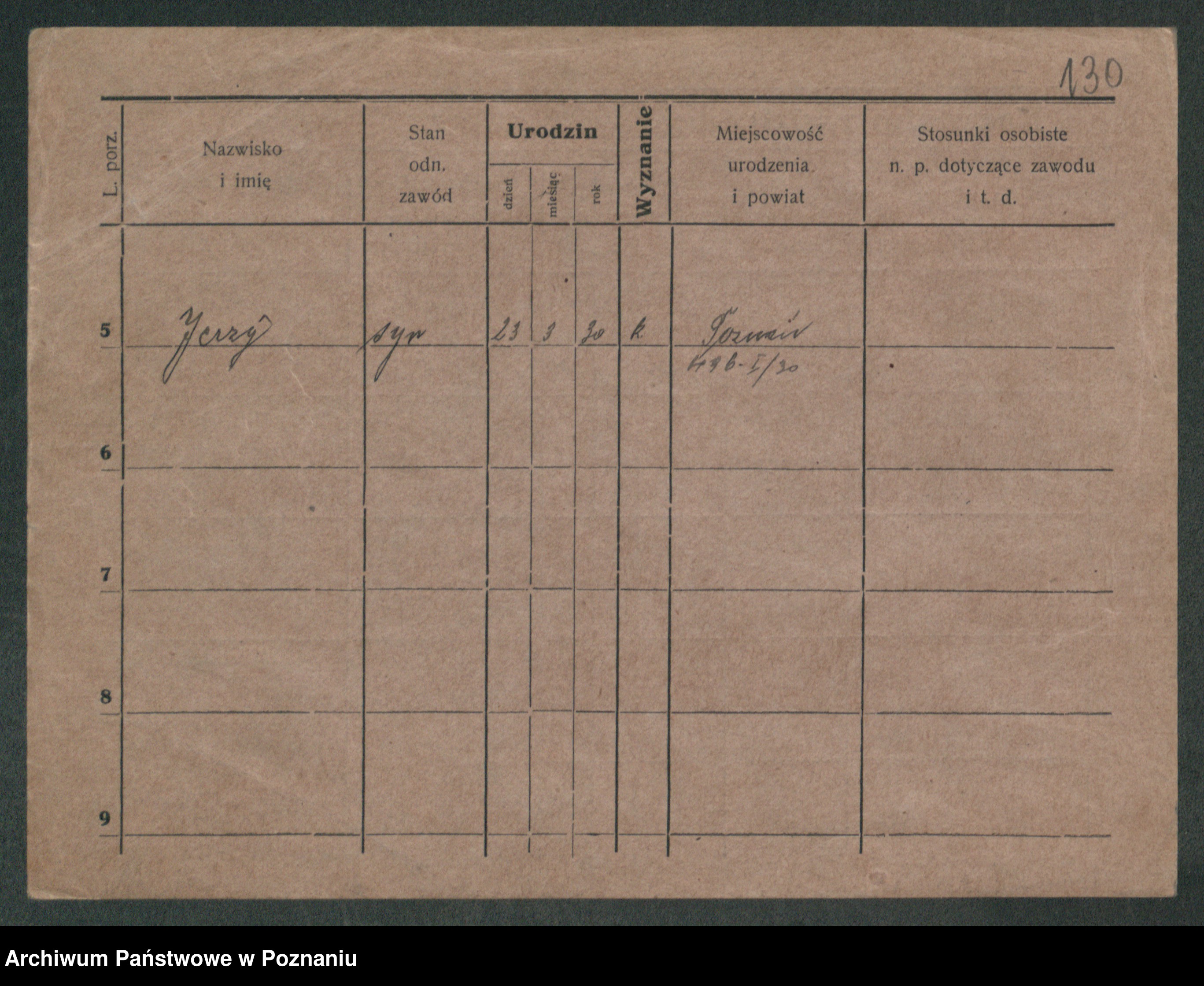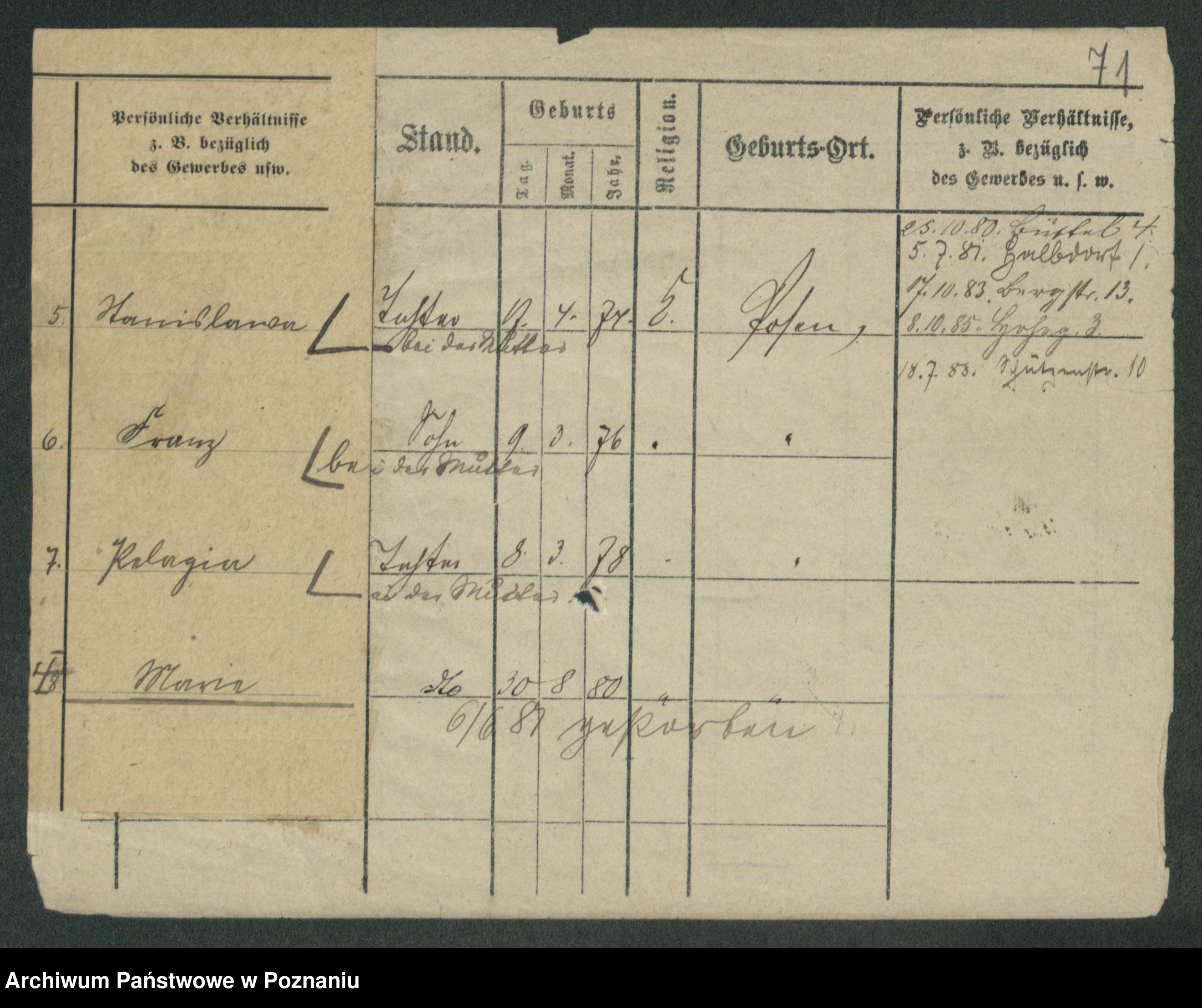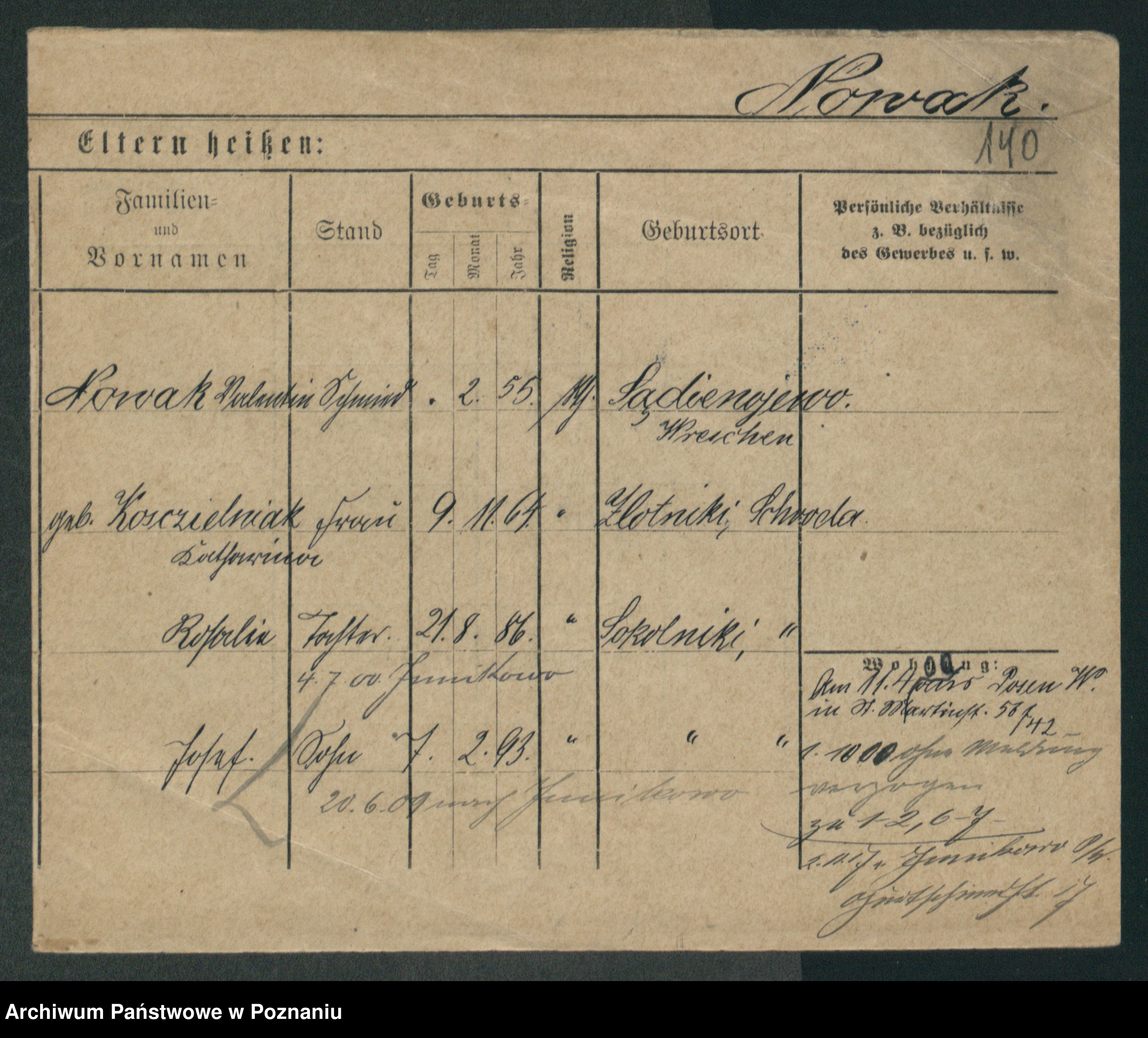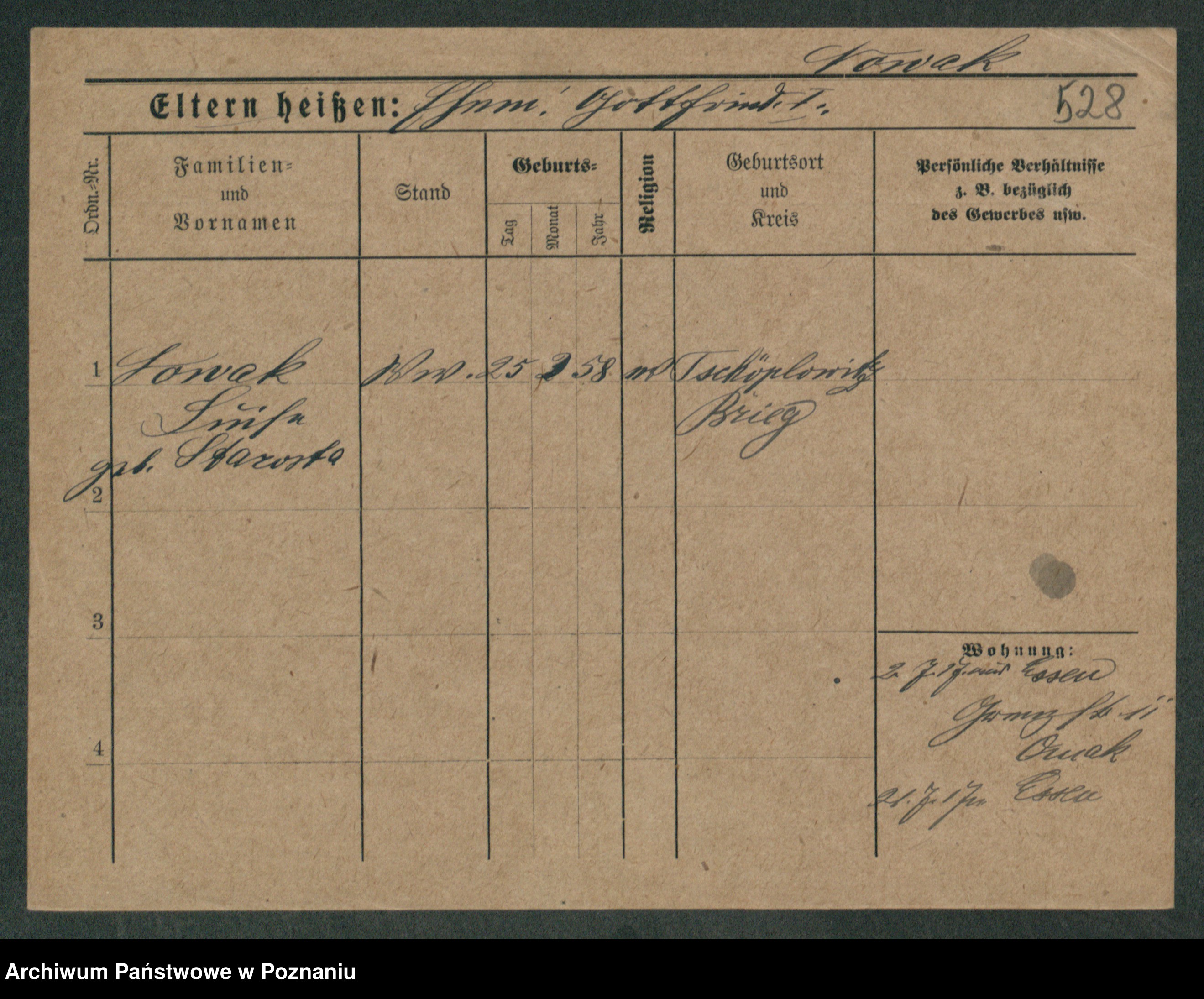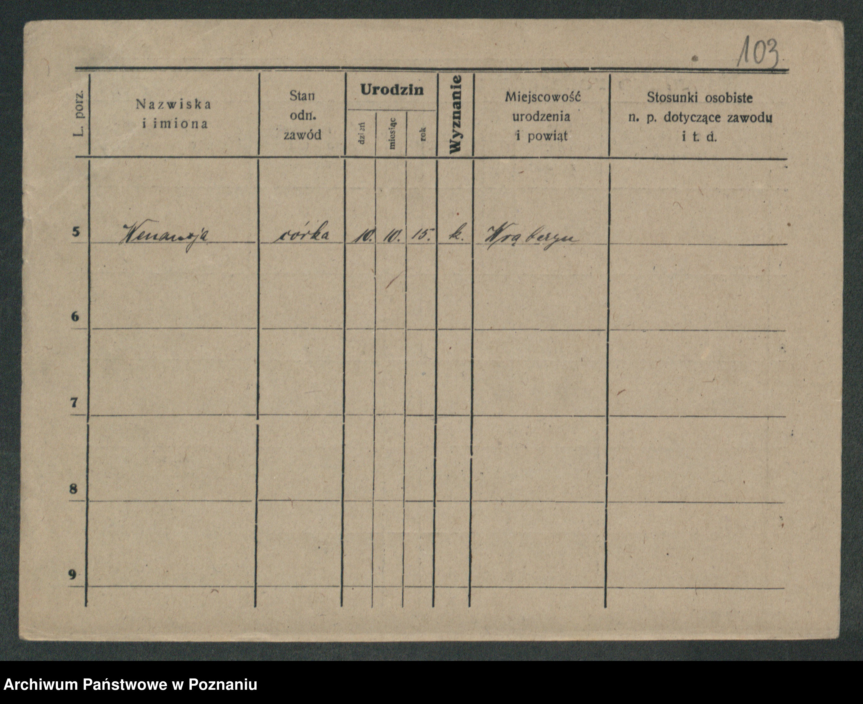 Podgląd karty osobowej dostępny jest po kliknięciu na nazwisko lub ikonkę karty. Można dokonywać powiększenia (ikony na górze) lub przechodzić między kolejnymi skanami (strzałki po bokach).