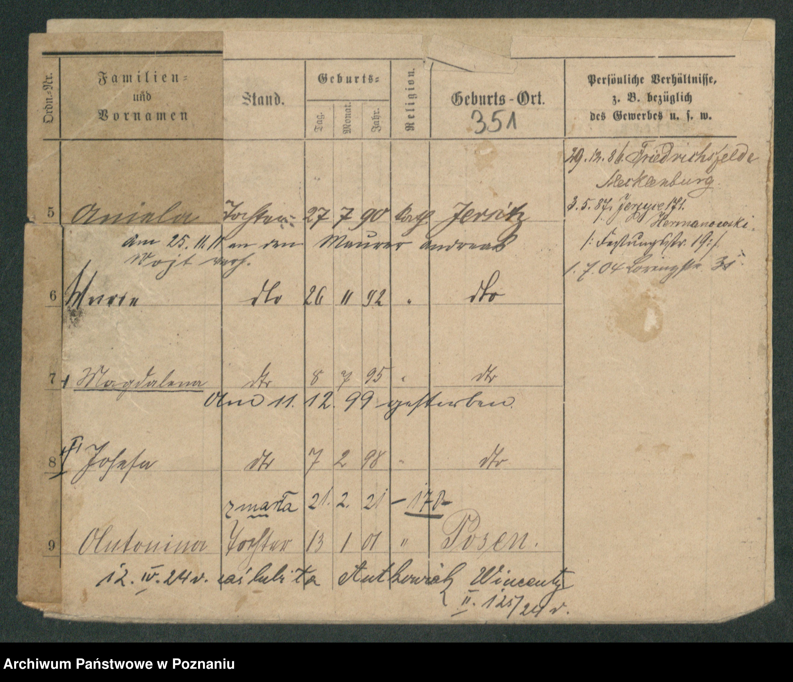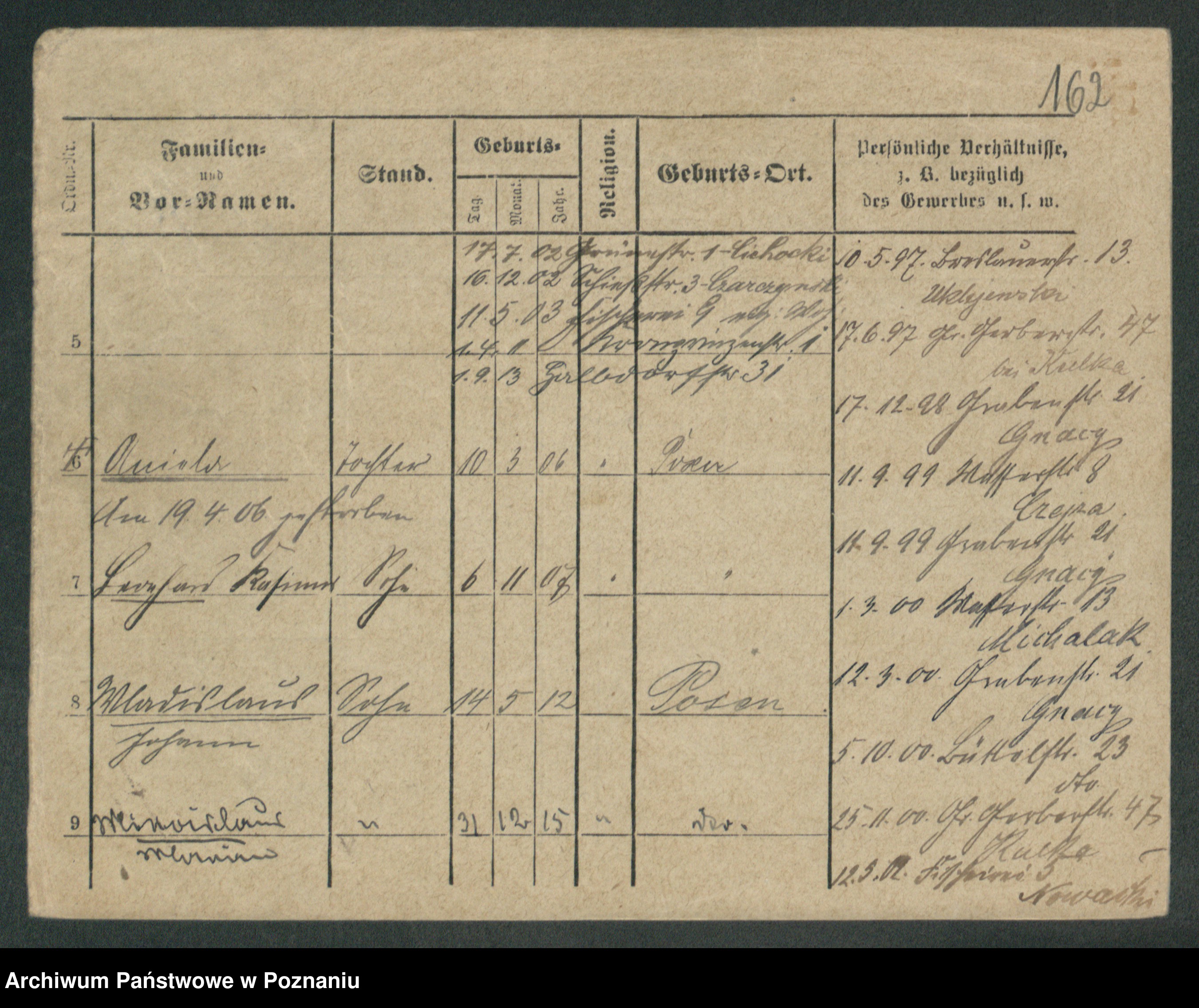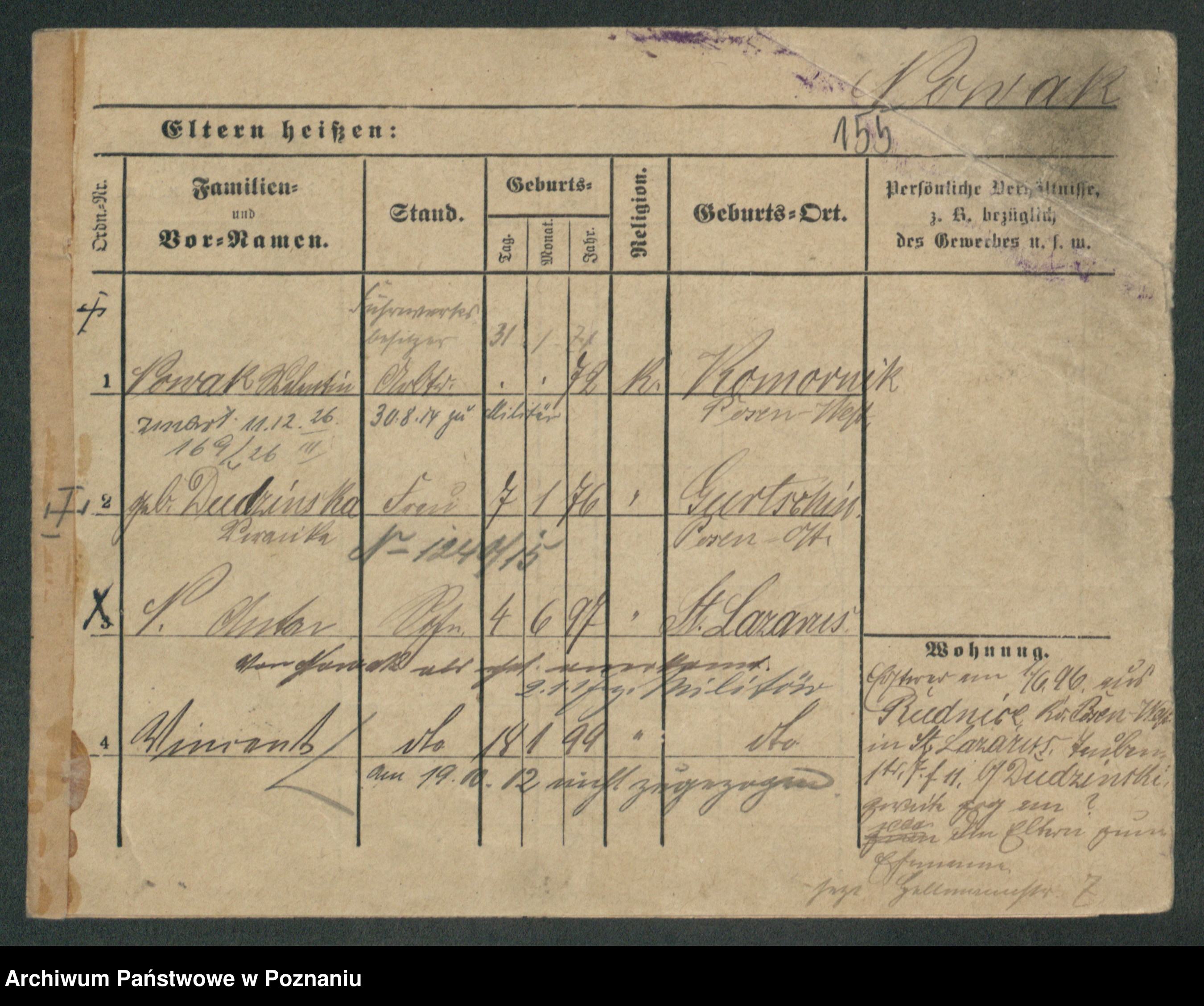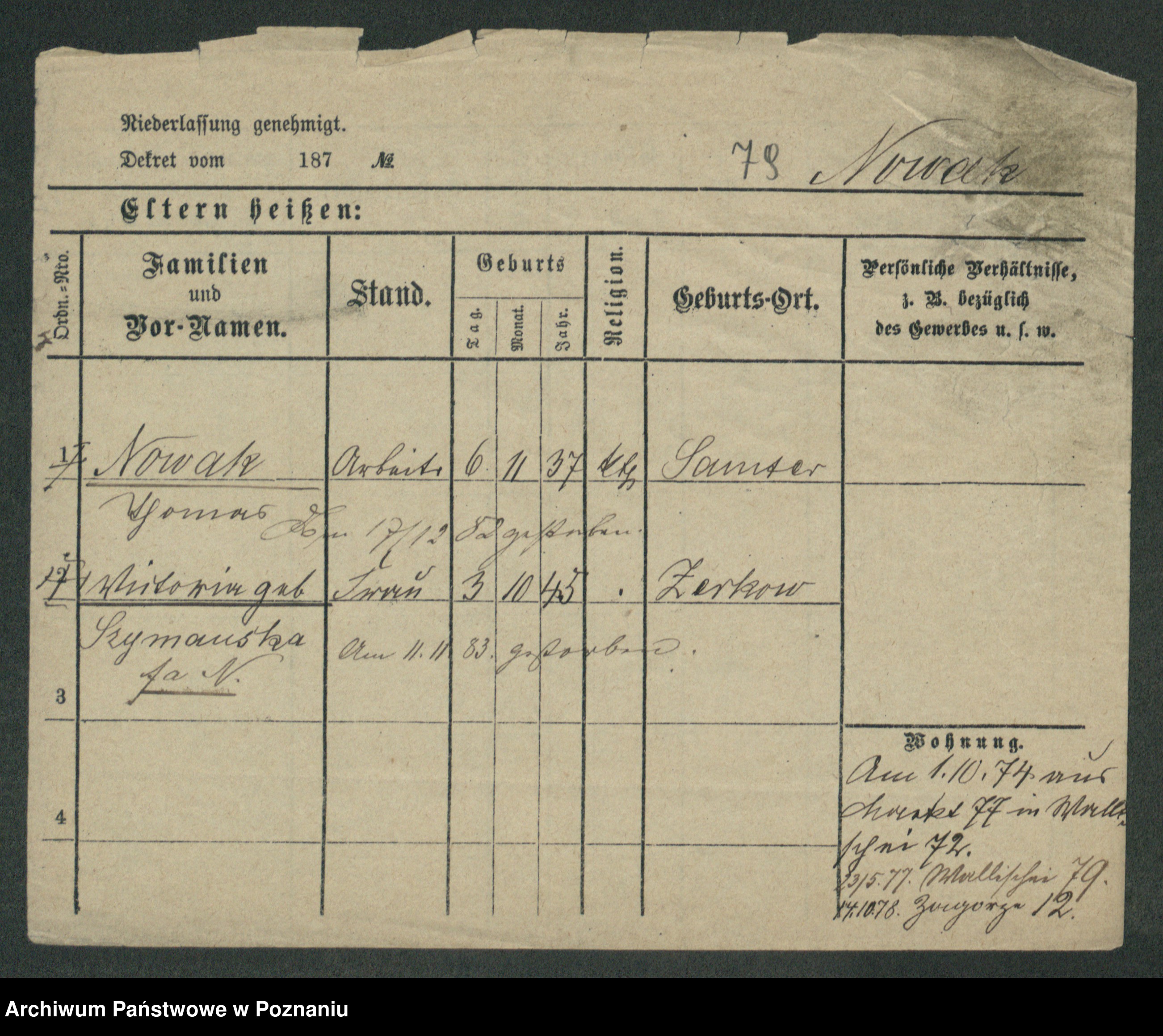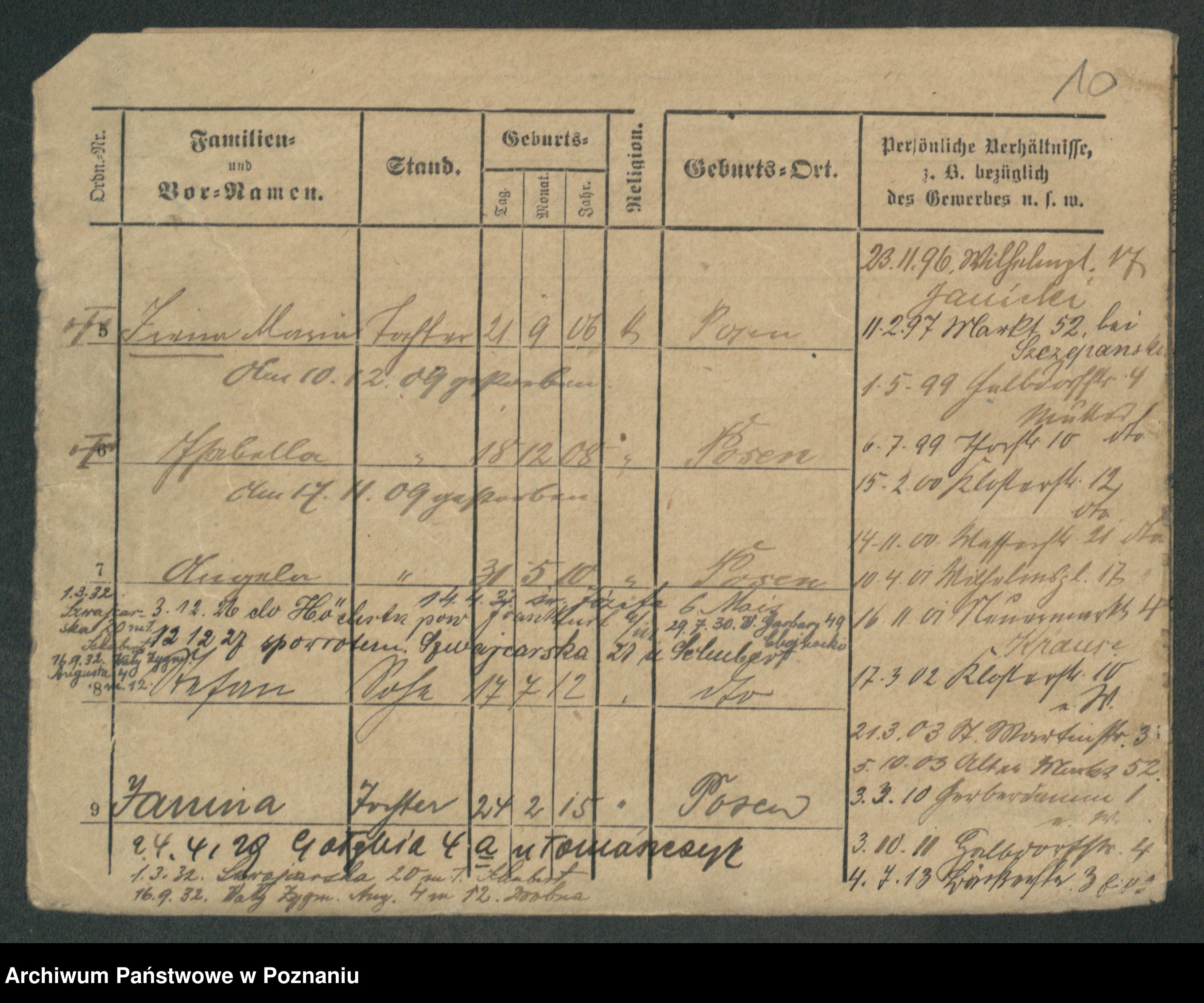 Podgląd karty osobowej dostępny jest po kliknięciu na nazwisko lub ikonkę karty. Można dokonywać powiększenia (ikony na górze) lub przechodzić między kolejnymi skanami (strzałki po bokach).