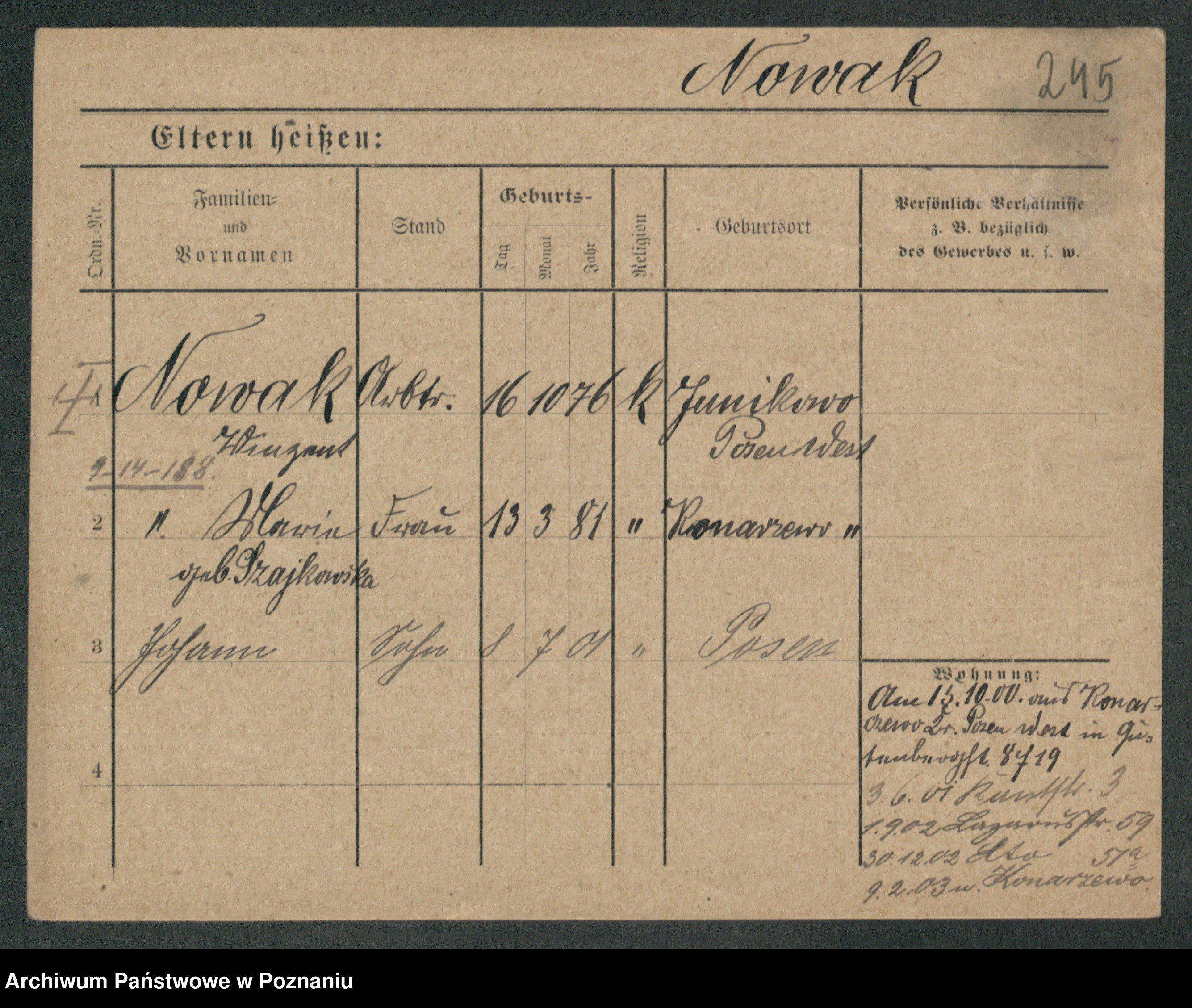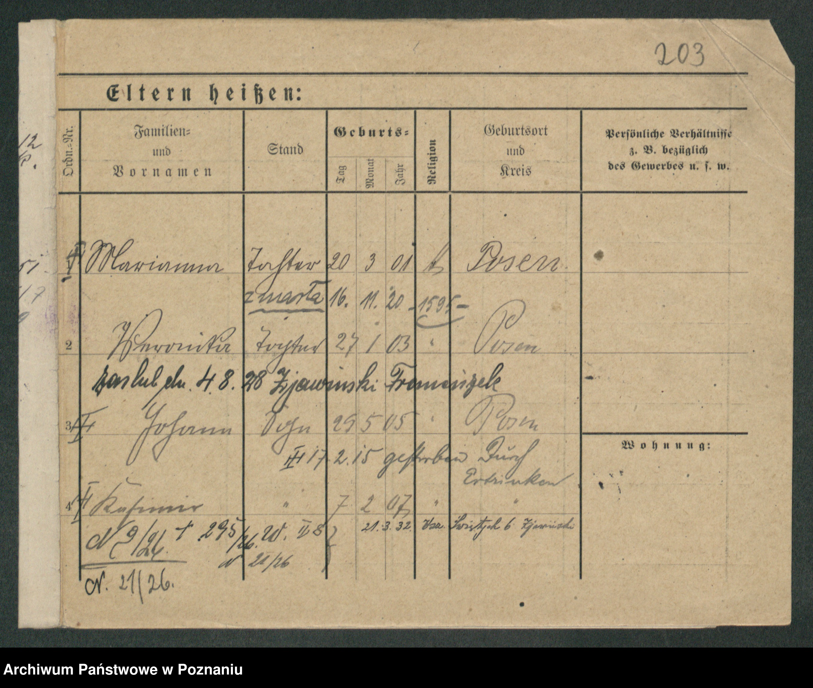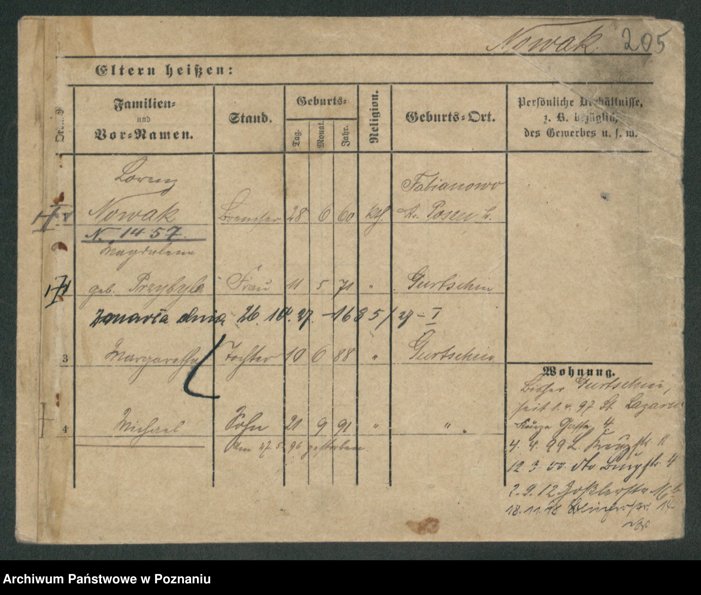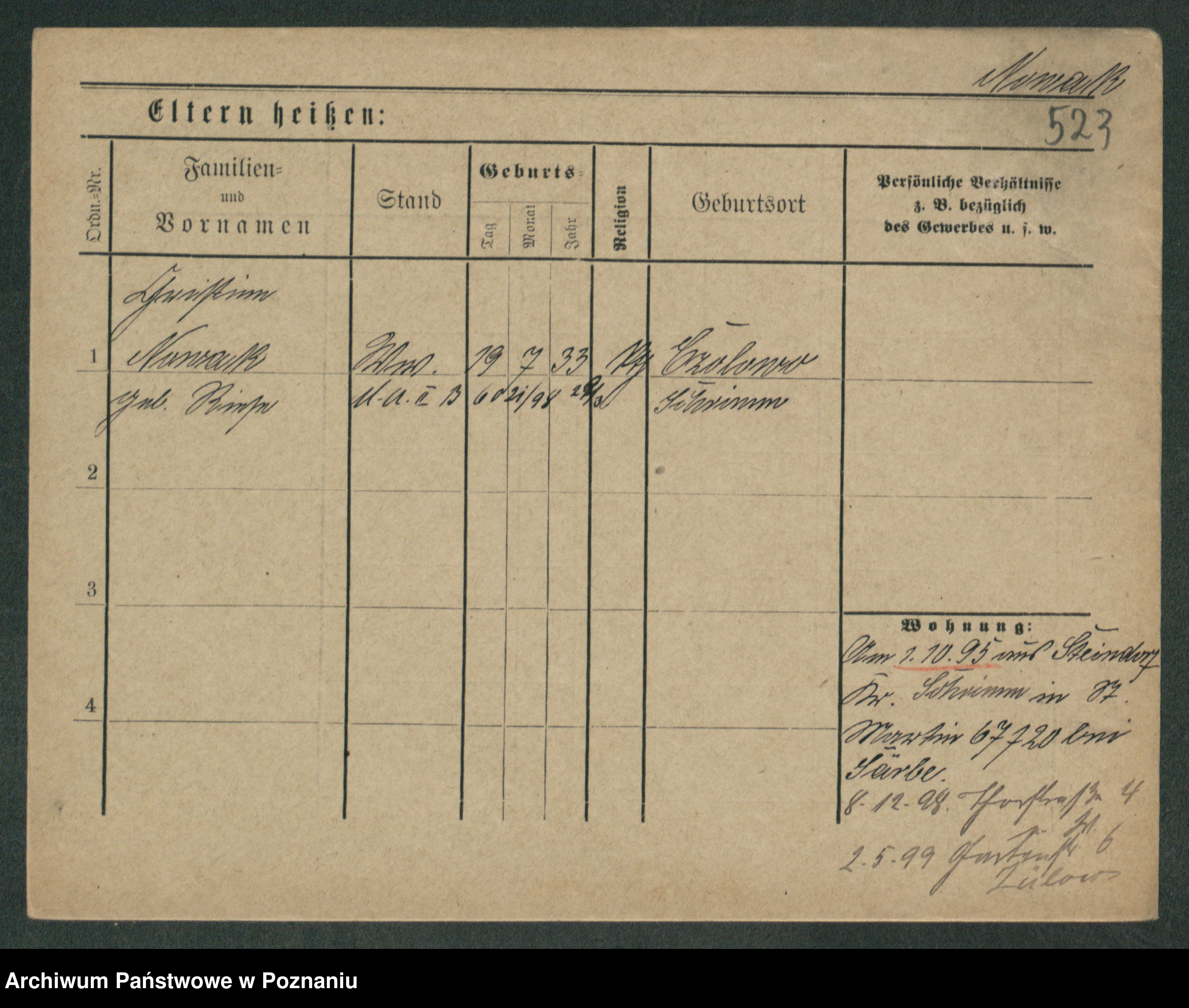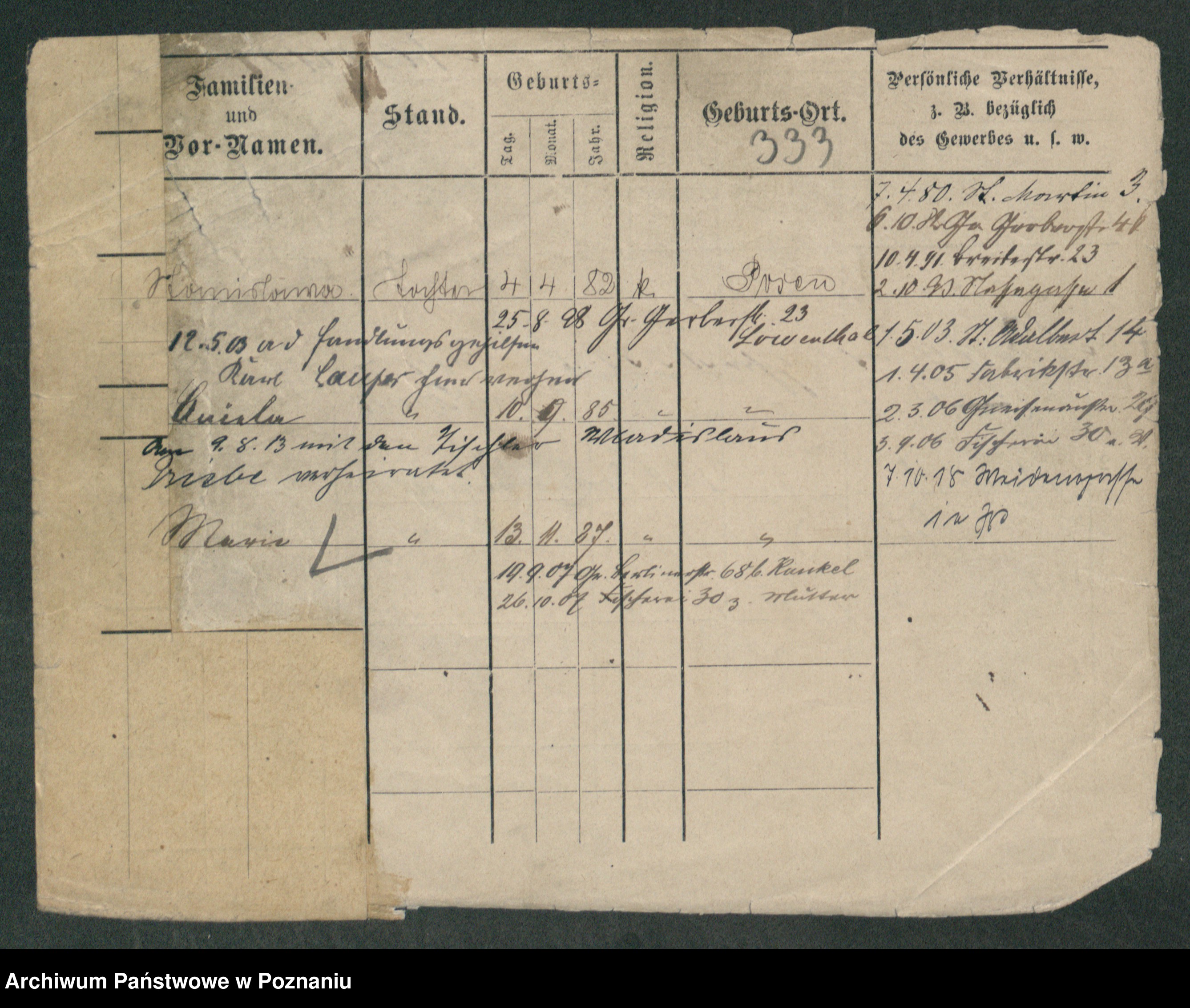 Podgląd karty osobowej dostępny jest po kliknięciu na nazwisko lub ikonkę karty. Można dokonywać powiększenia (ikony na górze) lub przechodzić między kolejnymi skanami (strzałki po bokach).