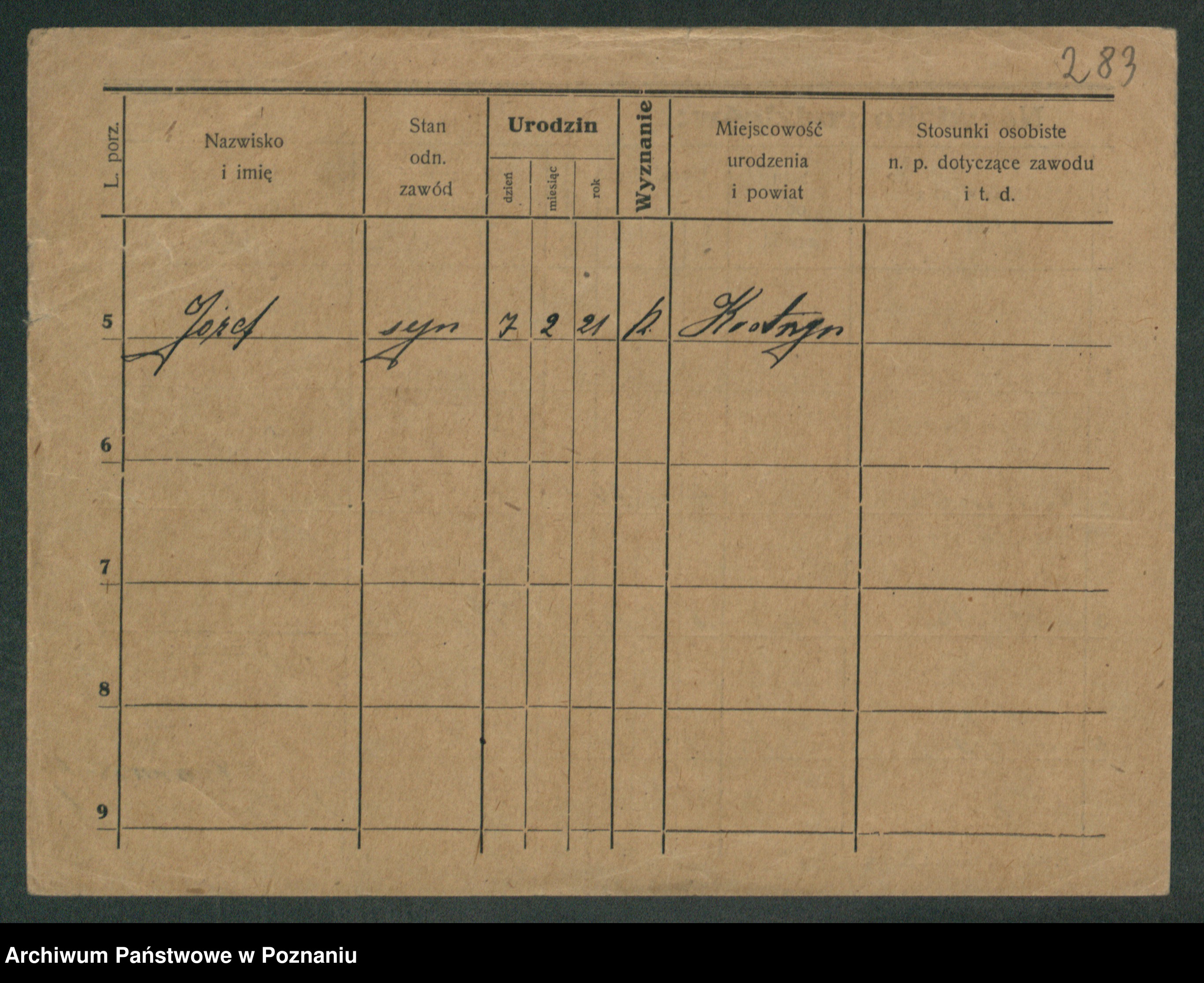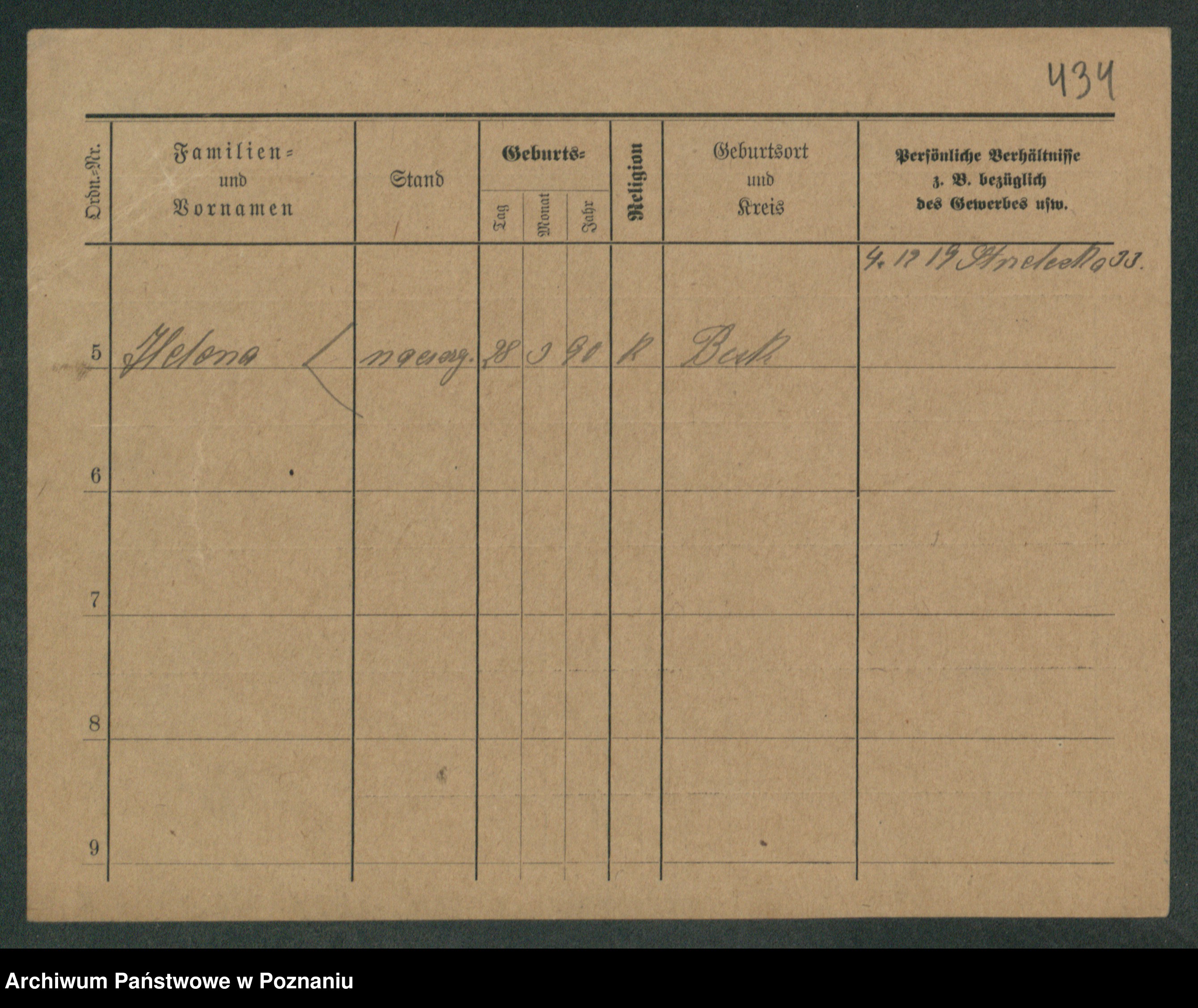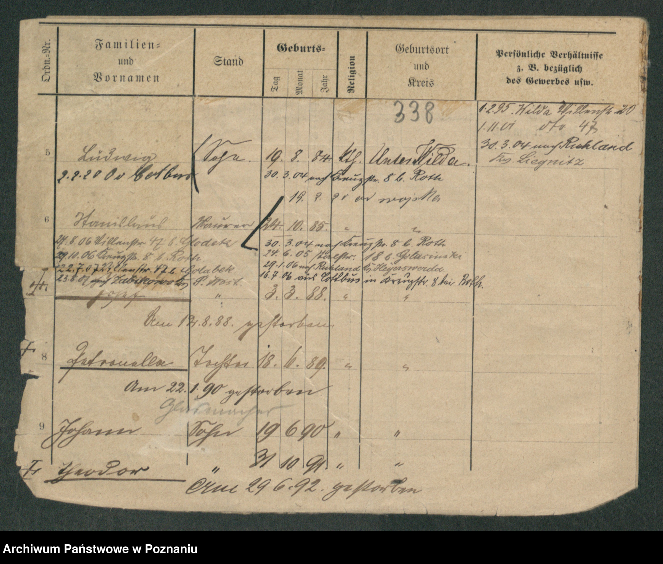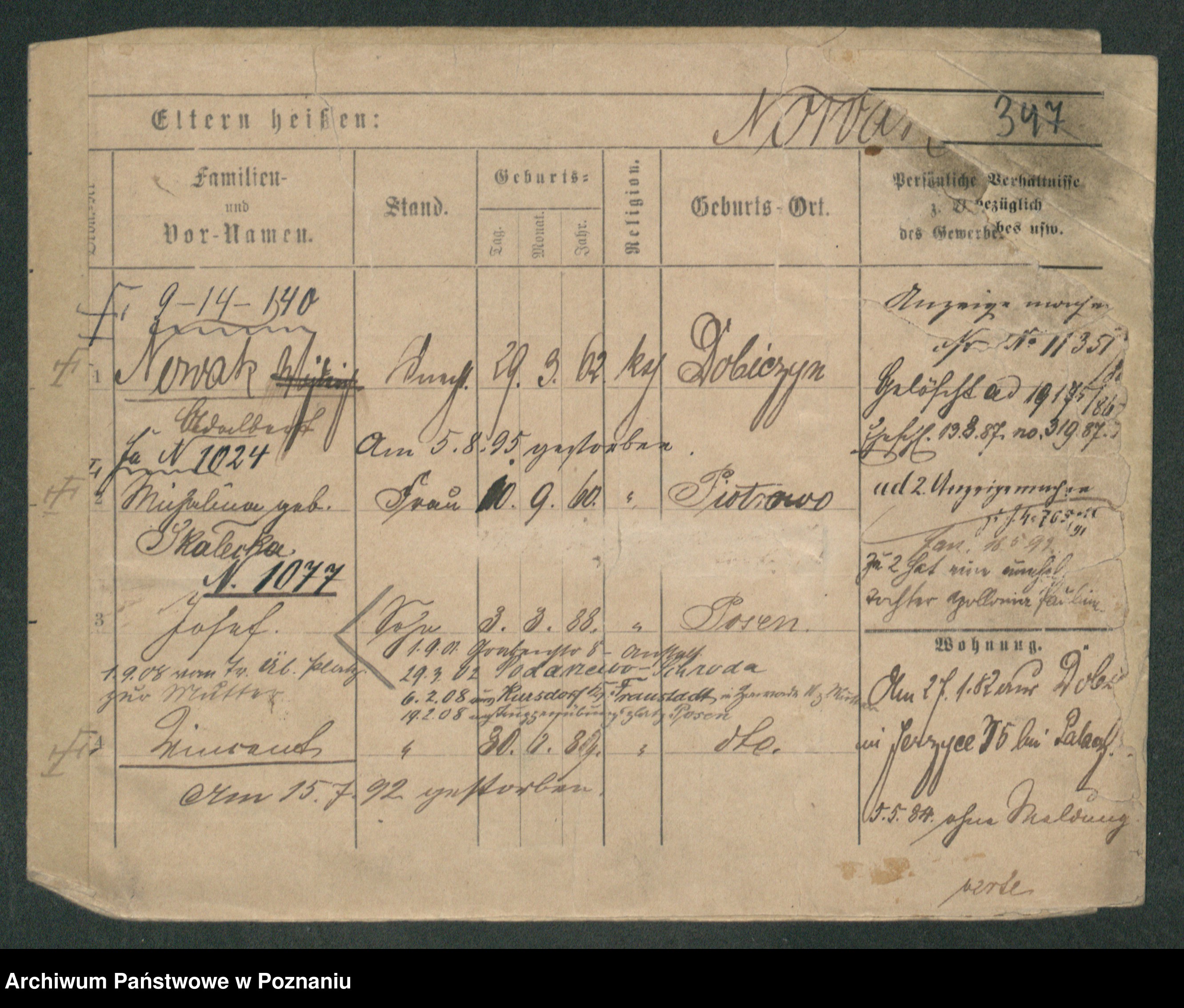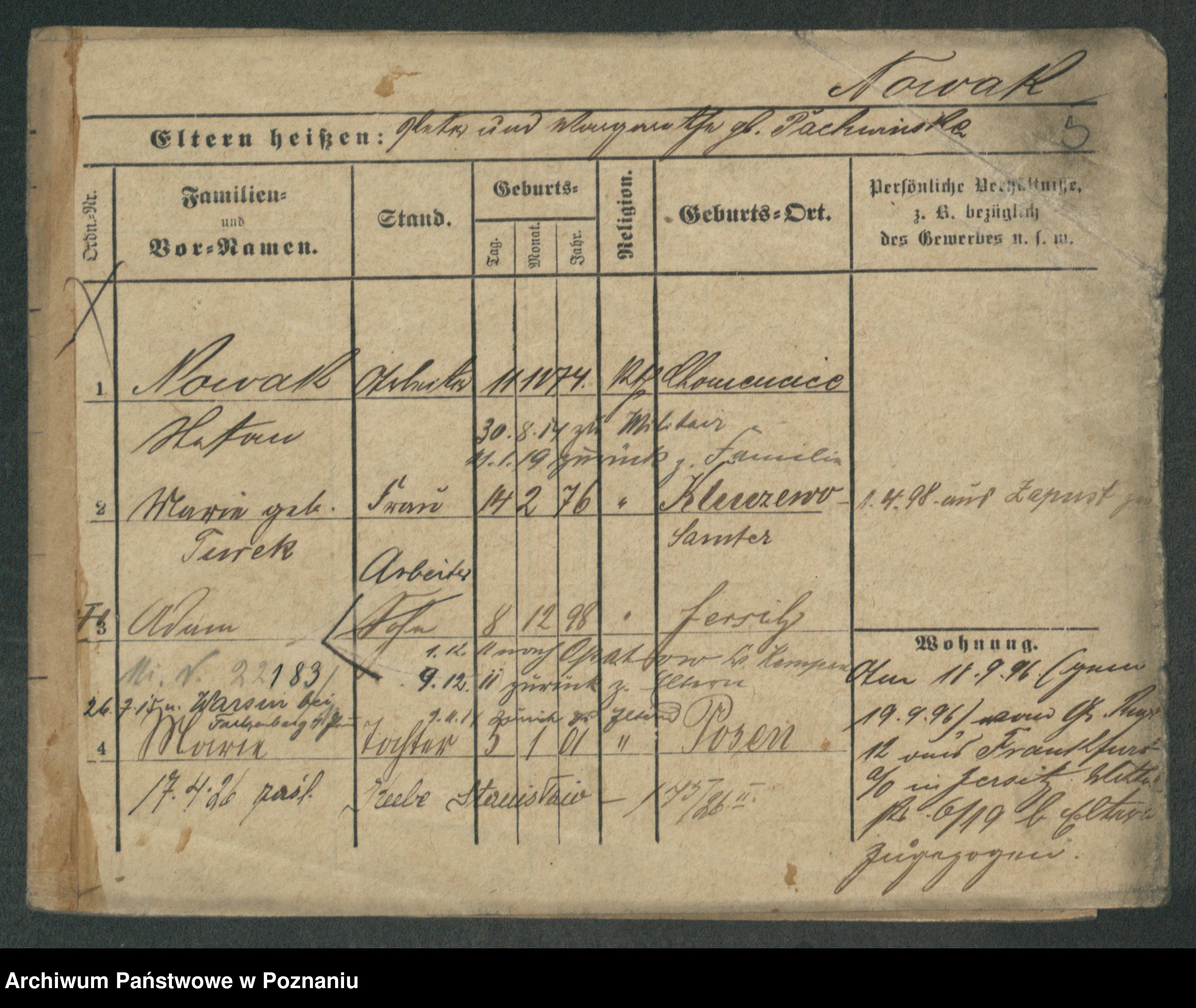 Podgląd karty osobowej dostępny jest po kliknięciu na nazwisko lub ikonkę karty. Można dokonywać powiększenia (ikony na górze) lub przechodzić między kolejnymi skanami (strzałki po bokach).