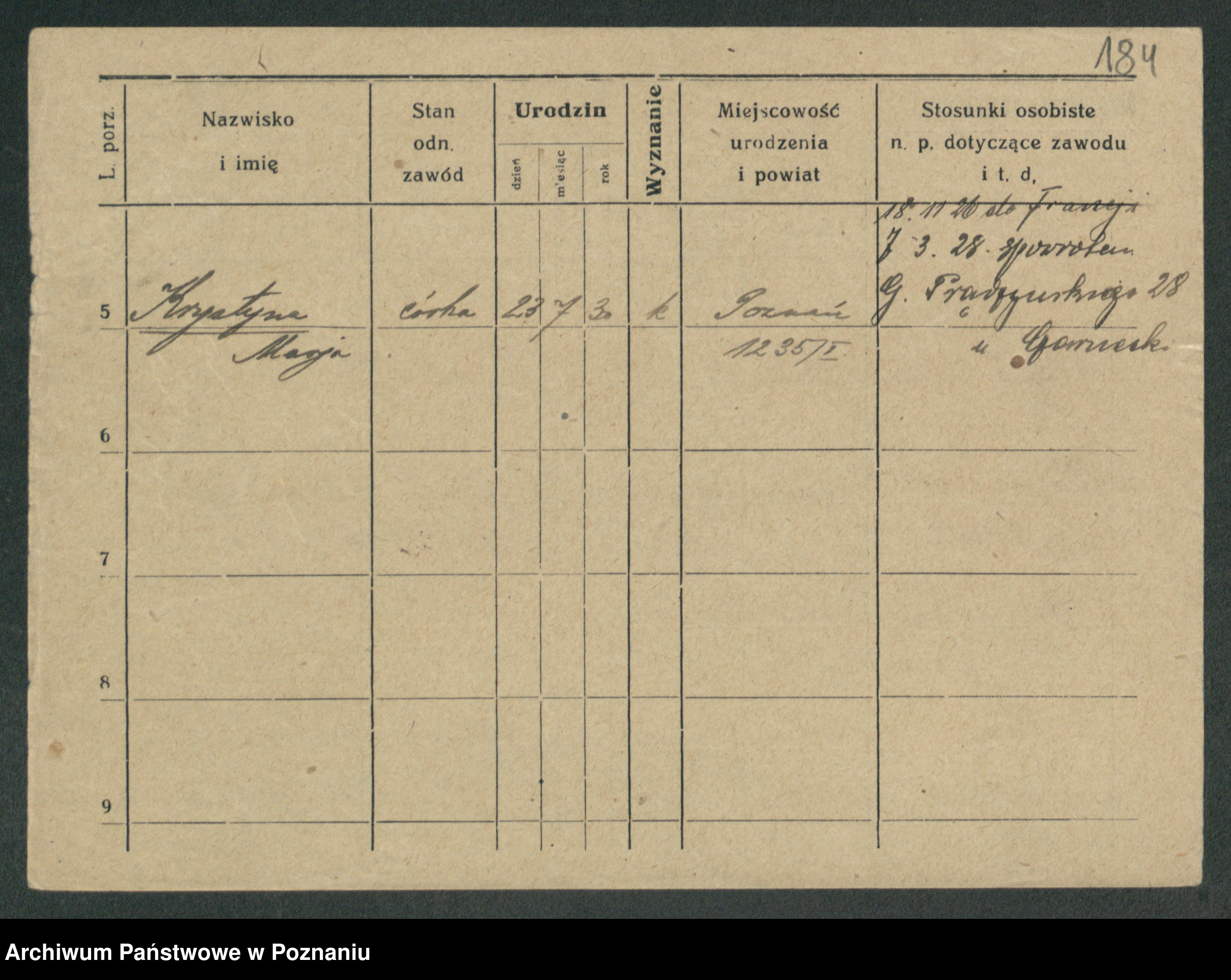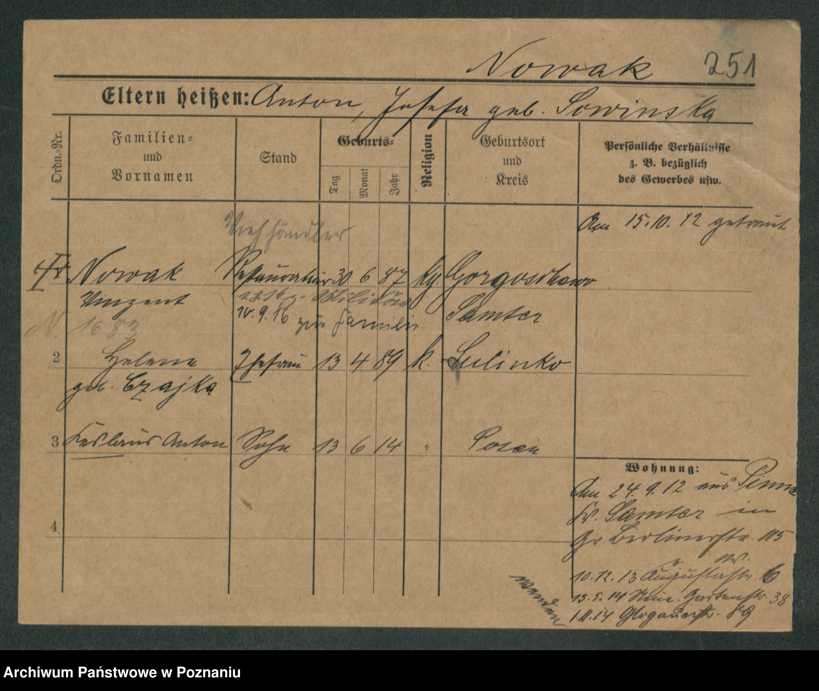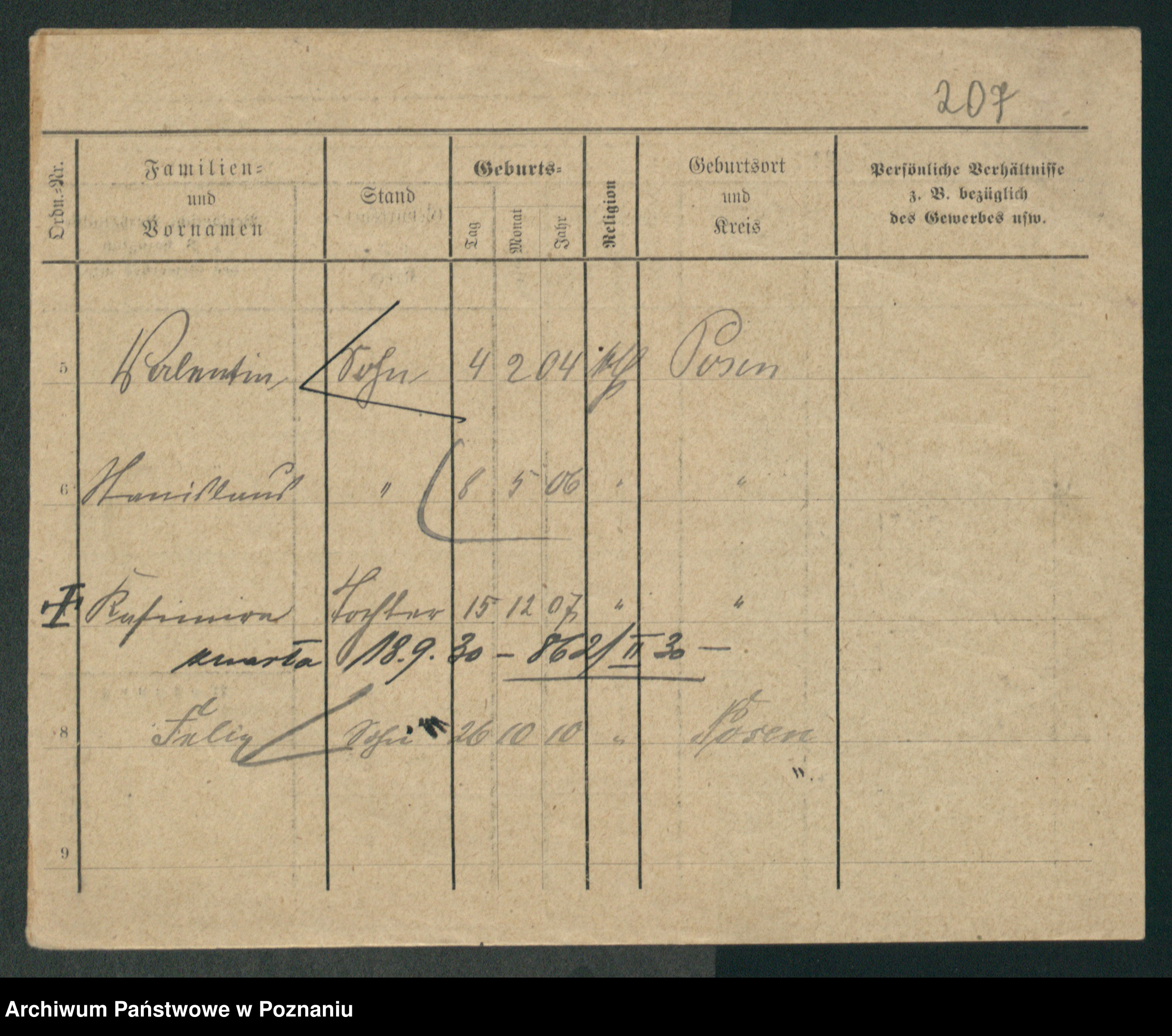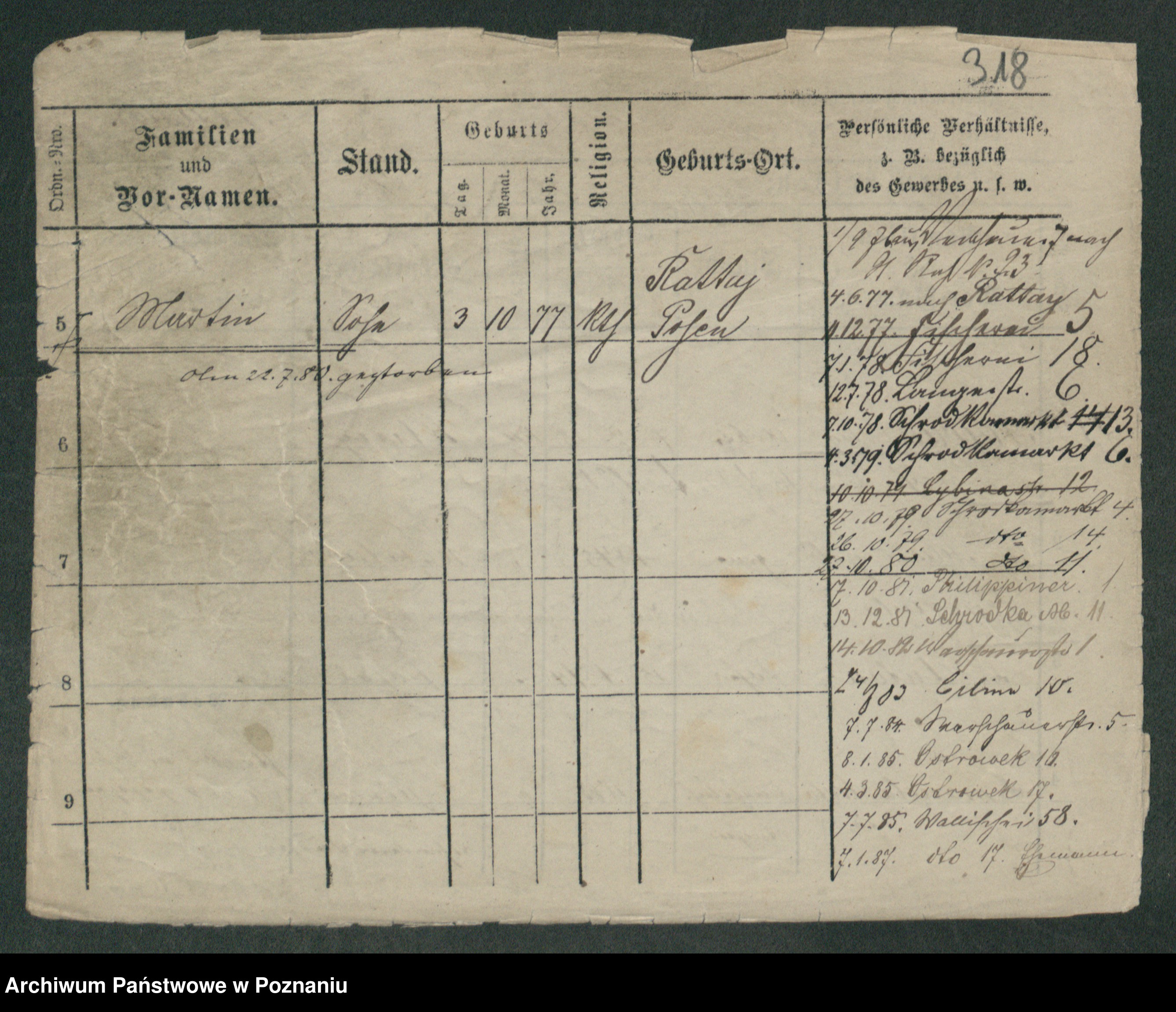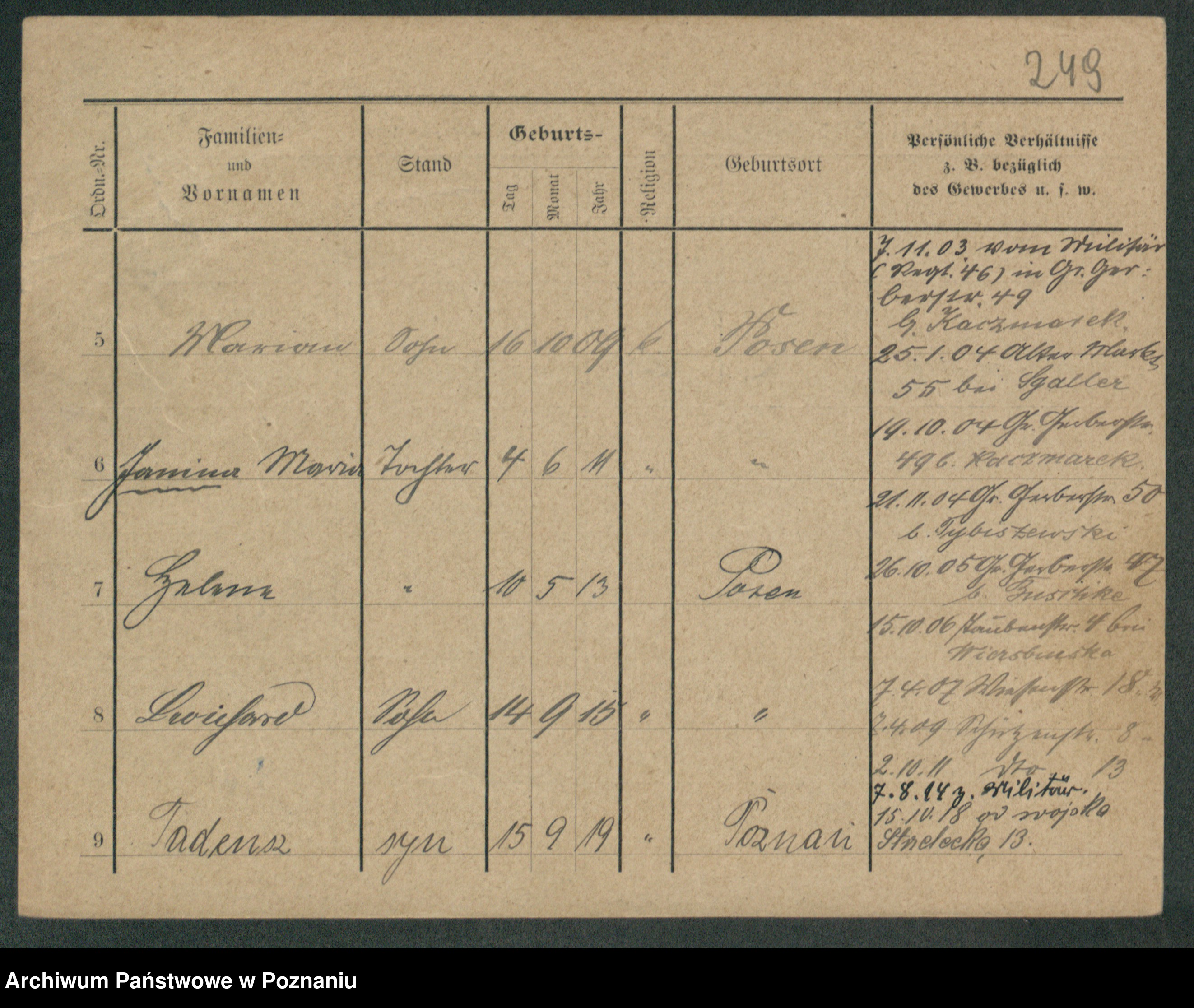 Podgląd karty osobowej dostępny jest po kliknięciu na nazwisko lub ikonkę karty. Można dokonywać powiększenia (ikony na górze) lub przechodzić między kolejnymi skanami (strzałki po bokach).