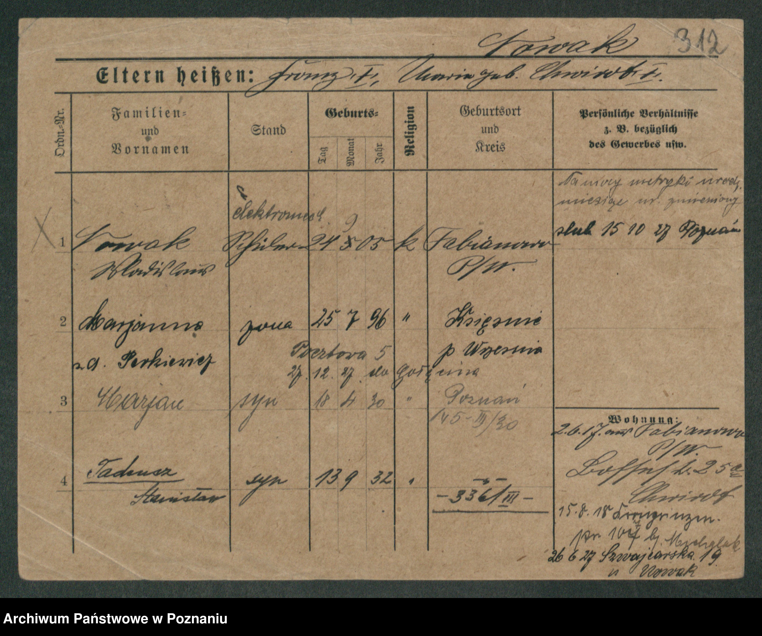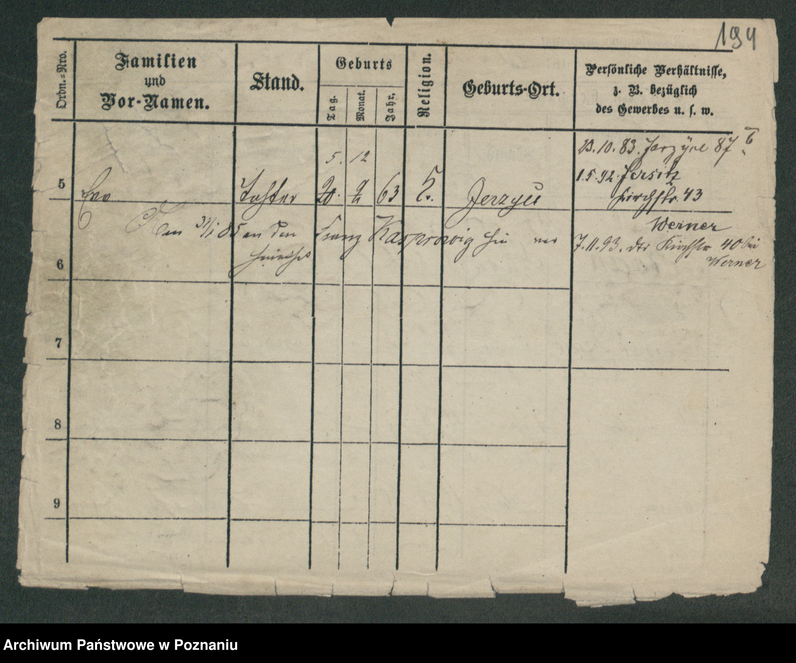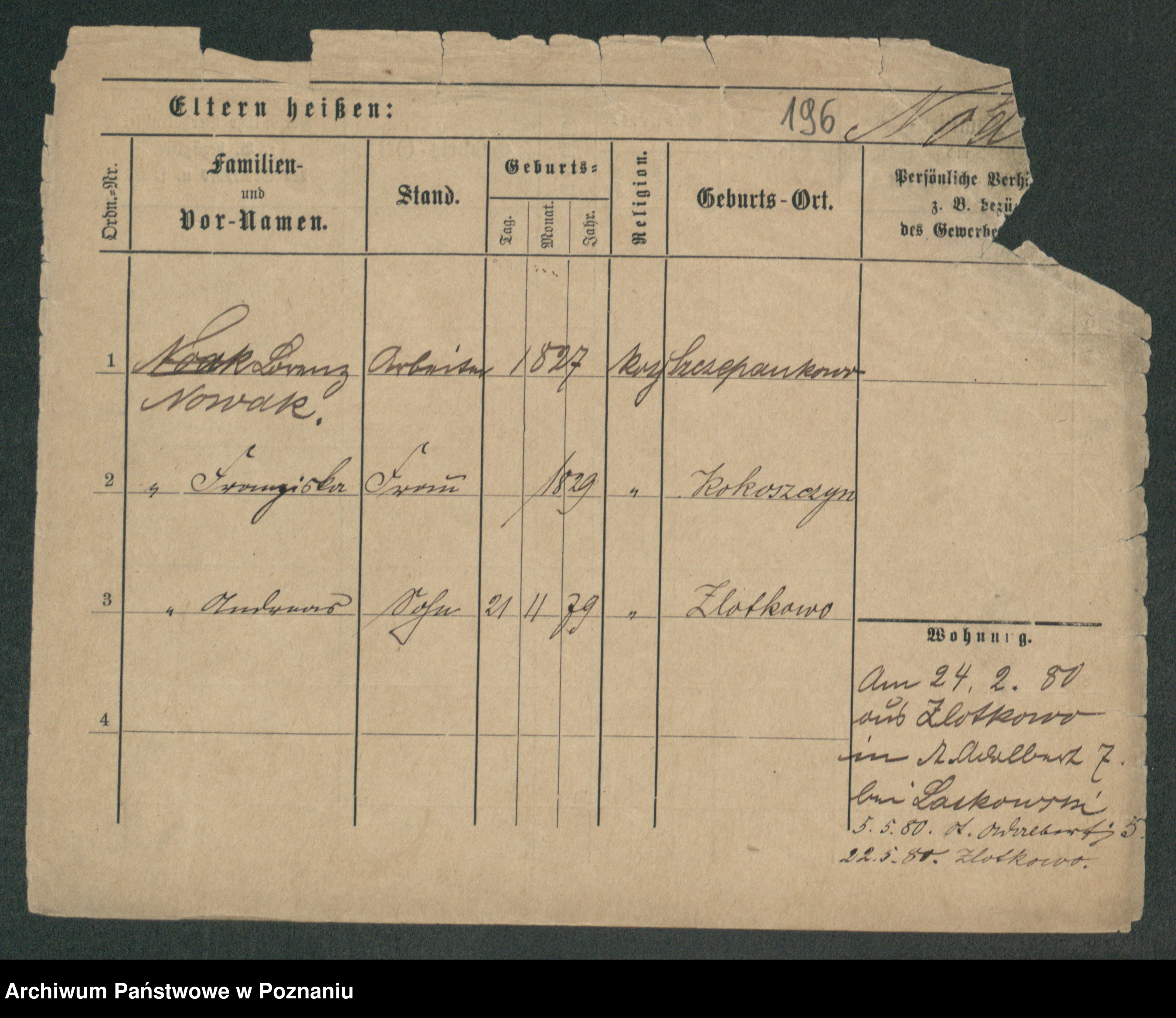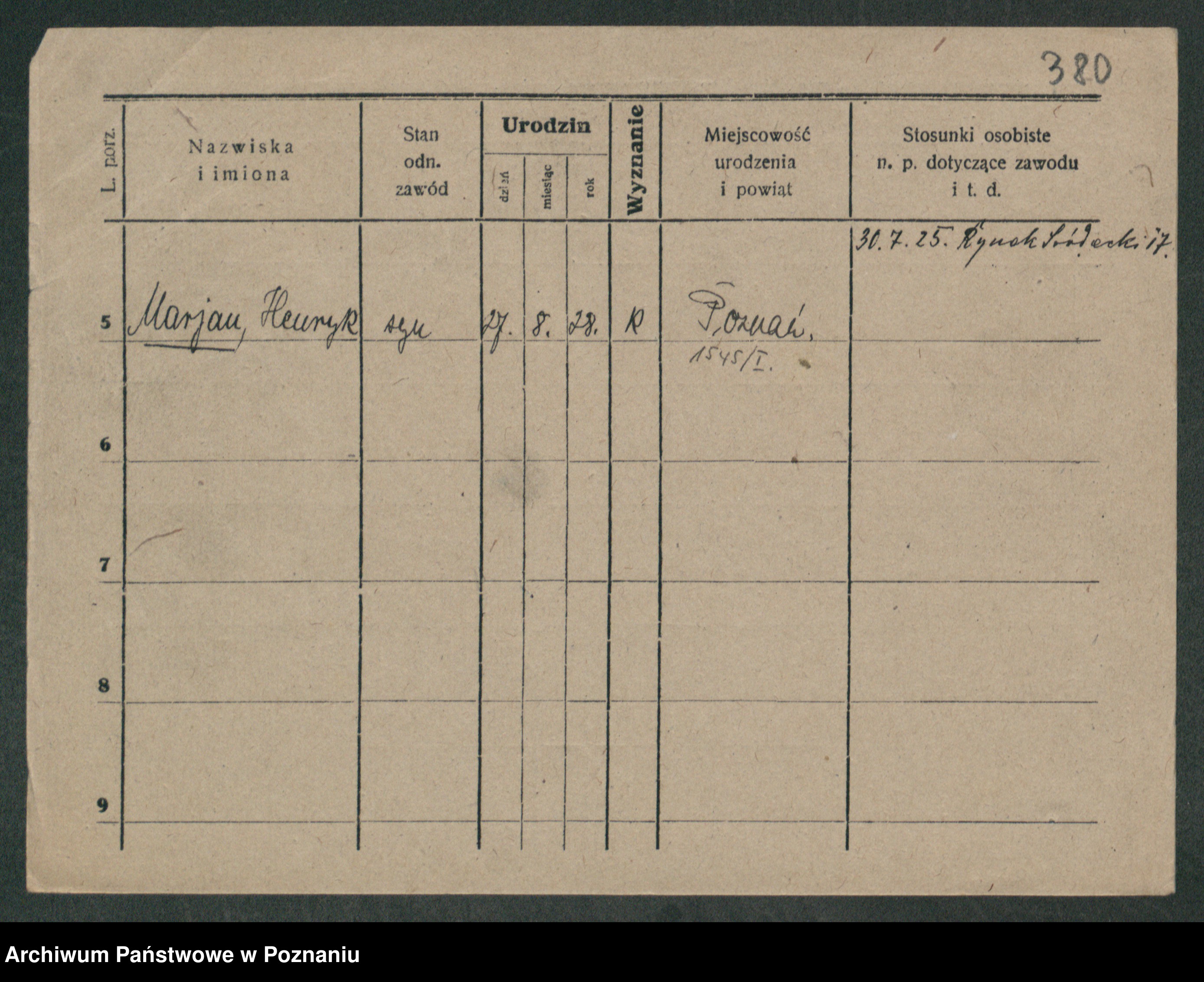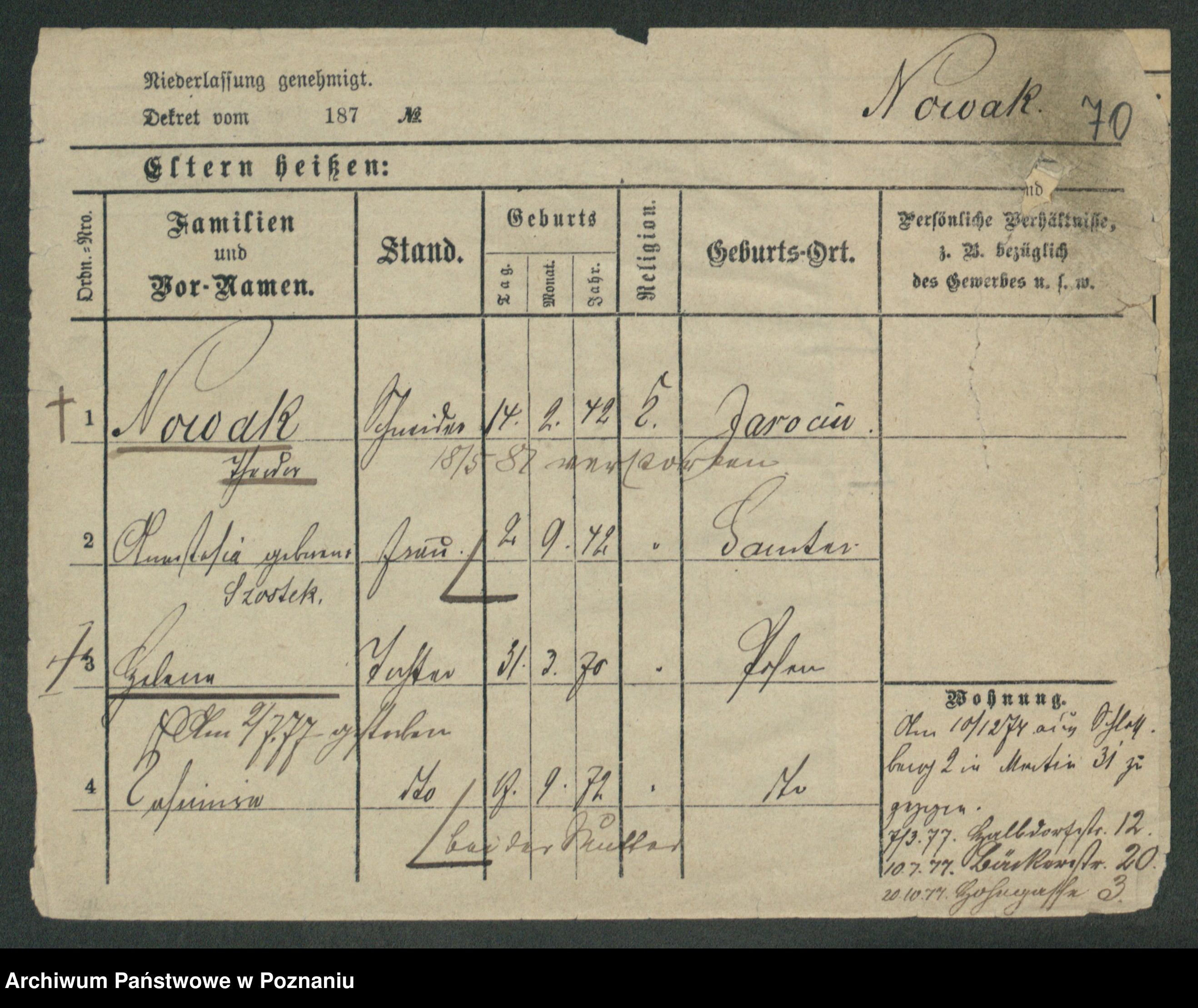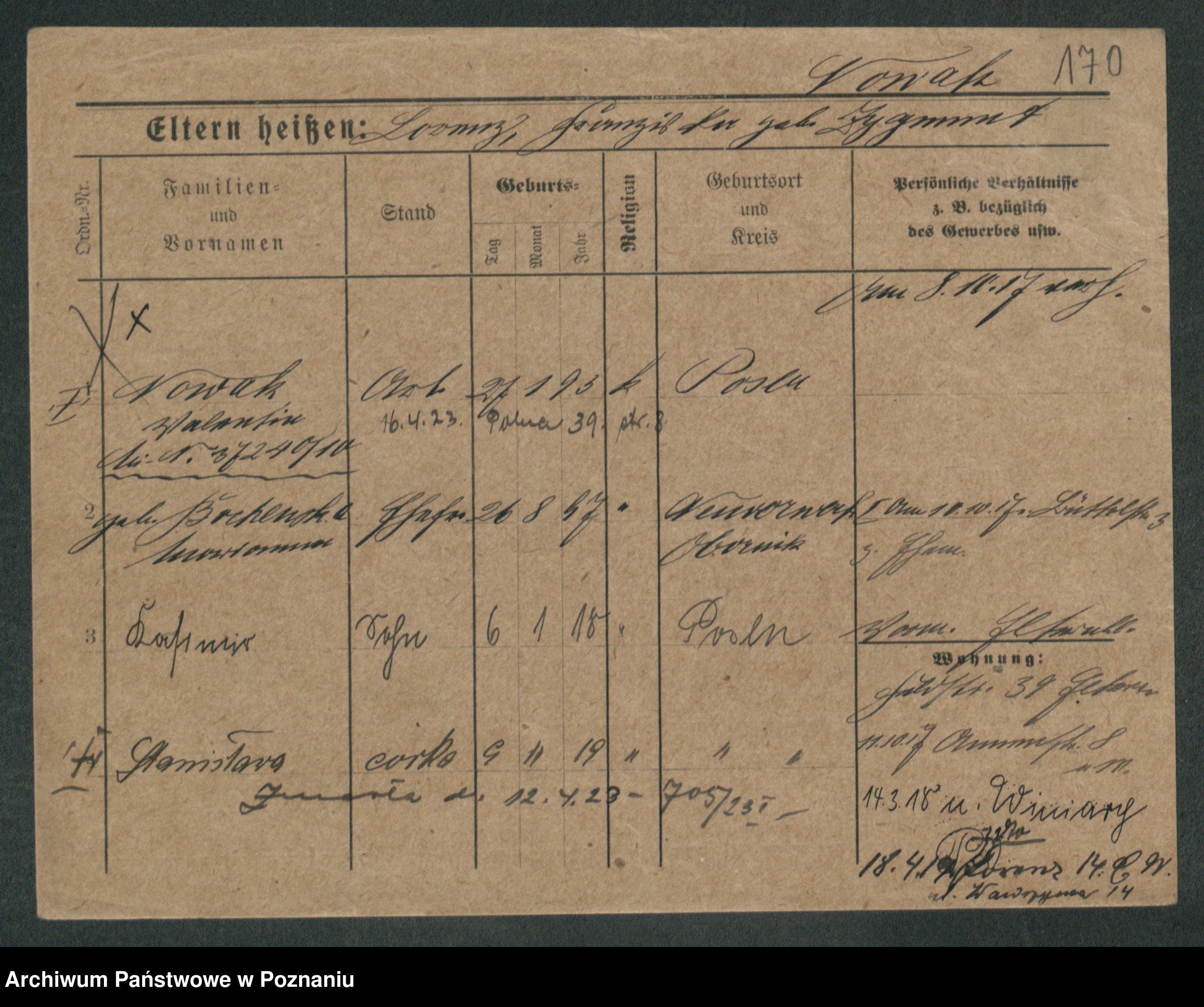 Podgląd karty osobowej dostępny jest po kliknięciu na nazwisko lub ikonkę karty. Można dokonywać powiększenia (ikony na górze) lub przechodzić między kolejnymi skanami (strzałki po bokach).