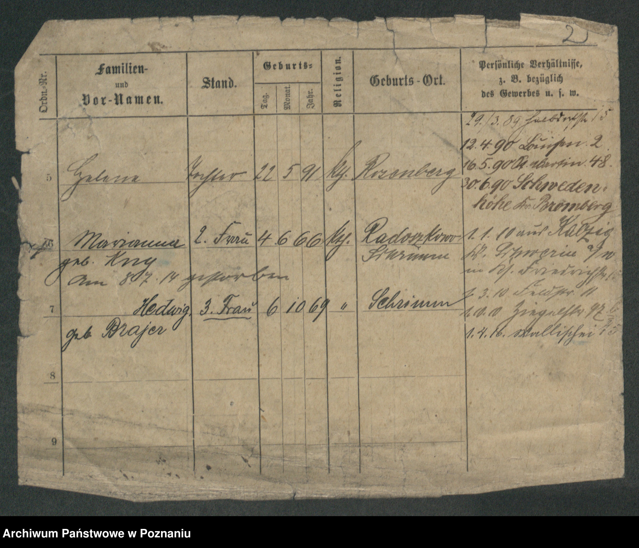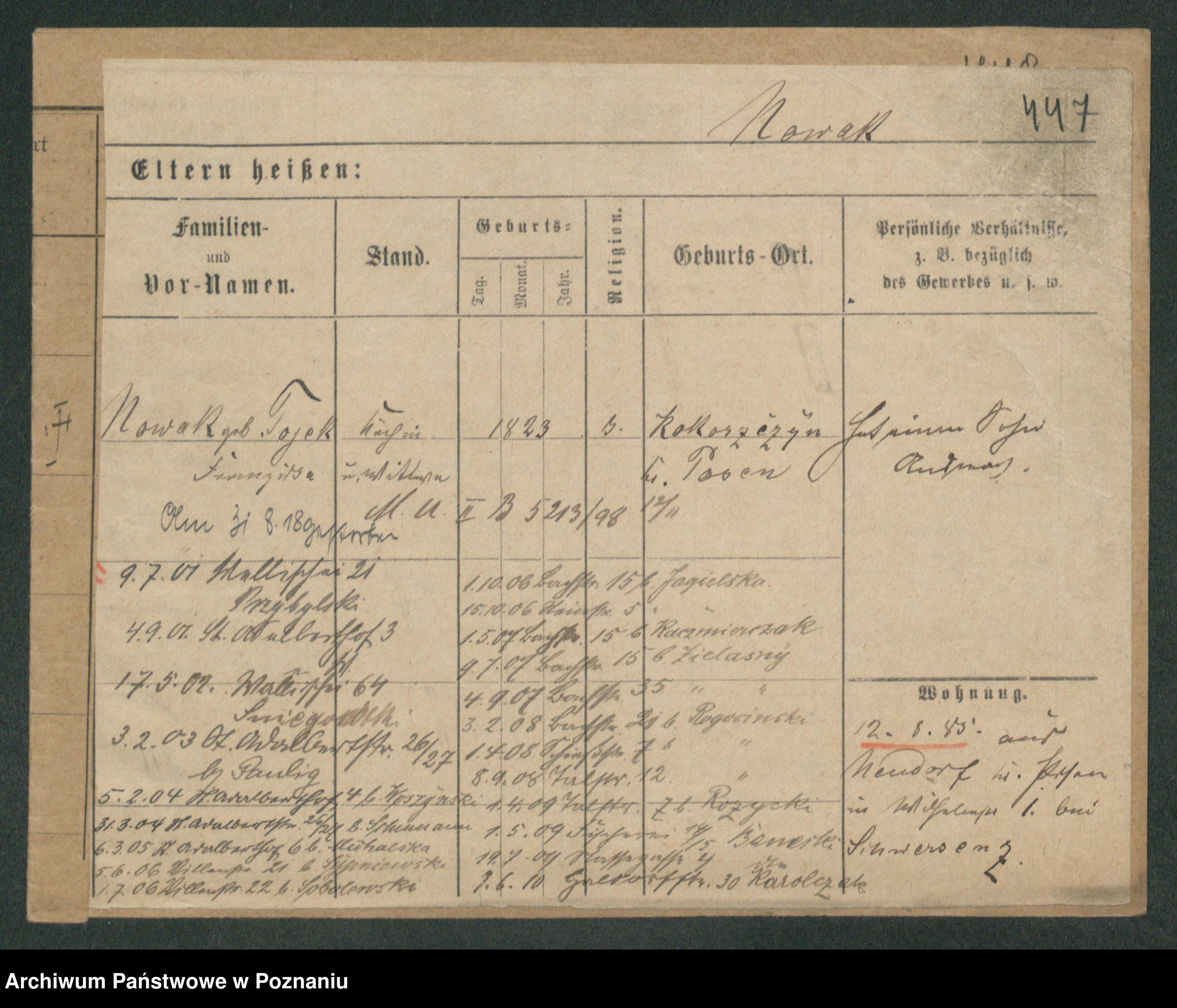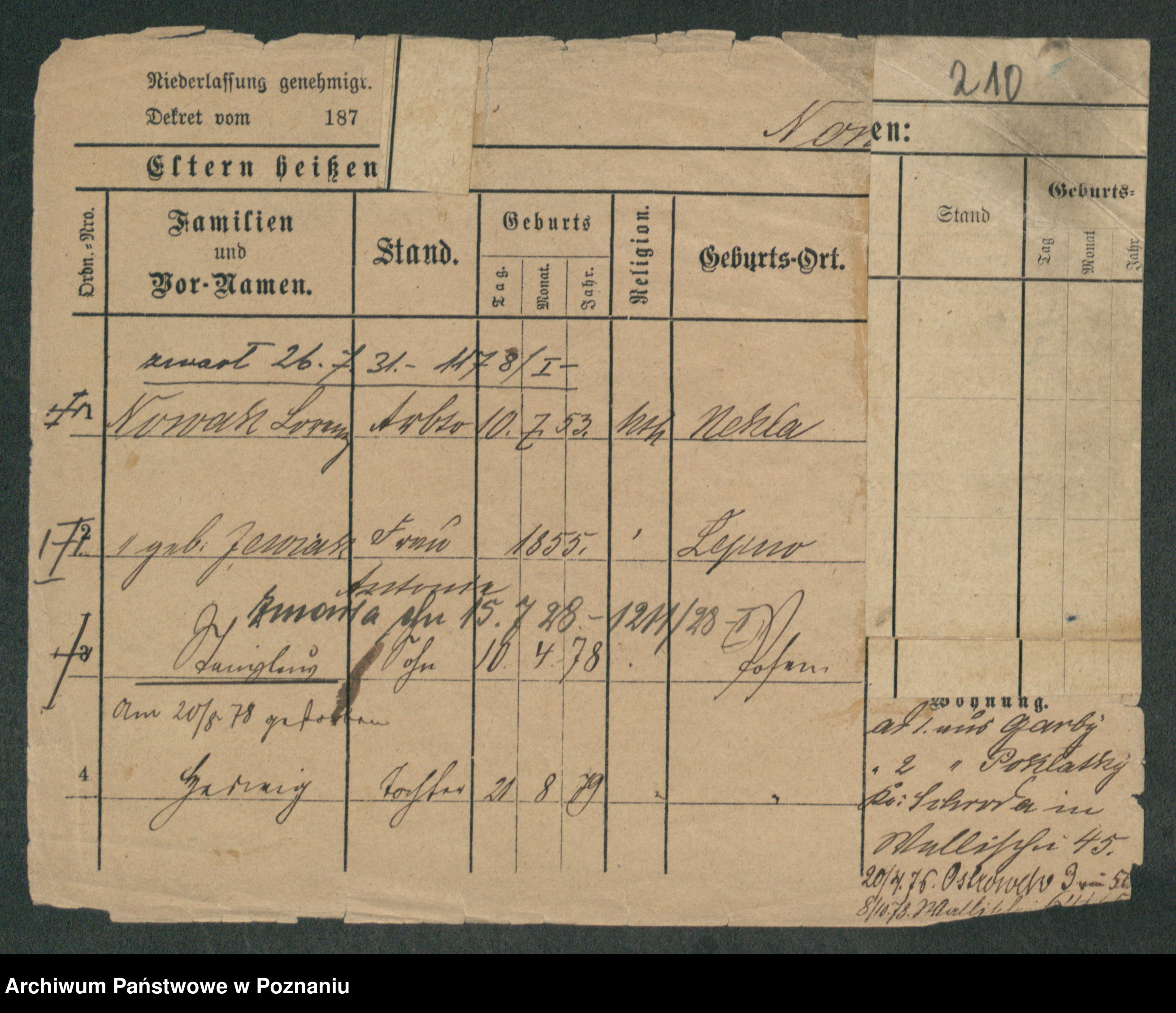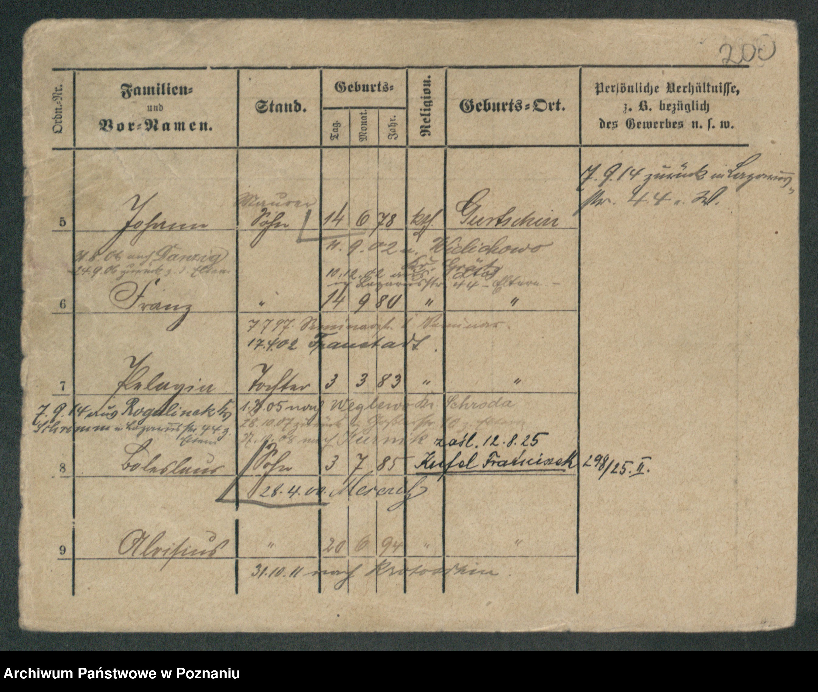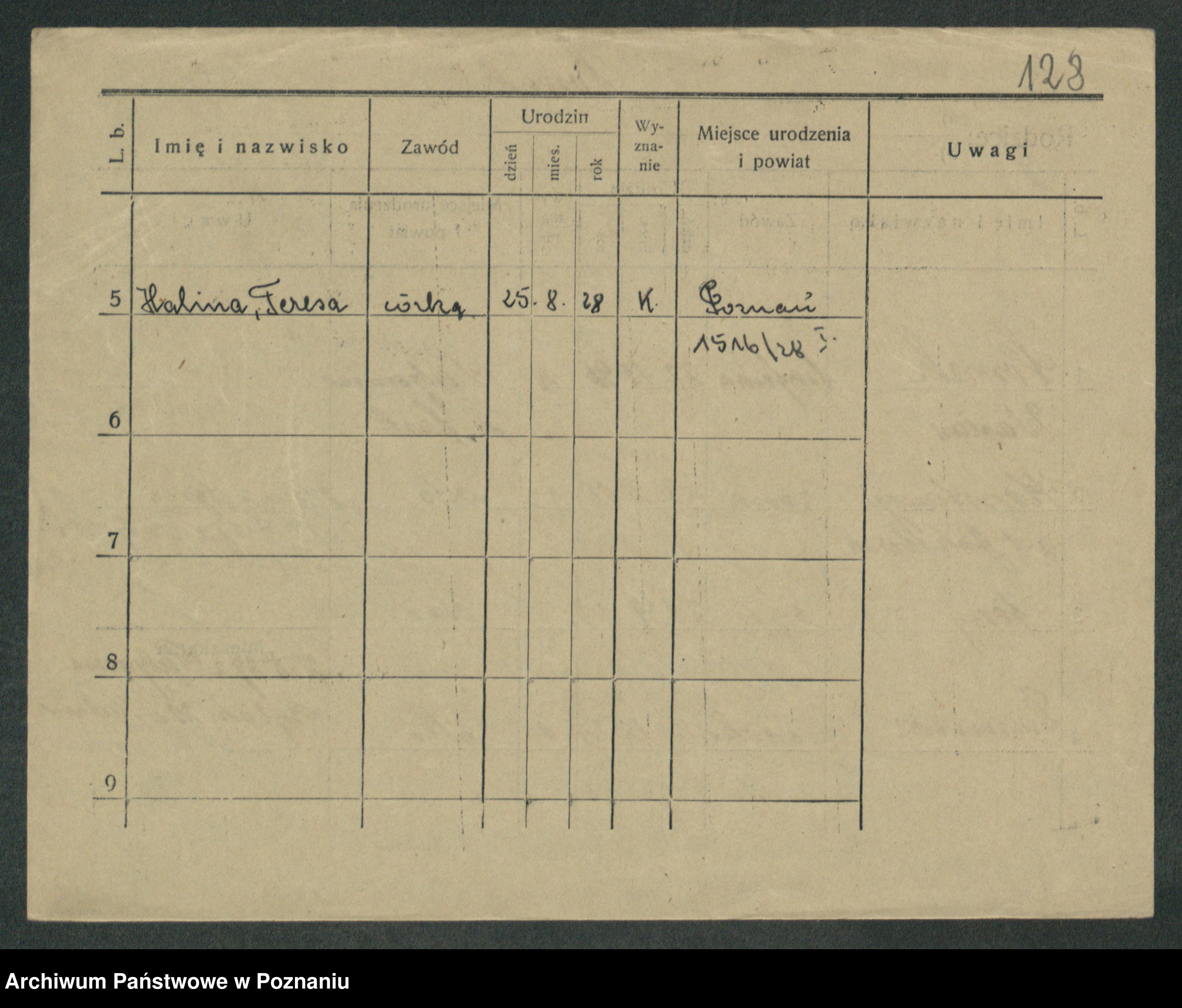 Podgląd karty osobowej dostępny jest po kliknięciu na nazwisko lub ikonkę karty. Można dokonywać powiększenia (ikony na górze) lub przechodzić między kolejnymi skanami (strzałki po bokach).