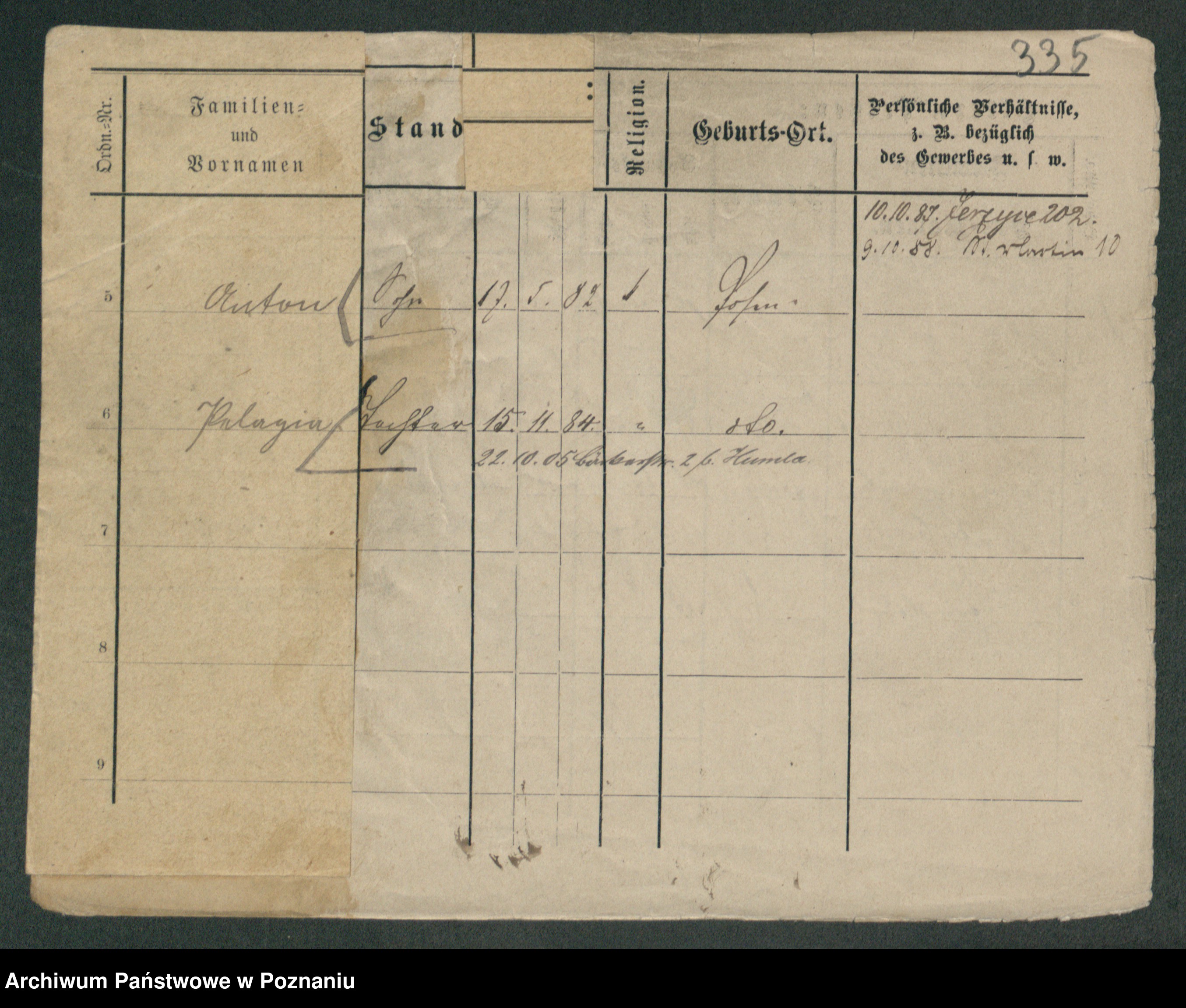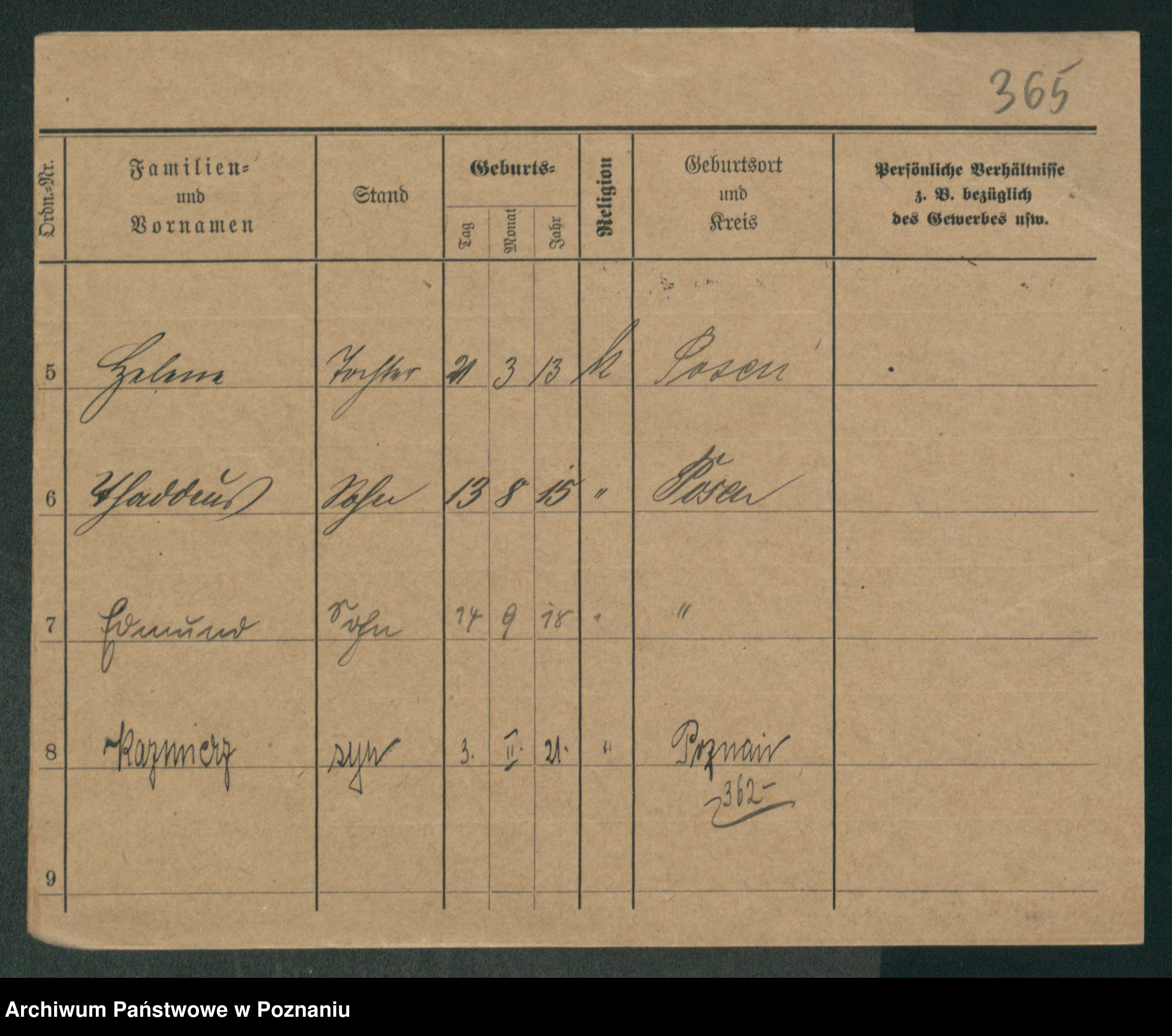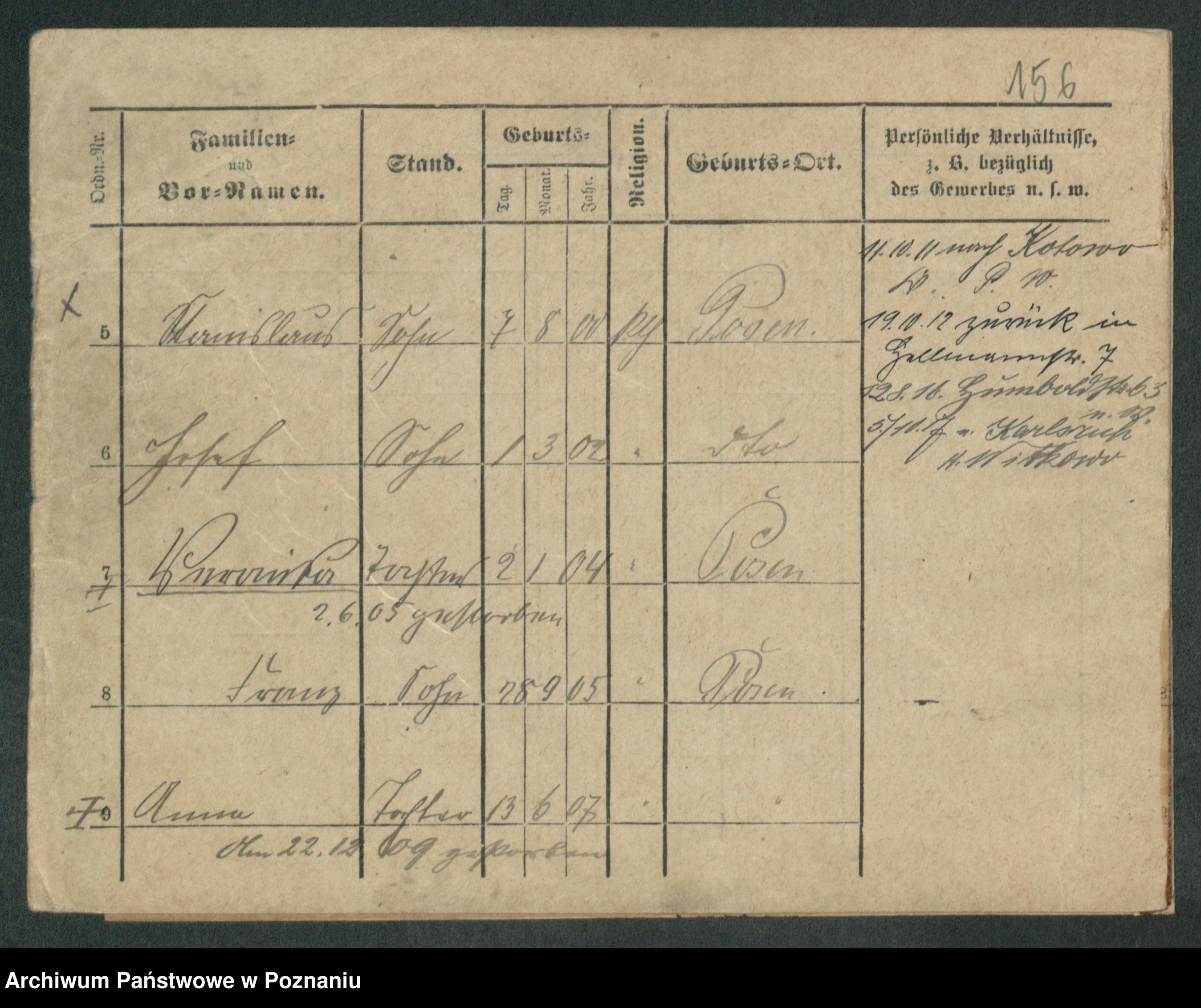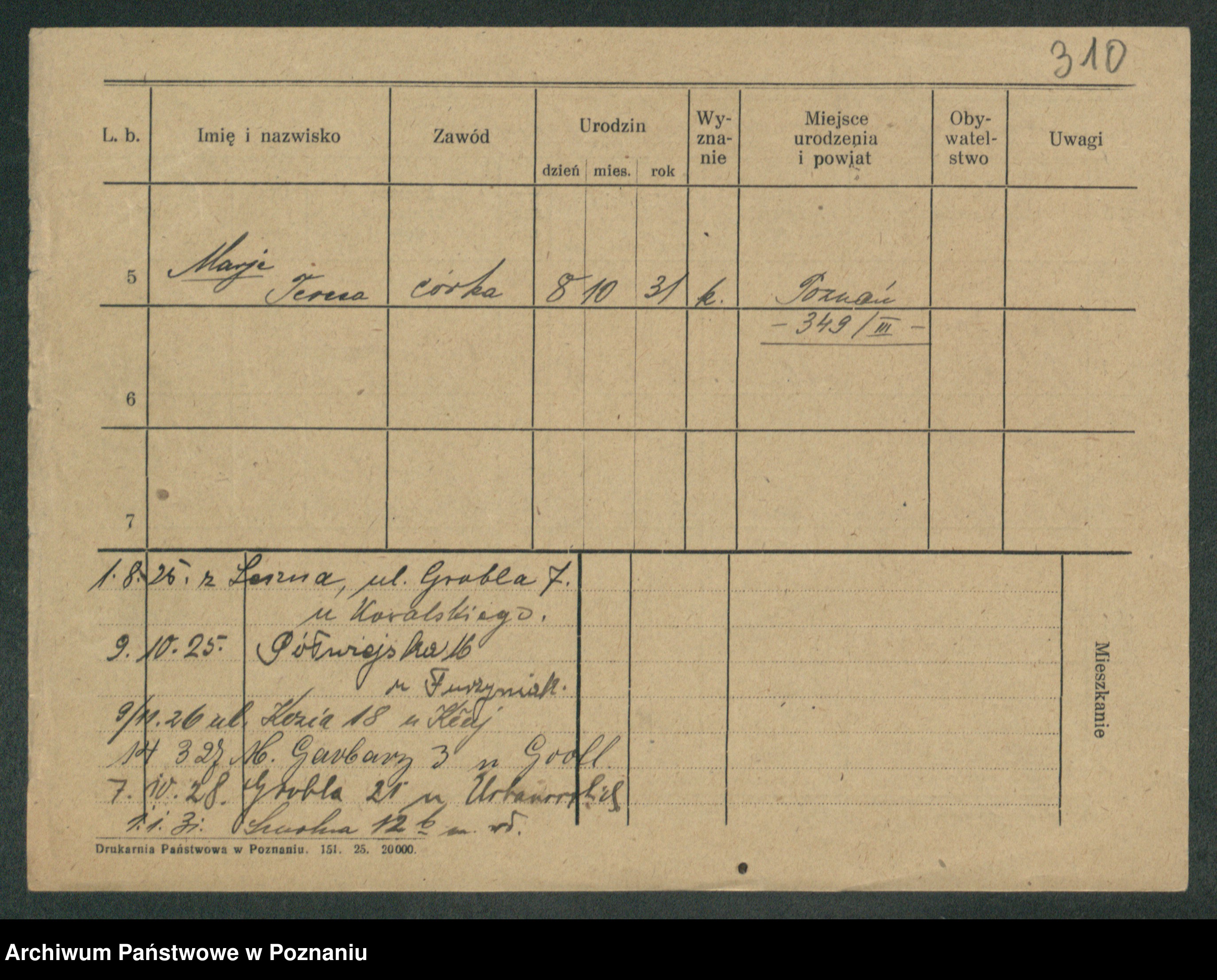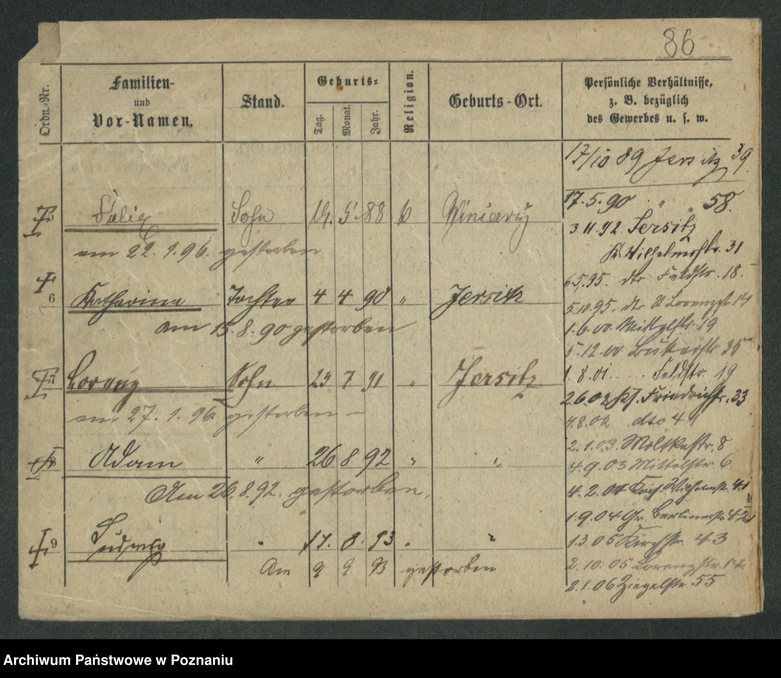 Podgląd karty osobowej dostępny jest po kliknięciu na nazwisko lub ikonkę karty. Można dokonywać powiększenia (ikony na górze) lub przechodzić między kolejnymi skanami (strzałki po bokach).
