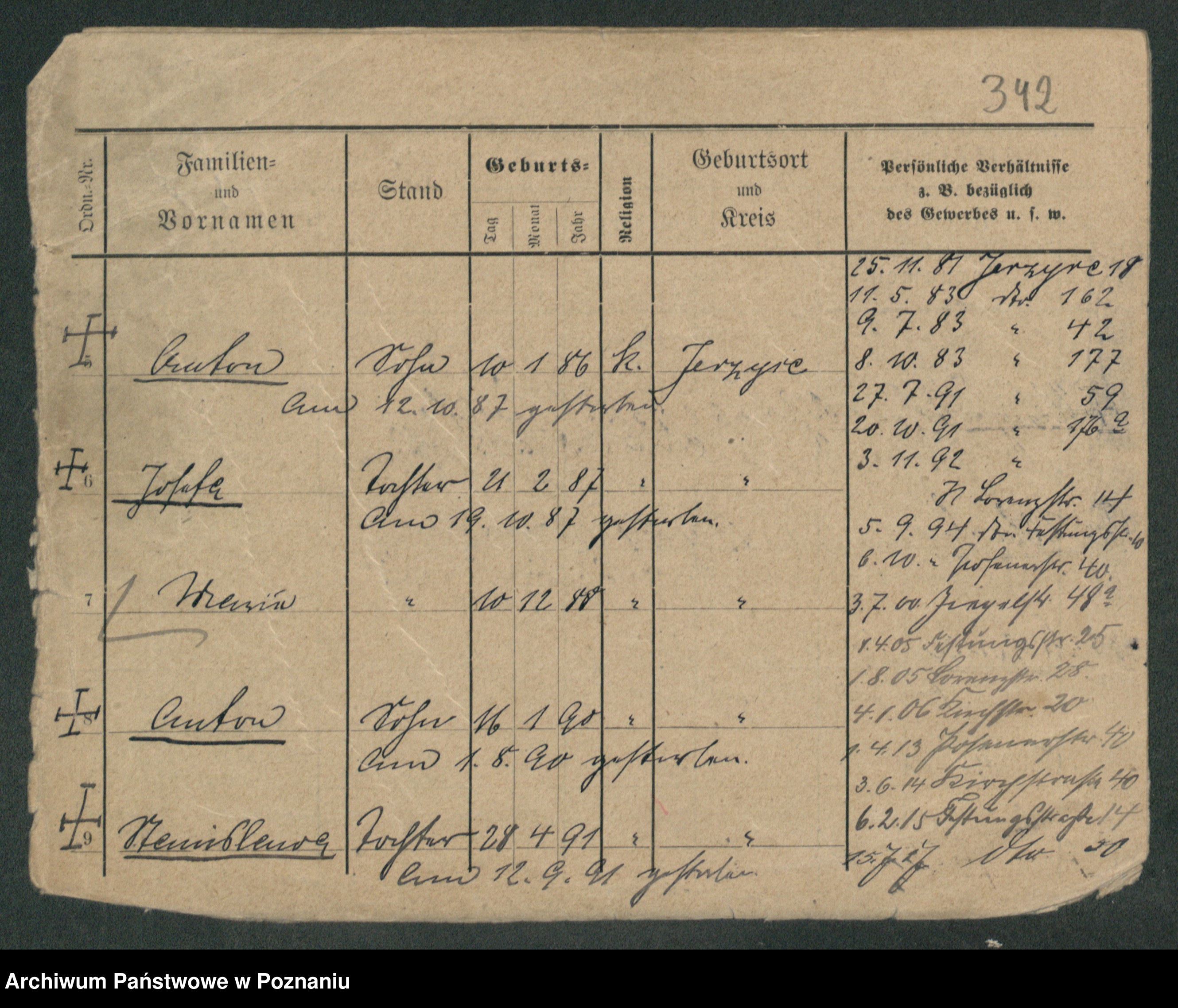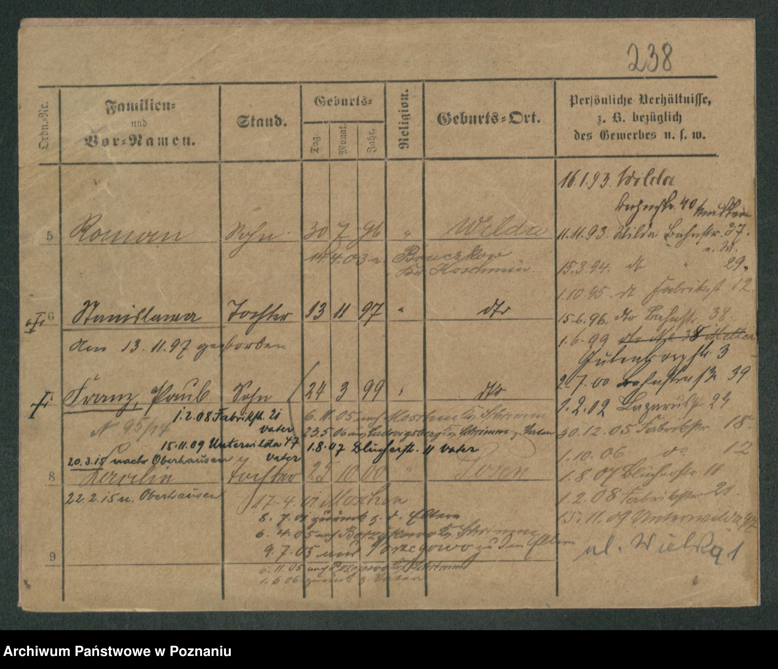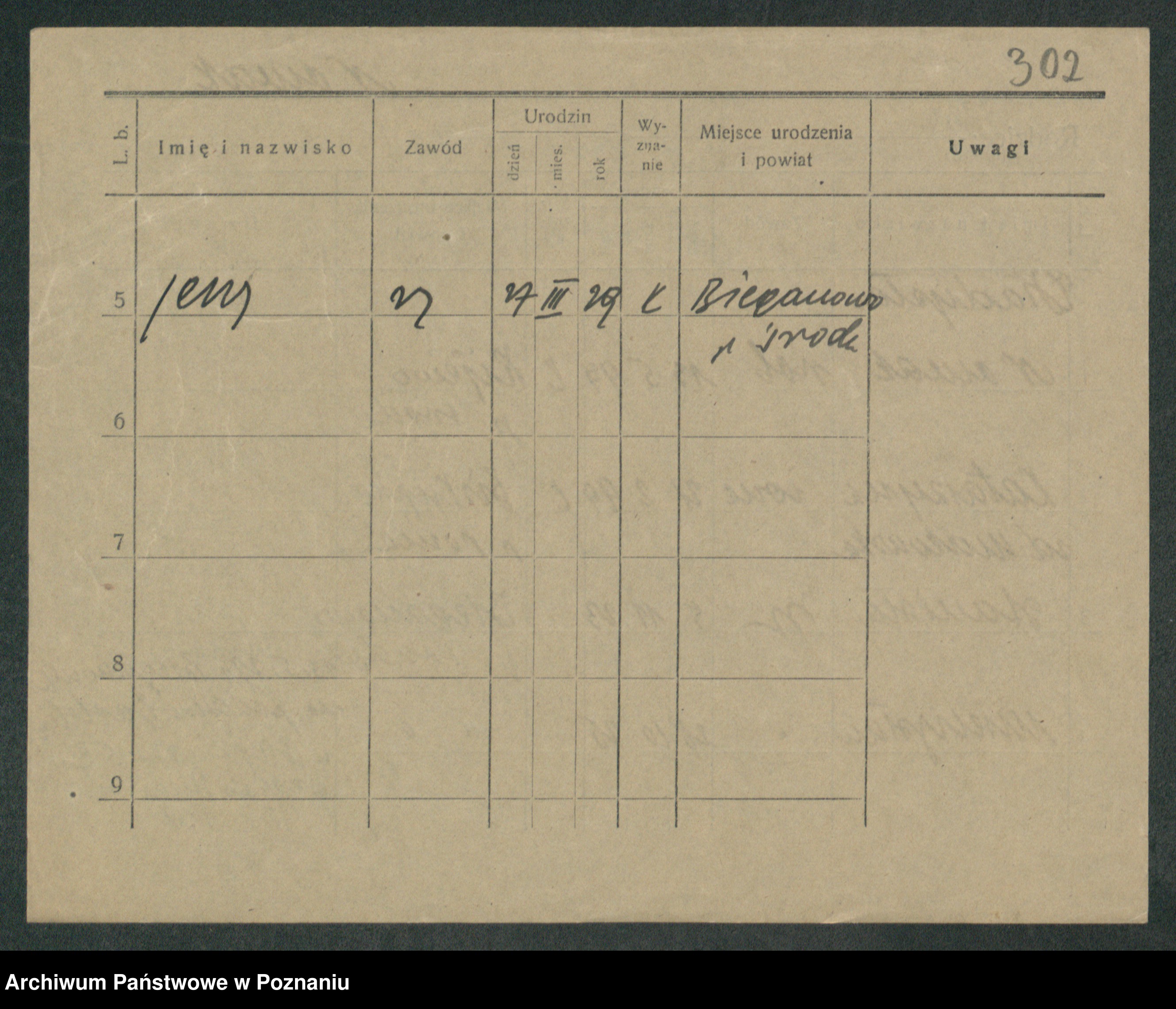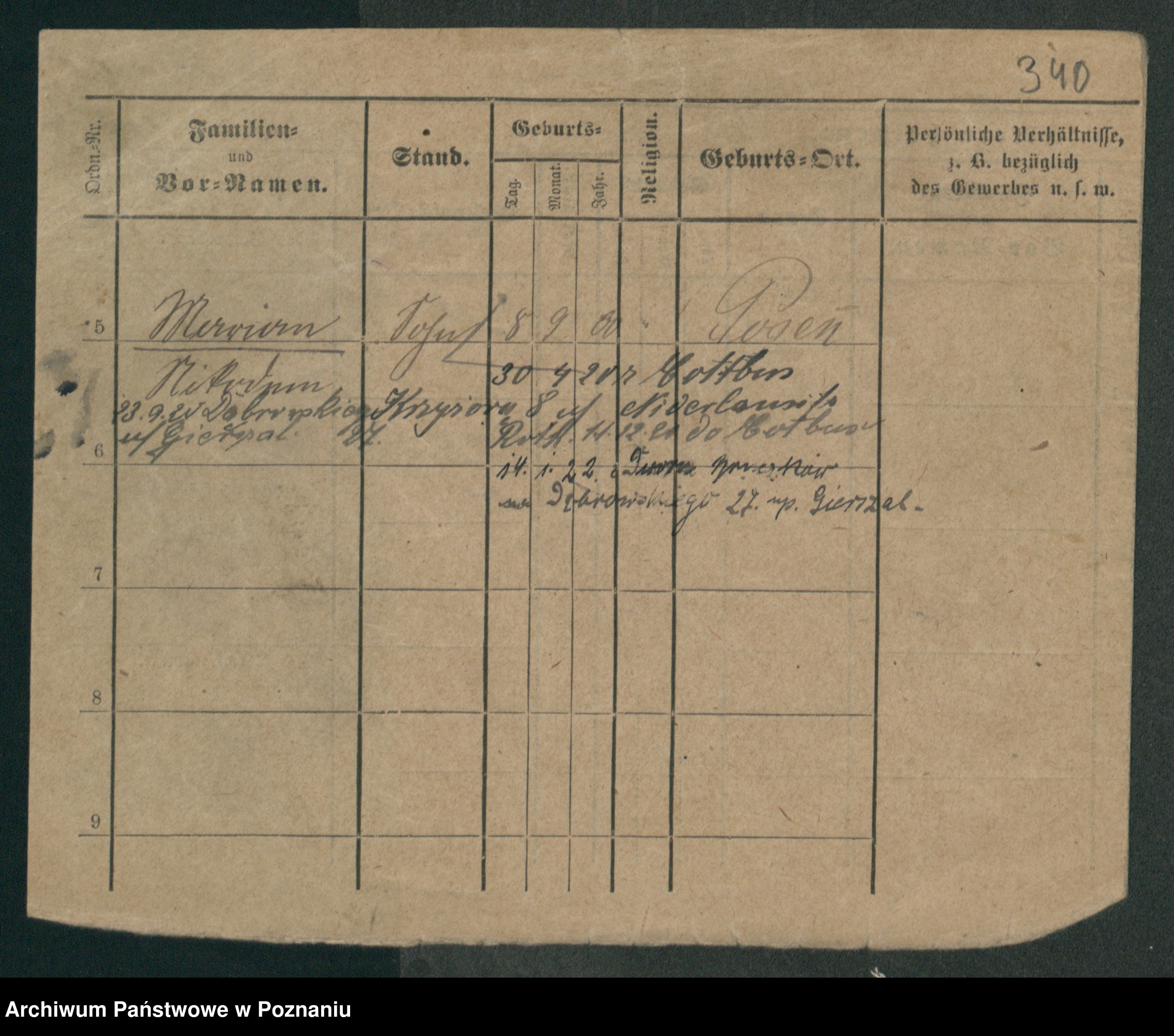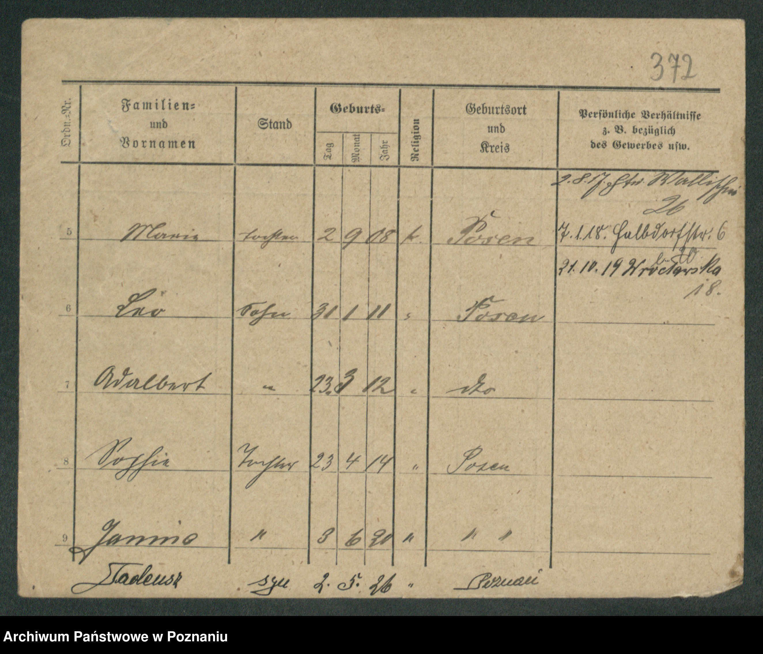 Podgląd karty osobowej dostępny jest po kliknięciu na nazwisko lub ikonkę karty. Można dokonywać powiększenia (ikony na górze) lub przechodzić między kolejnymi skanami (strzałki po bokach).