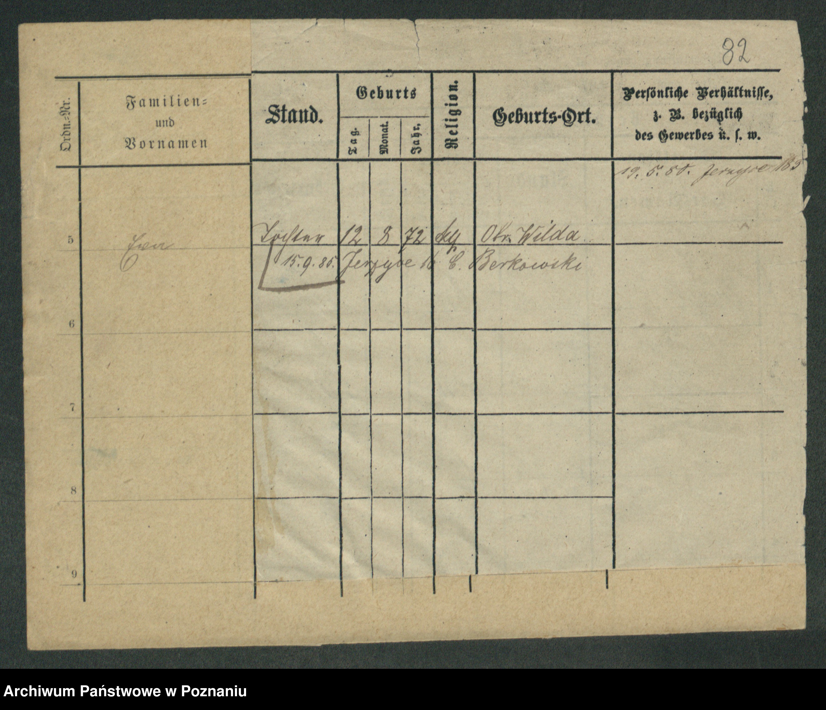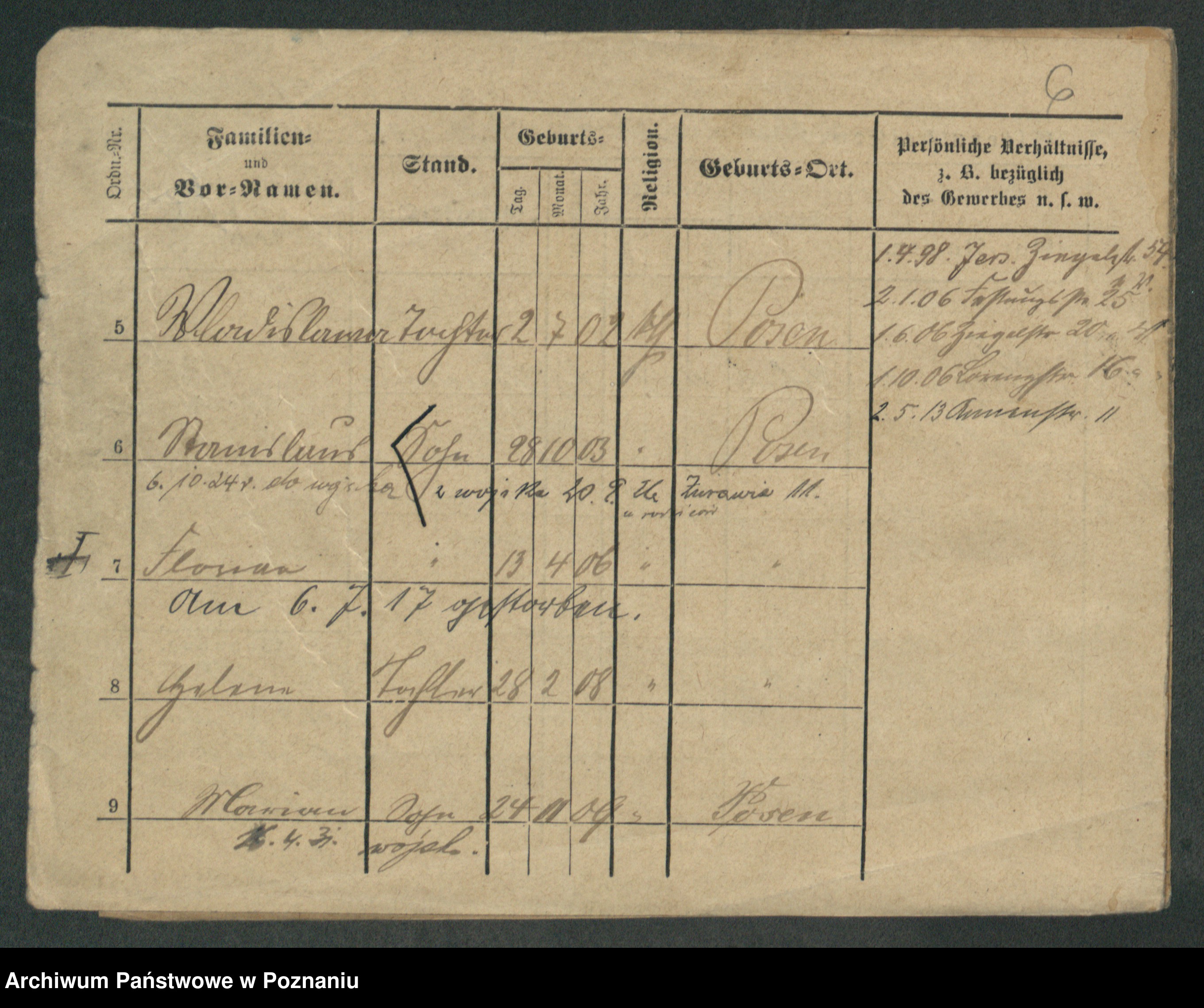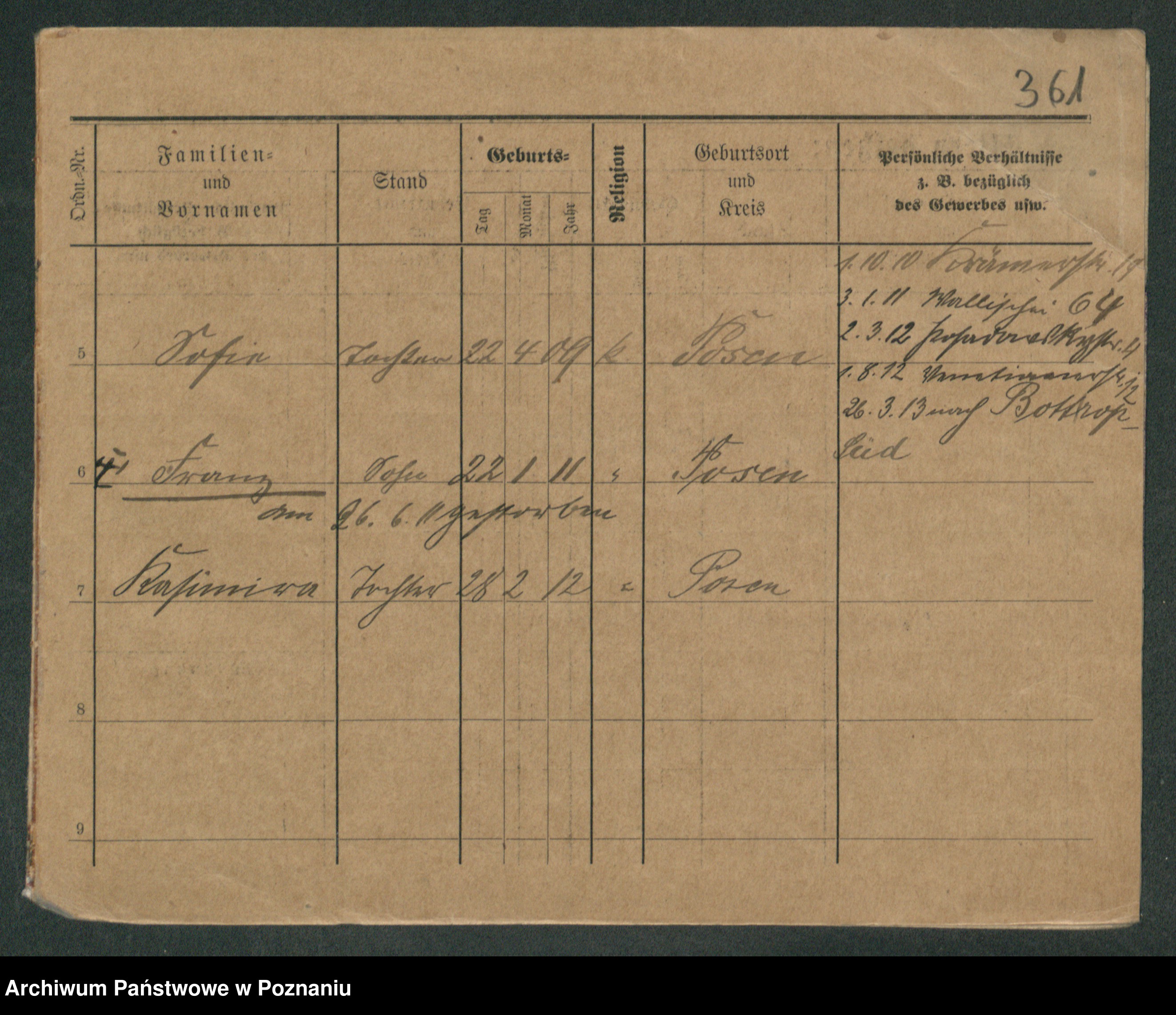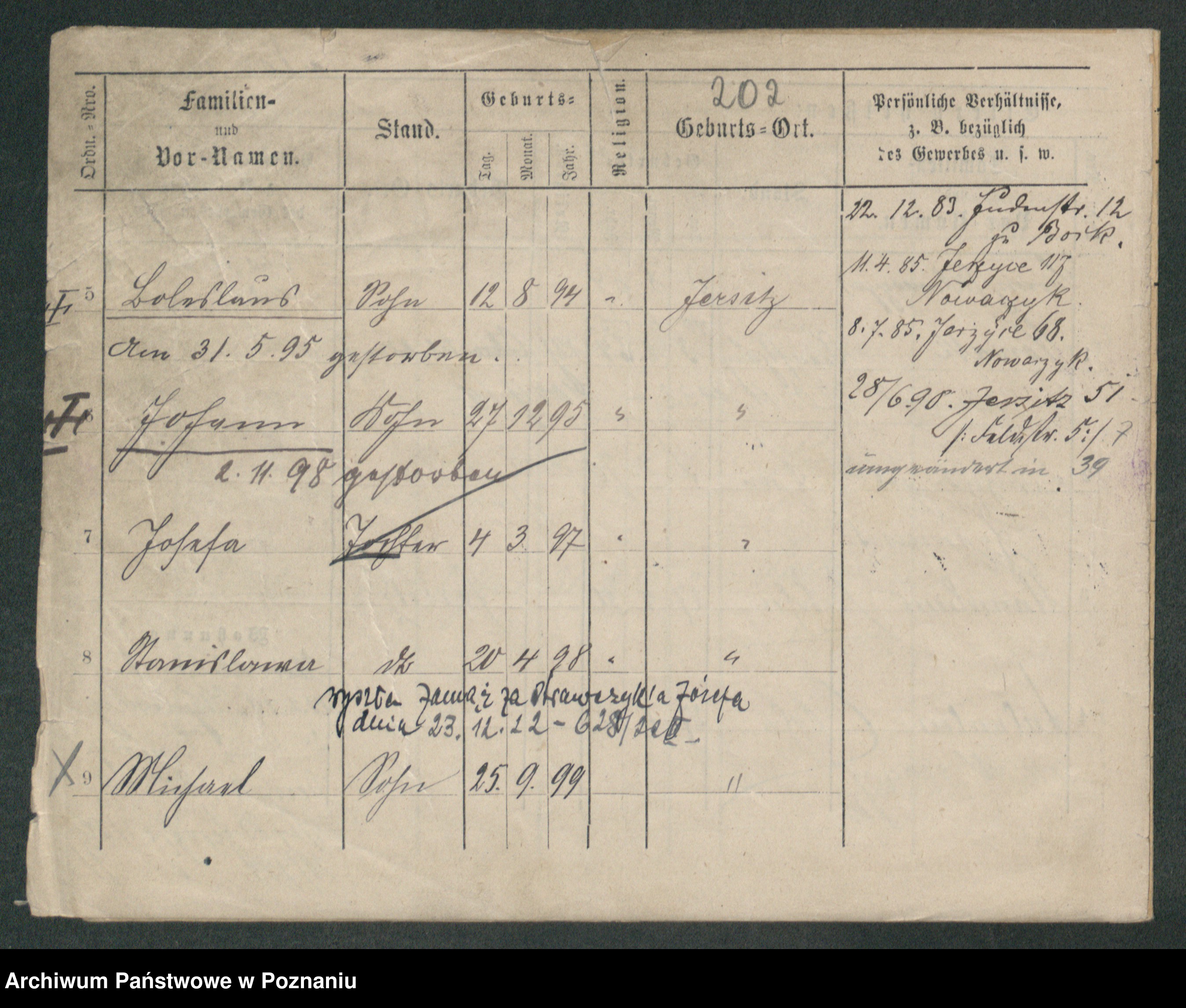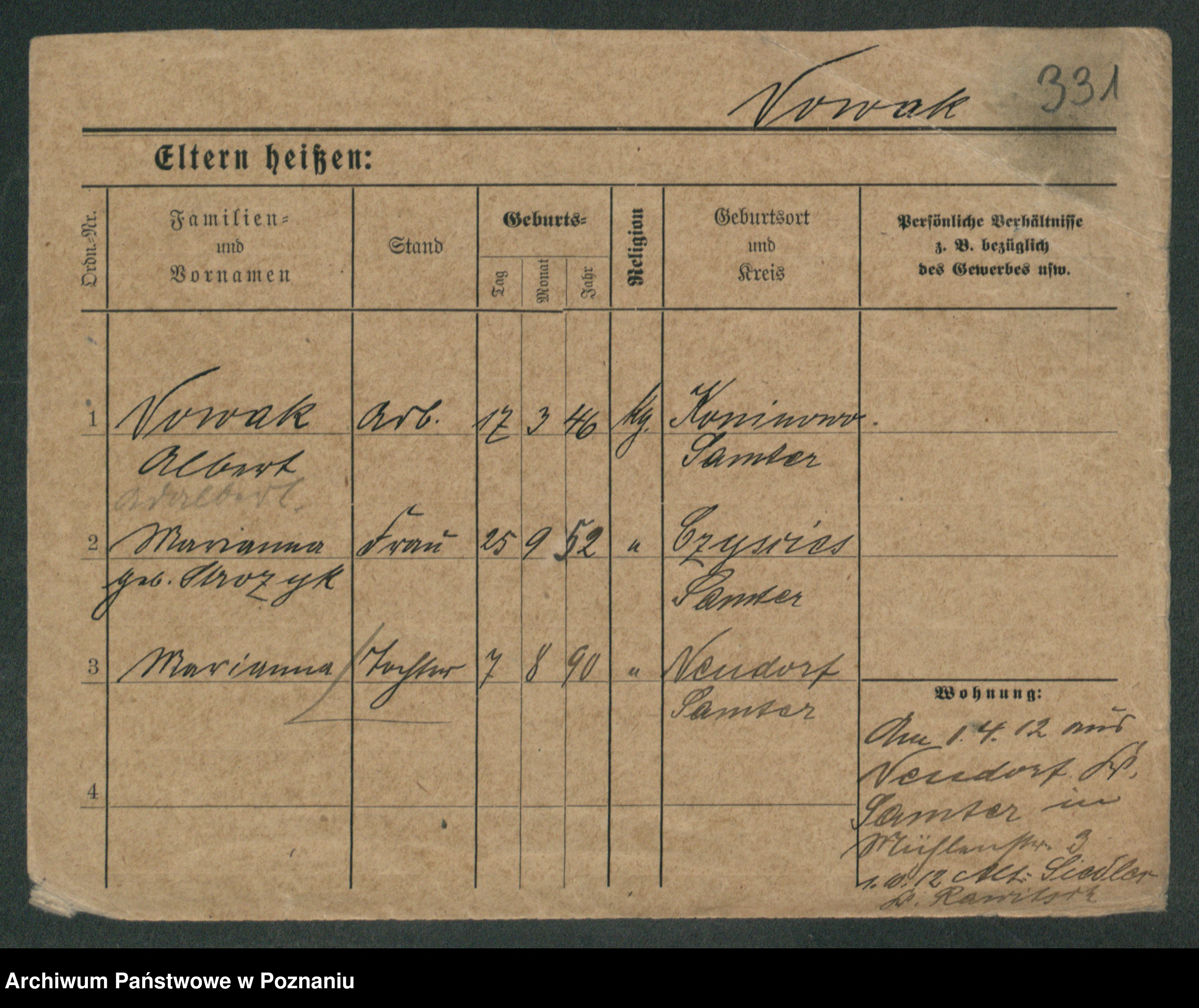 Podgląd karty osobowej dostępny jest po kliknięciu na nazwisko lub ikonkę karty. Można dokonywać powiększenia (ikony na górze) lub przechodzić między kolejnymi skanami (strzałki po bokach).