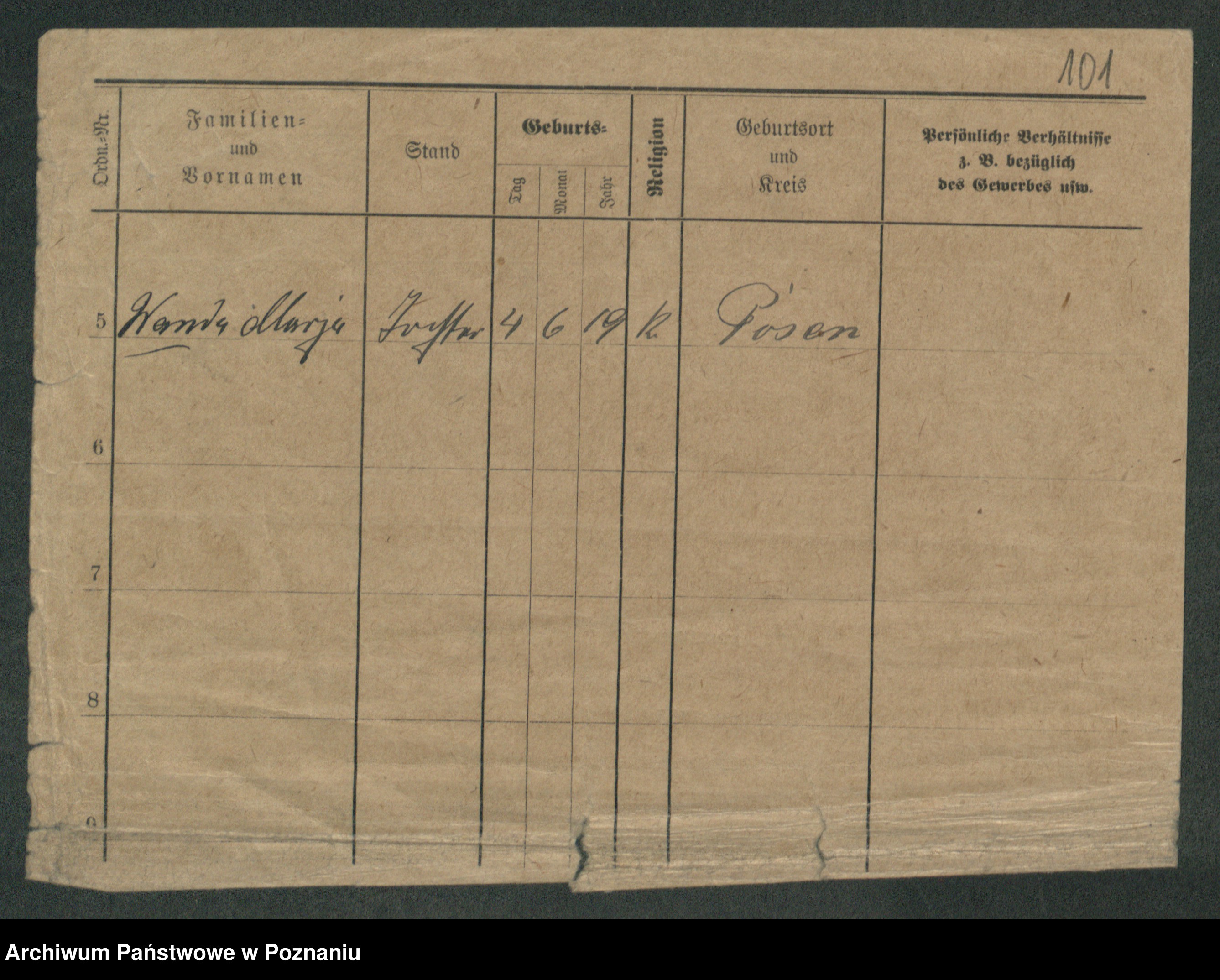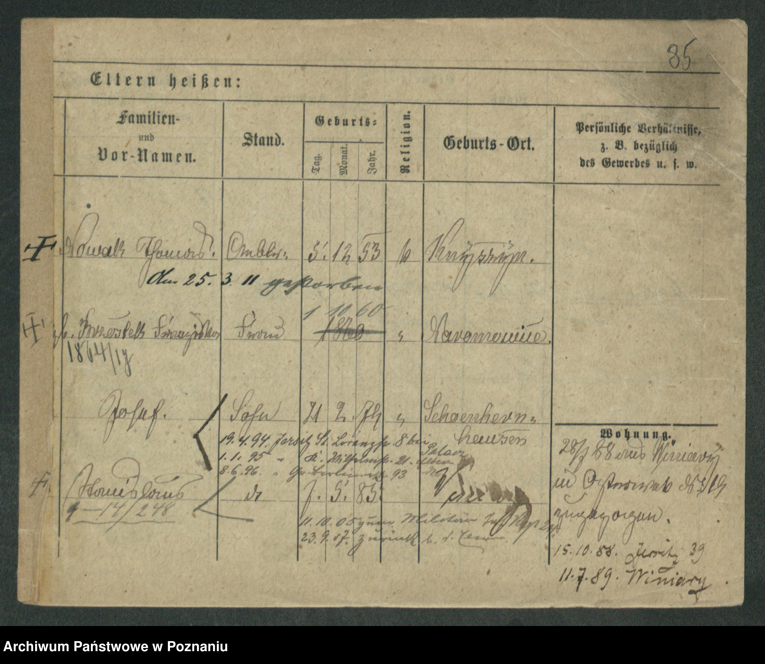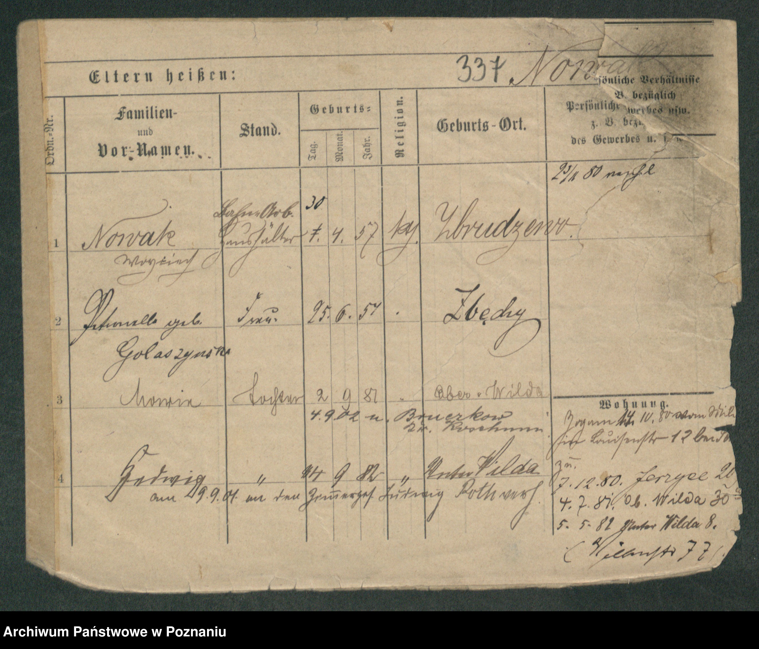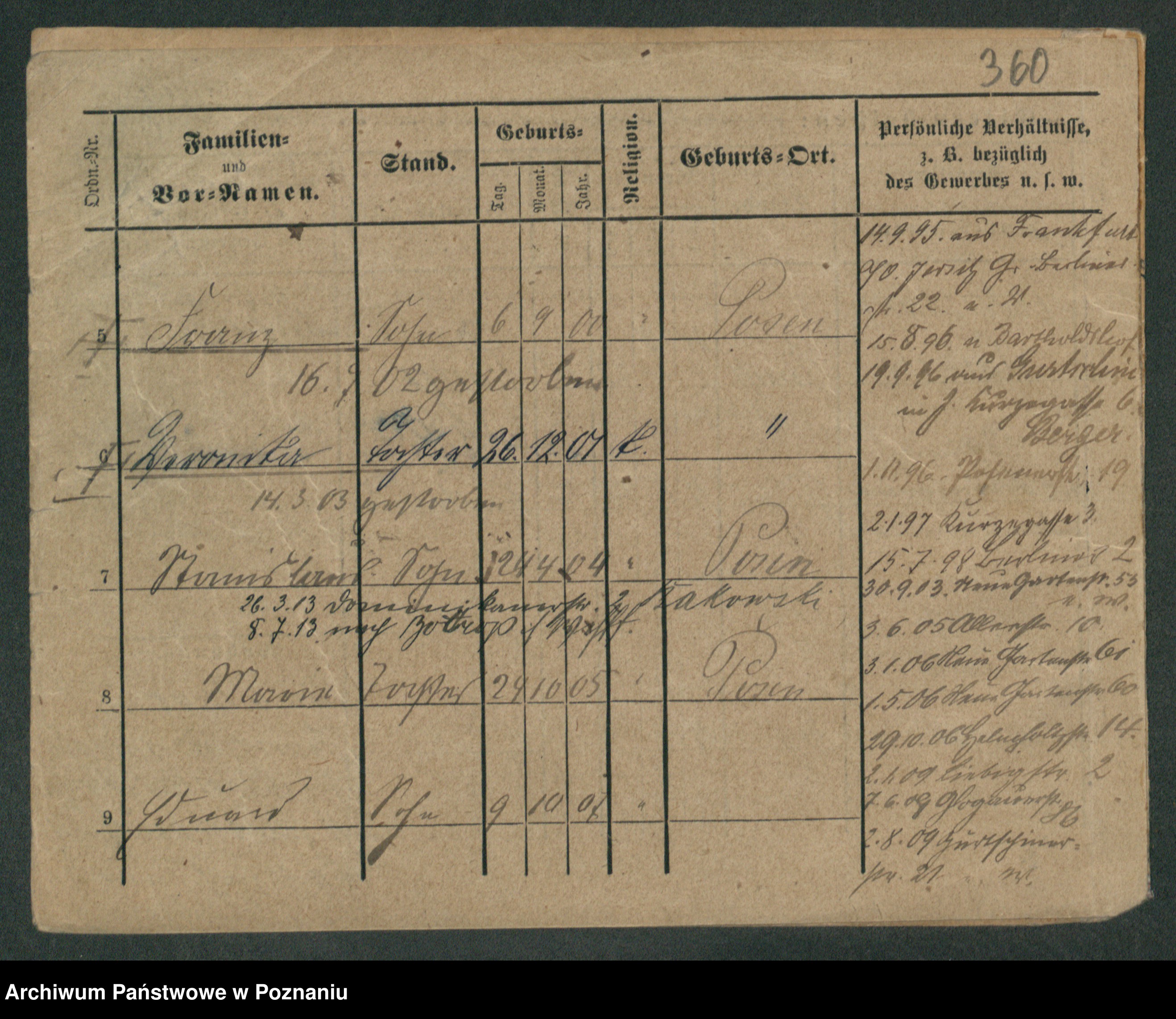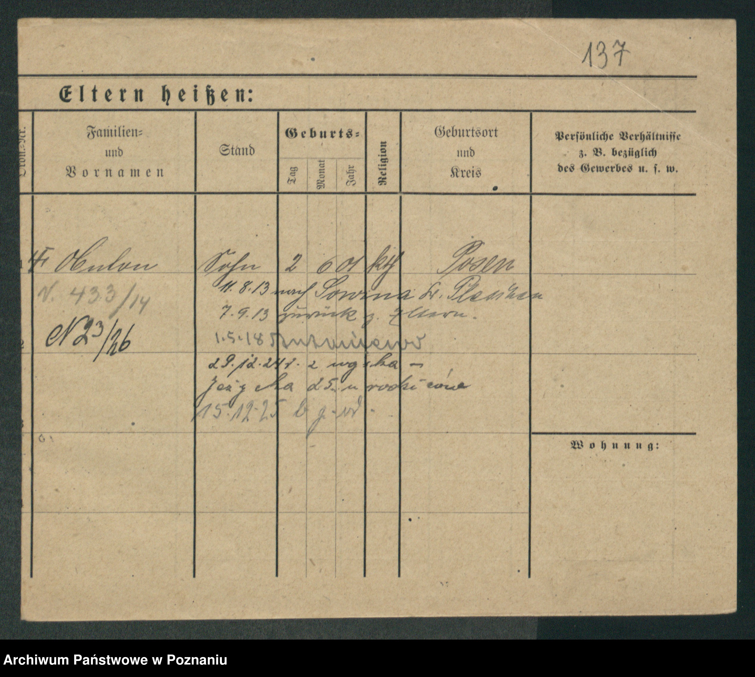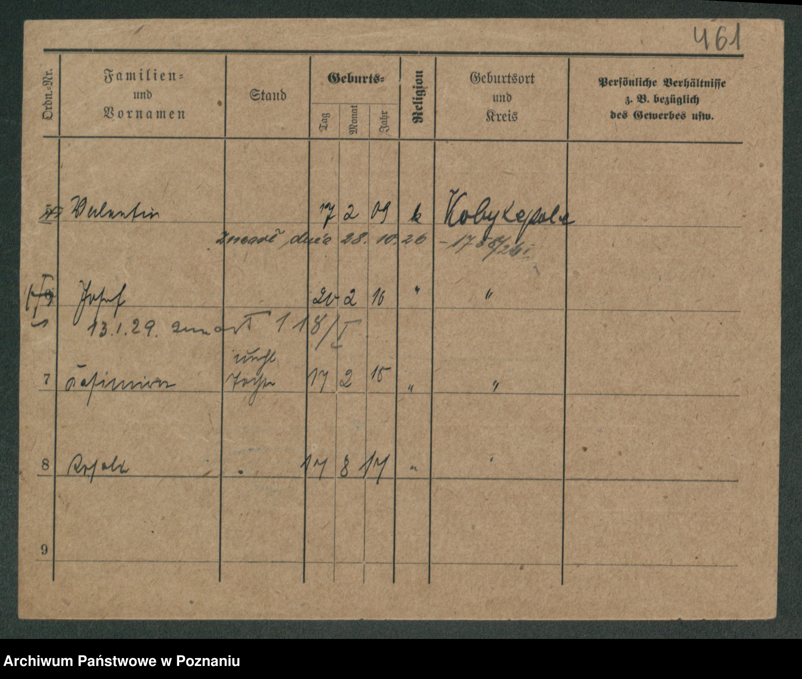 Podgląd karty osobowej dostępny jest po kliknięciu na nazwisko lub ikonkę karty. Można dokonywać powiększenia (ikony na górze) lub przechodzić między kolejnymi skanami (strzałki po bokach).