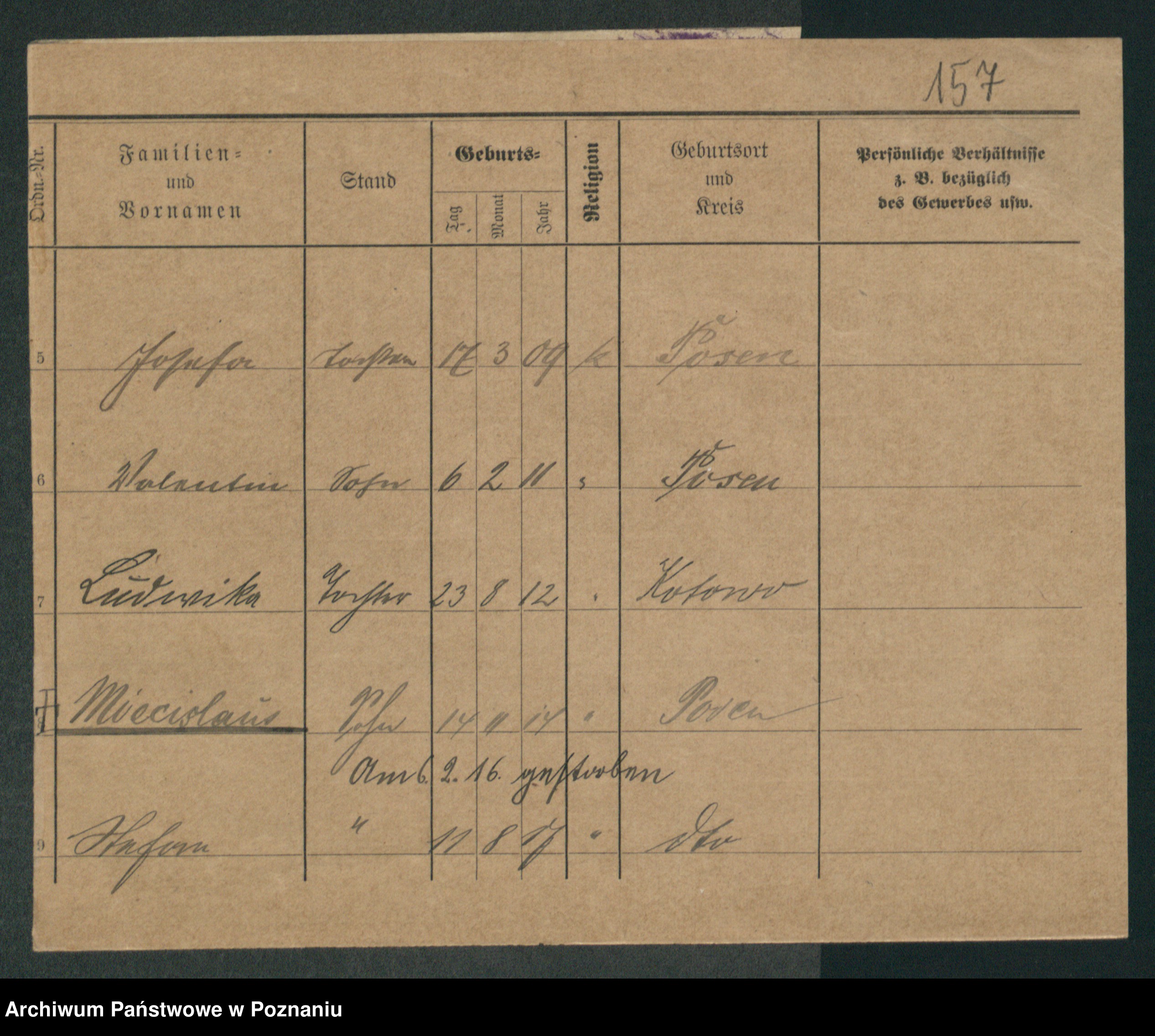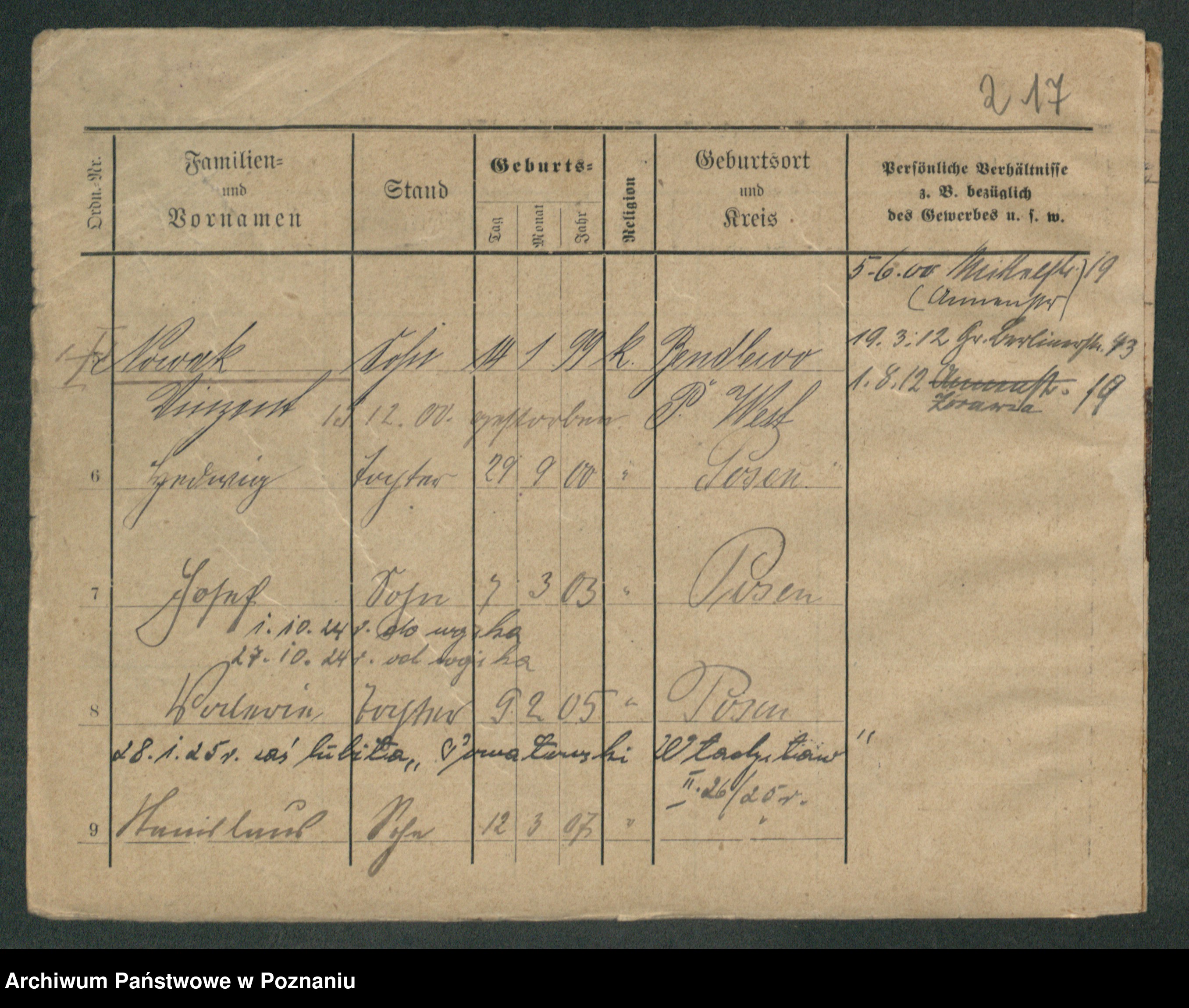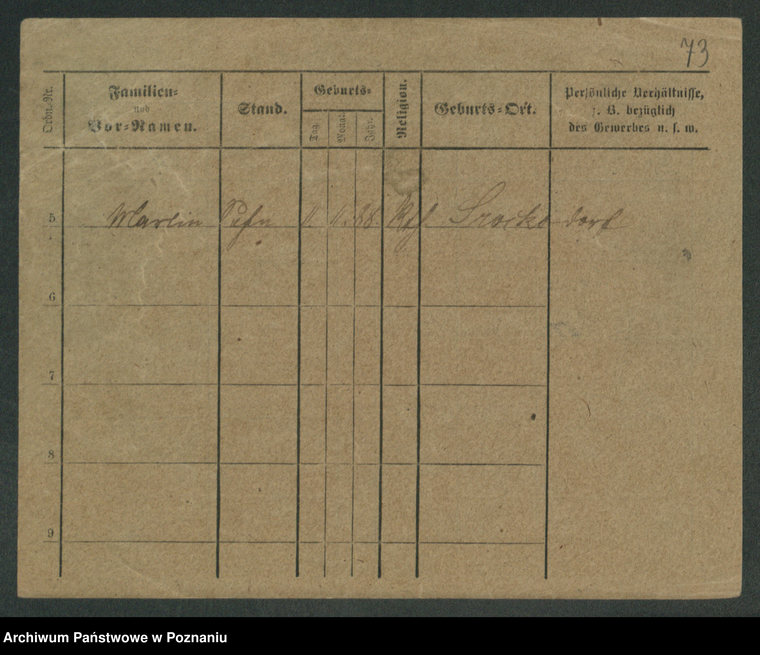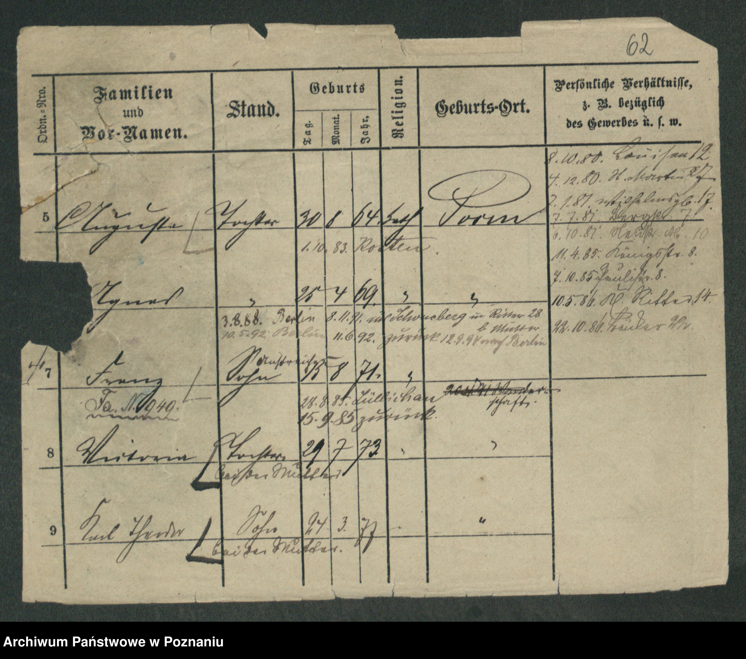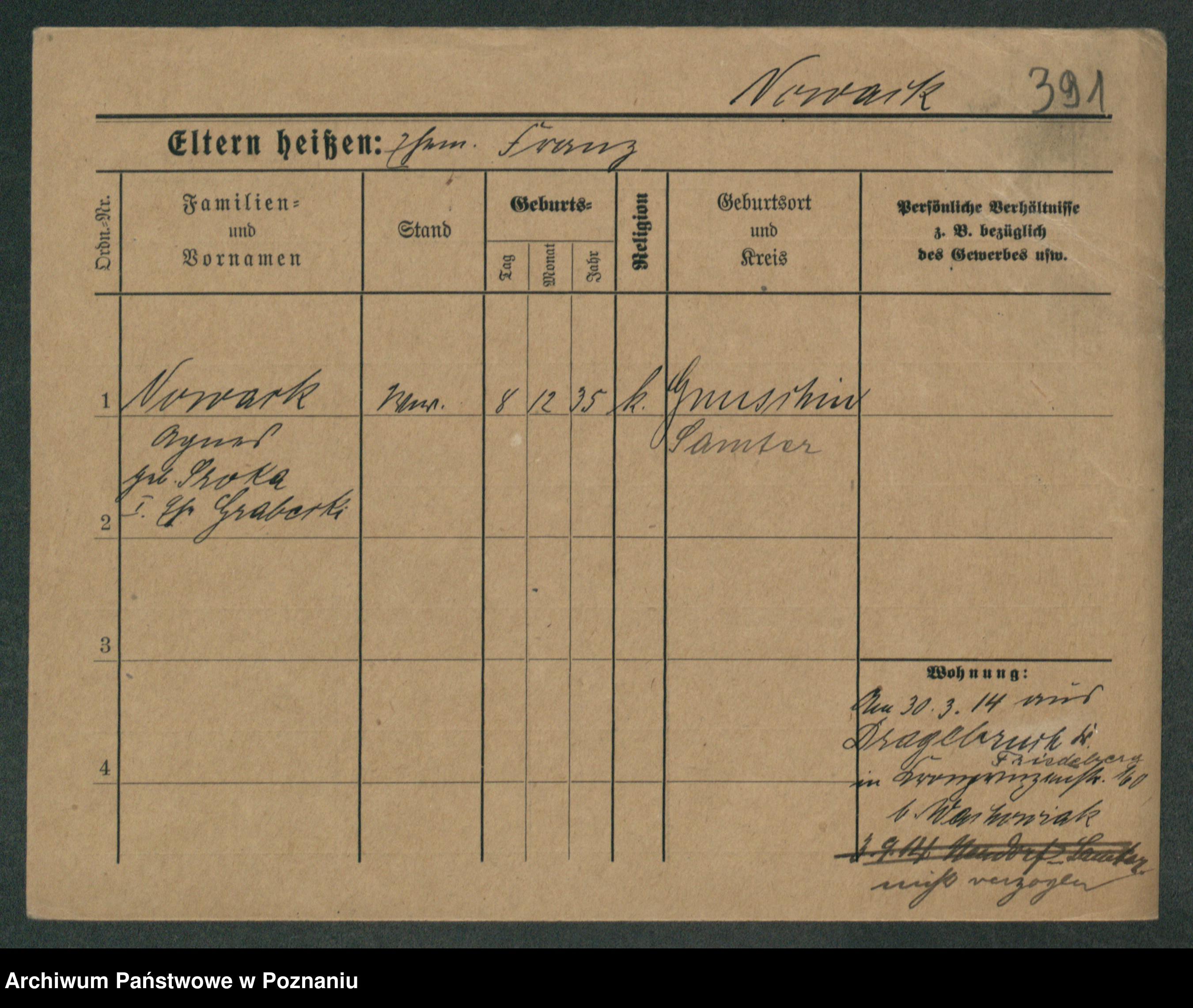 Podgląd karty osobowej dostępny jest po kliknięciu na nazwisko lub ikonkę karty. Można dokonywać powiększenia (ikony na górze) lub przechodzić między kolejnymi skanami (strzałki po bokach).