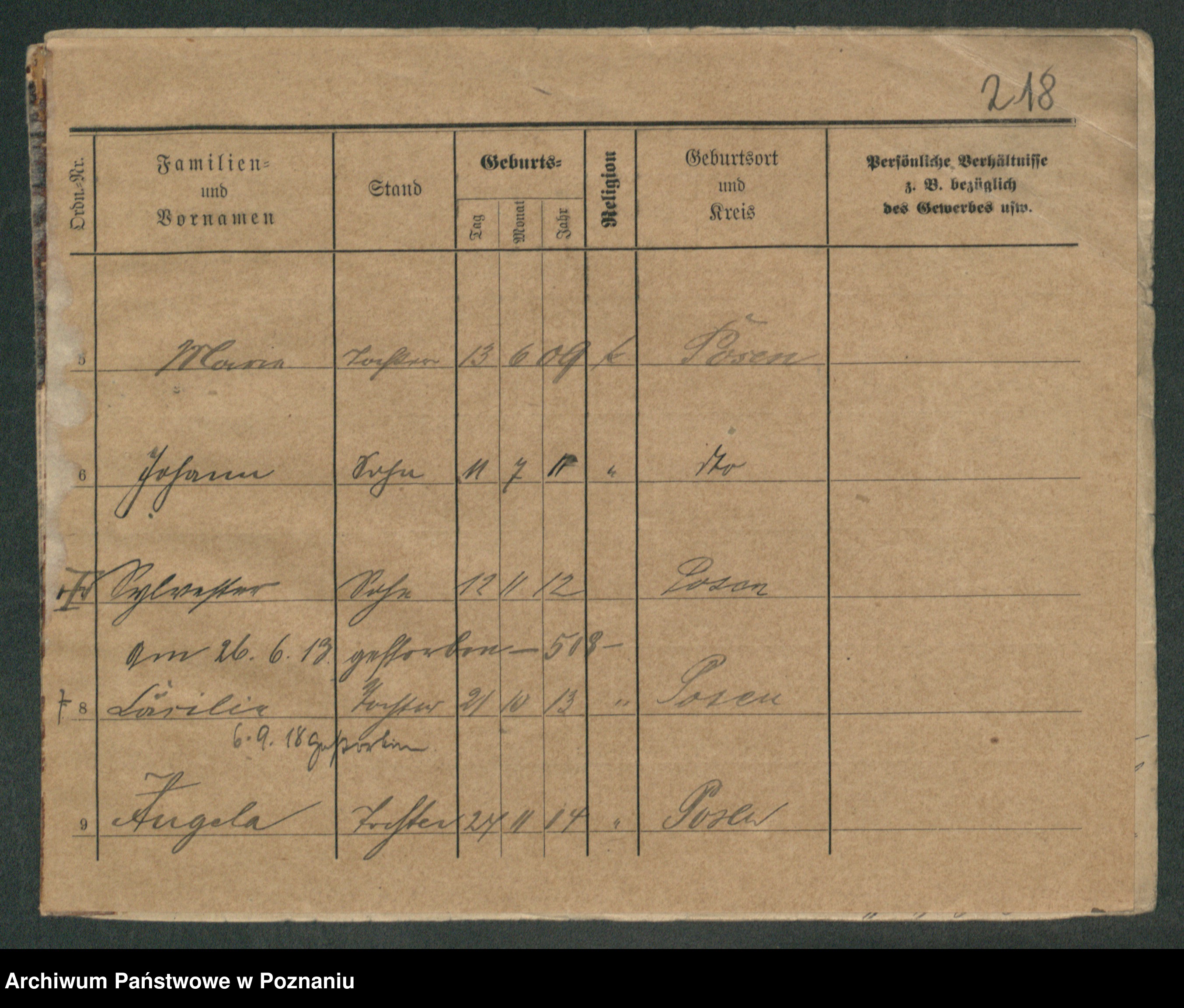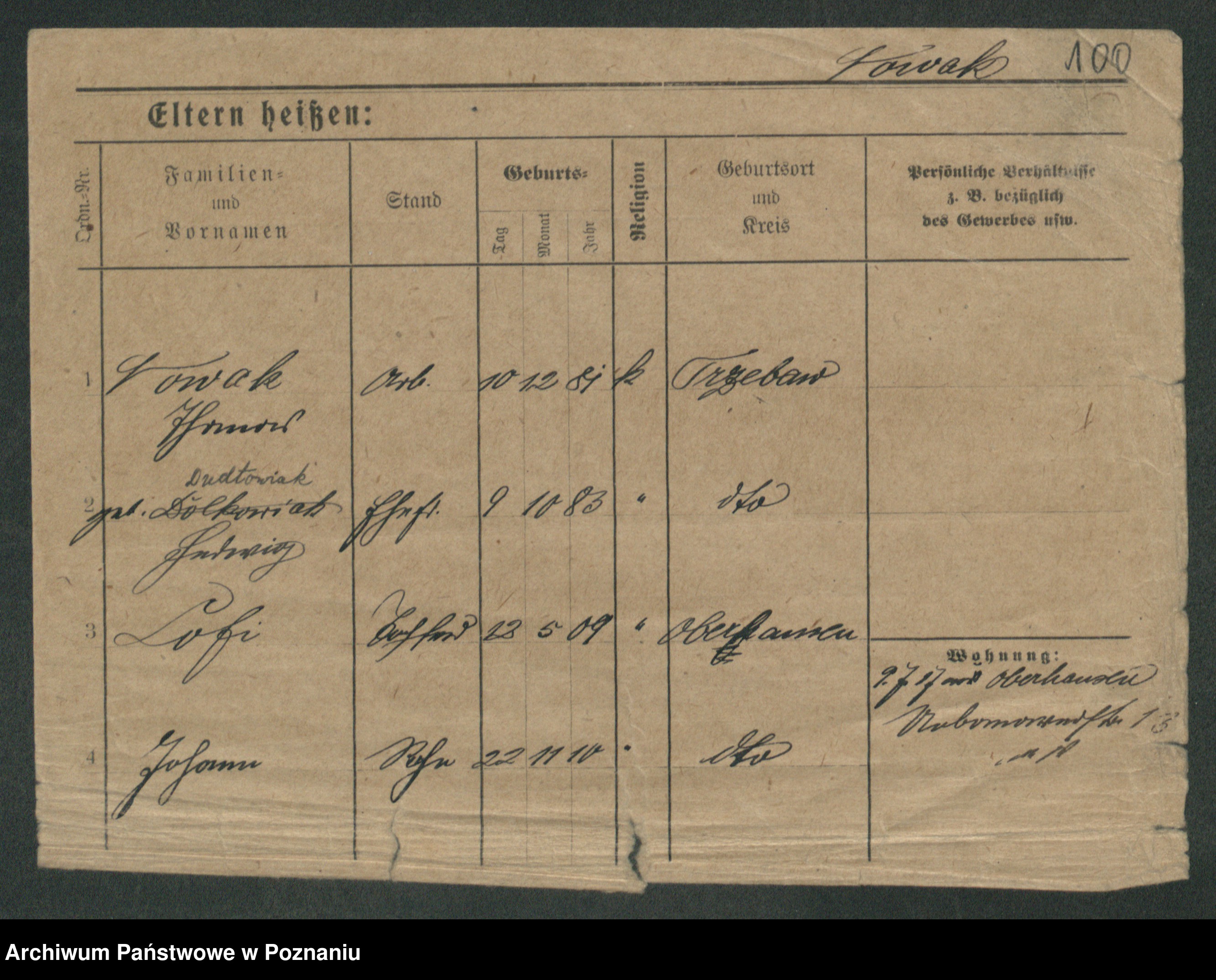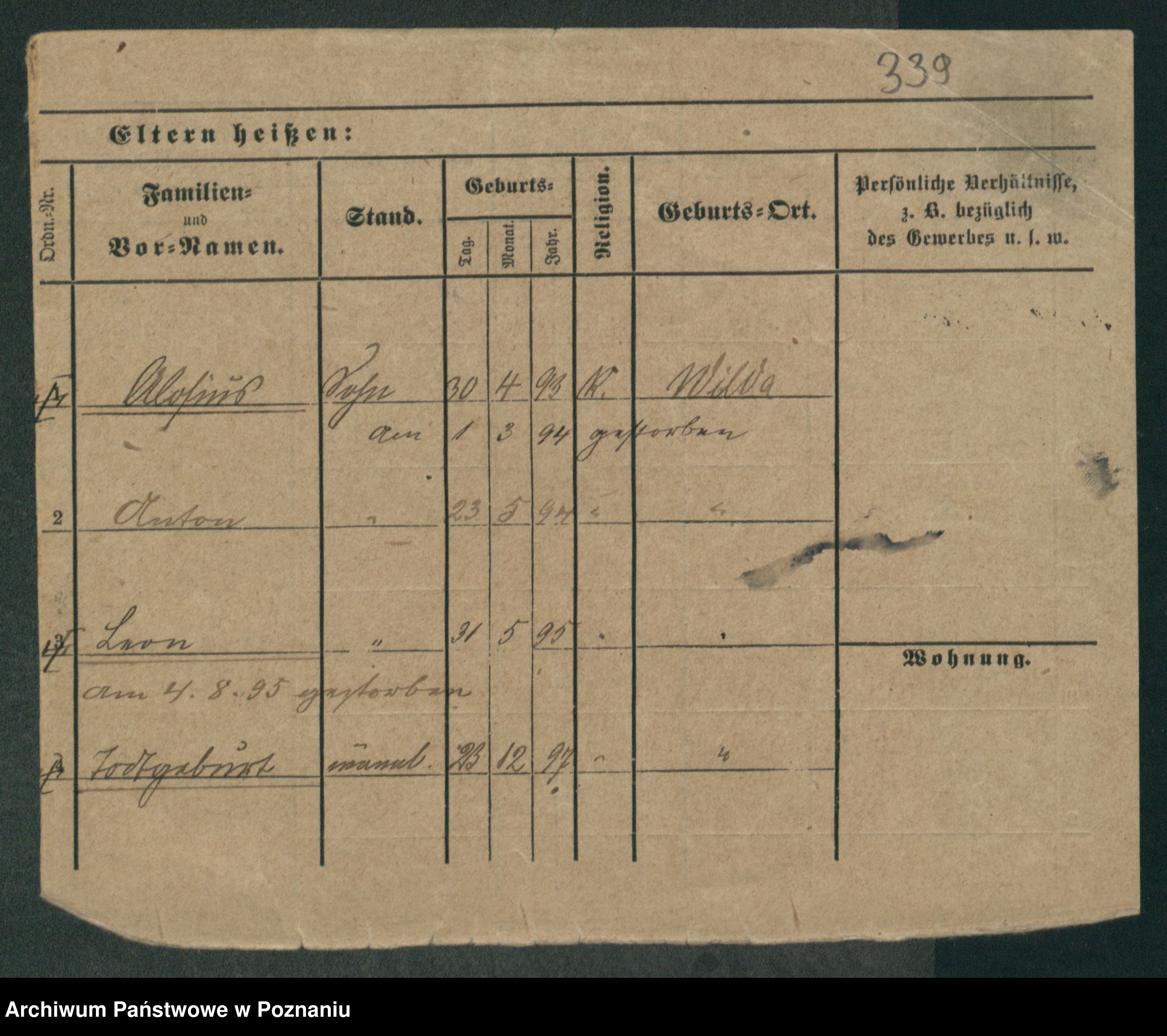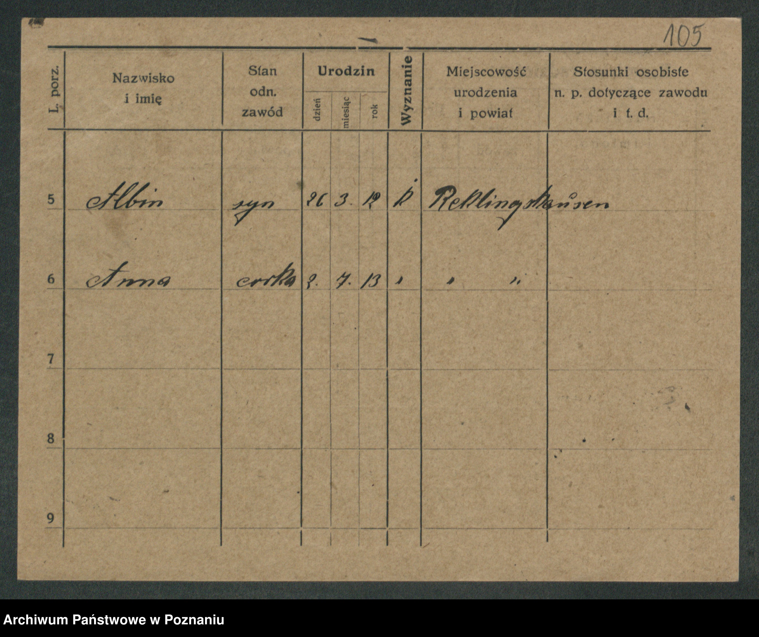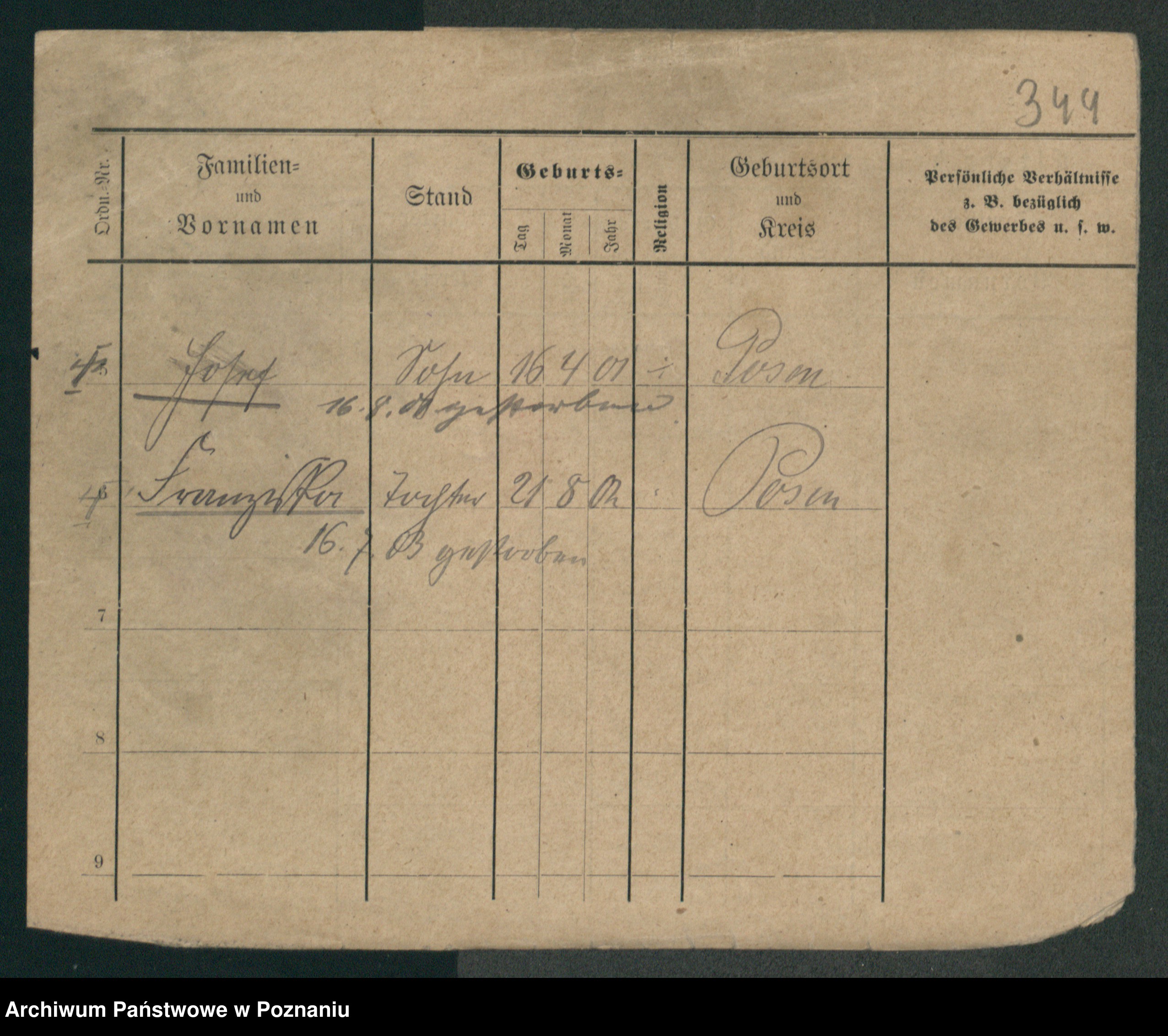 Podgląd karty osobowej dostępny jest po kliknięciu na nazwisko lub ikonkę karty. Można dokonywać powiększenia (ikony na górze) lub przechodzić między kolejnymi skanami (strzałki po bokach).