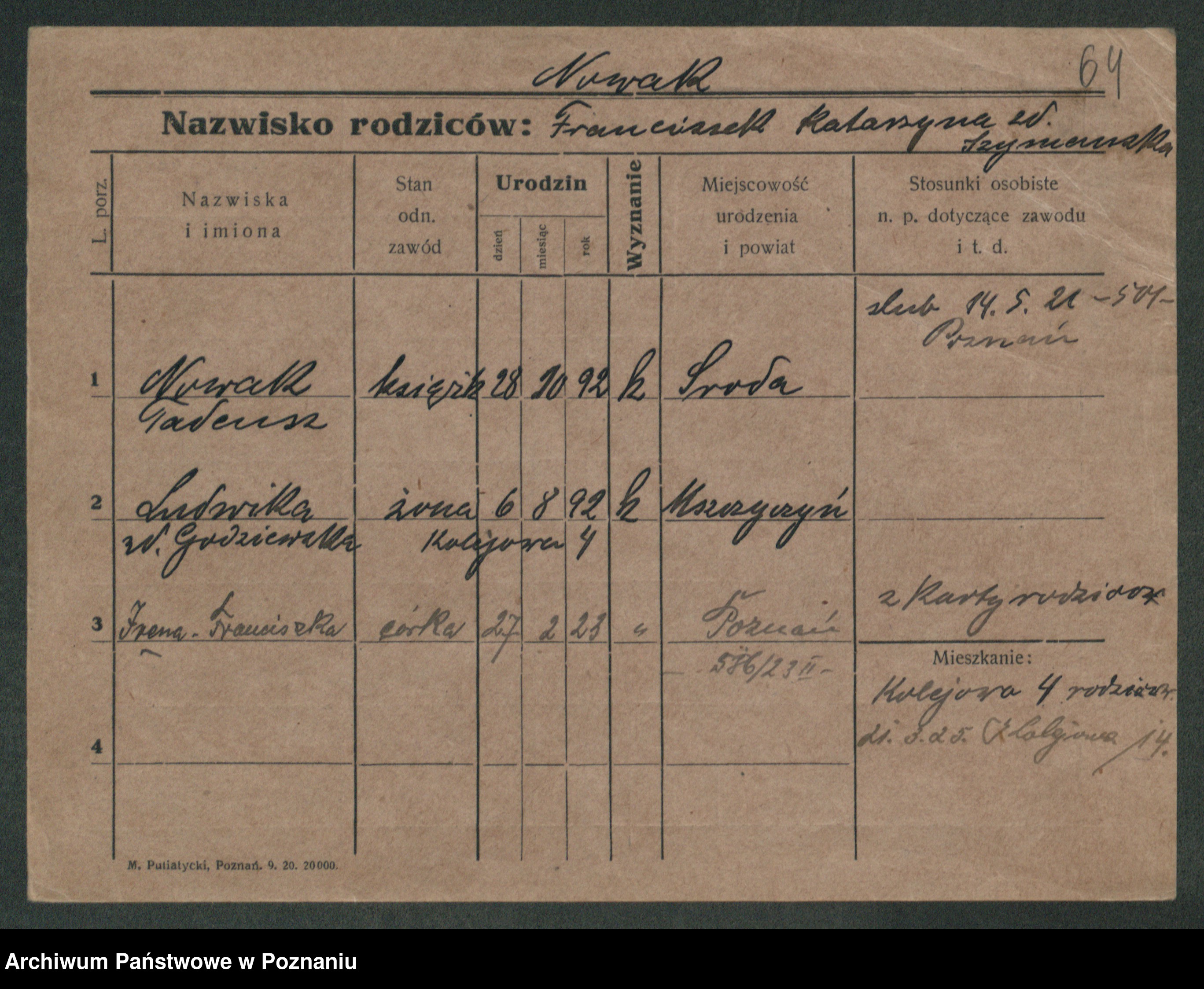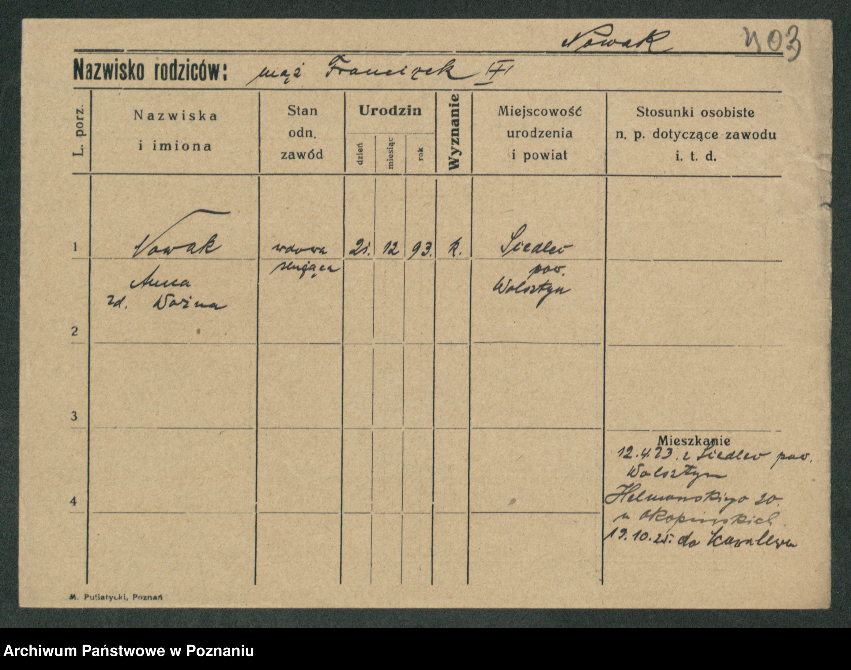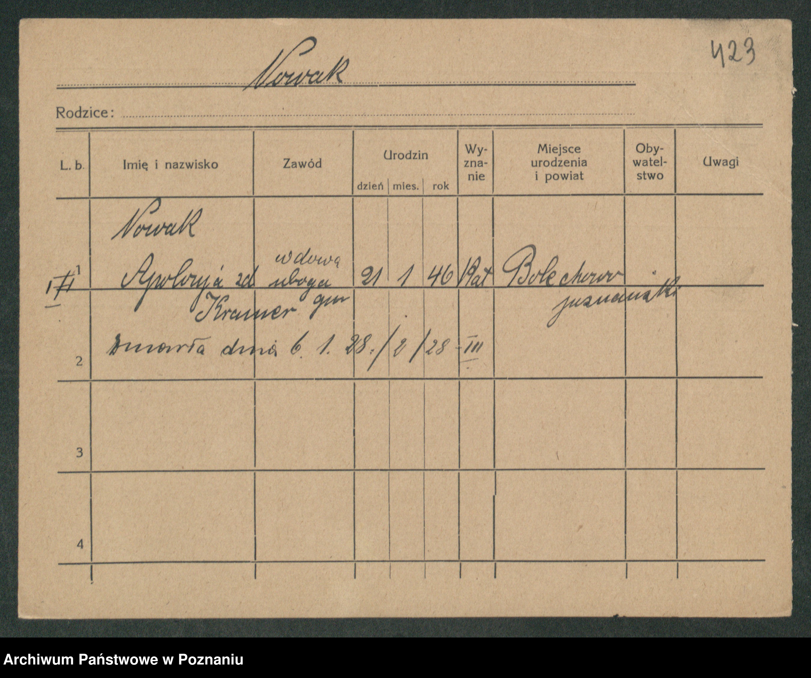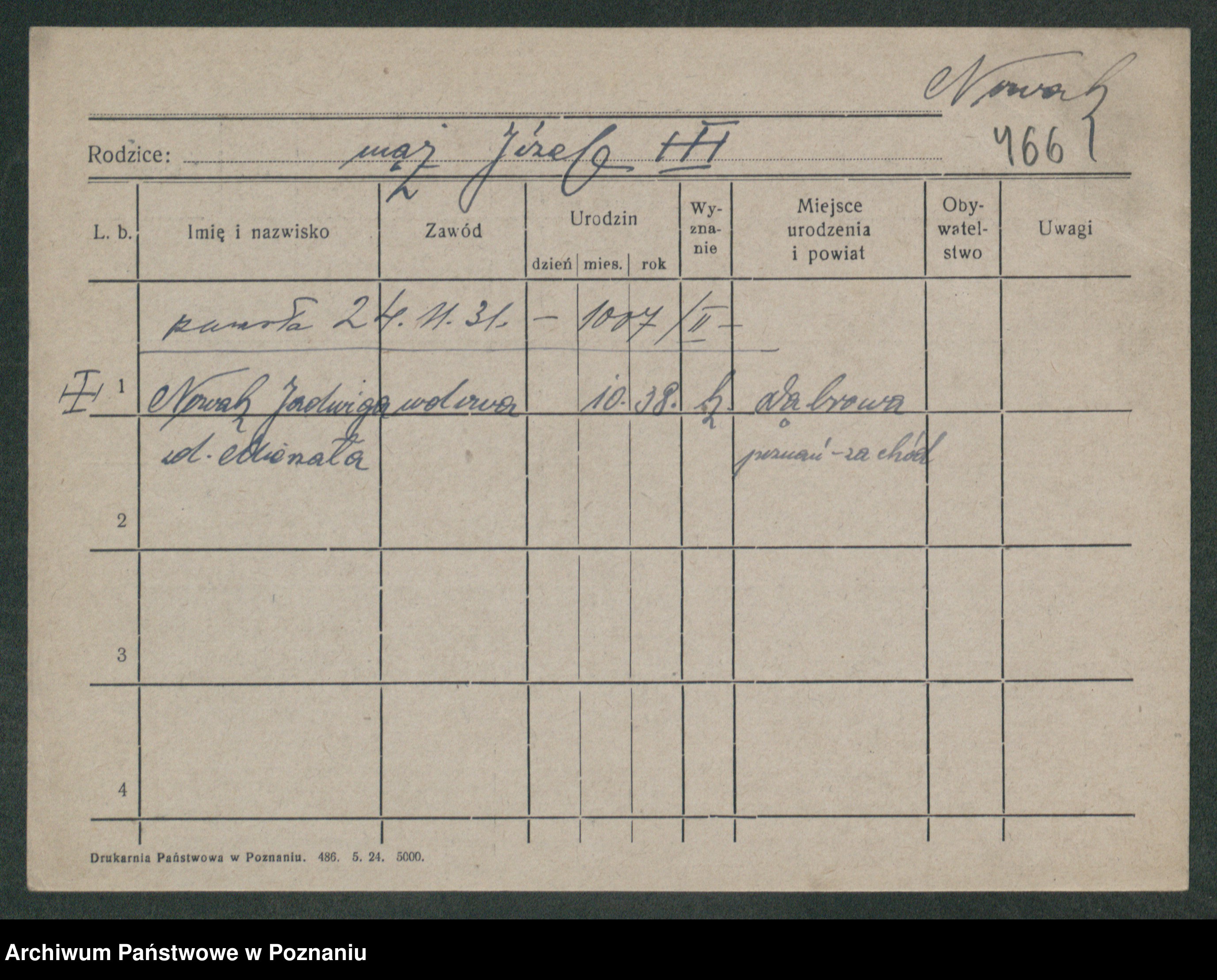 Nowak z d. Suszczak, Hedwig