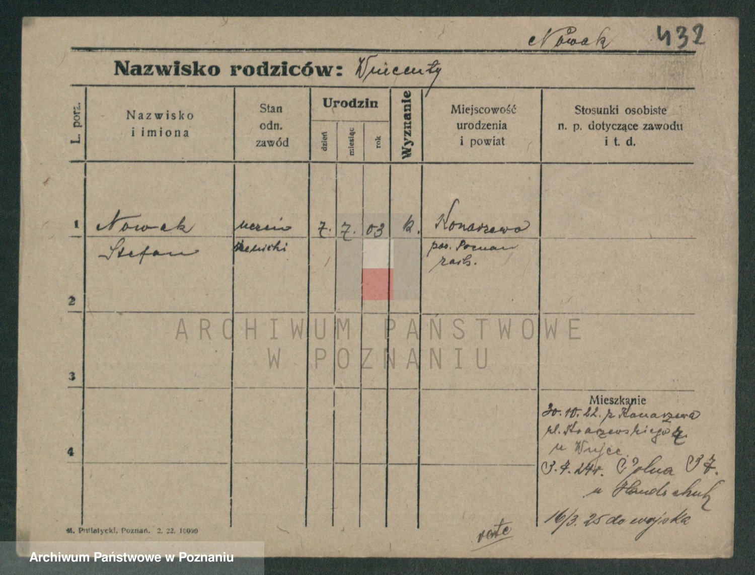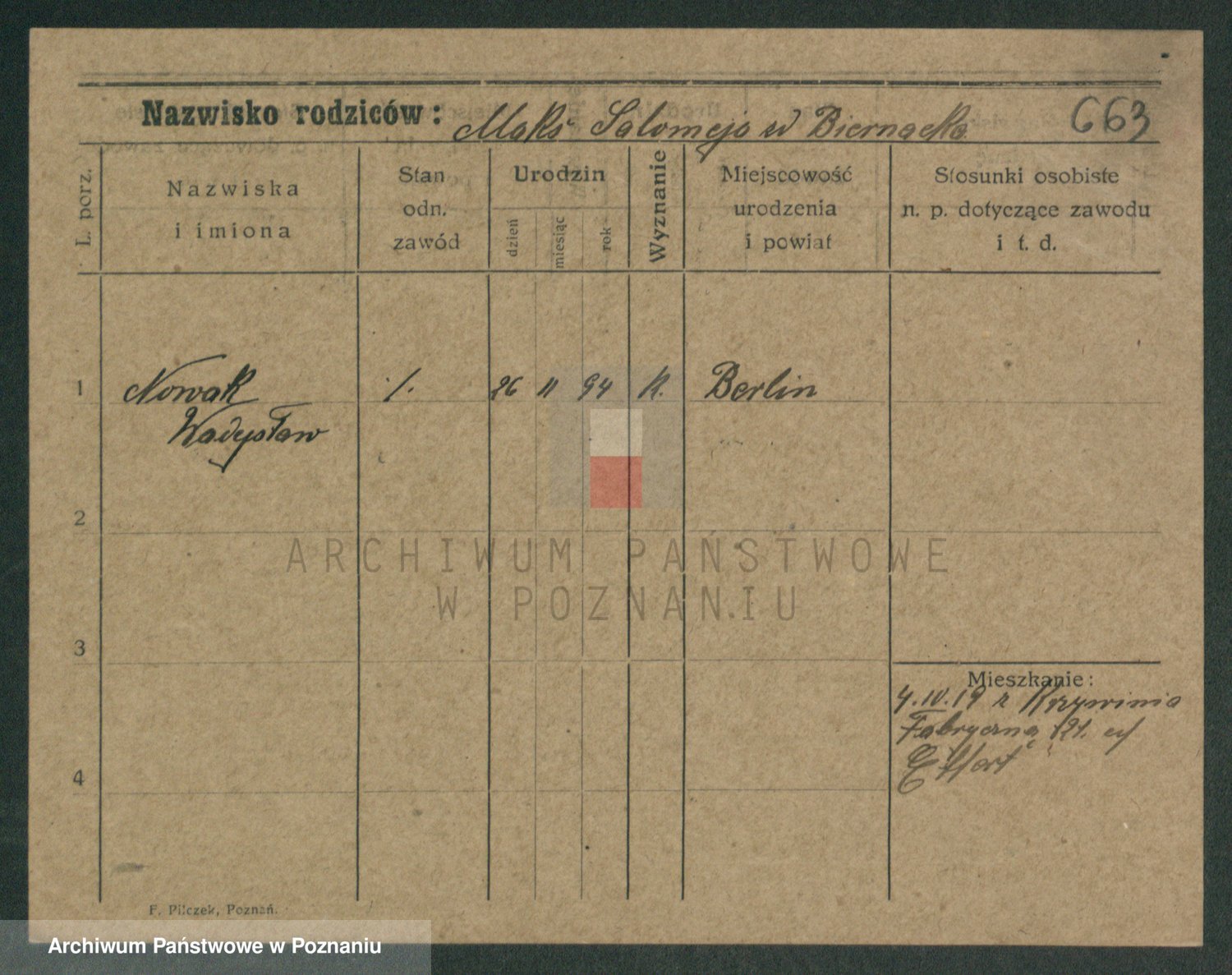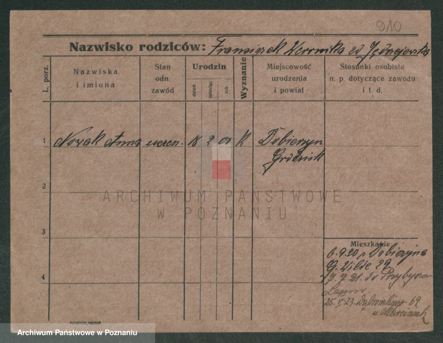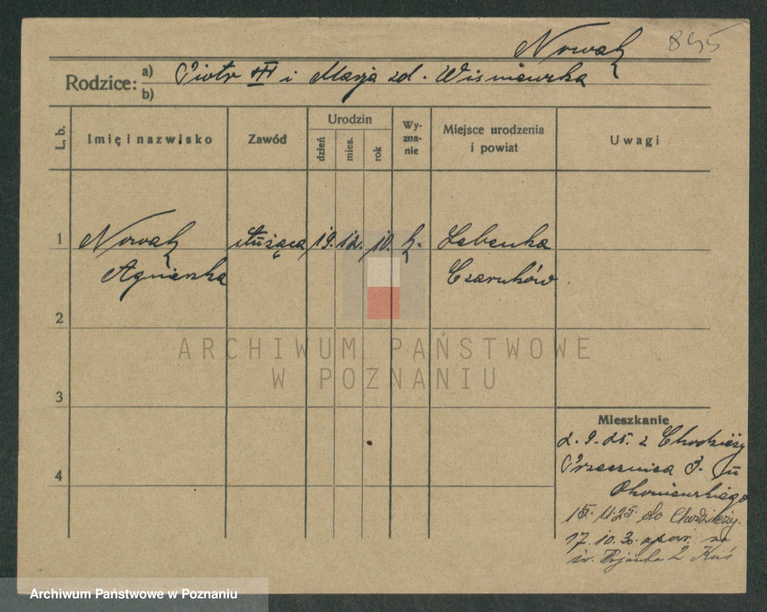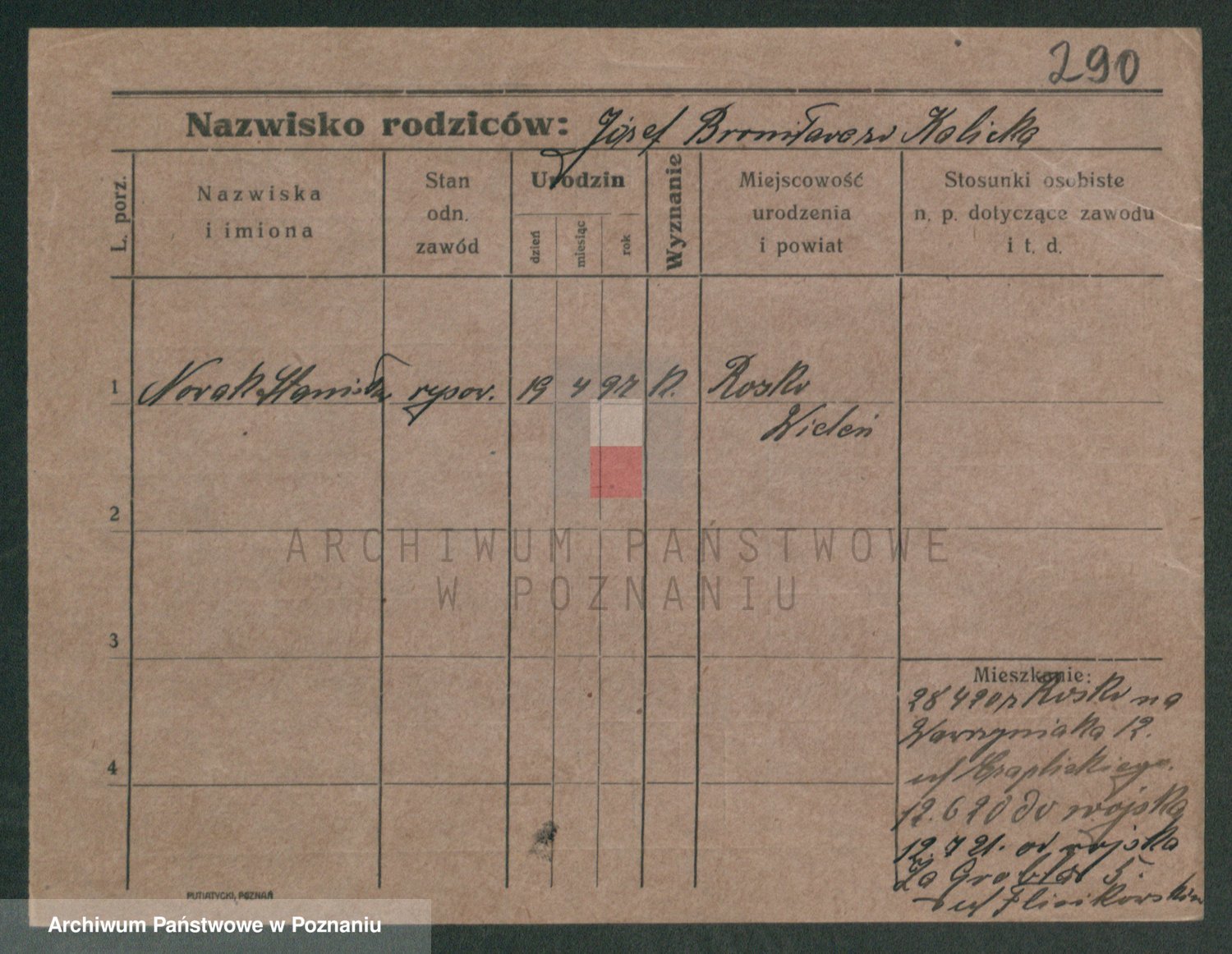 Podgląd karty osobowej dostępny jest po kliknięciu na nazwisko lub ikonkę karty. Można dokonywać powiększenia (ikony na górze) lub przechodzić między kolejnymi skanami (strzałki po bokach).