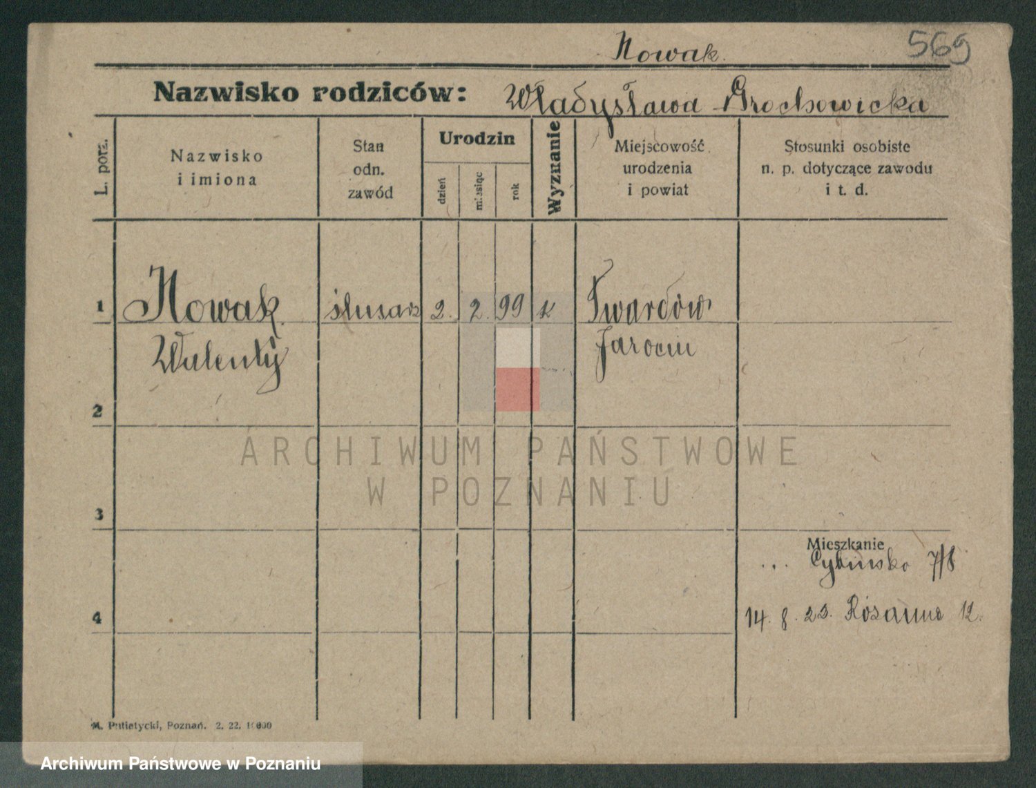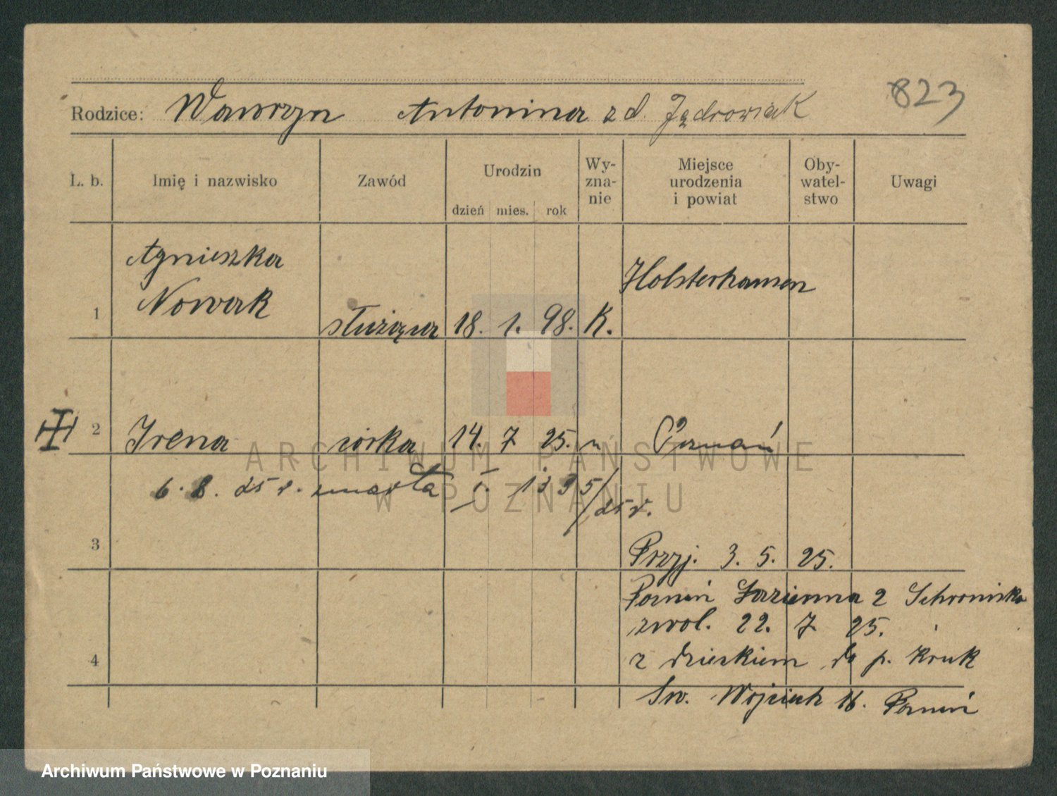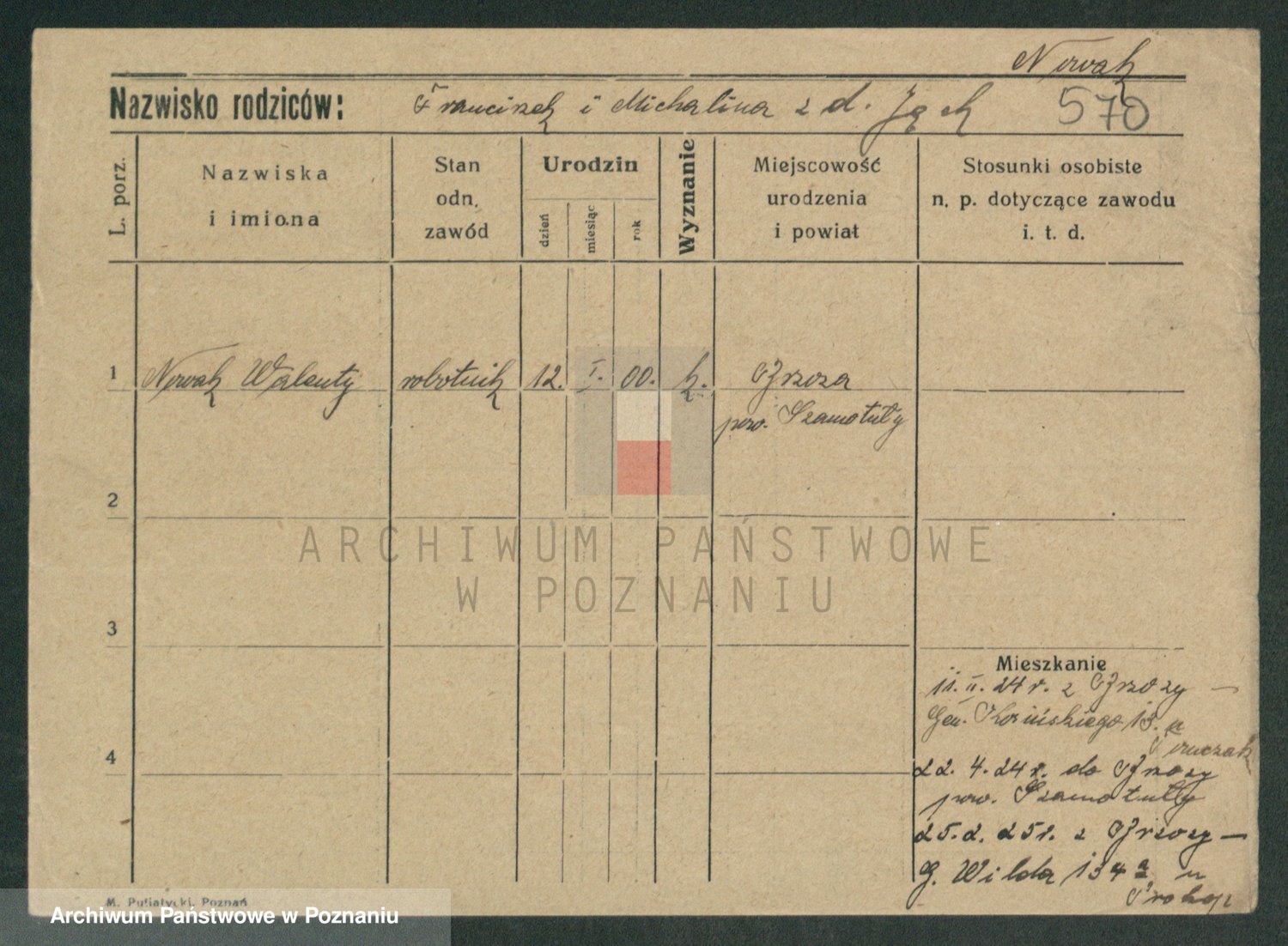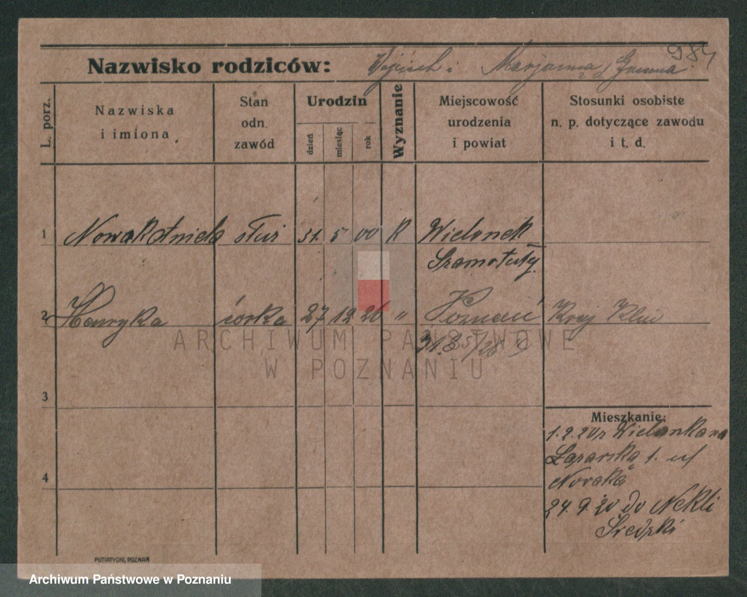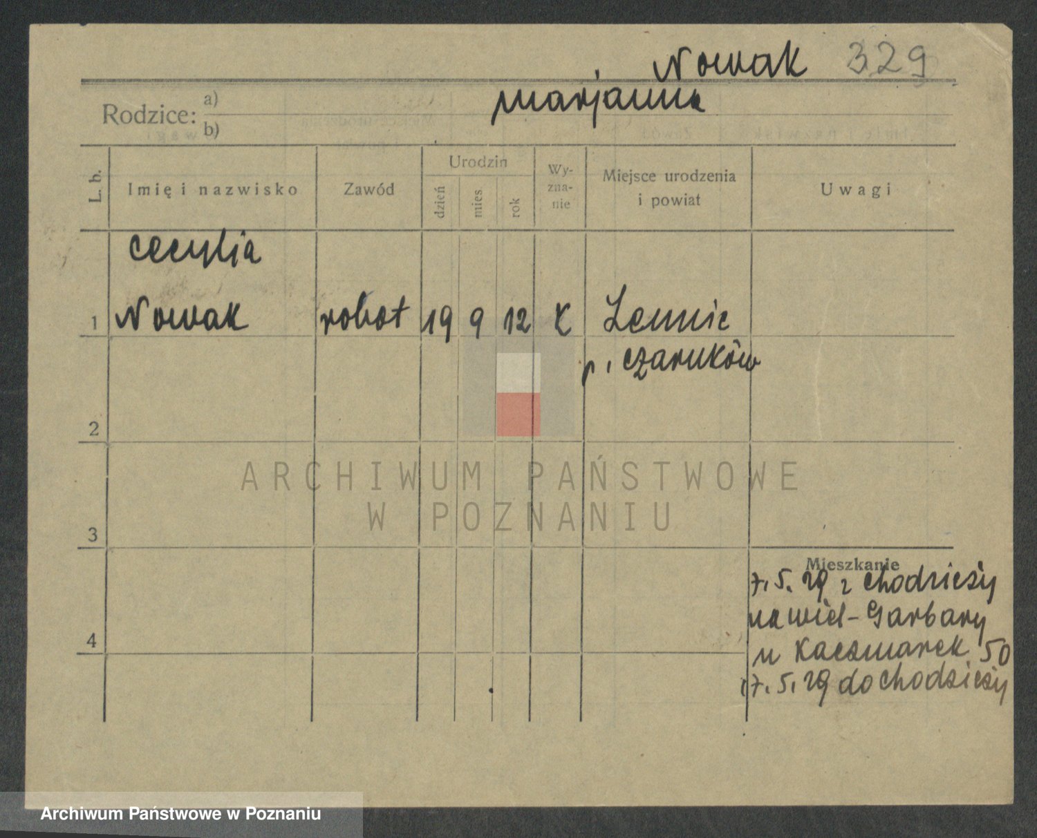 Podgląd karty osobowej dostępny jest po kliknięciu na nazwisko lub ikonkę karty. Można dokonywać powiększenia (ikony na górze) lub przechodzić między kolejnymi skanami (strzałki po bokach).