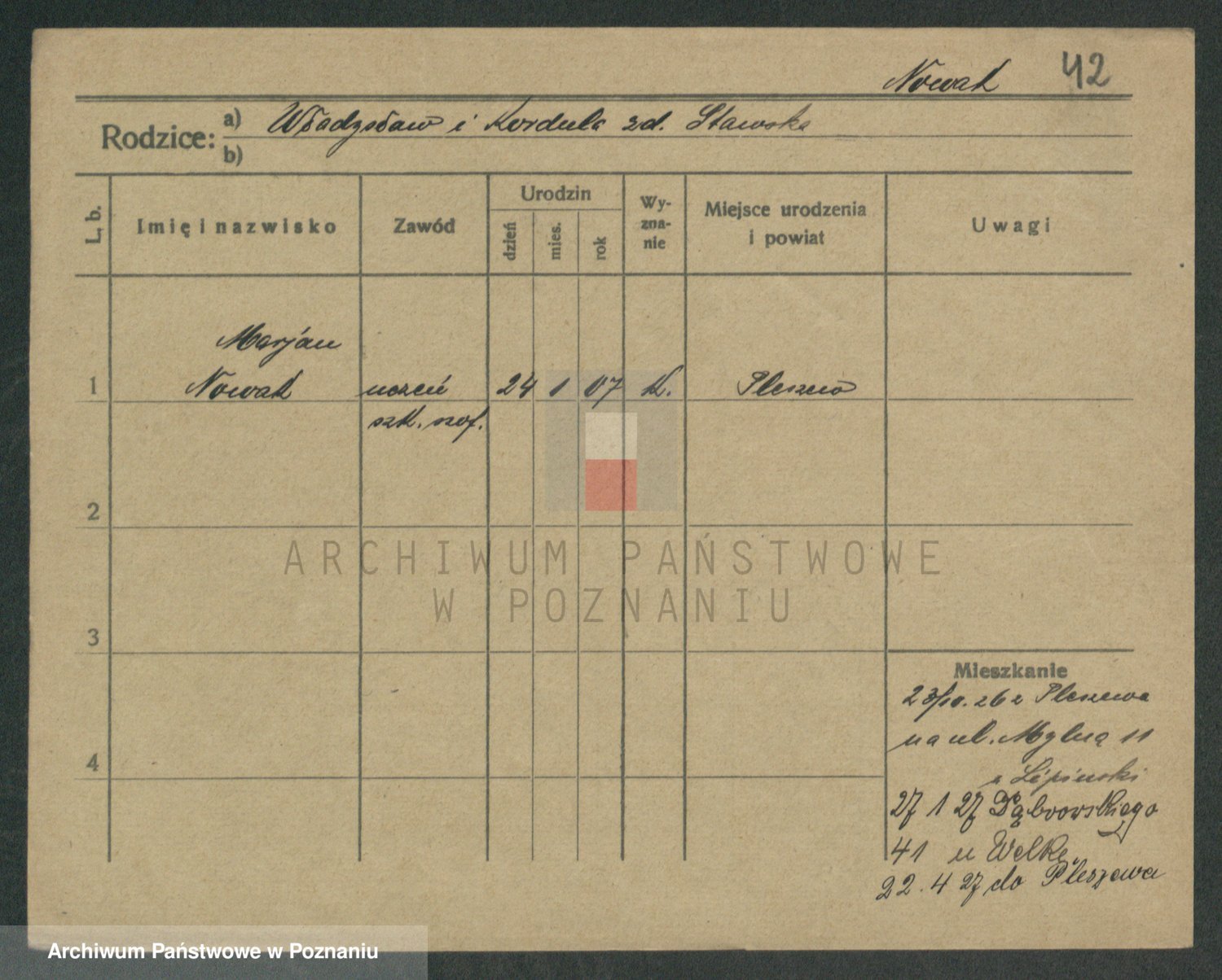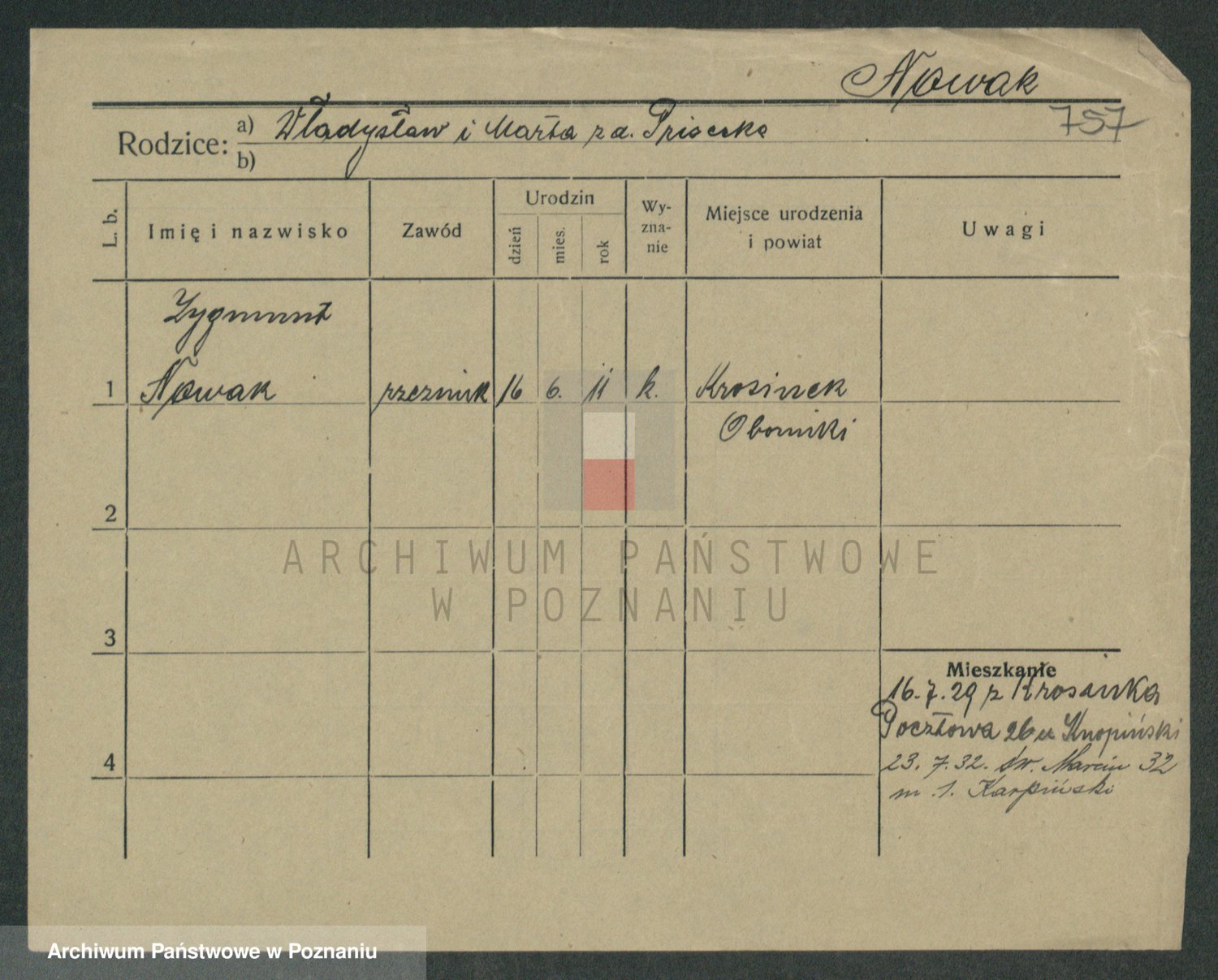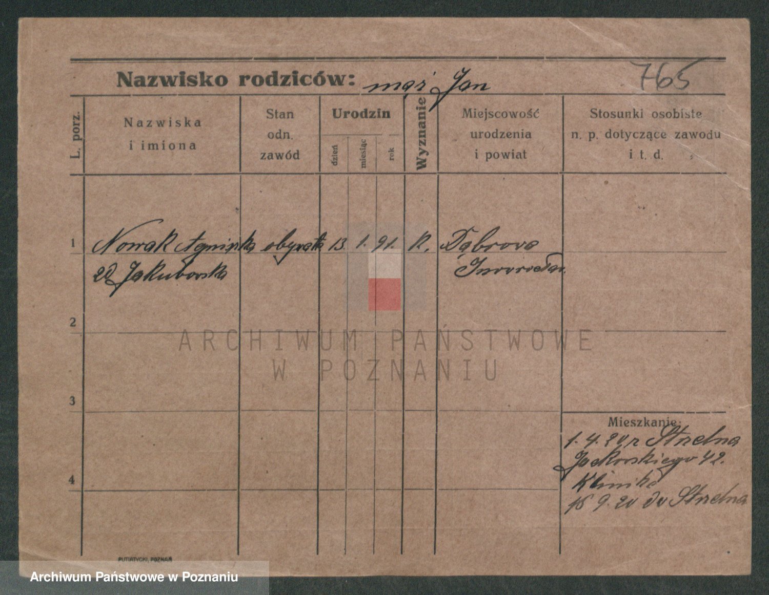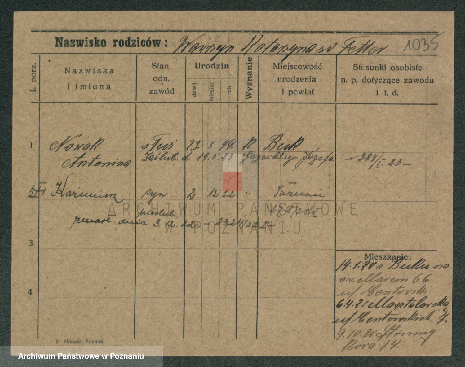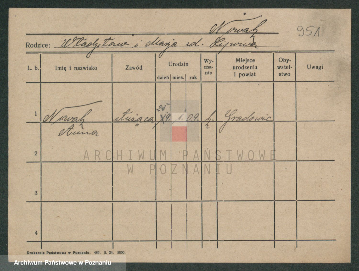 Podgląd karty osobowej dostępny jest po kliknięciu na nazwisko lub ikonkę karty. Można dokonywać powiększenia (ikony na górze) lub przechodzić między kolejnymi skanami (strzałki po bokach).