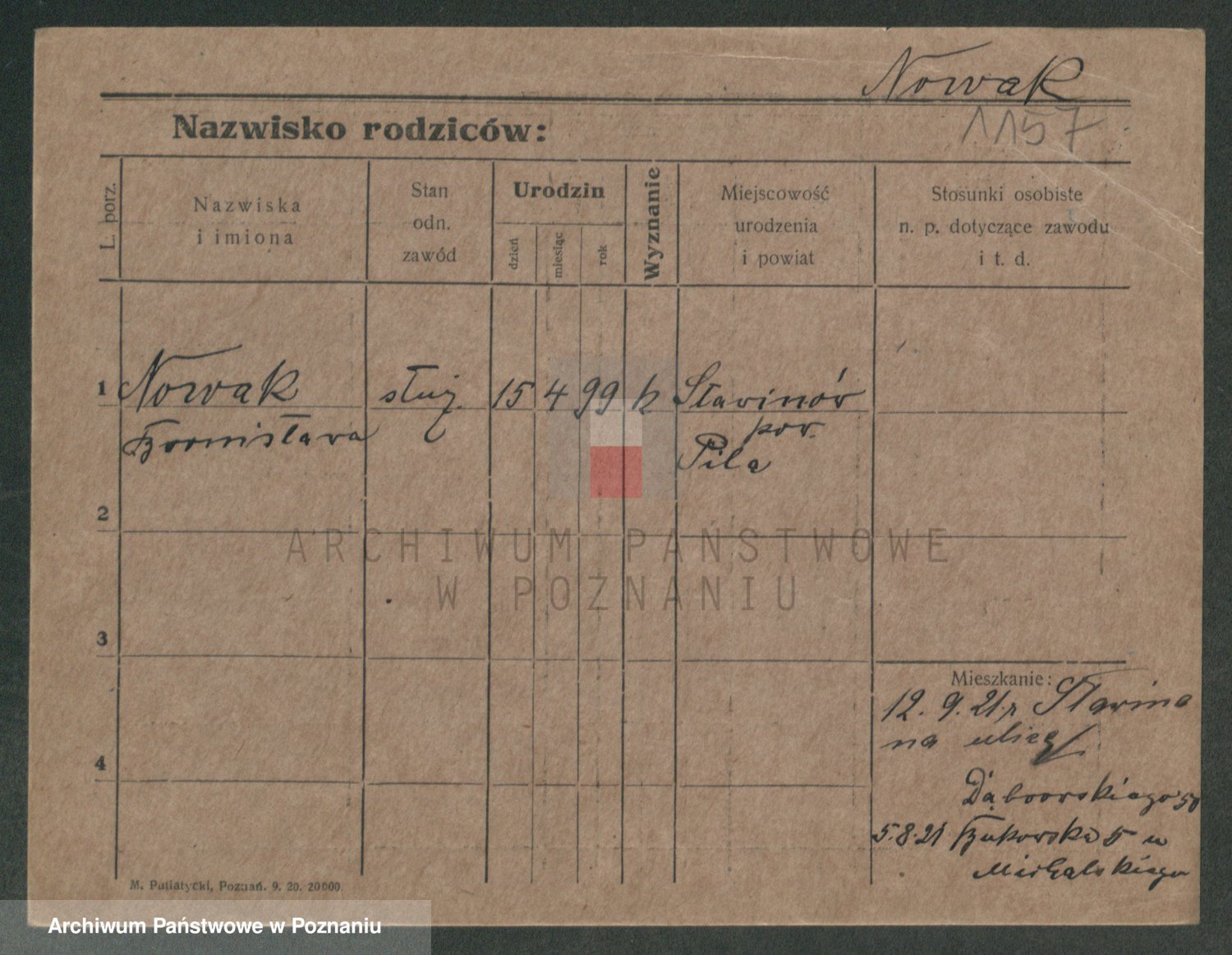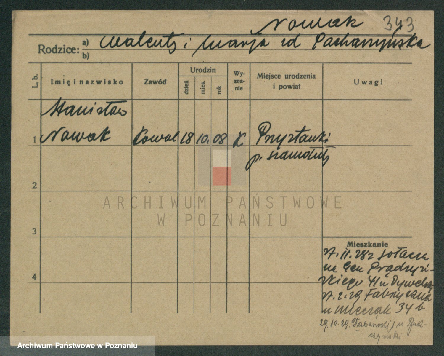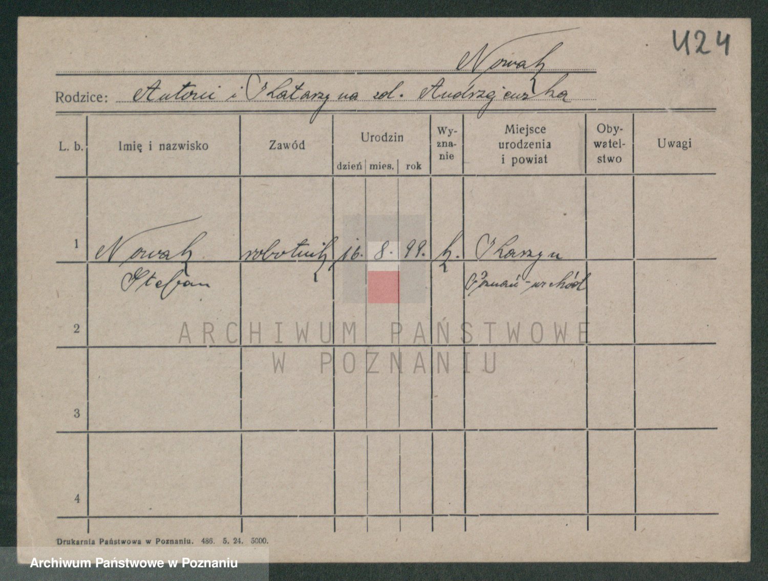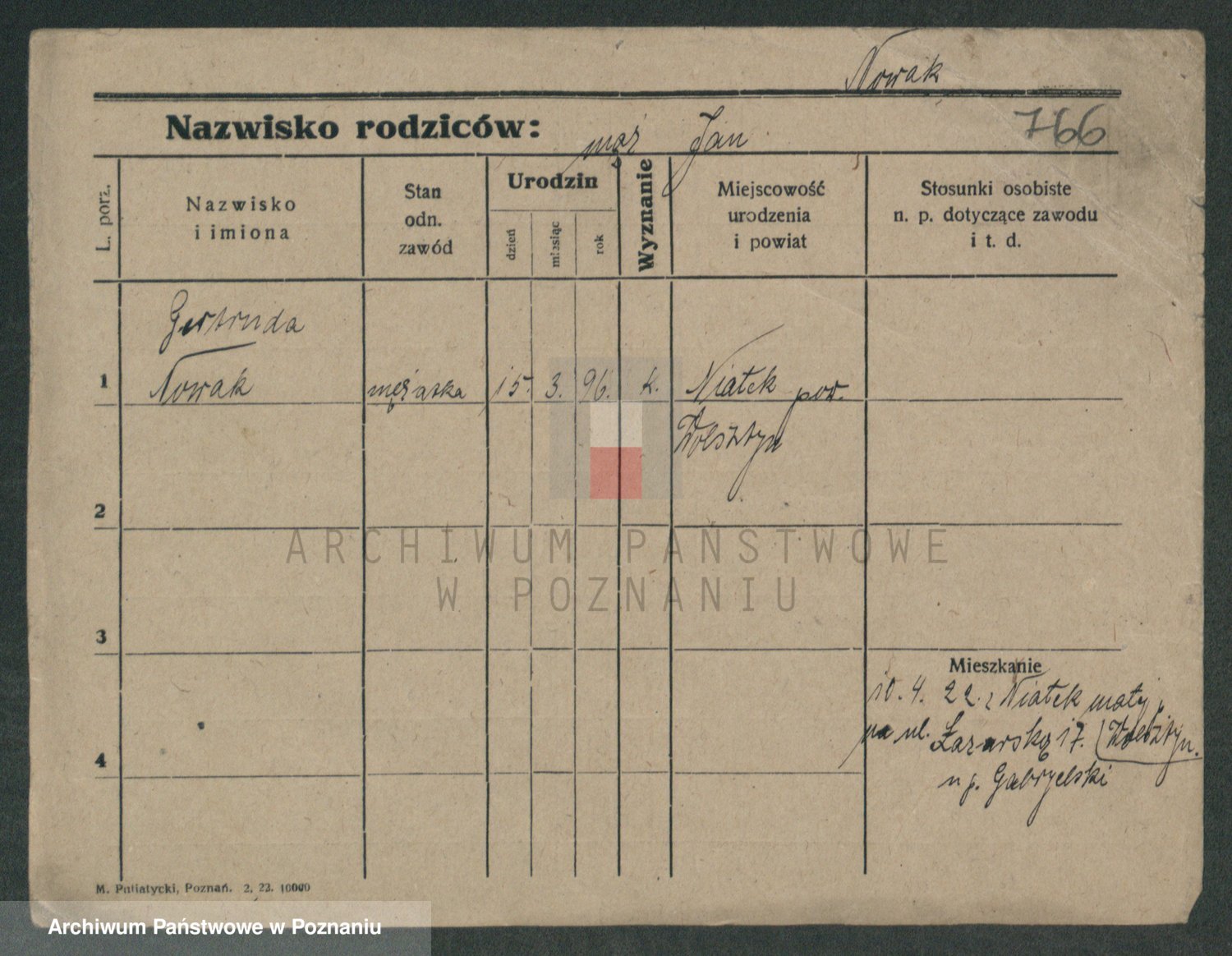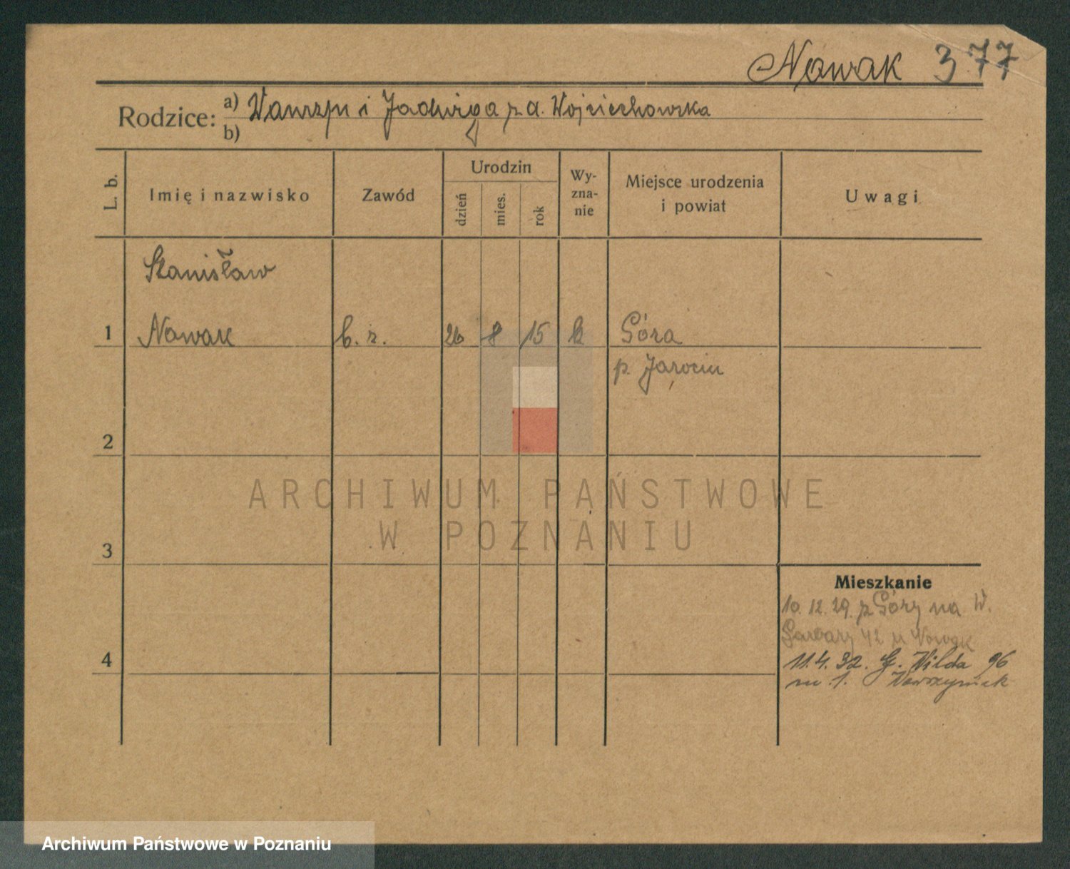 Podgląd karty osobowej dostępny jest po kliknięciu na nazwisko lub ikonkę karty. Można dokonywać powiększenia (ikony na górze) lub przechodzić między kolejnymi skanami (strzałki po bokach).