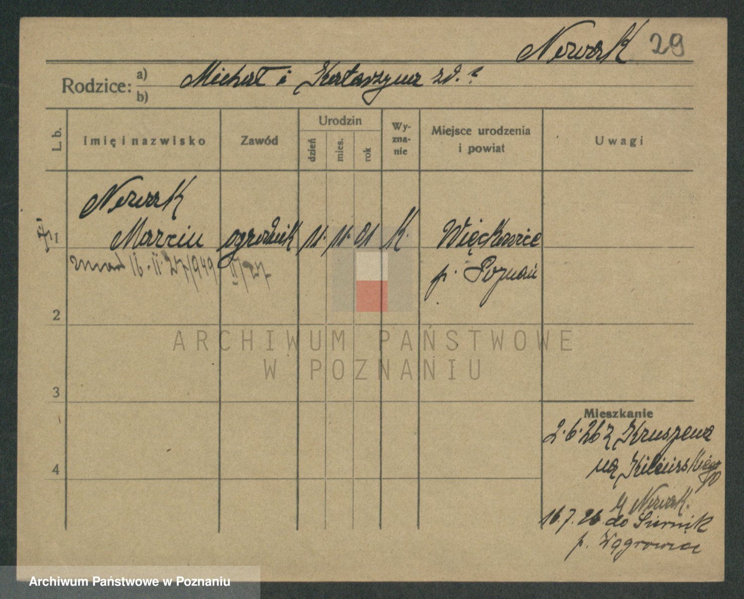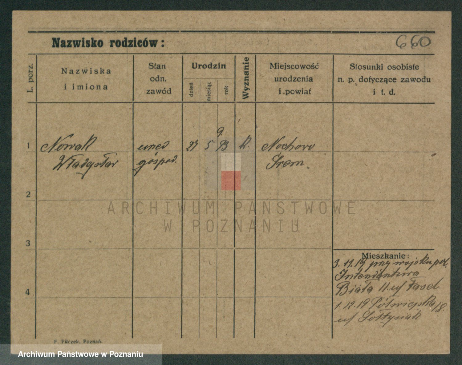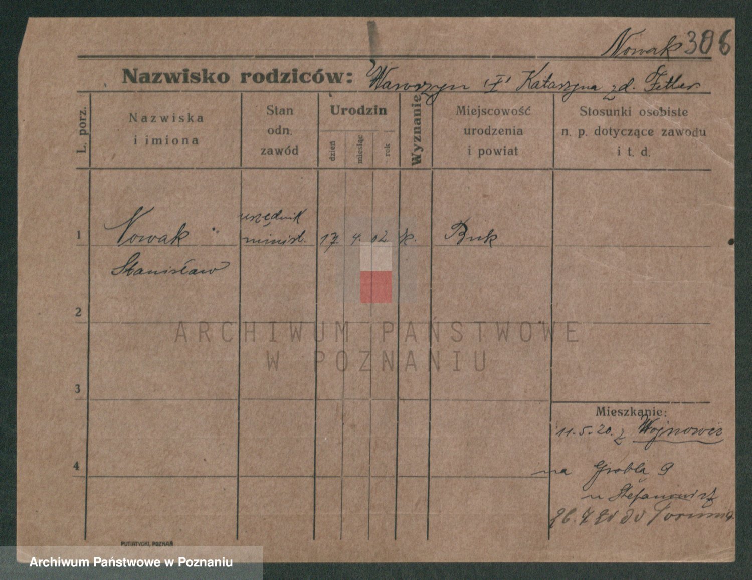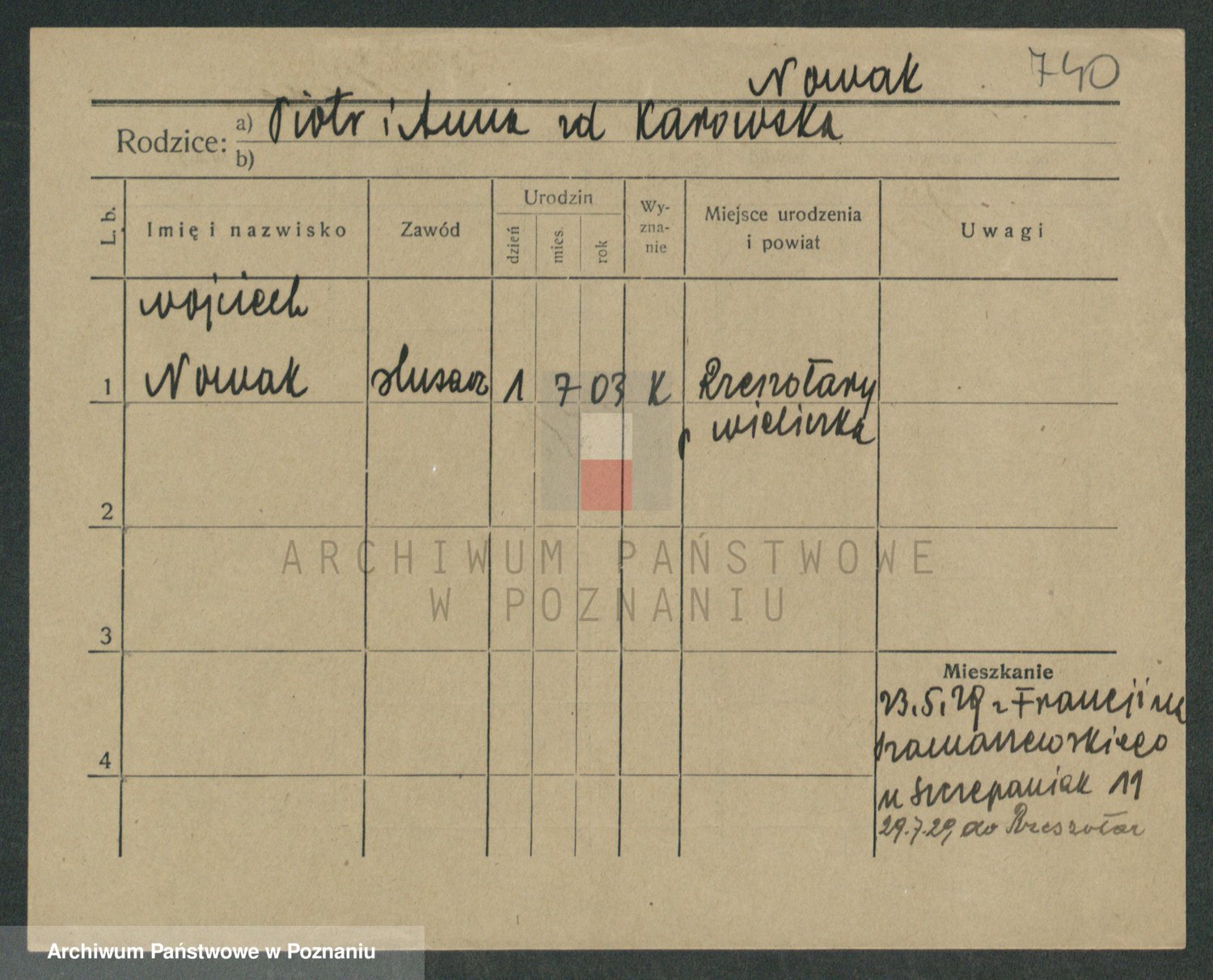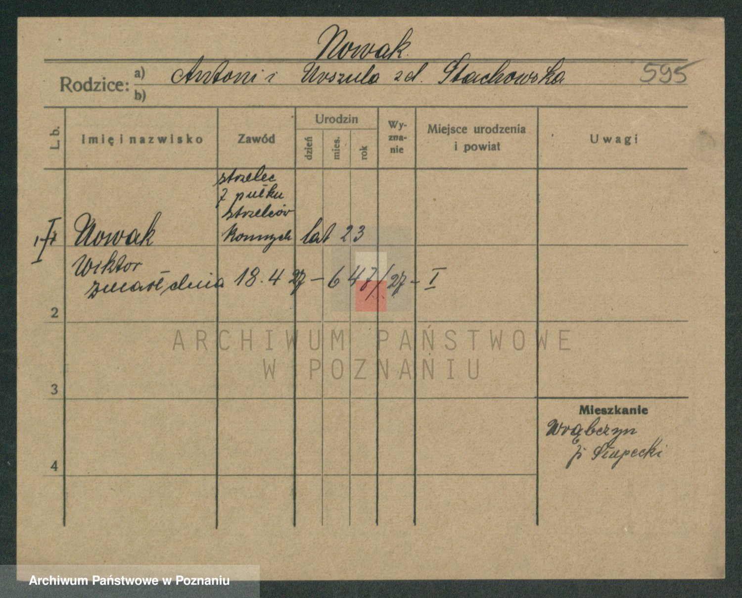 Podgląd karty osobowej dostępny jest po kliknięciu na nazwisko lub ikonkę karty. Można dokonywać powiększenia (ikony na górze) lub przechodzić między kolejnymi skanami (strzałki po bokach).