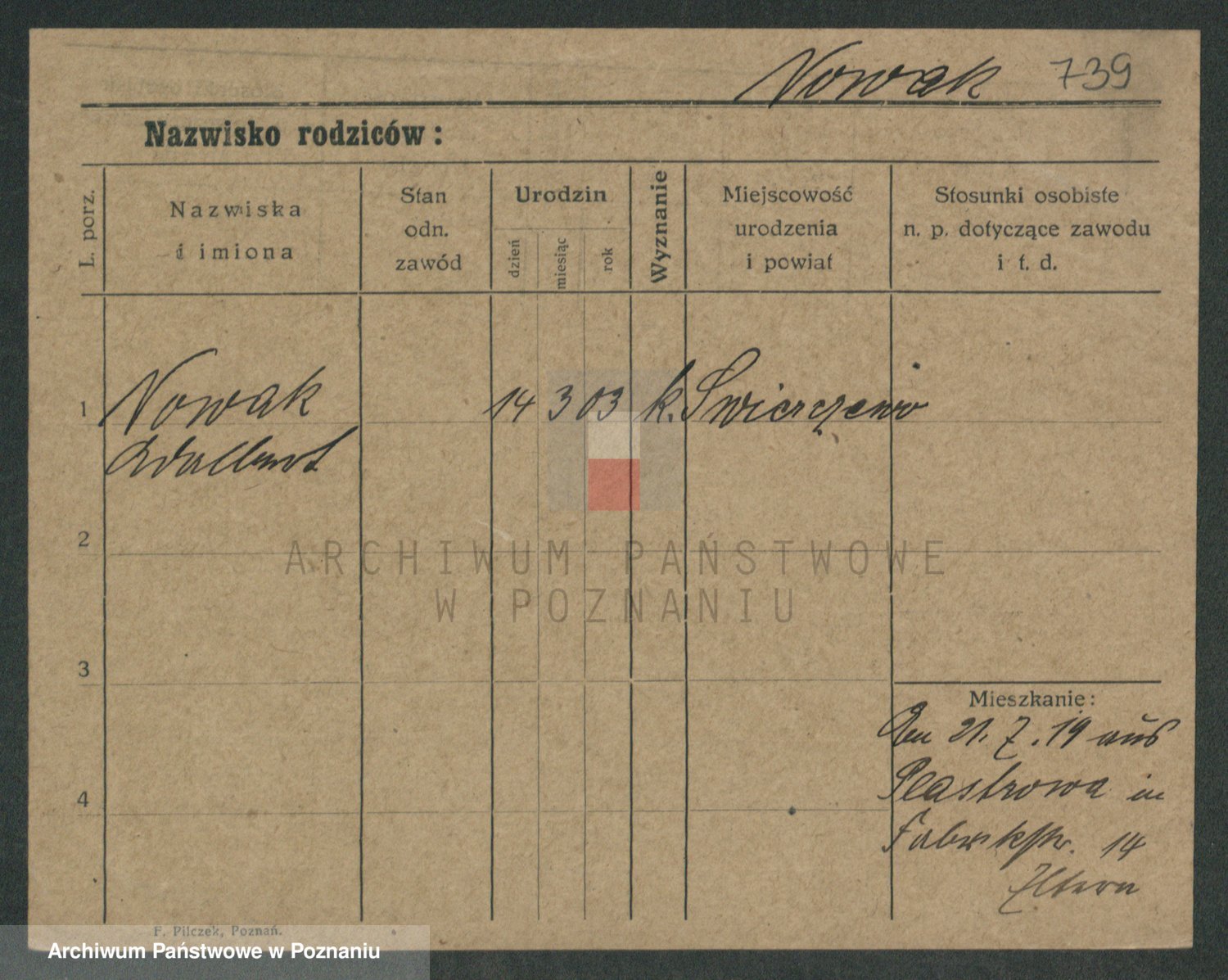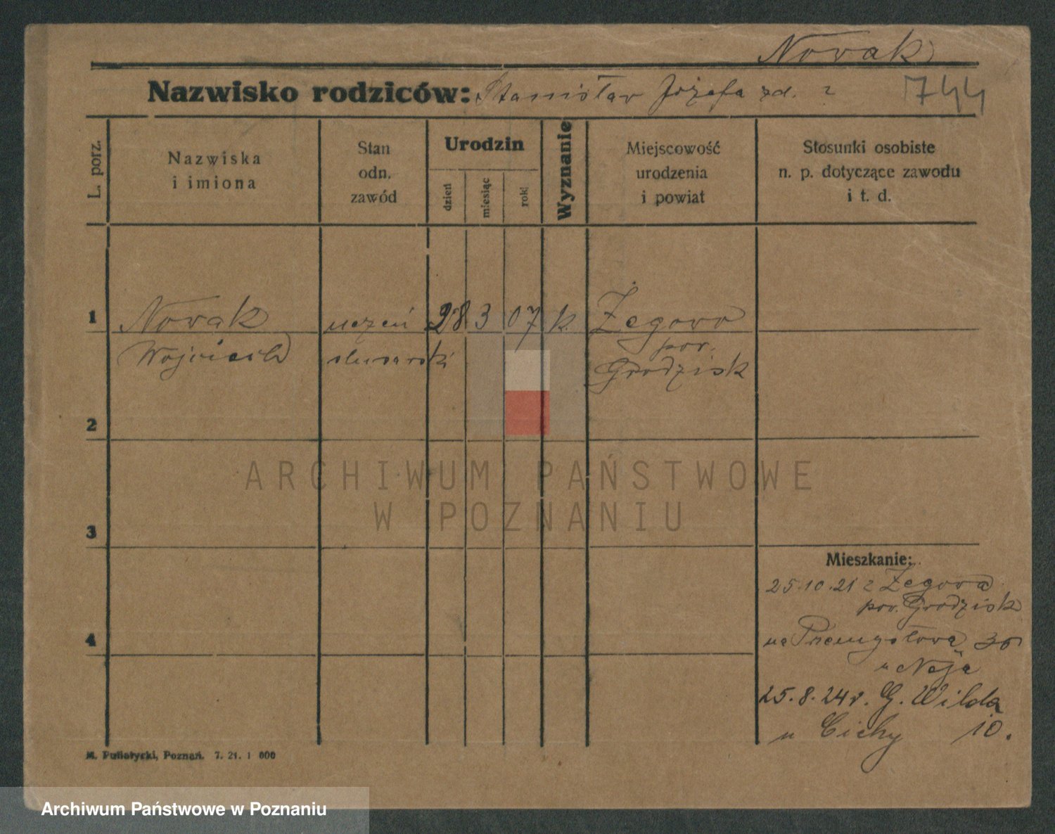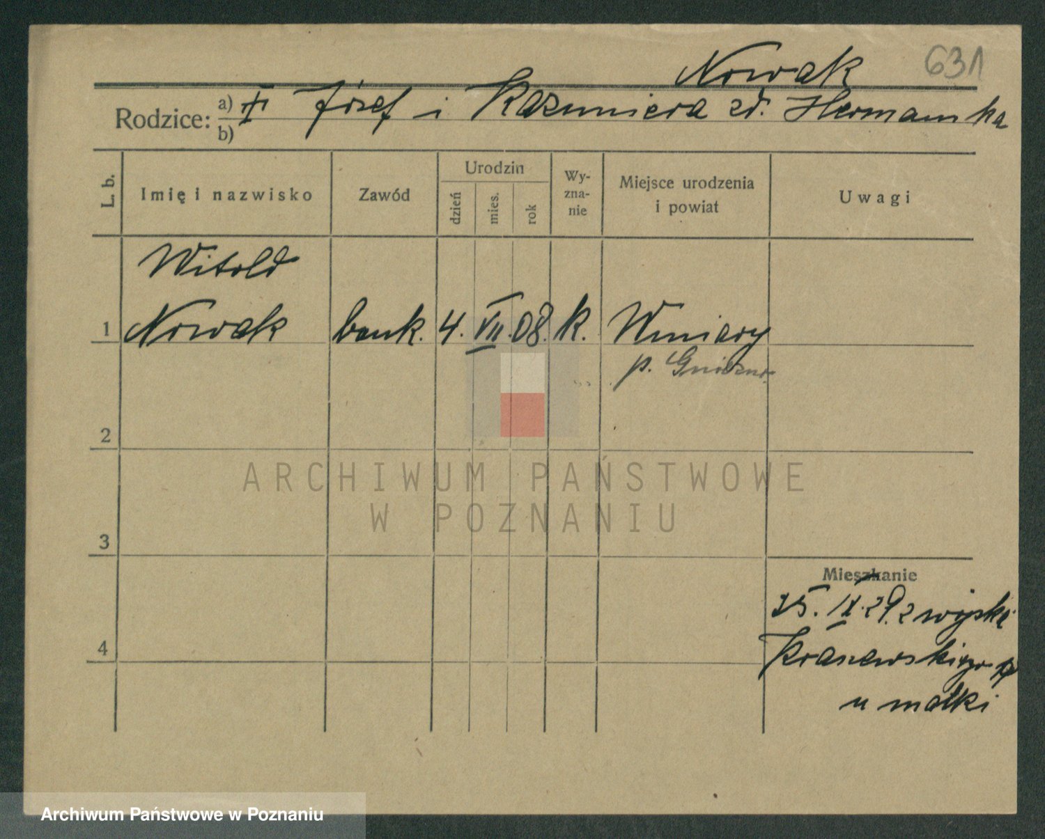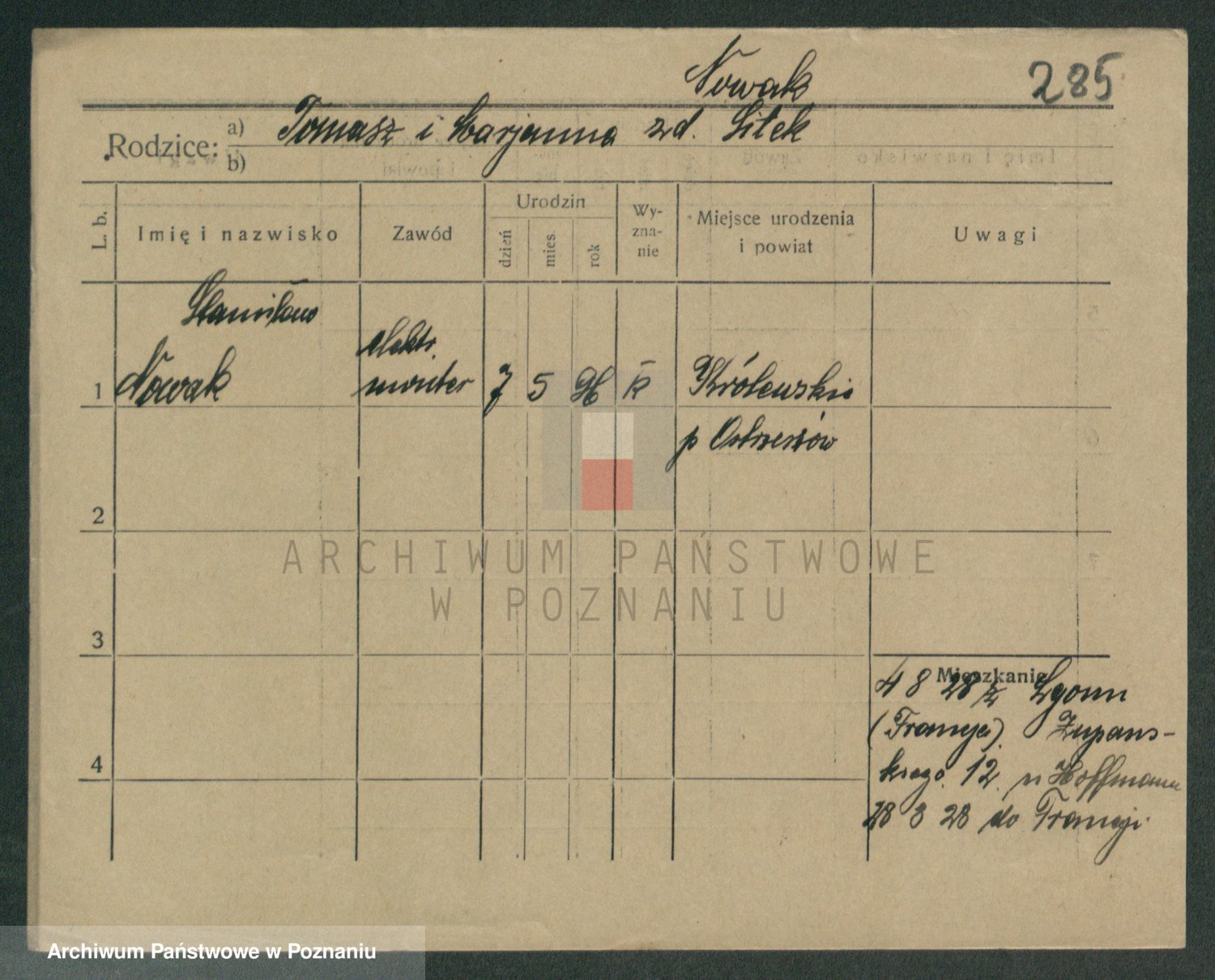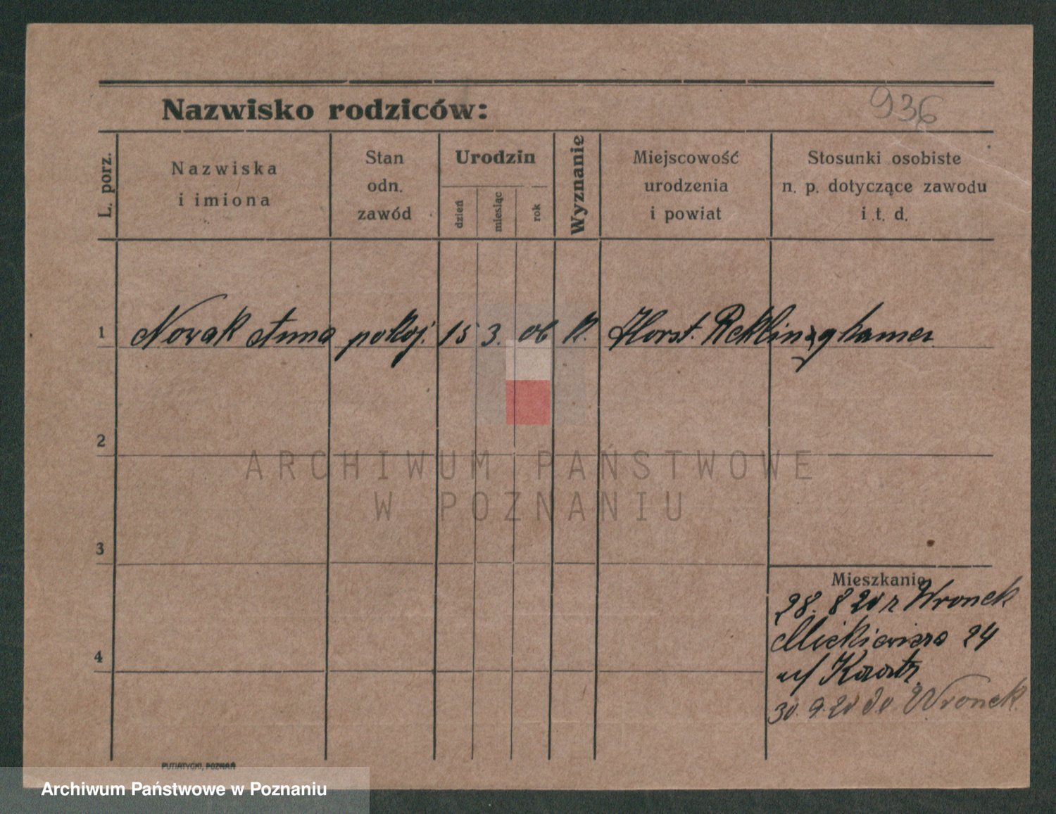Podgląd karty osobowej dostępny jest po kliknięciu na nazwisko lub ikonkę karty. Można dokonywać powiększenia (ikony na górze) lub przechodzić między kolejnymi skanami (strzałki po bokach).