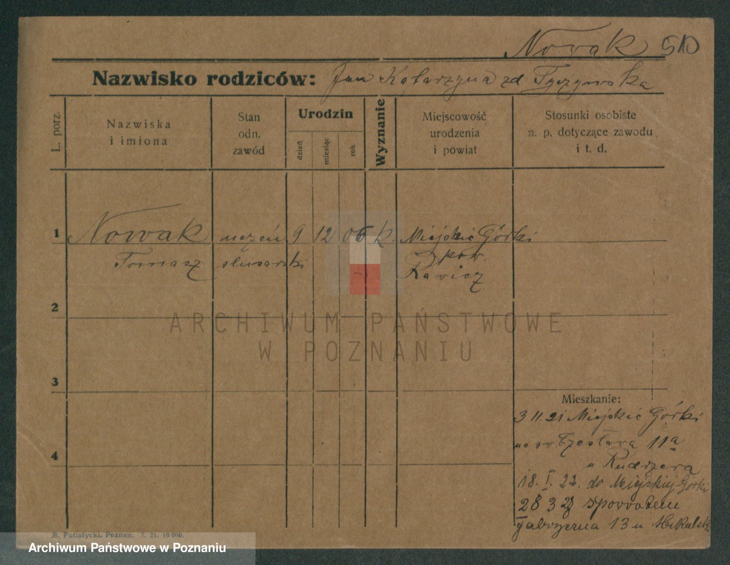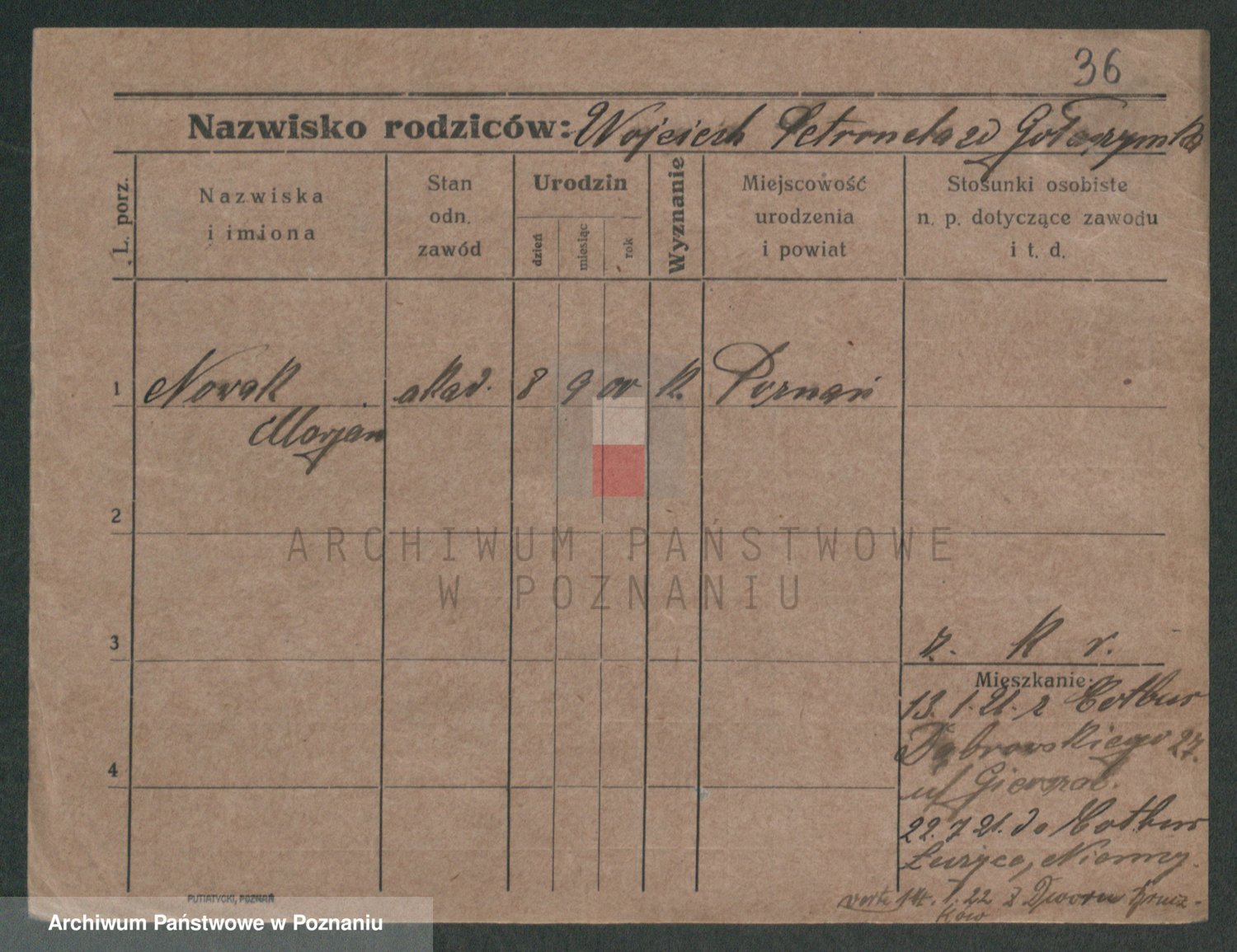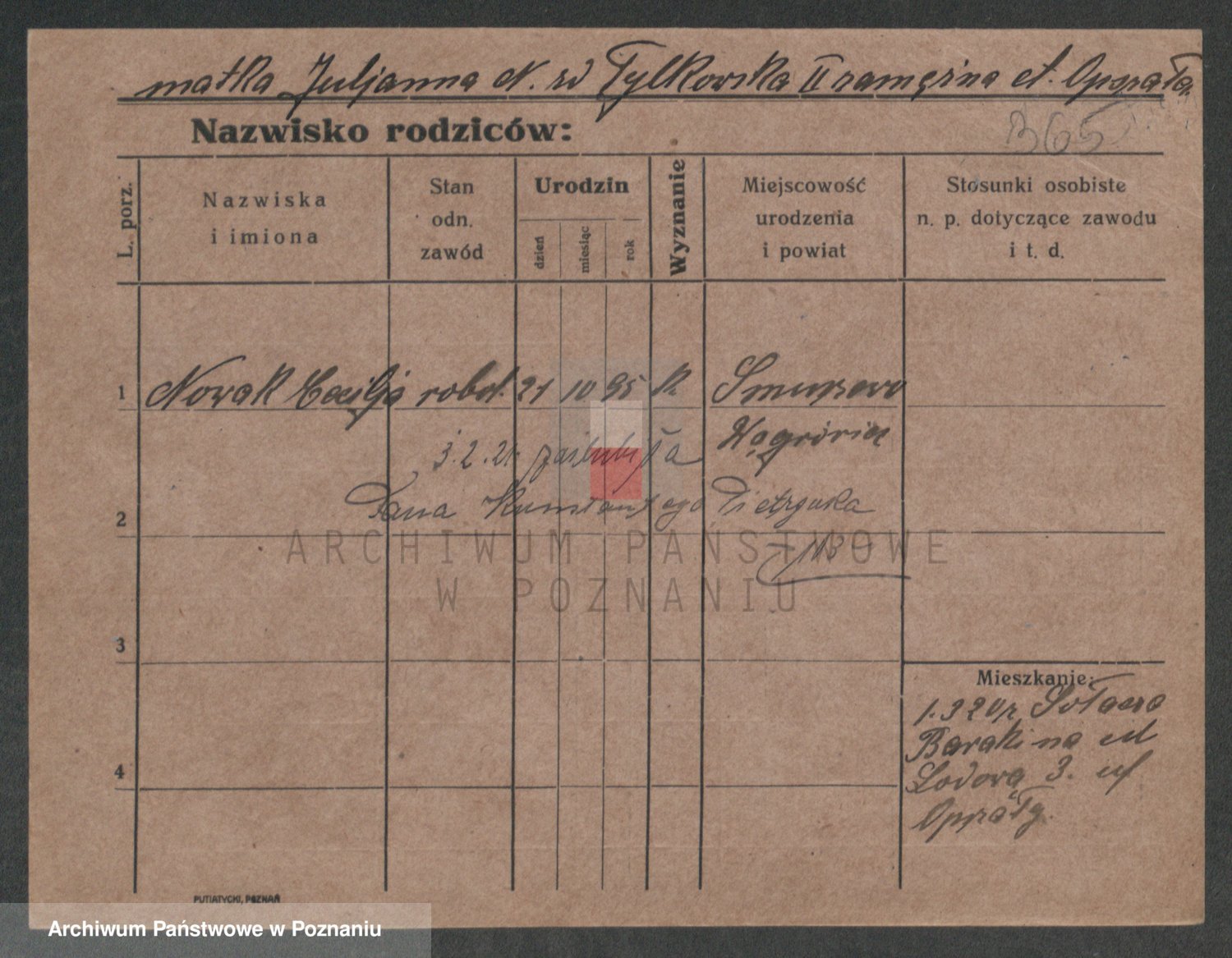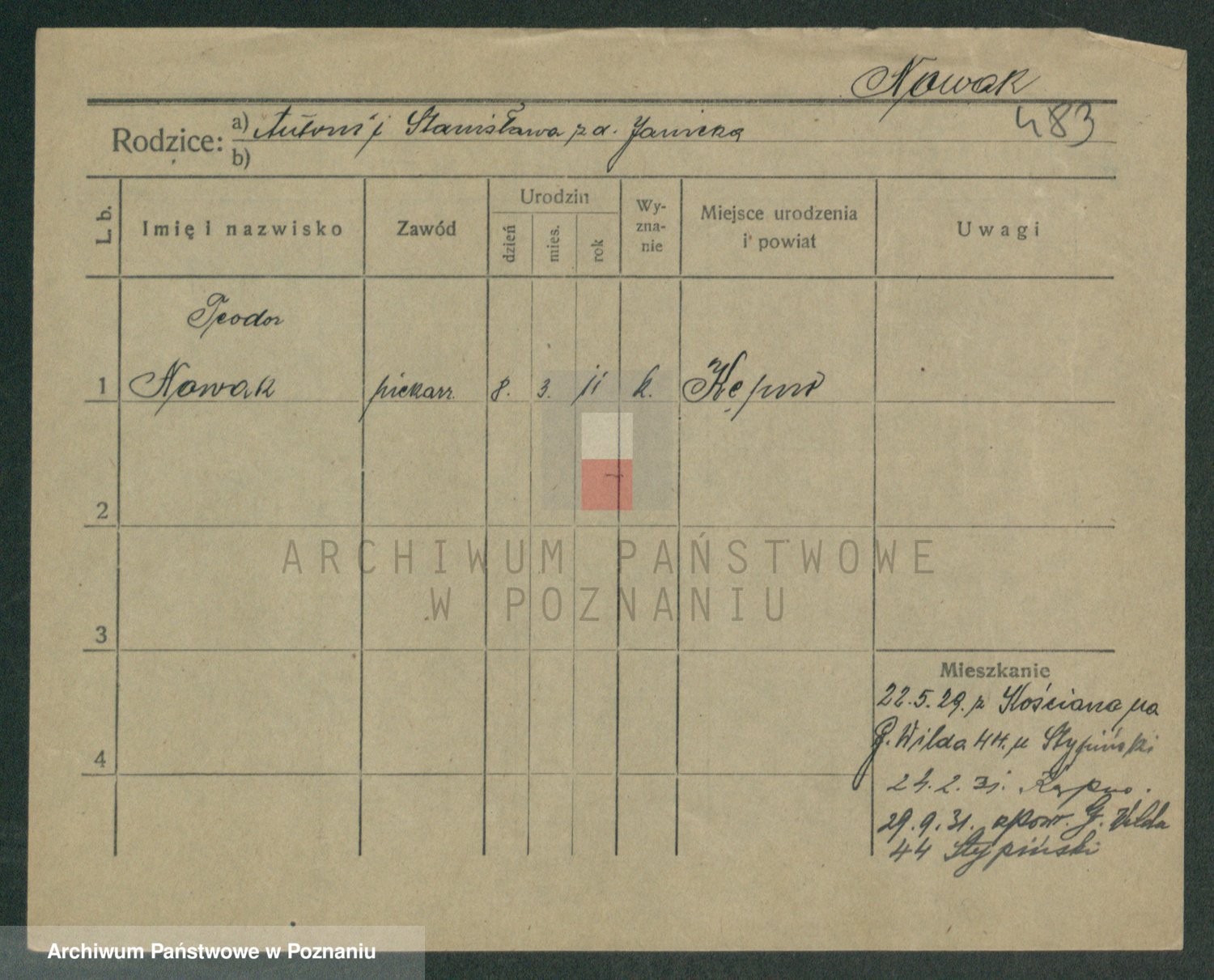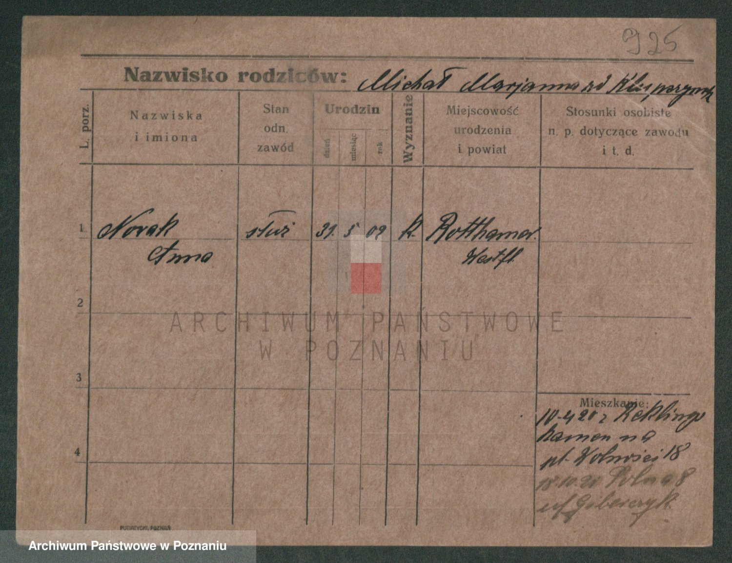 Podgląd karty osobowej dostępny jest po kliknięciu na nazwisko lub ikonkę karty. Można dokonywać powiększenia (ikony na górze) lub przechodzić między kolejnymi skanami (strzałki po bokach).