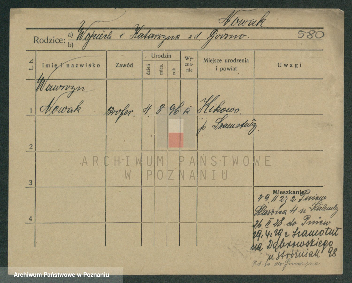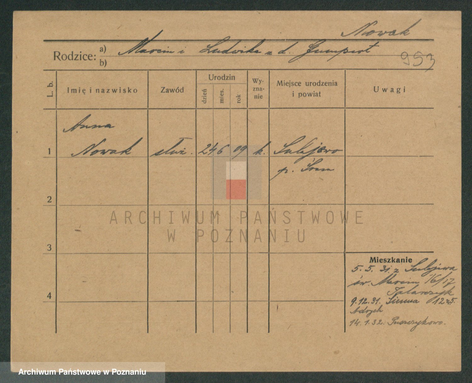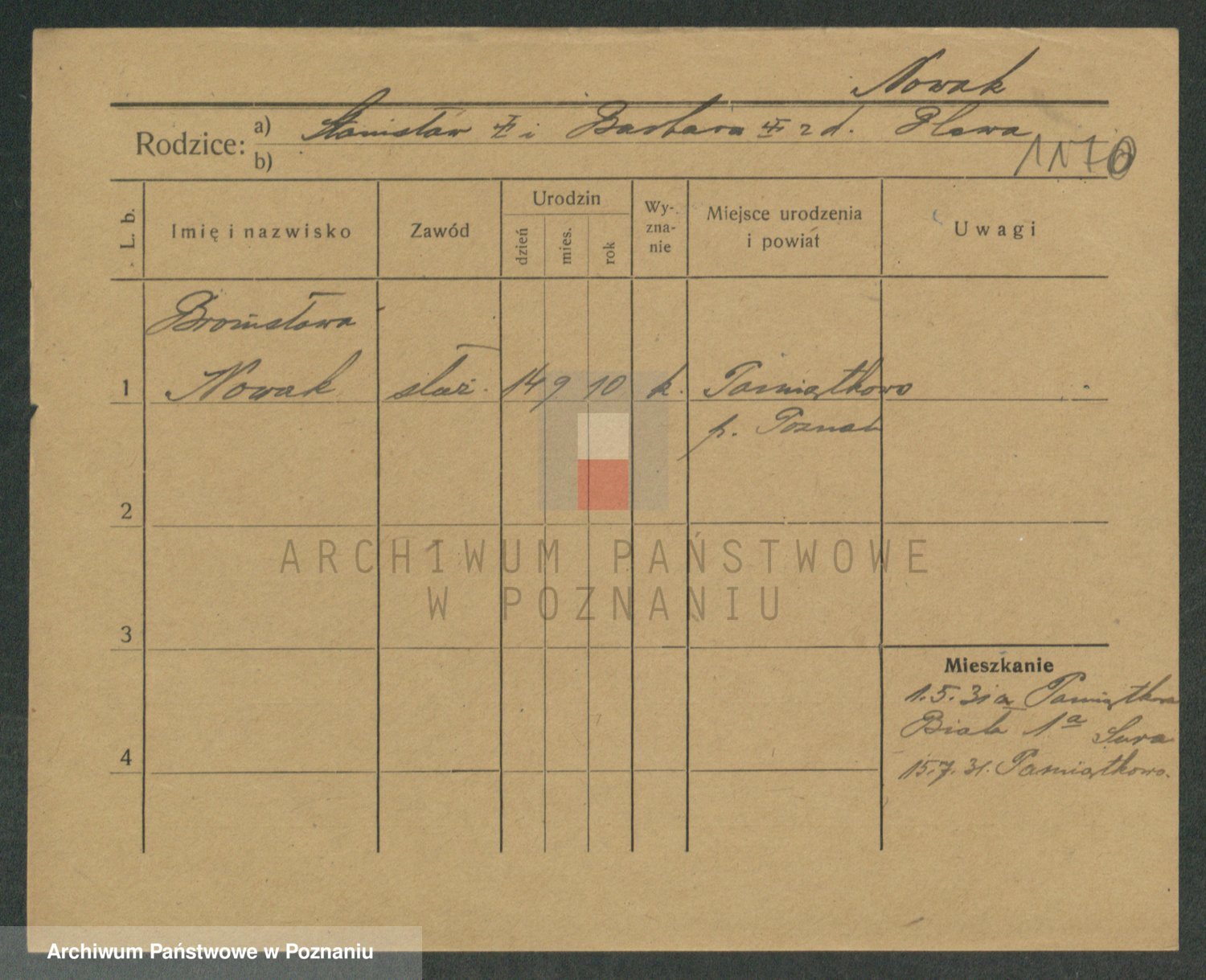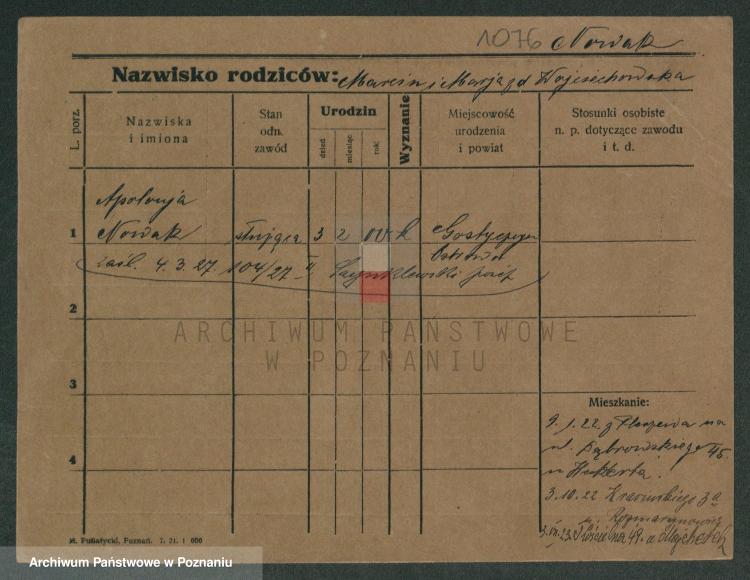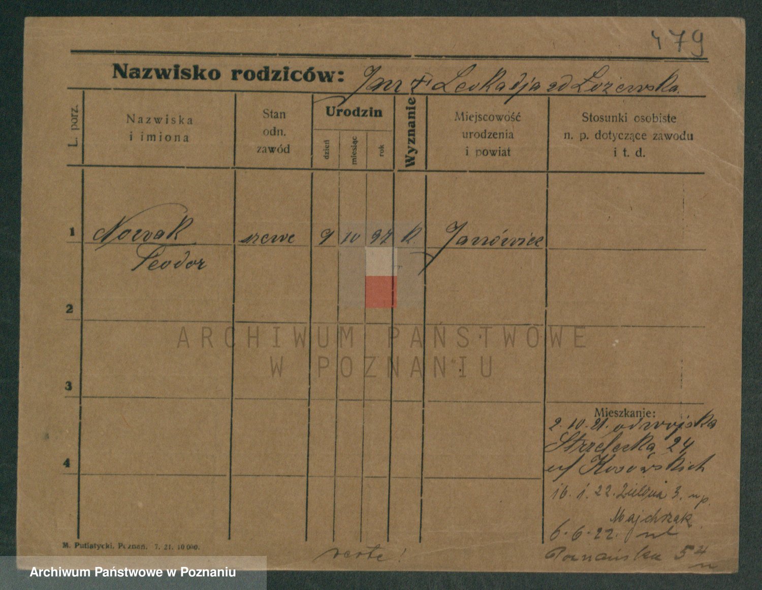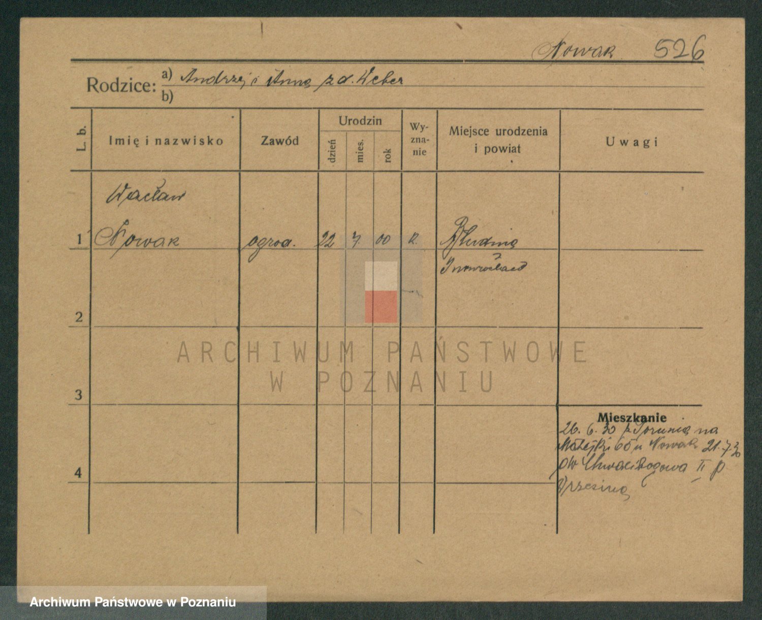 Podgląd karty osobowej dostępny jest po kliknięciu na nazwisko lub ikonkę karty. Można dokonywać powiększenia (ikony na górze) lub przechodzić między kolejnymi skanami (strzałki po bokach).