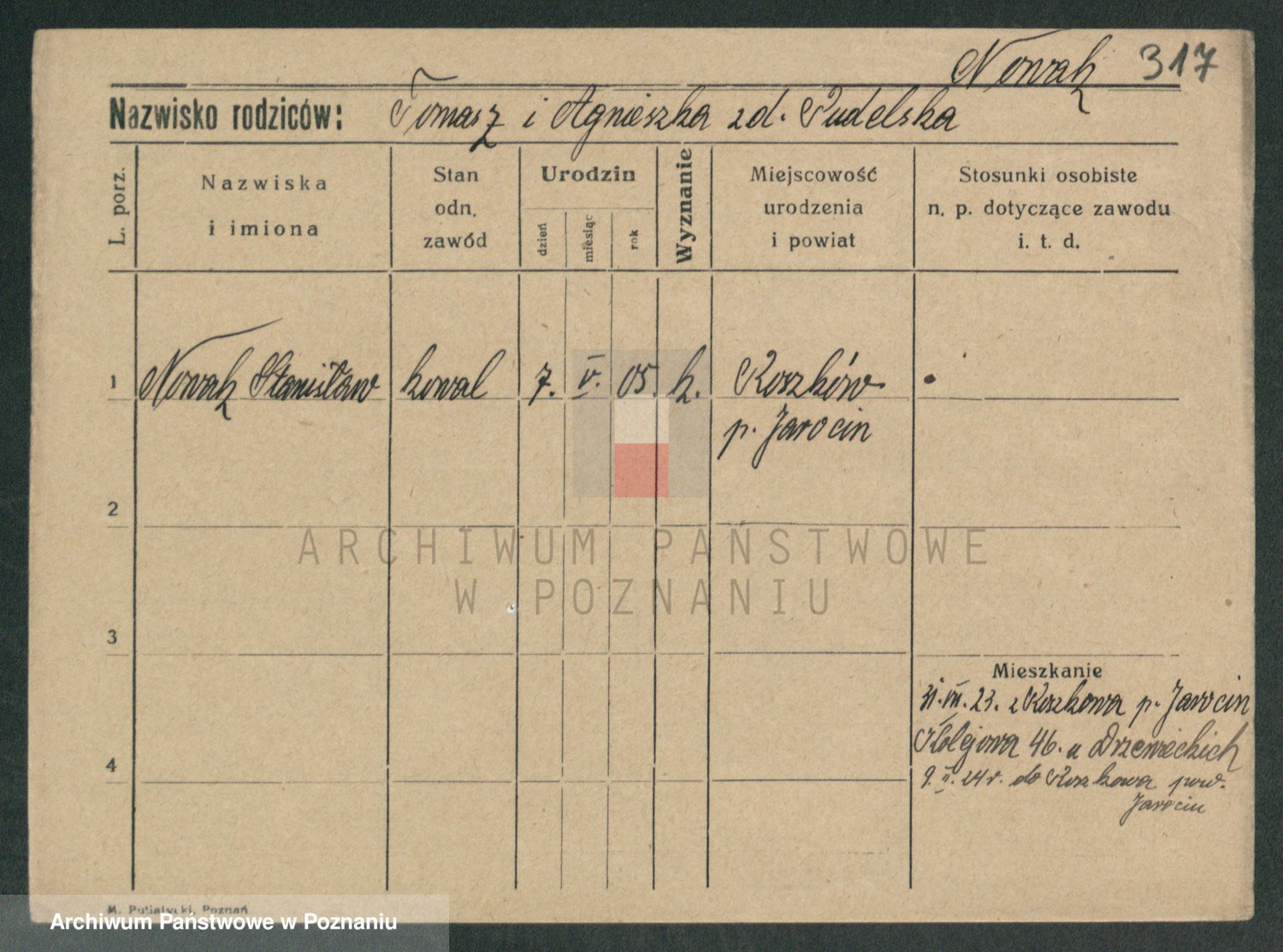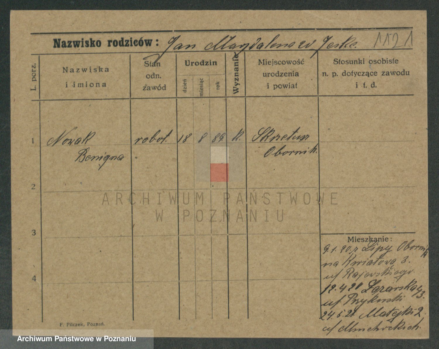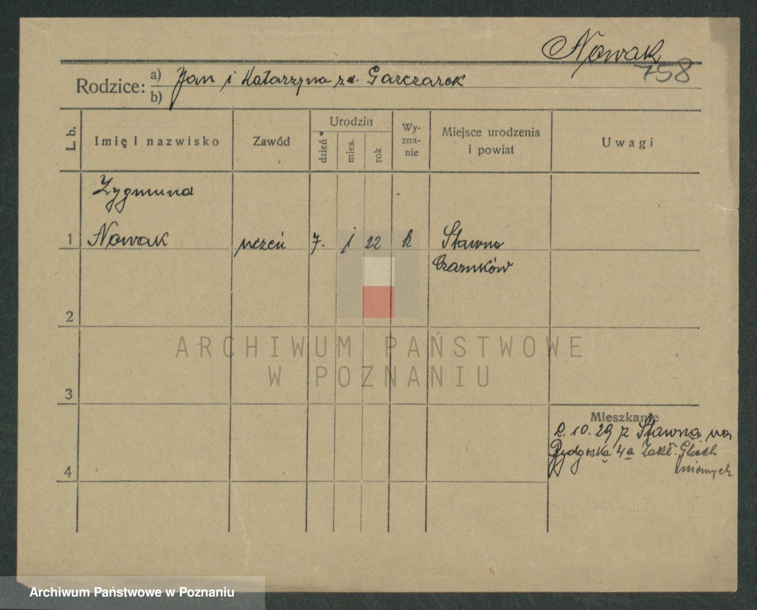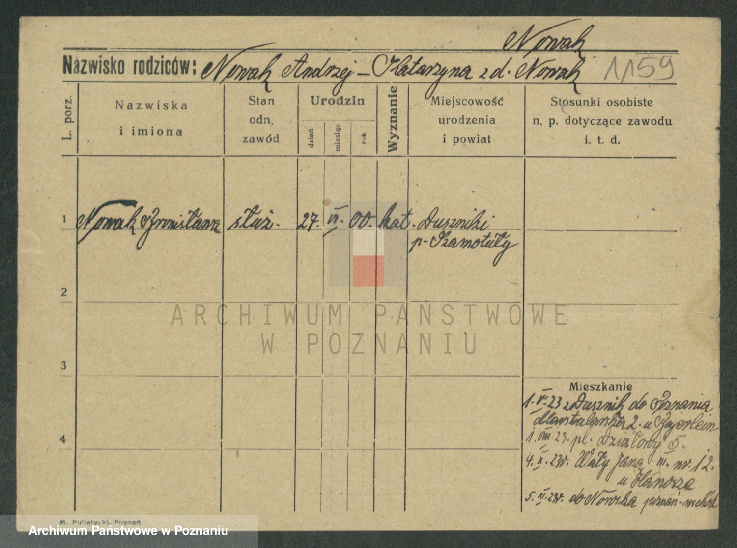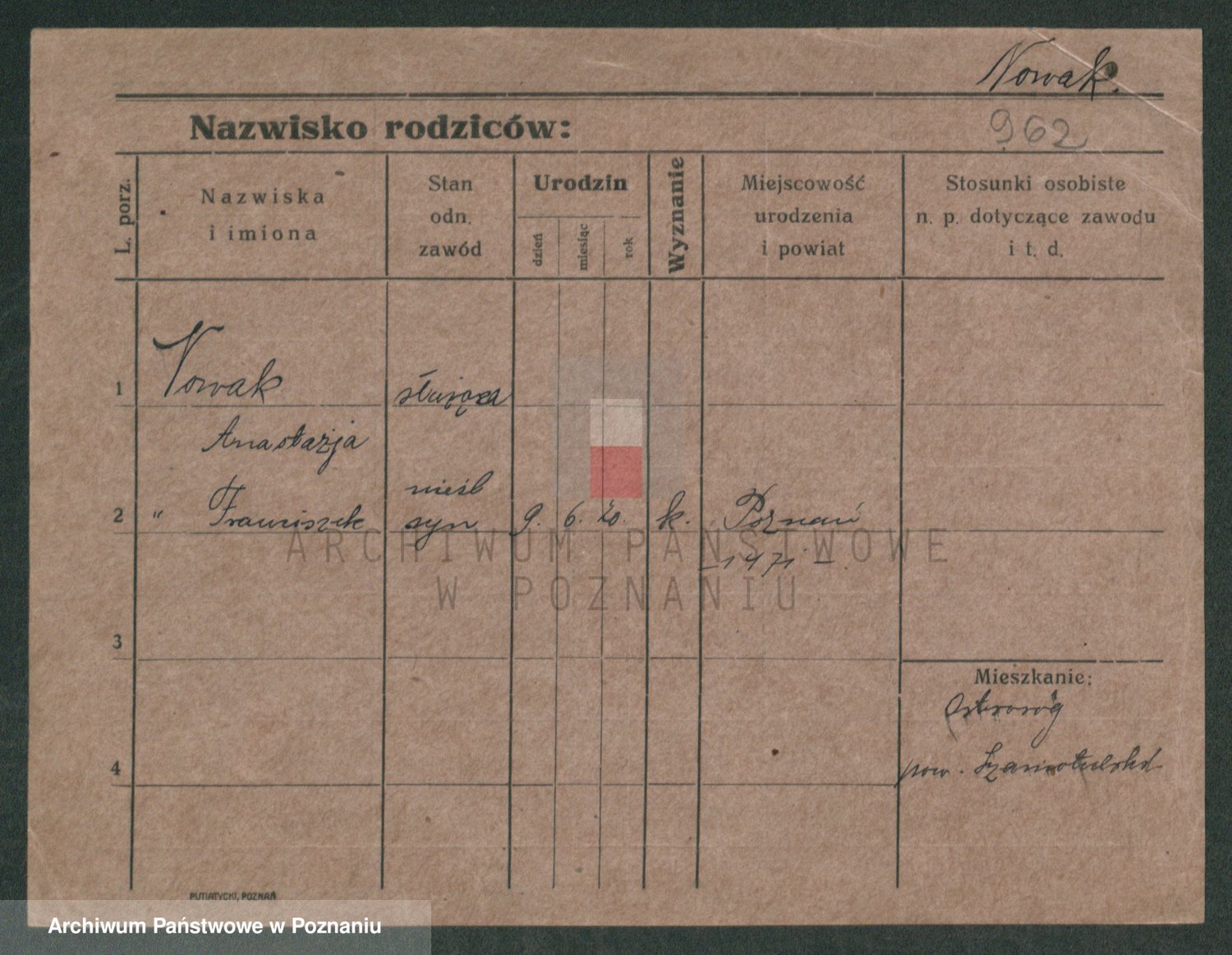 Podgląd karty osobowej dostępny jest po kliknięciu na nazwisko lub ikonkę karty. Można dokonywać powiększenia (ikony na górze) lub przechodzić między kolejnymi skanami (strzałki po bokach).