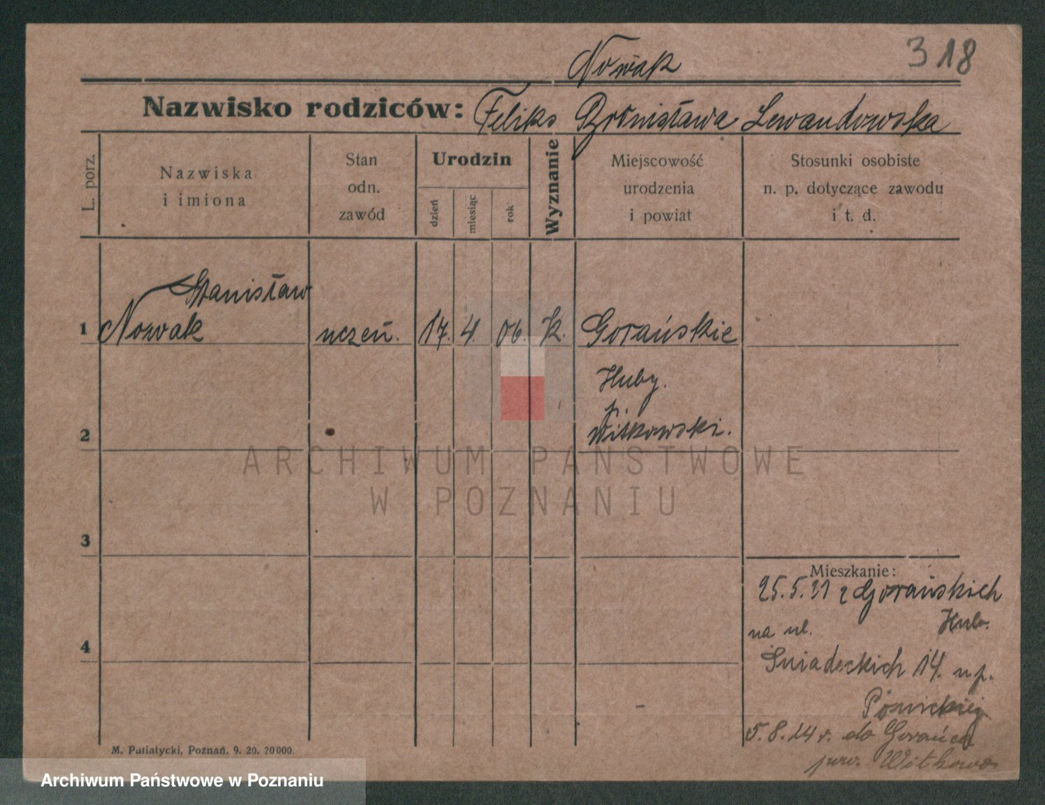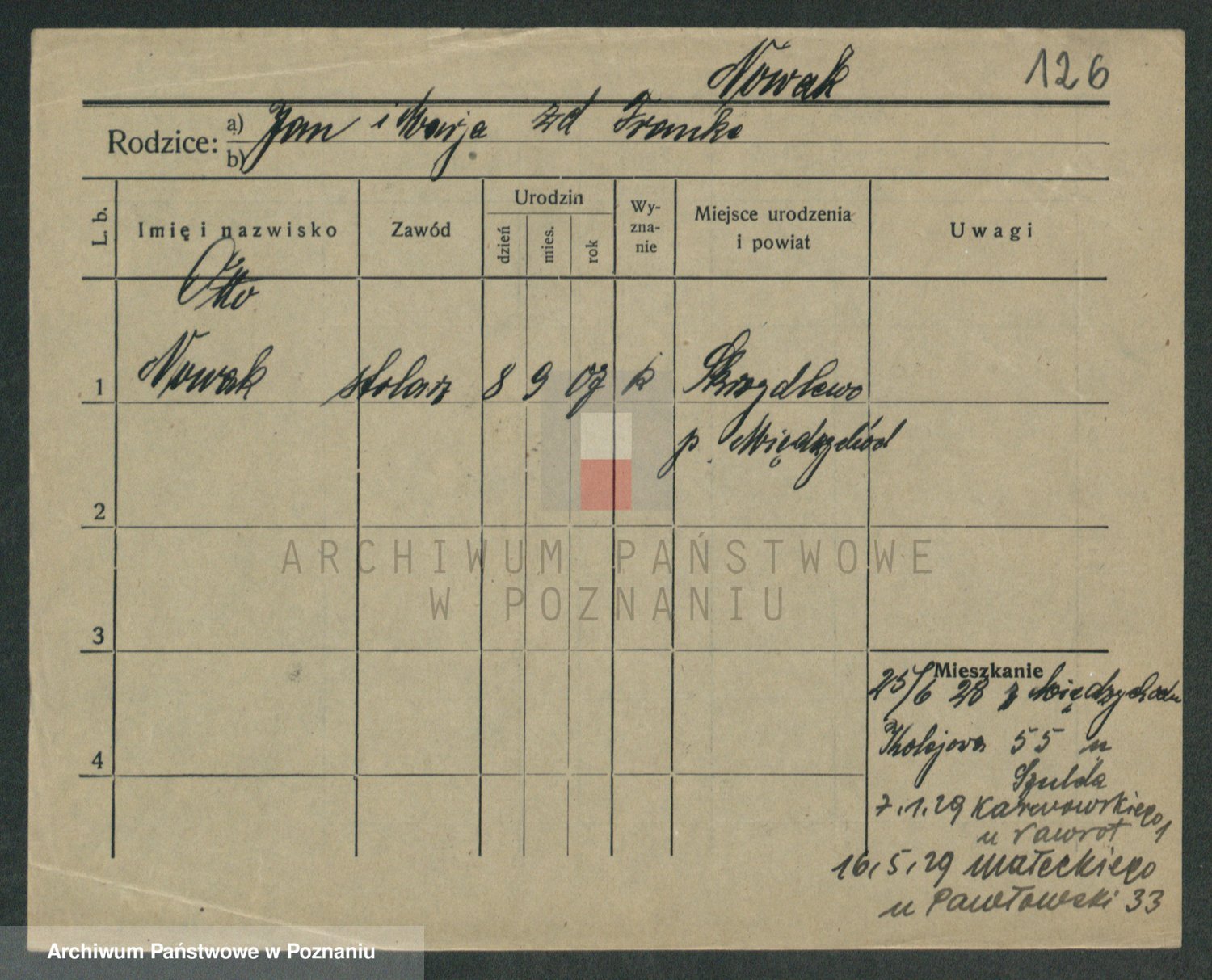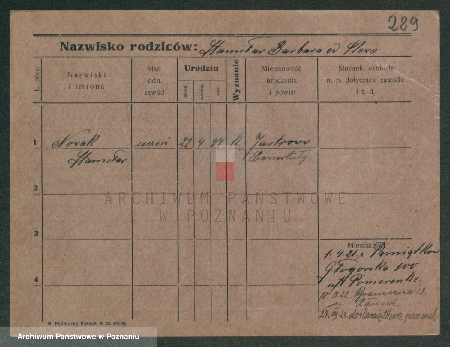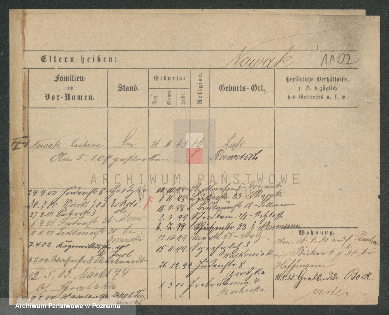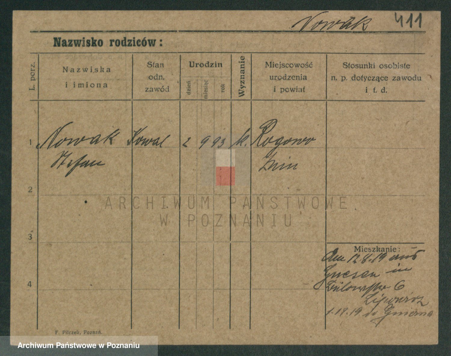 Podgląd karty osobowej dostępny jest po kliknięciu na nazwisko lub ikonkę karty. Można dokonywać powiększenia (ikony na górze) lub przechodzić między kolejnymi skanami (strzałki po bokach).