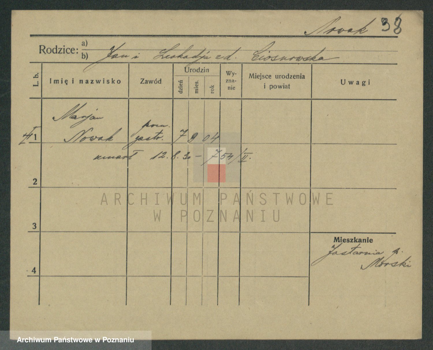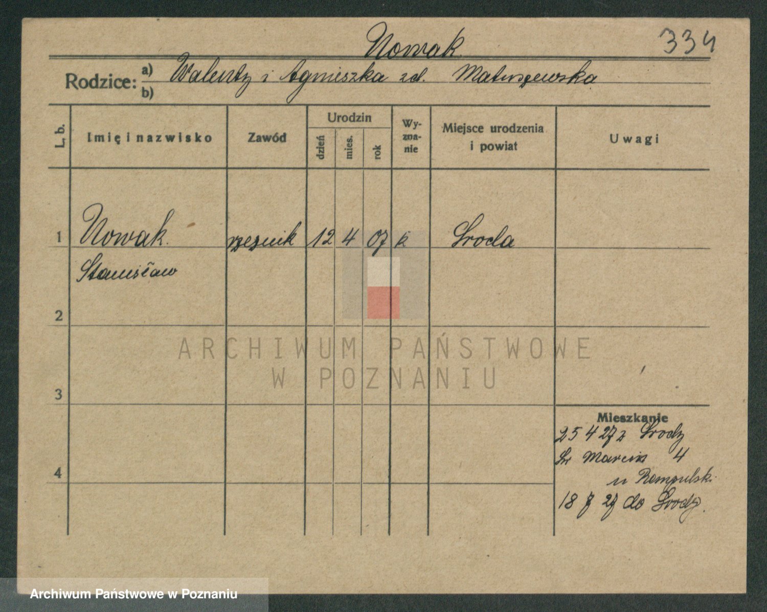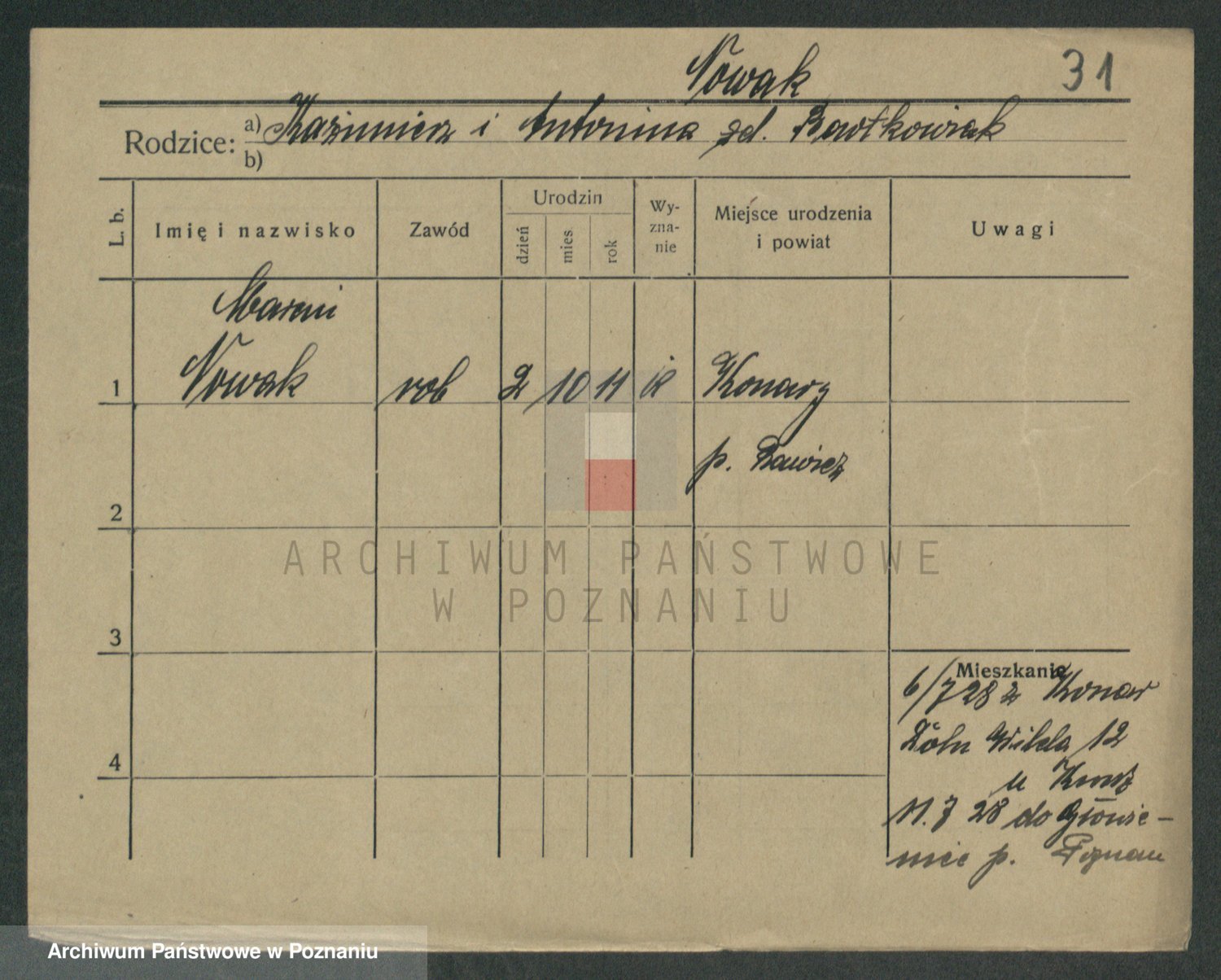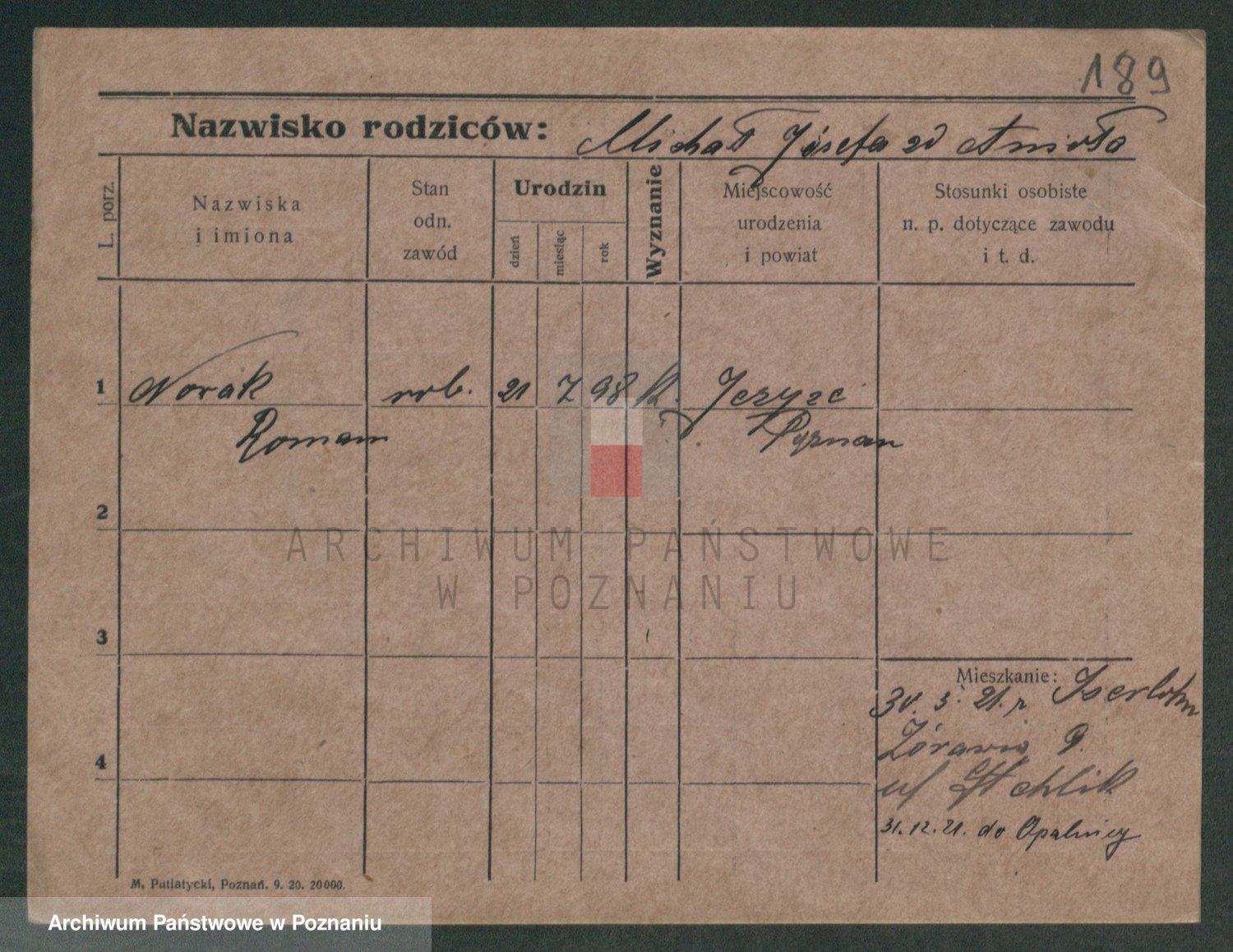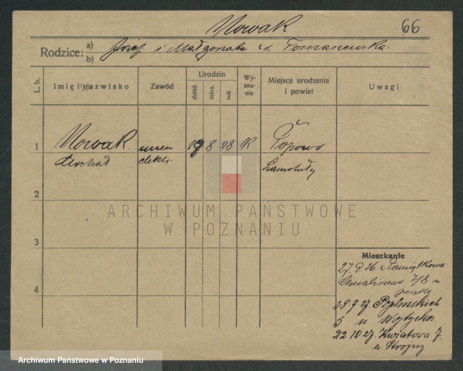 Podgląd karty osobowej dostępny jest po kliknięciu na nazwisko lub ikonkę karty. Można dokonywać powiększenia (ikony na górze) lub przechodzić między kolejnymi skanami (strzałki po bokach).