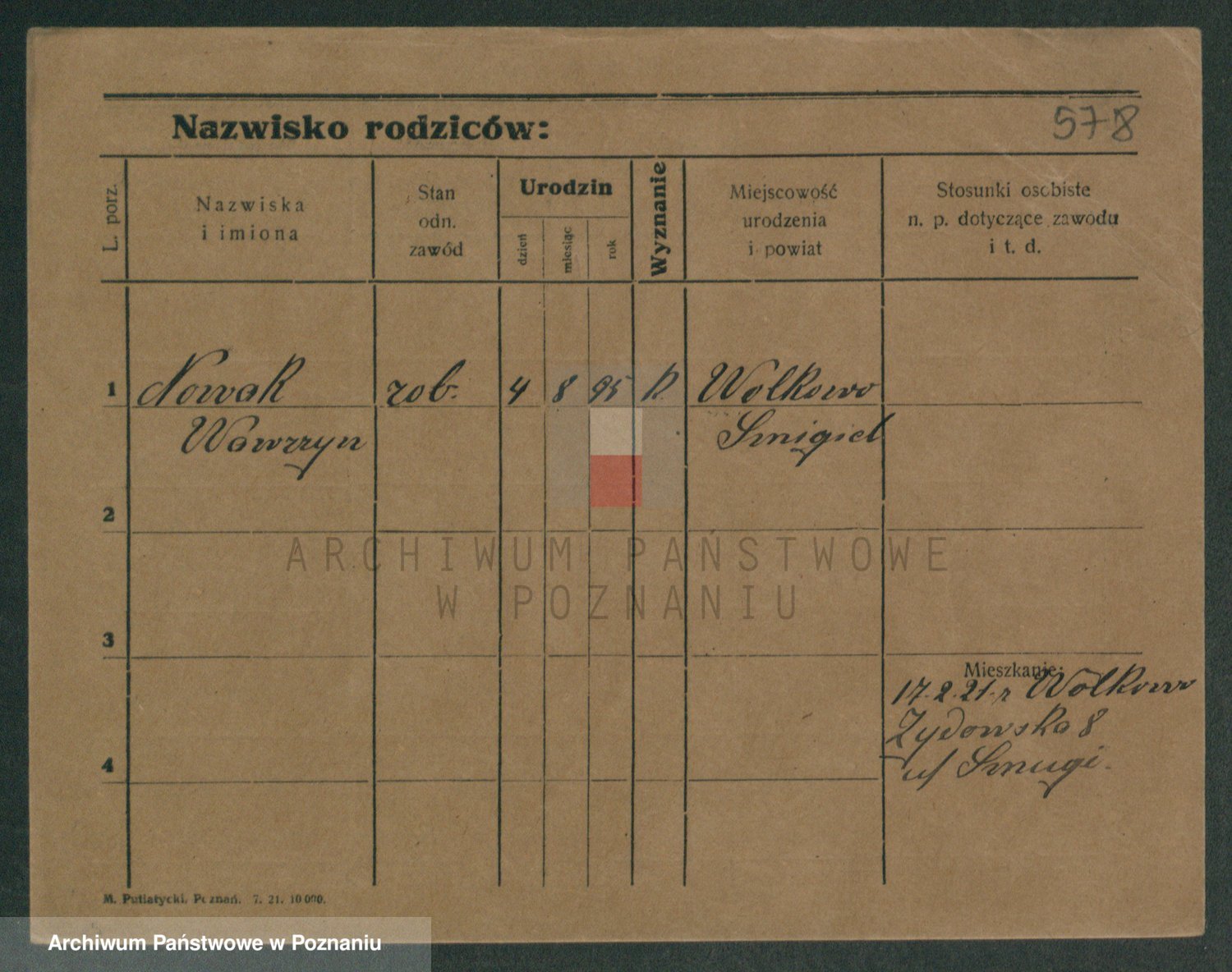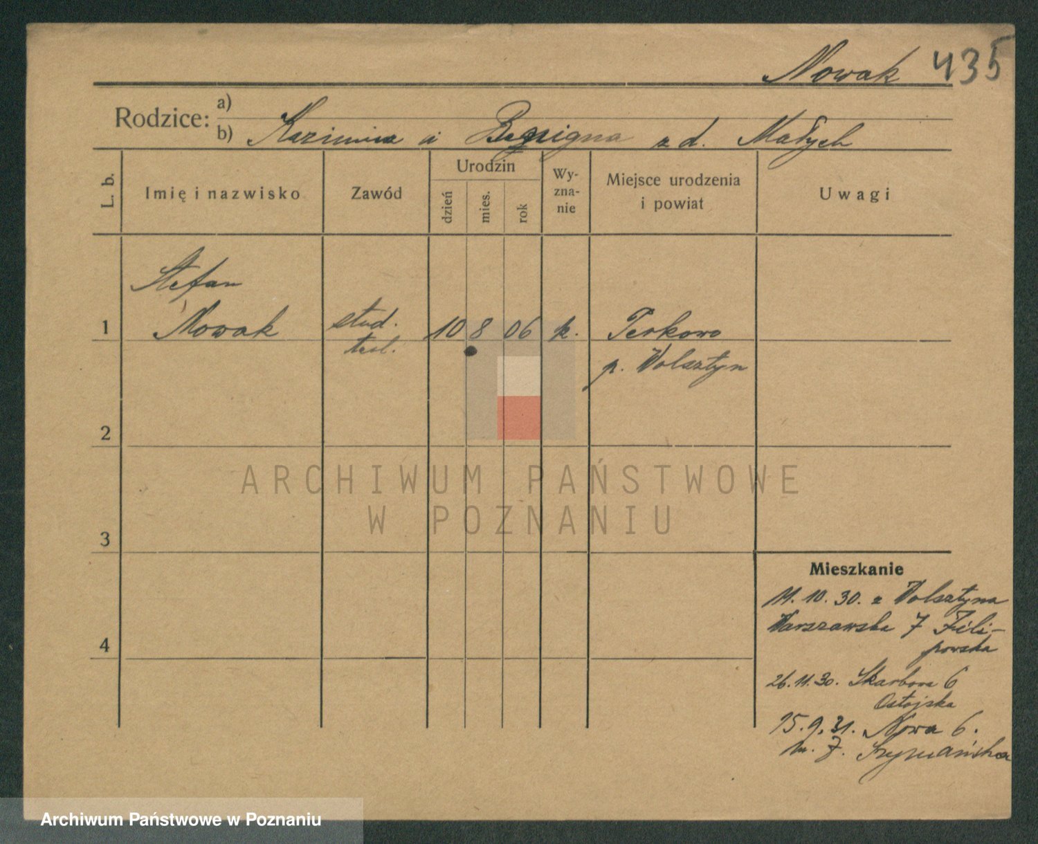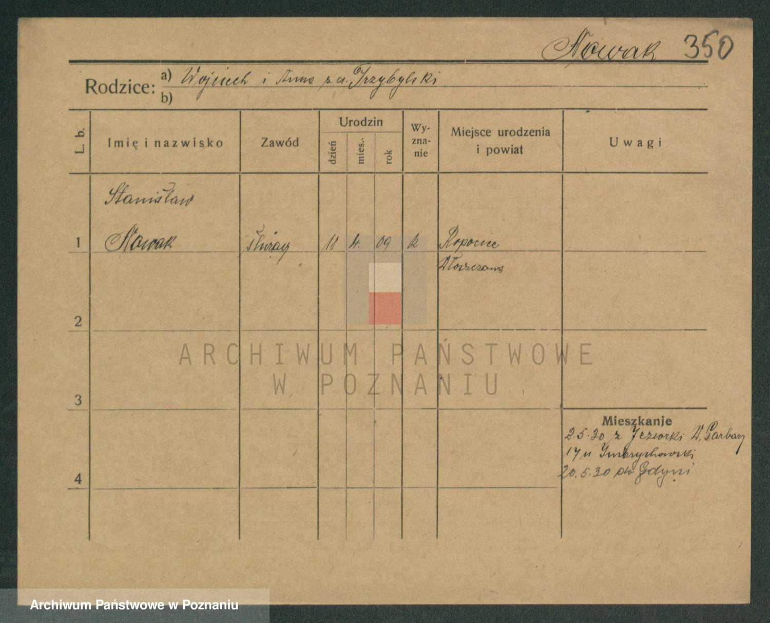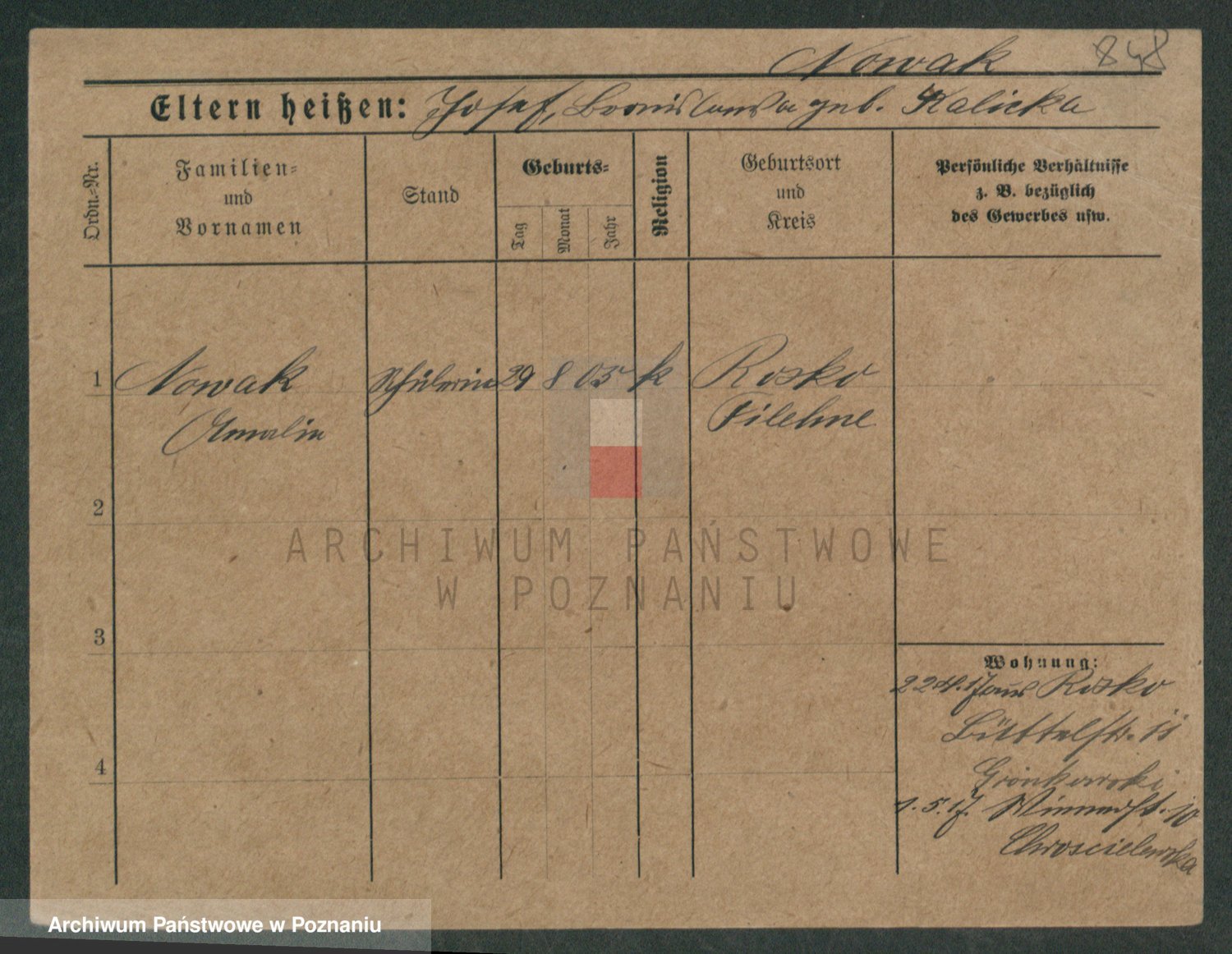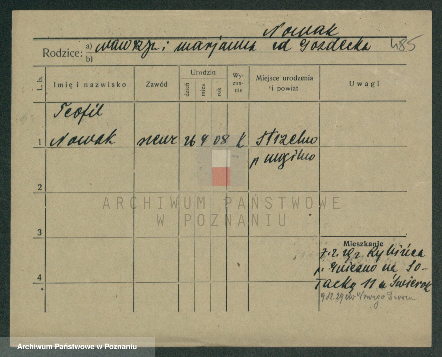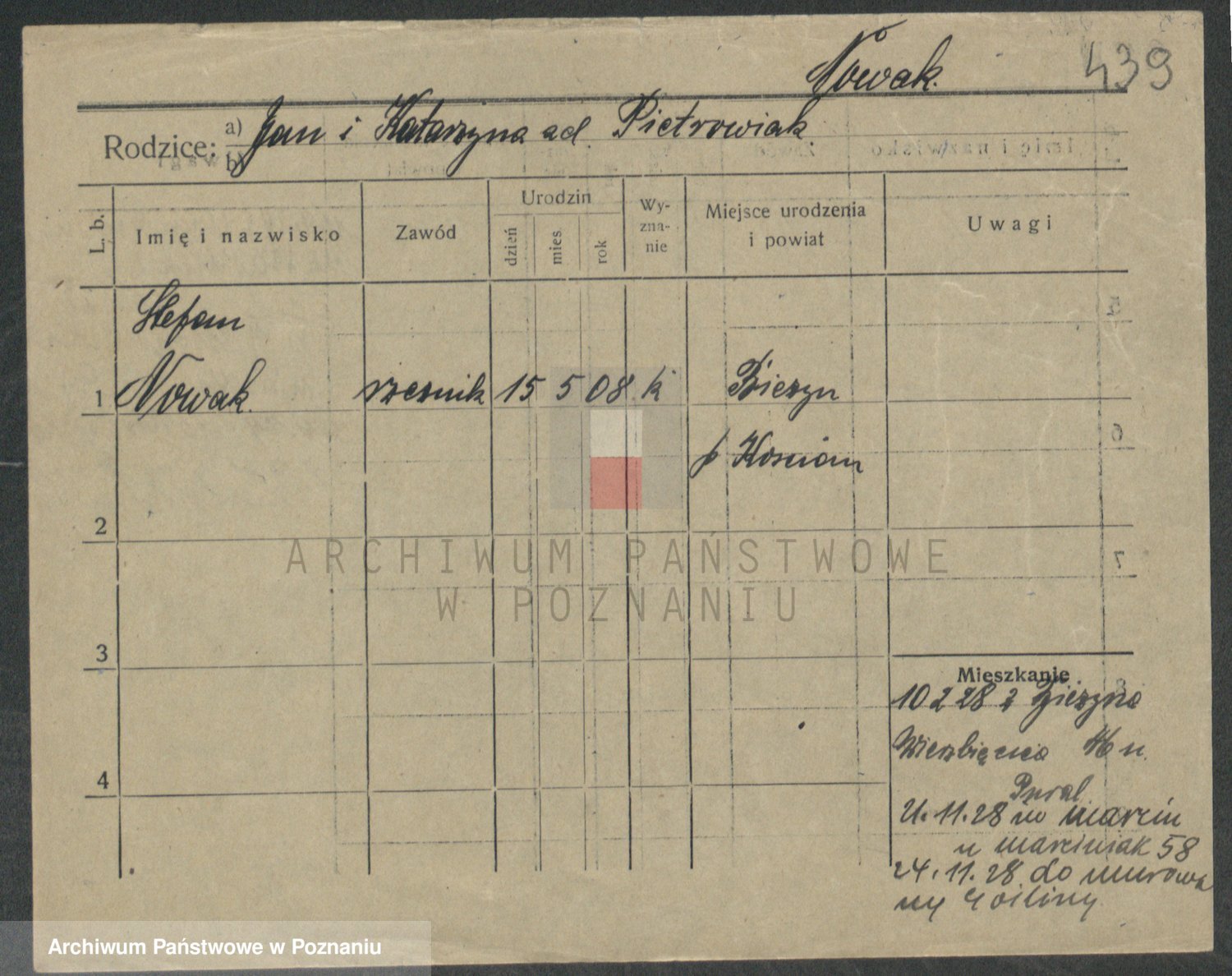 Podgląd karty osobowej dostępny jest po kliknięciu na nazwisko lub ikonkę karty. Można dokonywać powiększenia (ikony na górze) lub przechodzić między kolejnymi skanami (strzałki po bokach).
