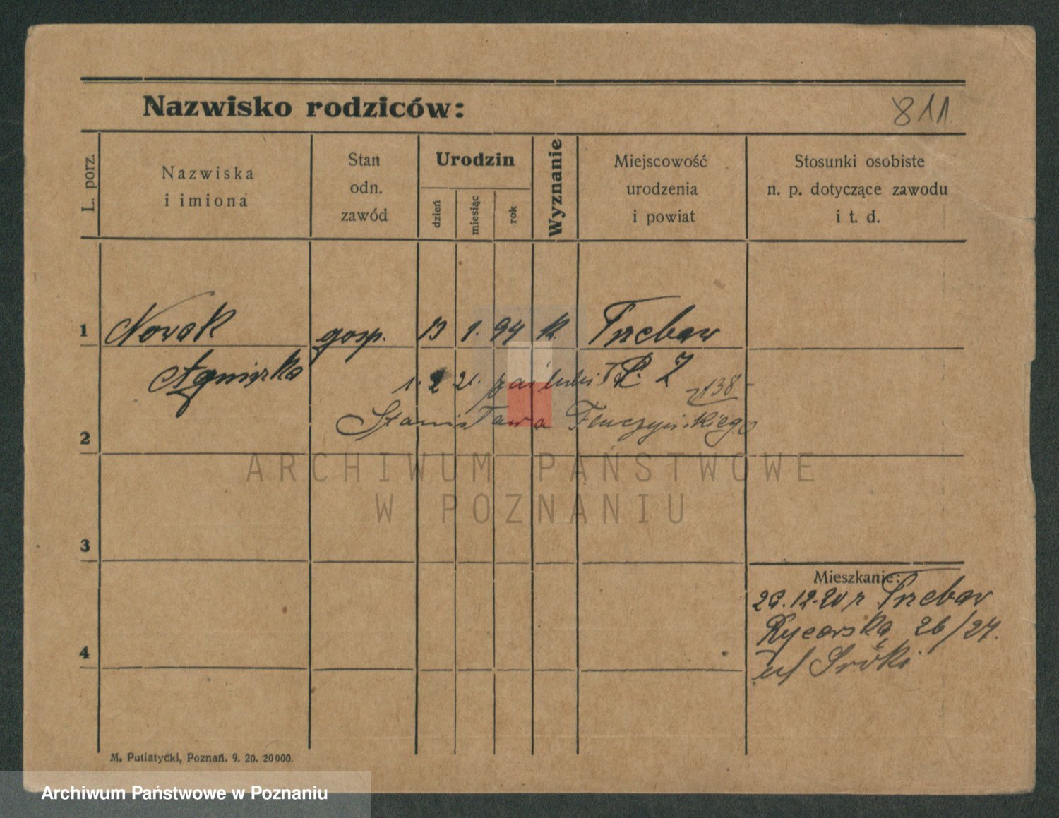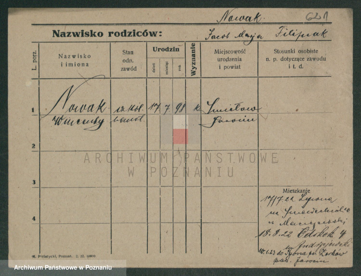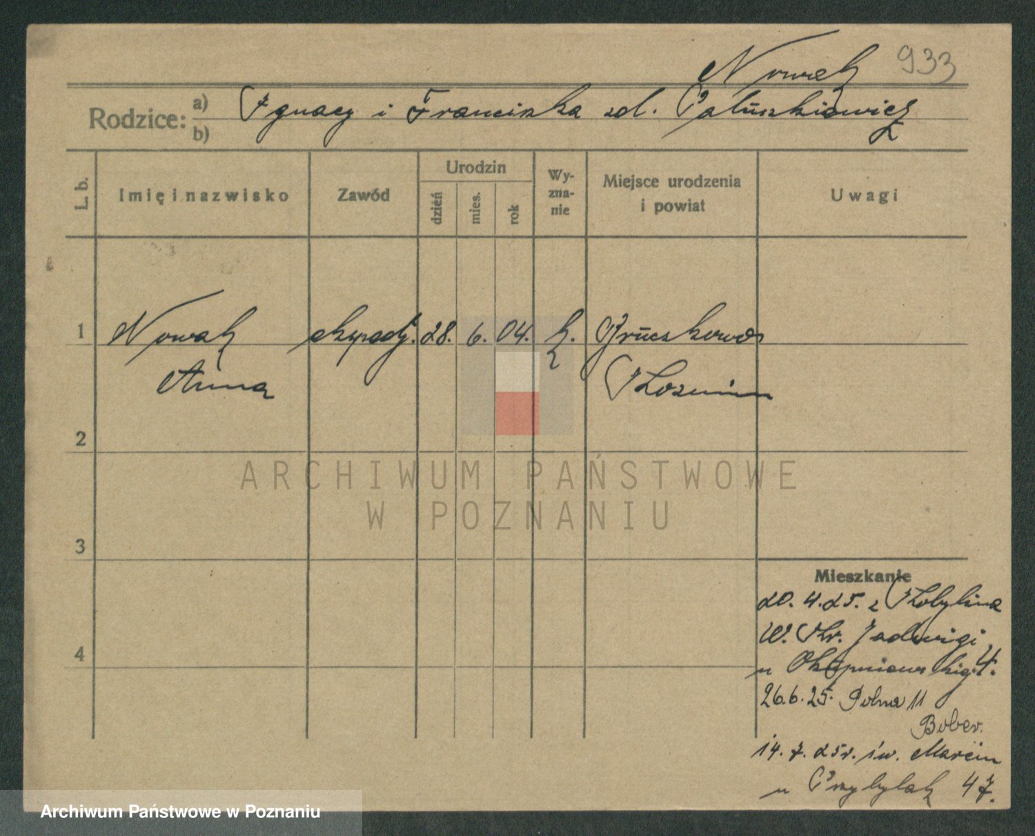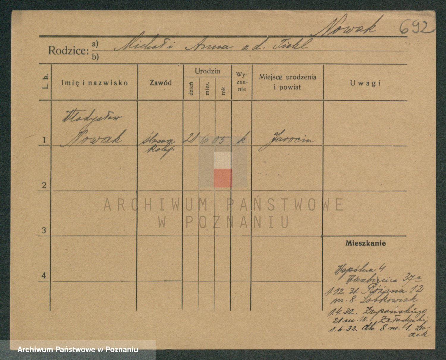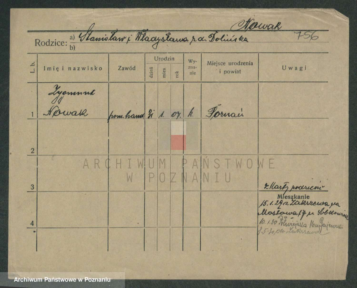Podgląd karty osobowej dostępny jest po kliknięciu na nazwisko lub ikonkę karty. Można dokonywać powiększenia (ikony na górze) lub przechodzić między kolejnymi skanami (strzałki po bokach).