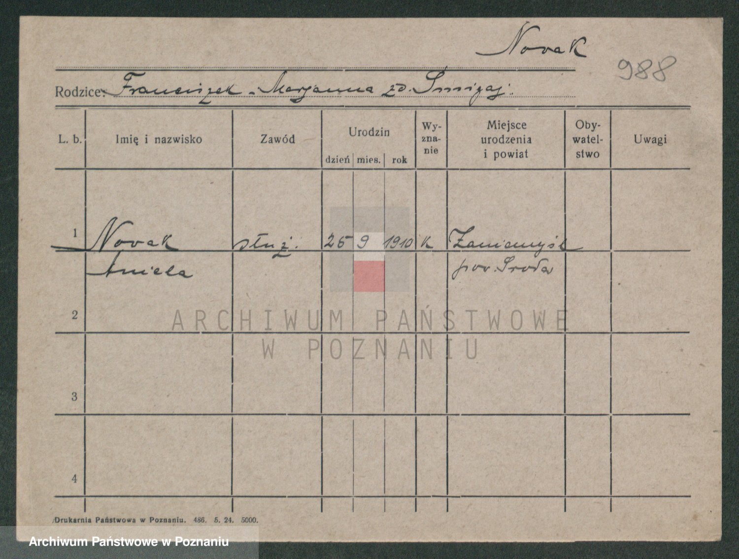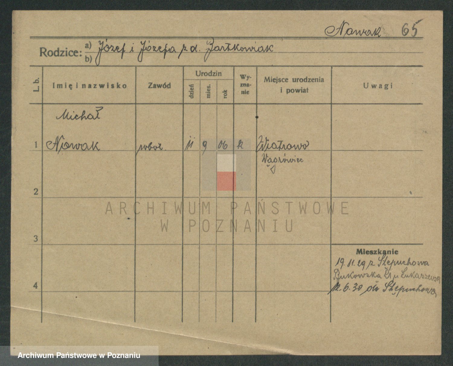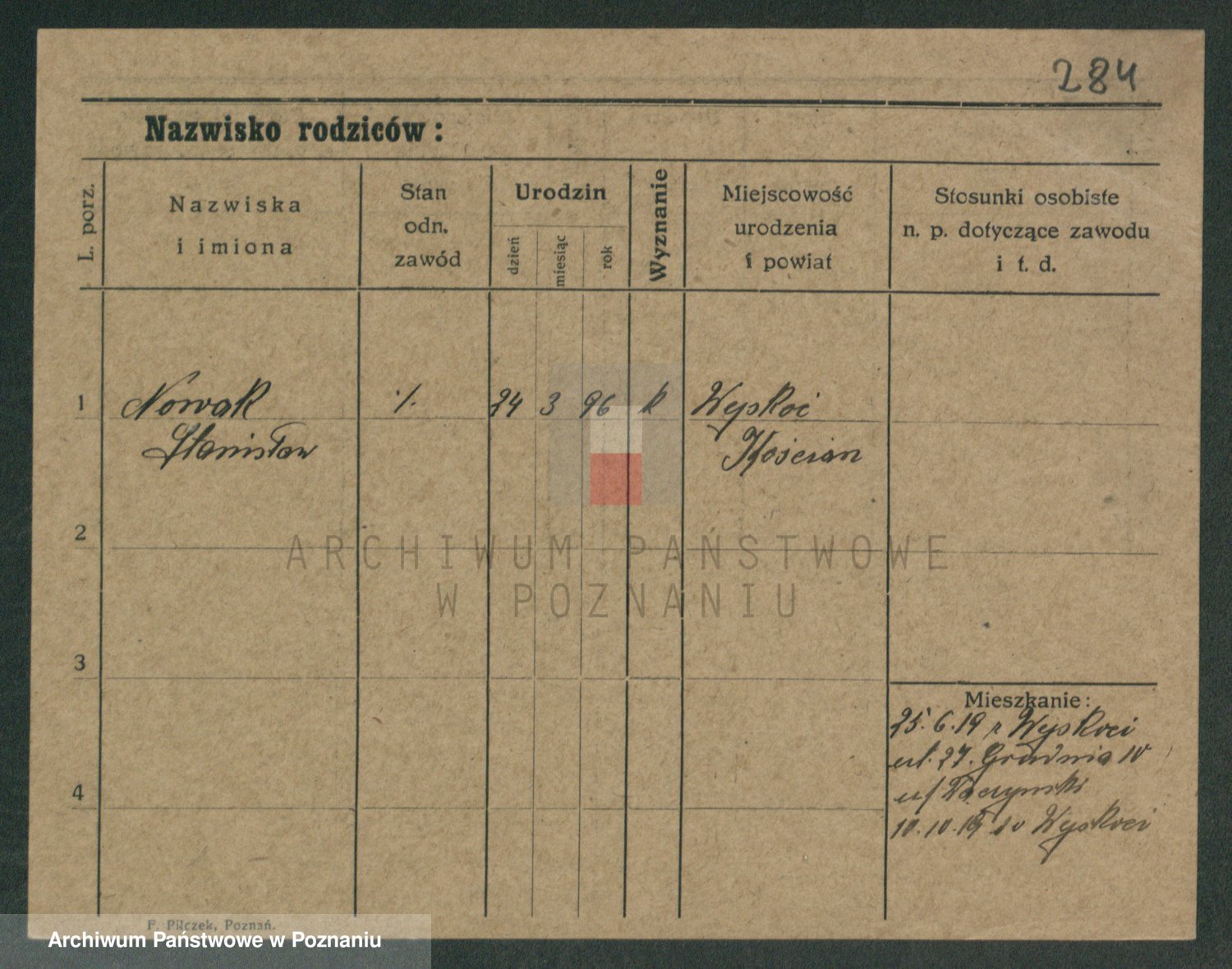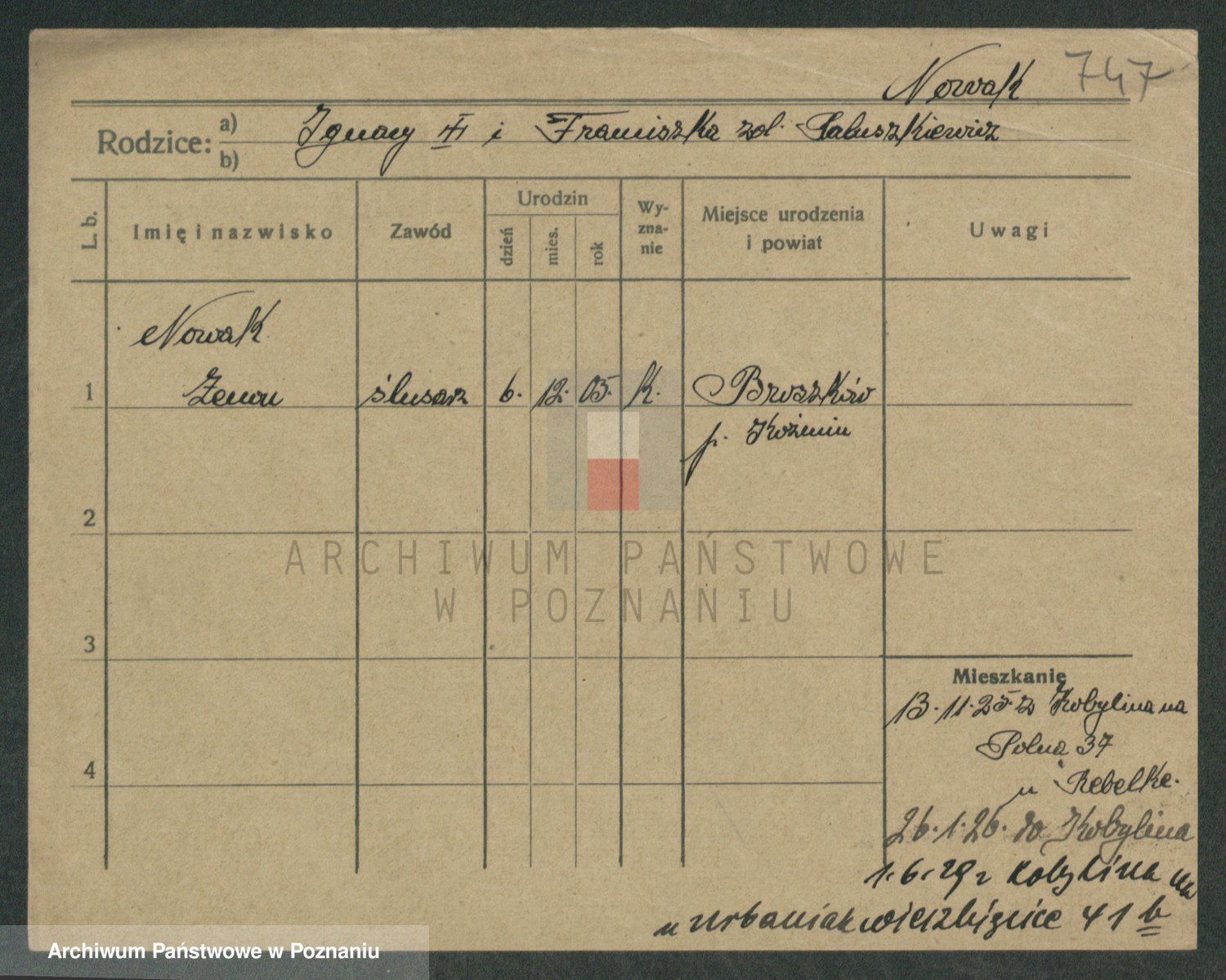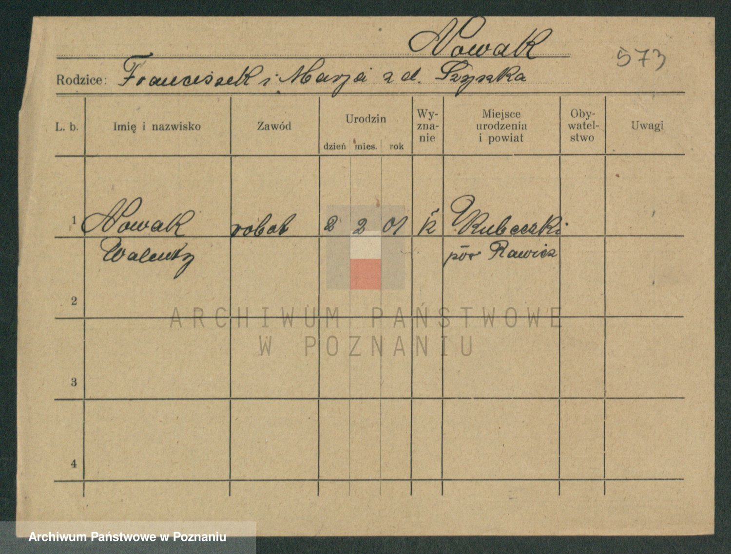 Podgląd karty osobowej dostępny jest po kliknięciu na nazwisko lub ikonkę karty. Można dokonywać powiększenia (ikony na górze) lub przechodzić między kolejnymi skanami (strzałki po bokach).