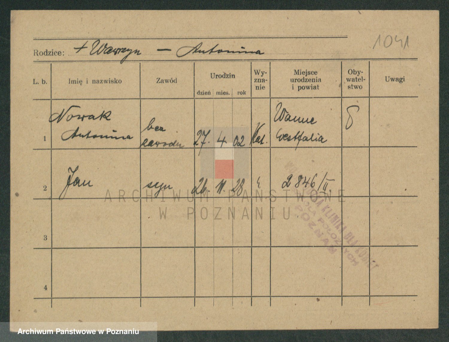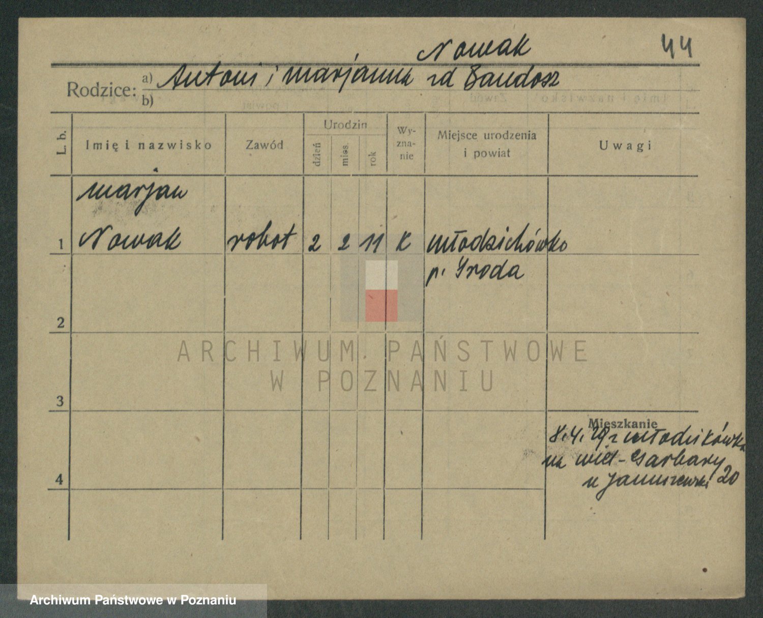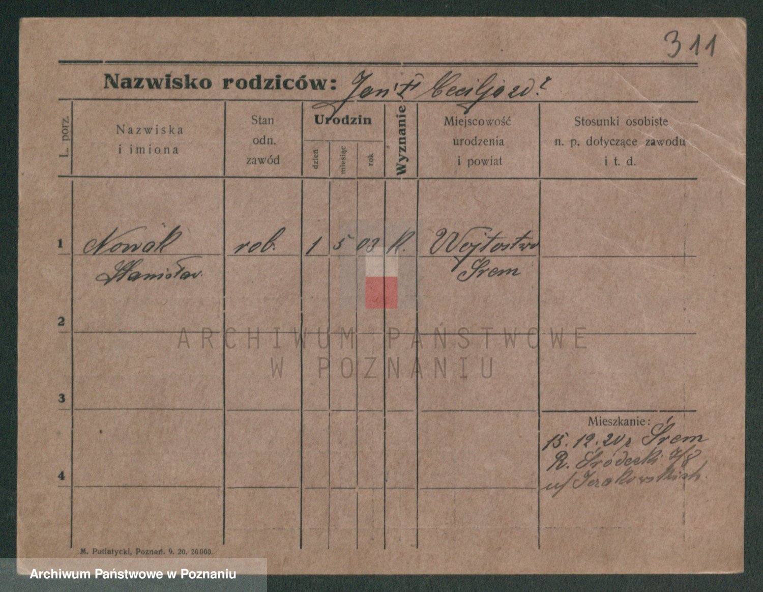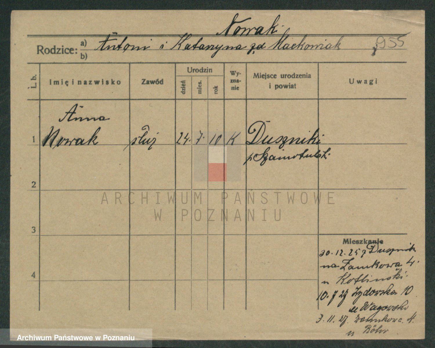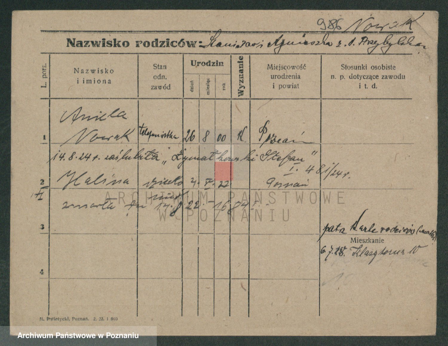 Podgląd karty osobowej dostępny jest po kliknięciu na nazwisko lub ikonkę karty. Można dokonywać powiększenia (ikony na górze) lub przechodzić między kolejnymi skanami (strzałki po bokach).