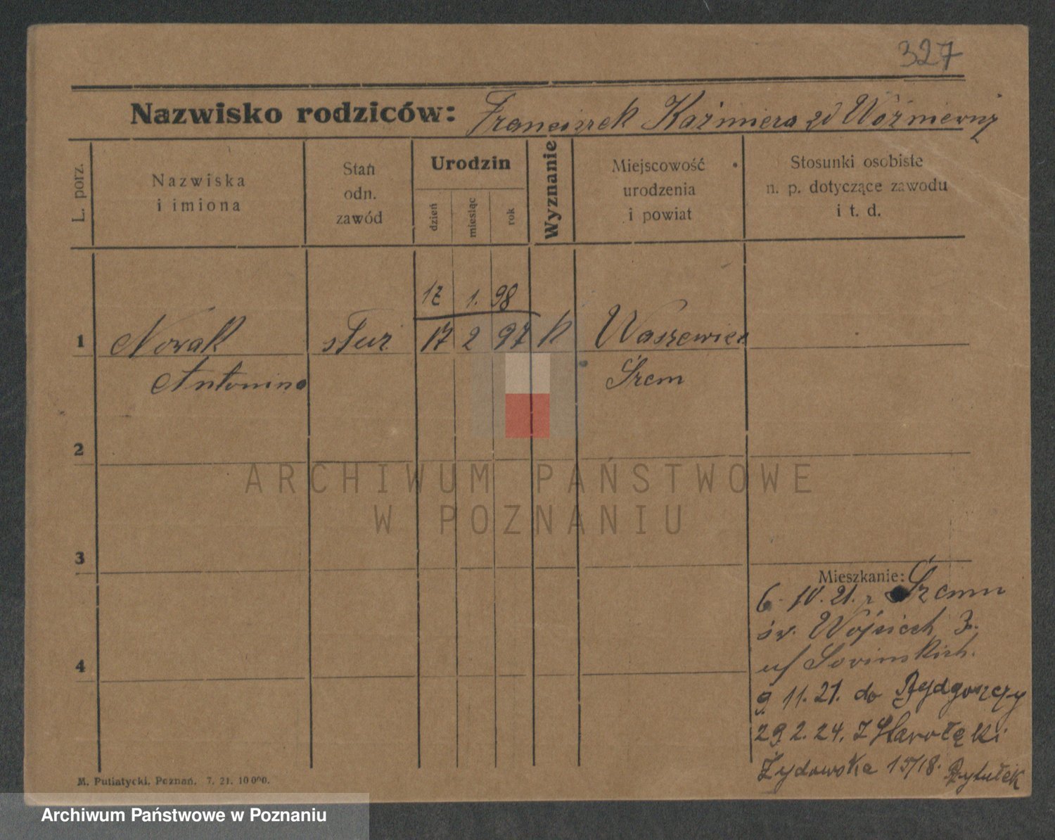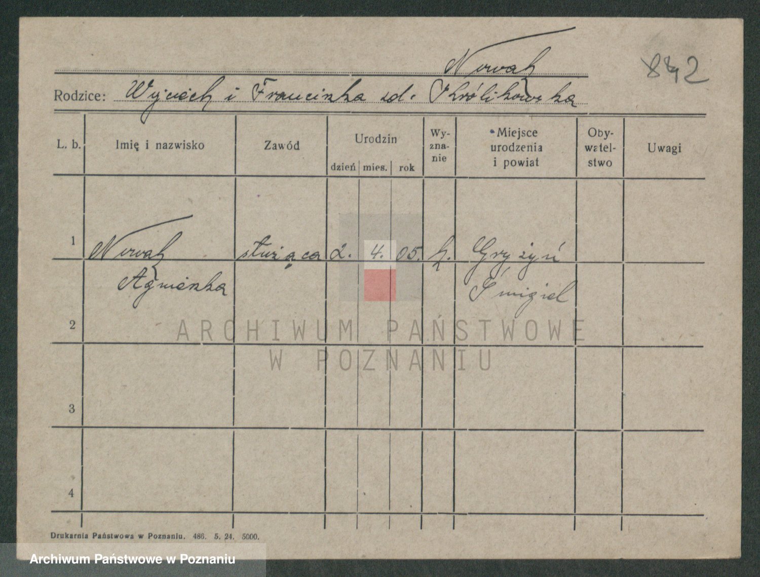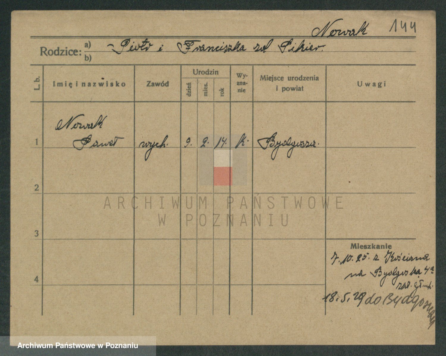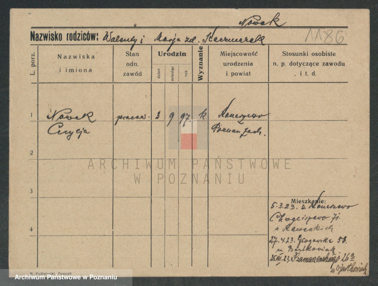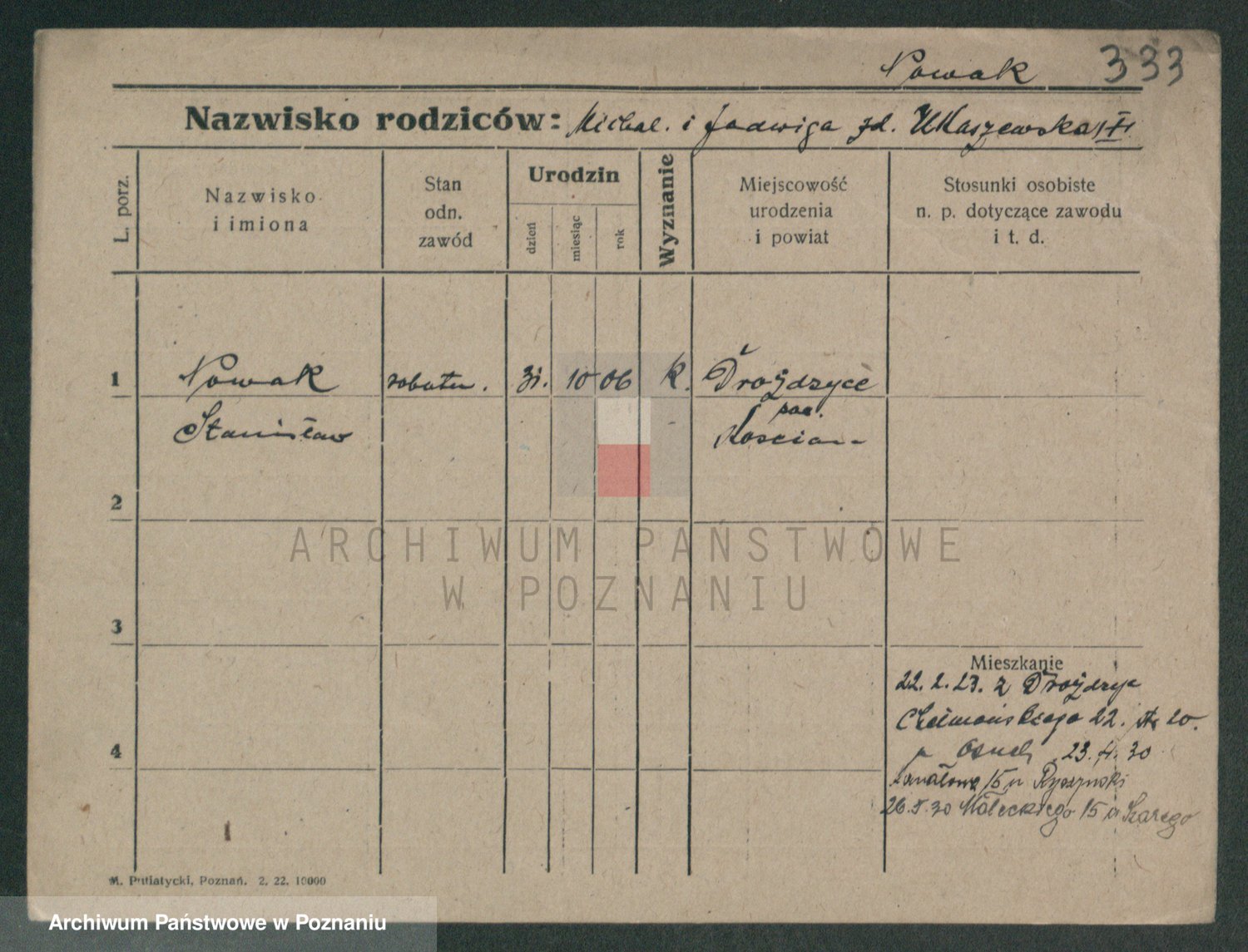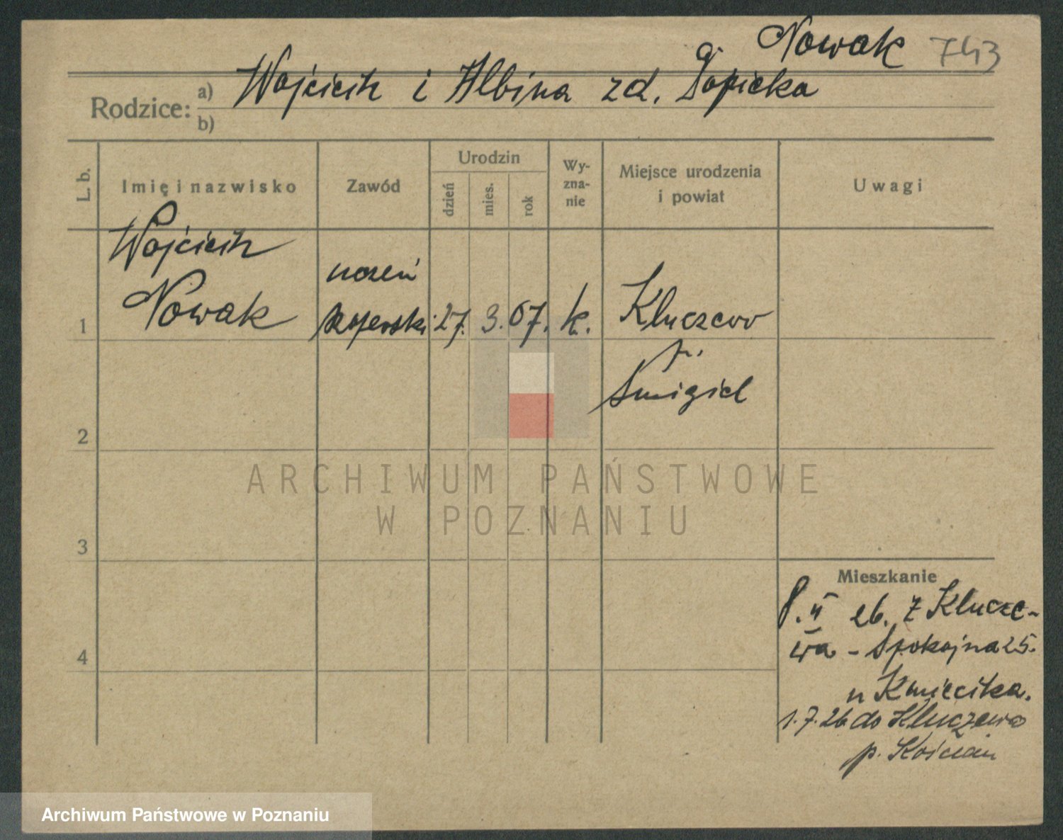 Podgląd karty osobowej dostępny jest po kliknięciu na nazwisko lub ikonkę karty. Można dokonywać powiększenia (ikony na górze) lub przechodzić między kolejnymi skanami (strzałki po bokach).