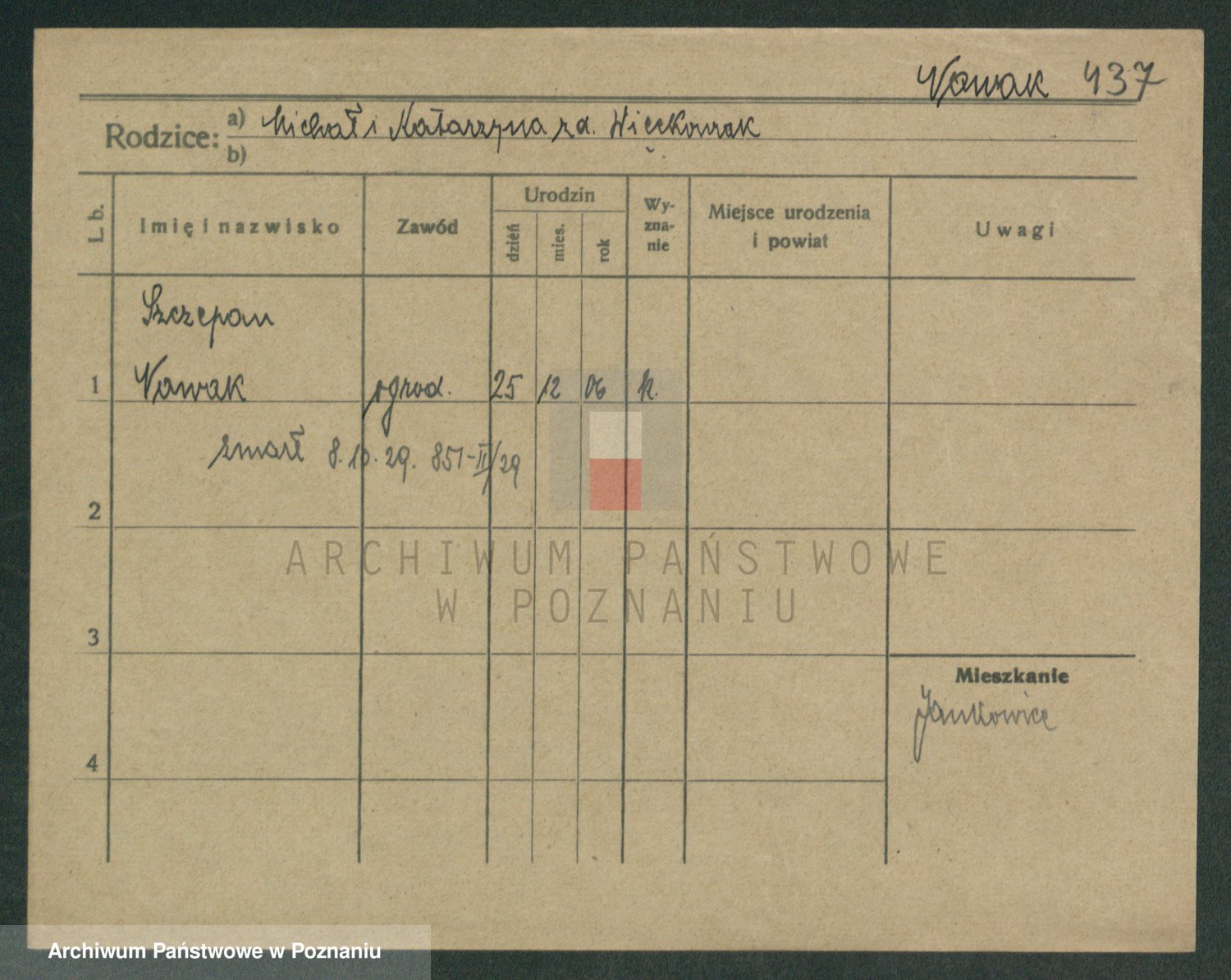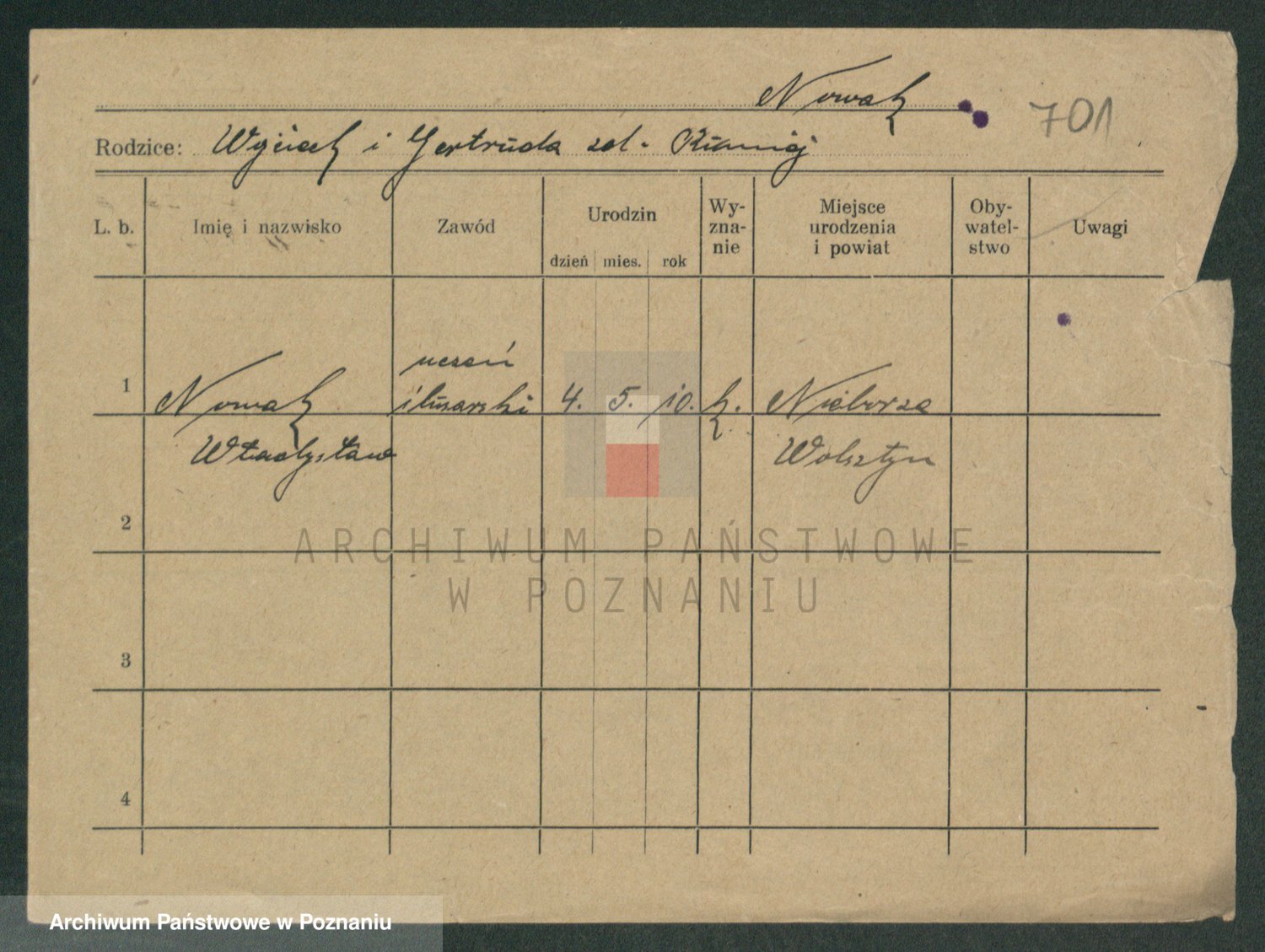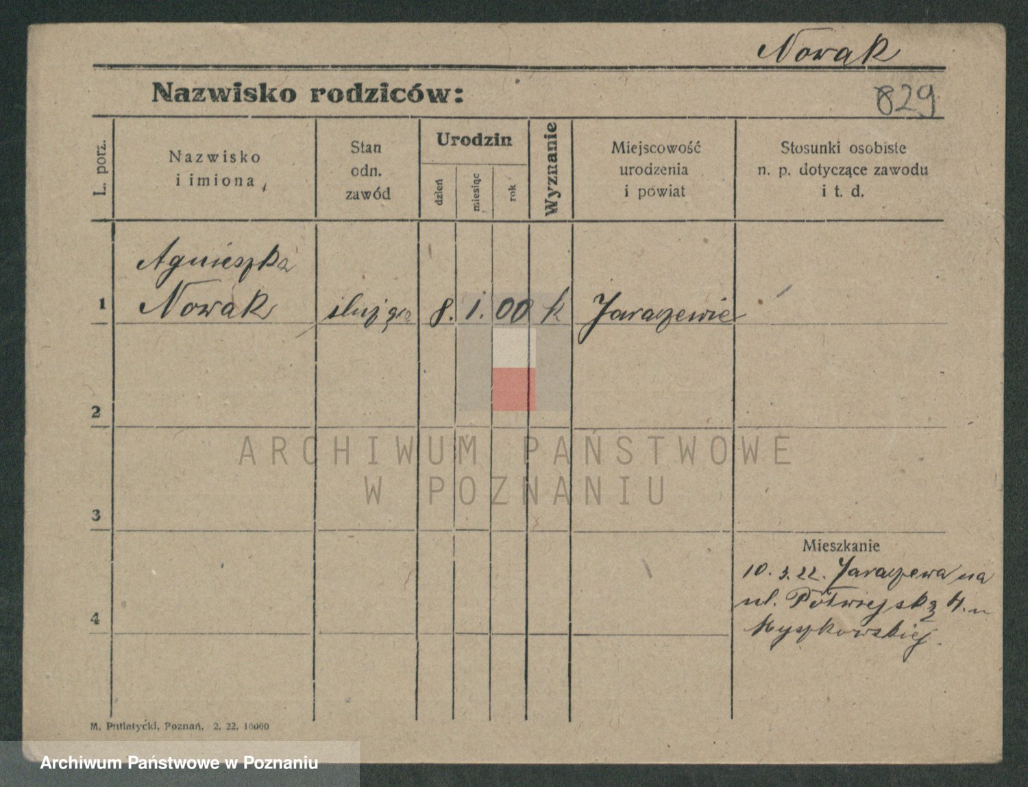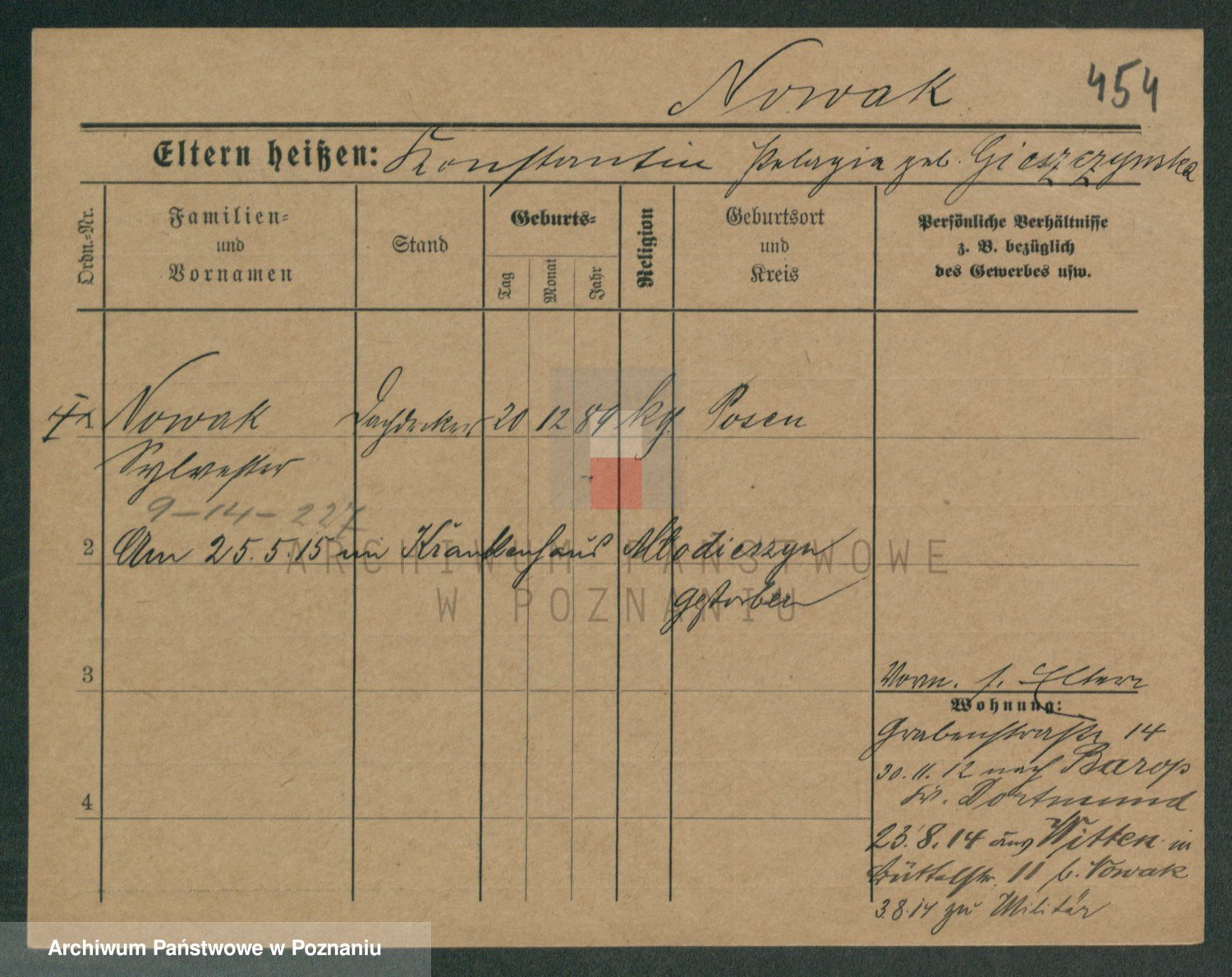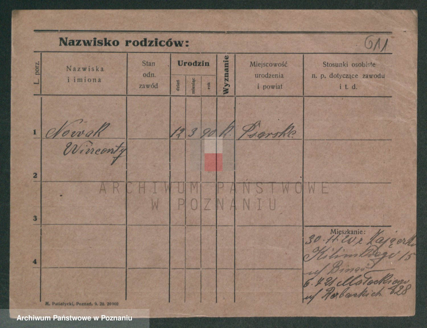 Podgląd karty osobowej dostępny jest po kliknięciu na nazwisko lub ikonkę karty. Można dokonywać powiększenia (ikony na górze) lub przechodzić między kolejnymi skanami (strzałki po bokach).