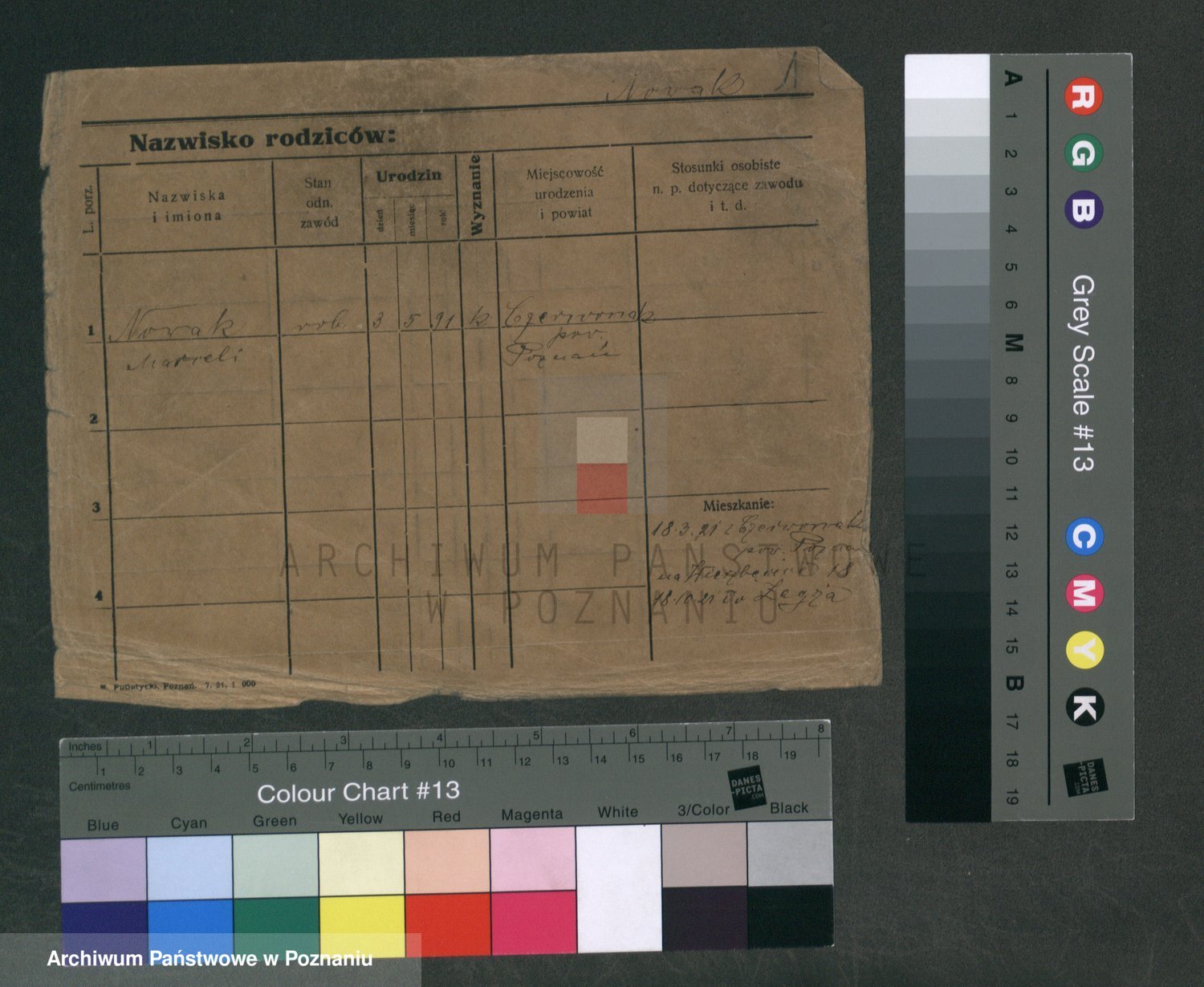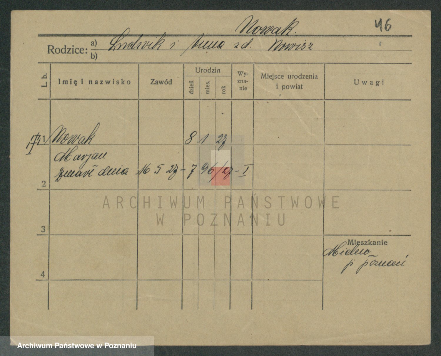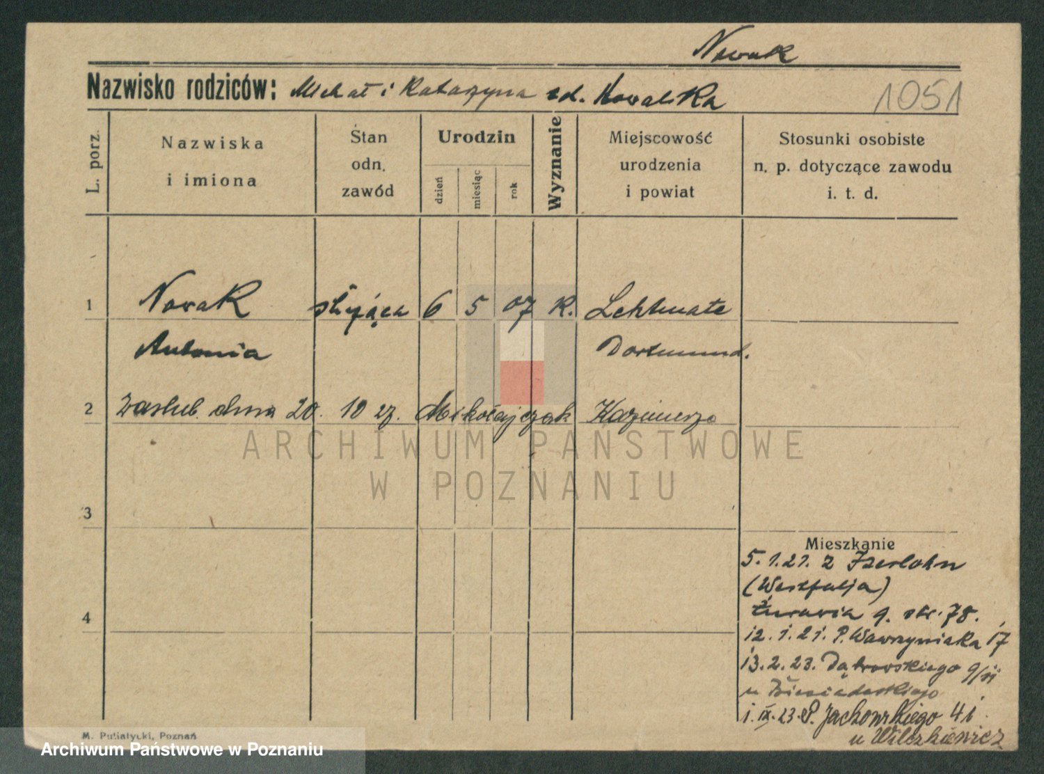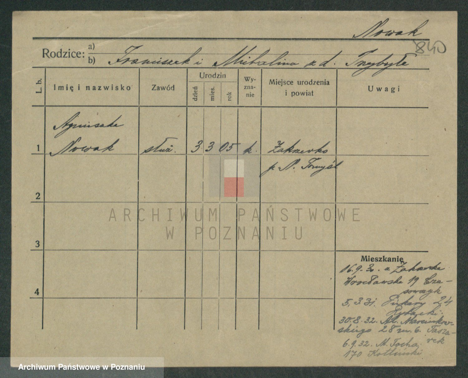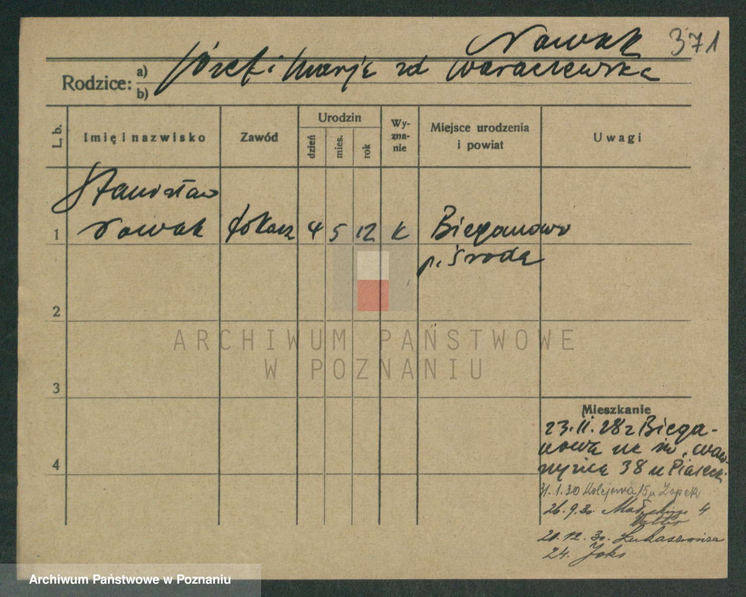 Podgląd karty osobowej dostępny jest po kliknięciu na nazwisko lub ikonkę karty. Można dokonywać powiększenia (ikony na górze) lub przechodzić między kolejnymi skanami (strzałki po bokach).