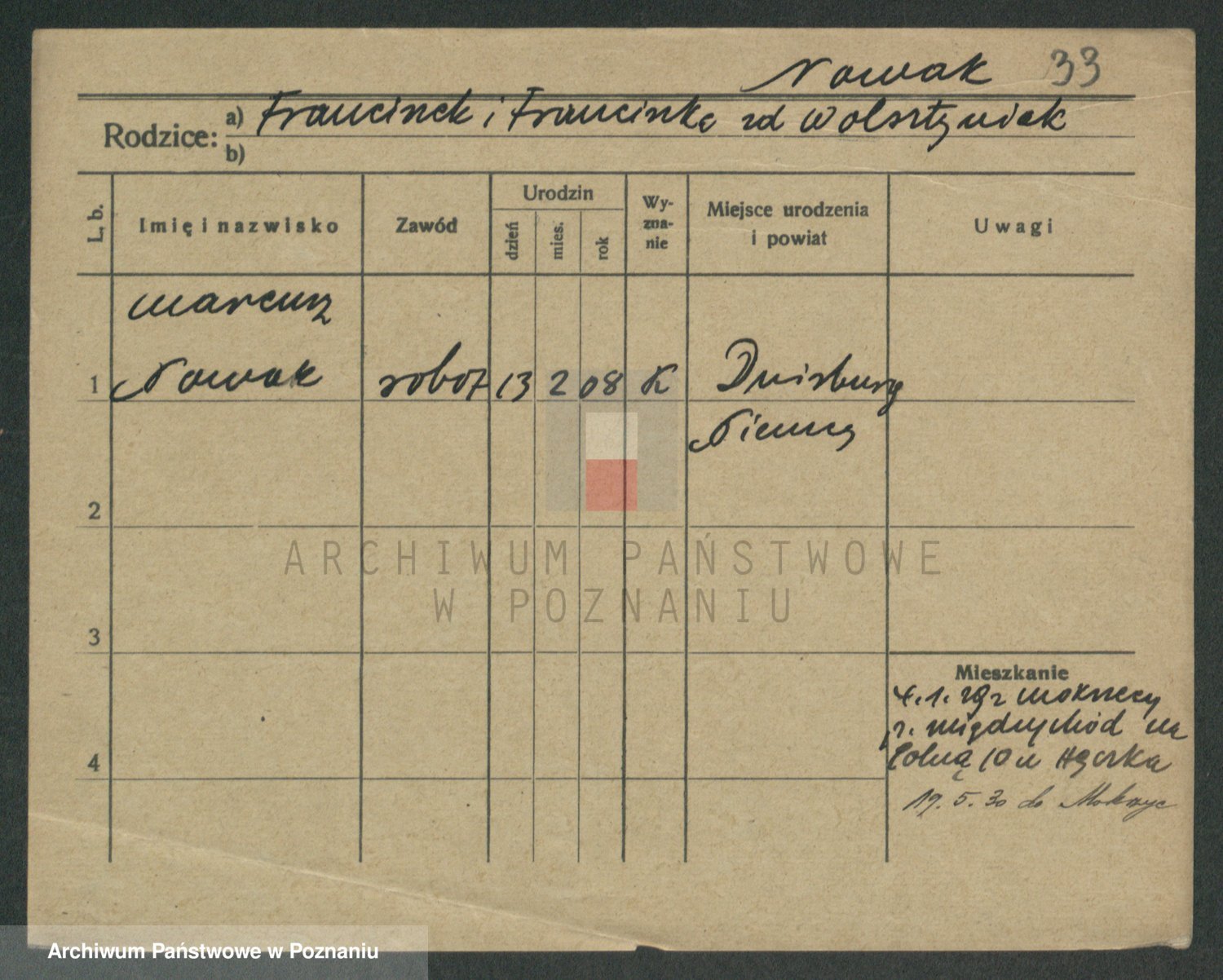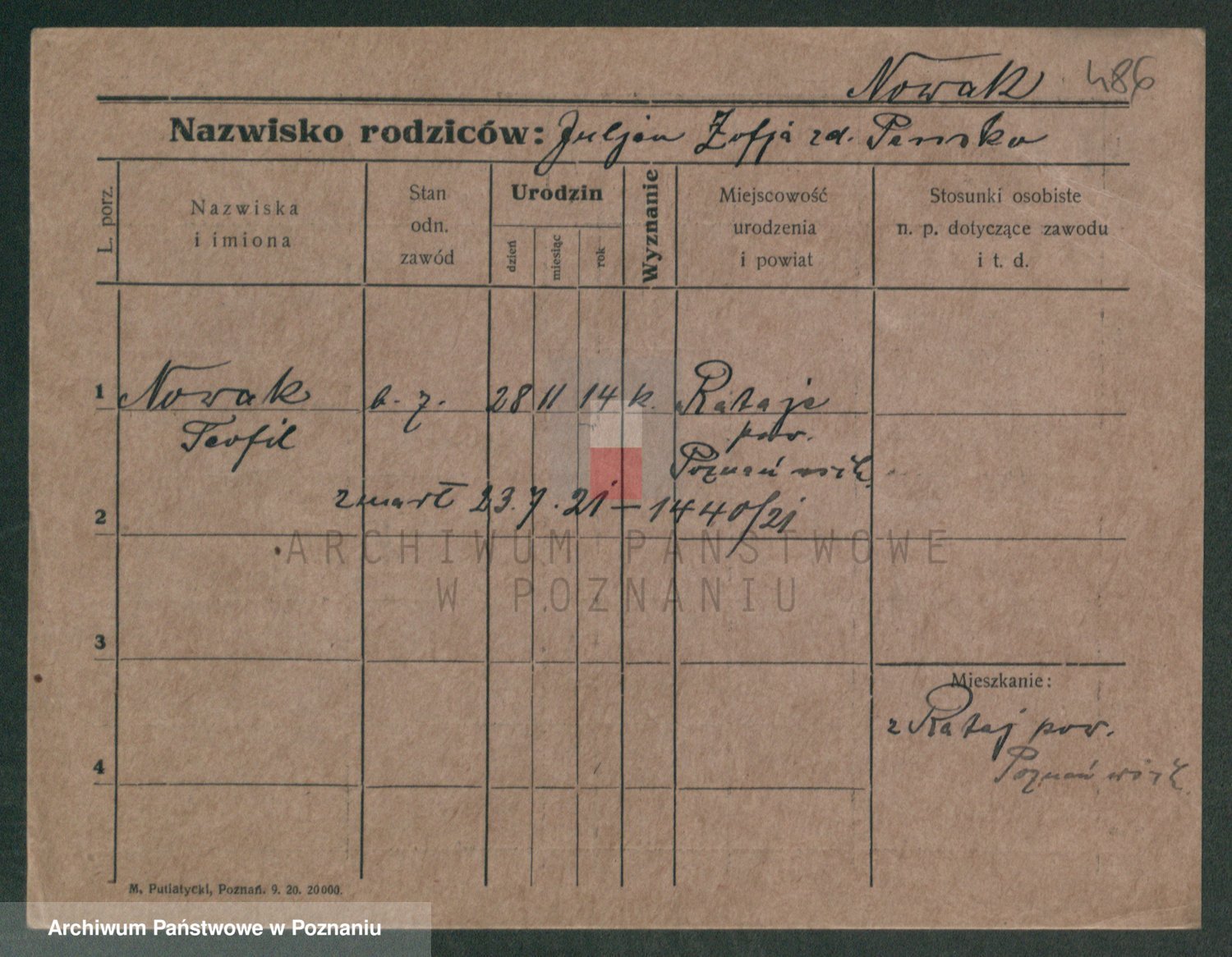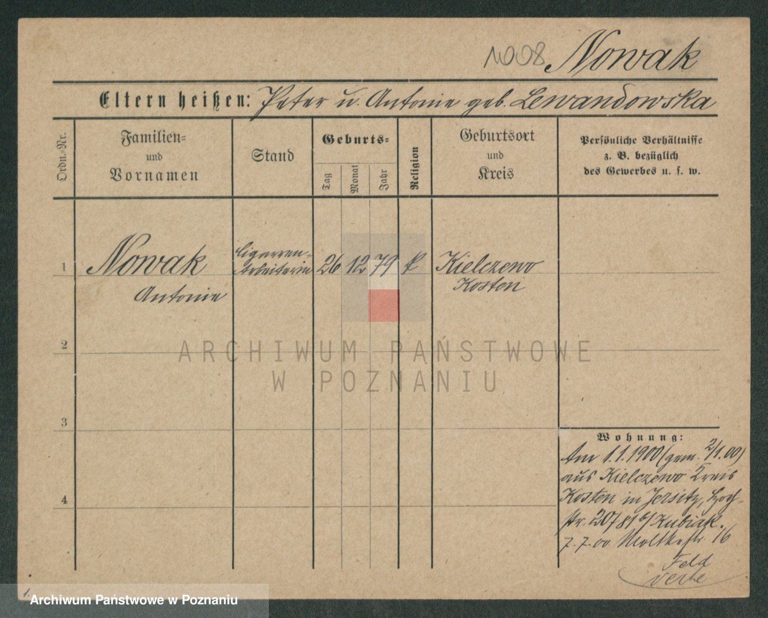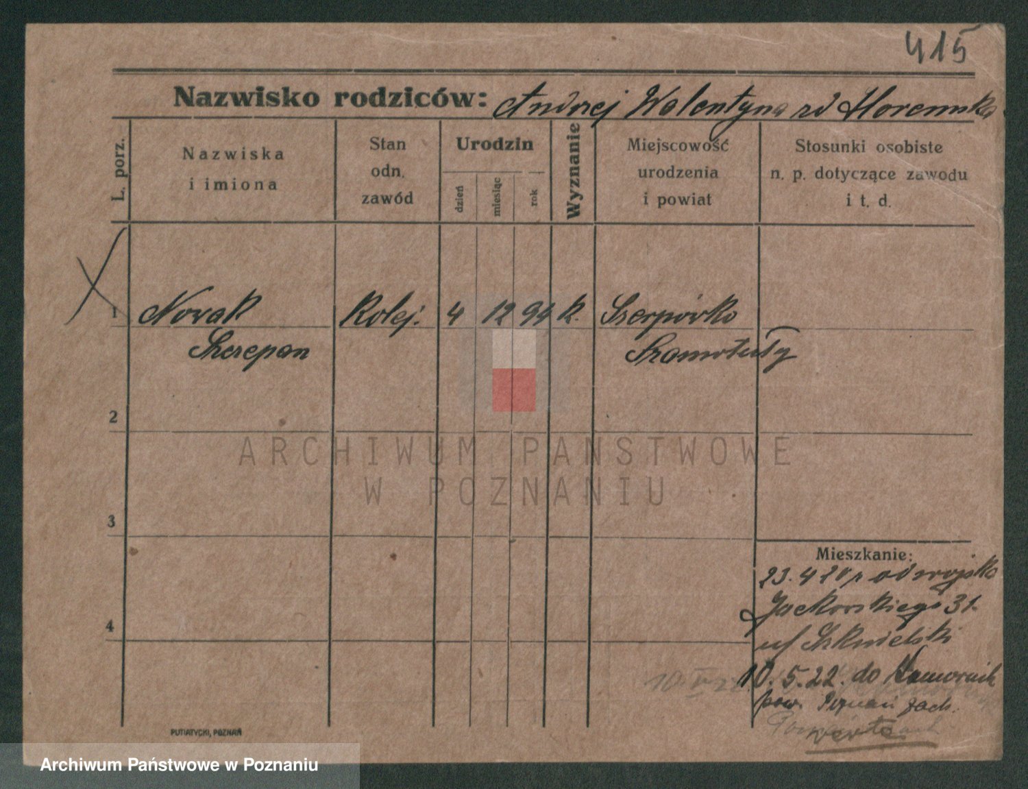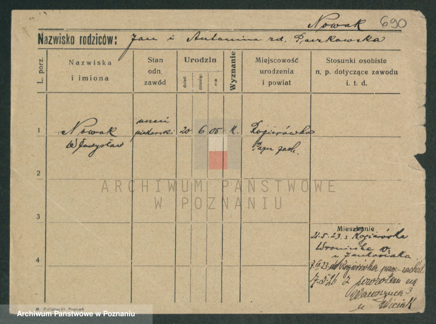 Podgląd karty osobowej dostępny jest po kliknięciu na nazwisko lub ikonkę karty. Można dokonywać powiększenia (ikony na górze) lub przechodzić między kolejnymi skanami (strzałki po bokach).