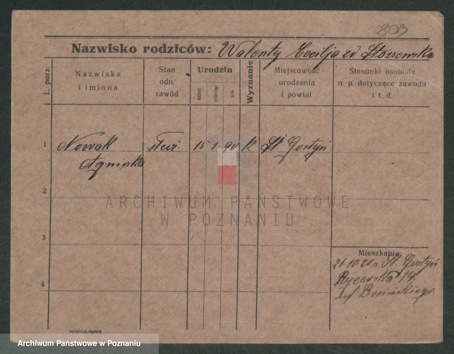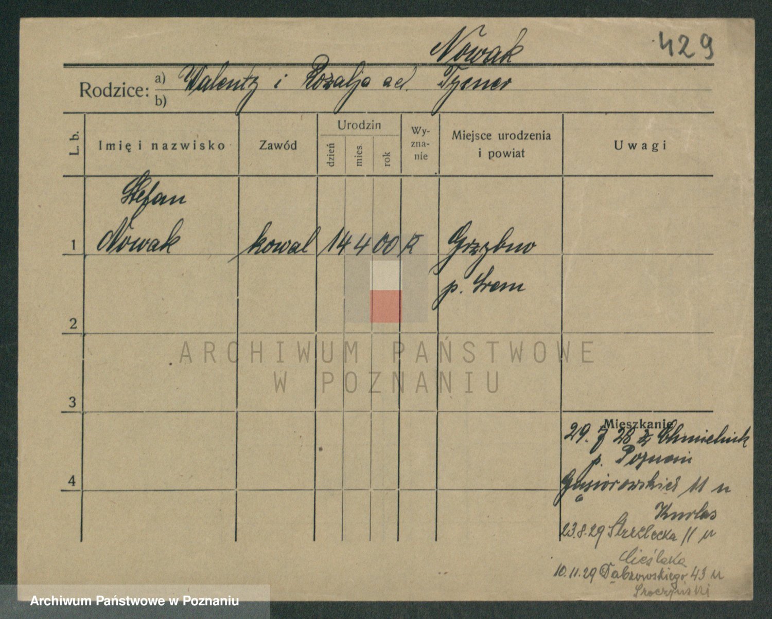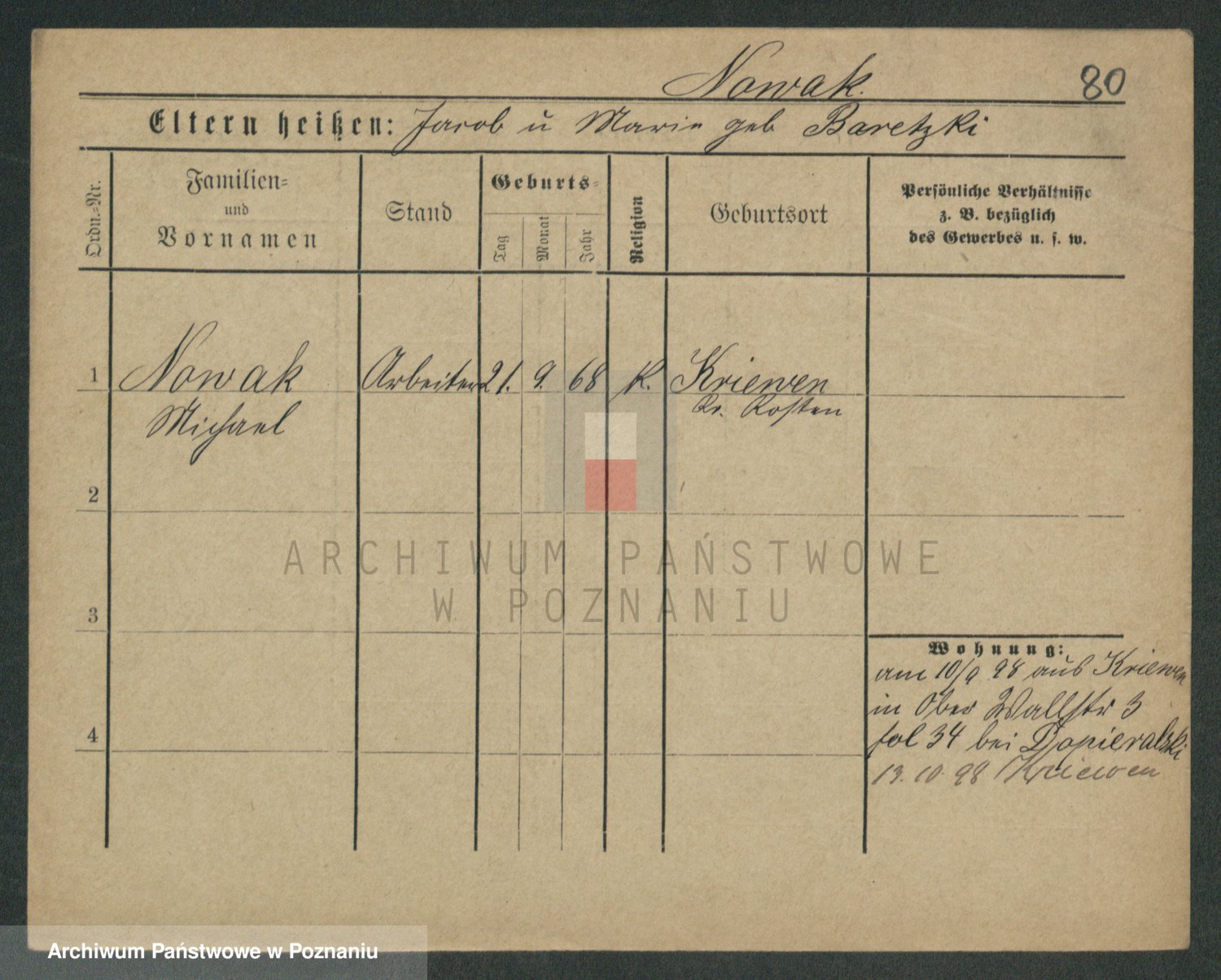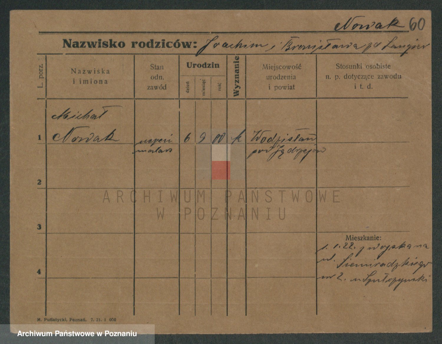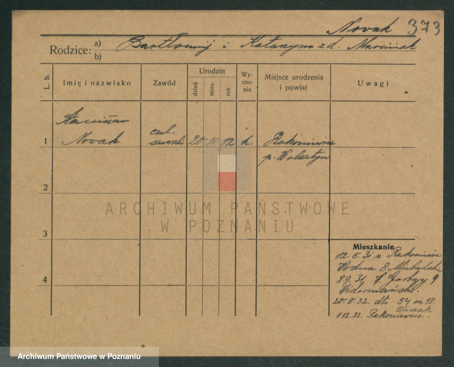 Podgląd karty osobowej dostępny jest po kliknięciu na nazwisko lub ikonkę karty. Można dokonywać powiększenia (ikony na górze) lub przechodzić między kolejnymi skanami (strzałki po bokach).