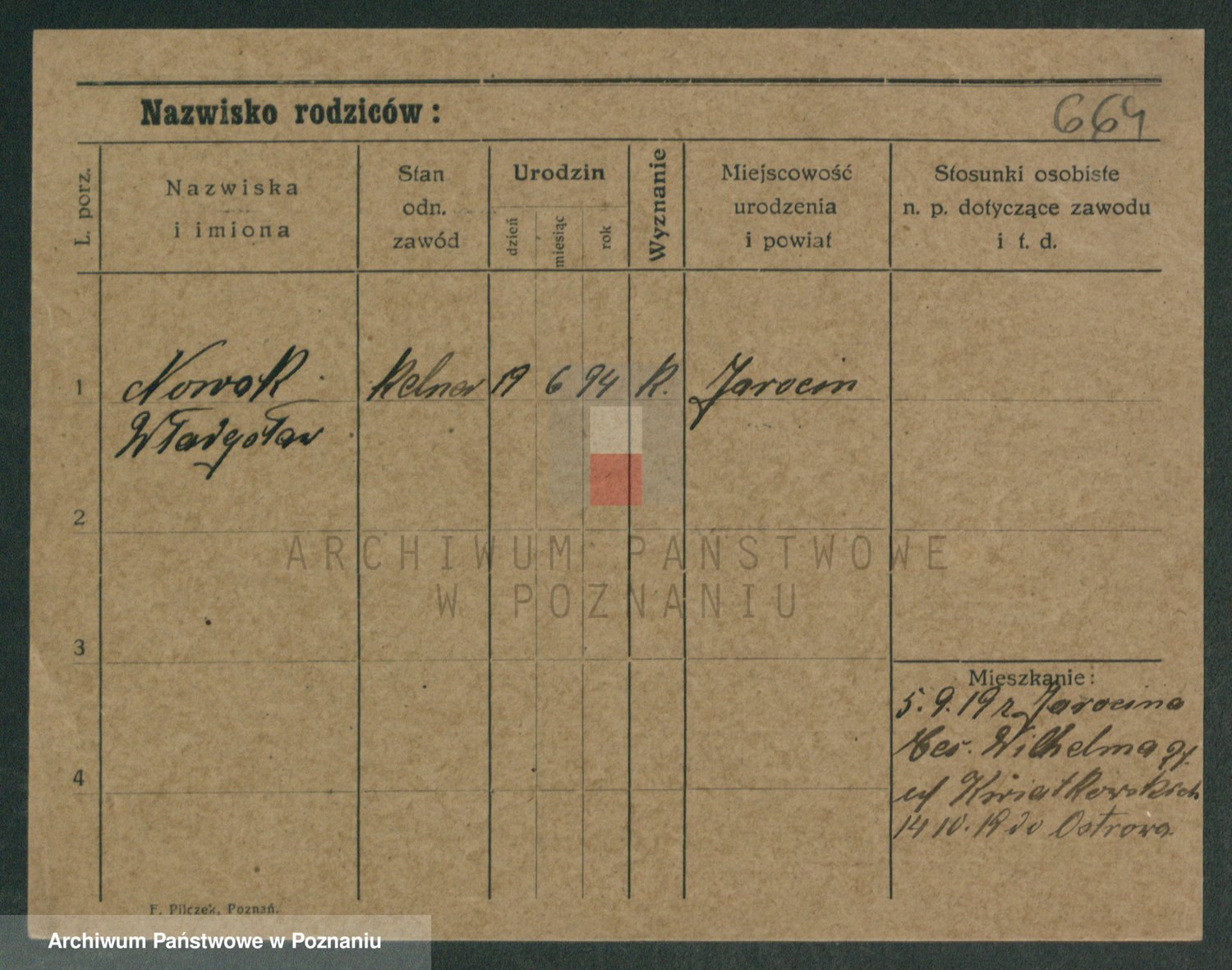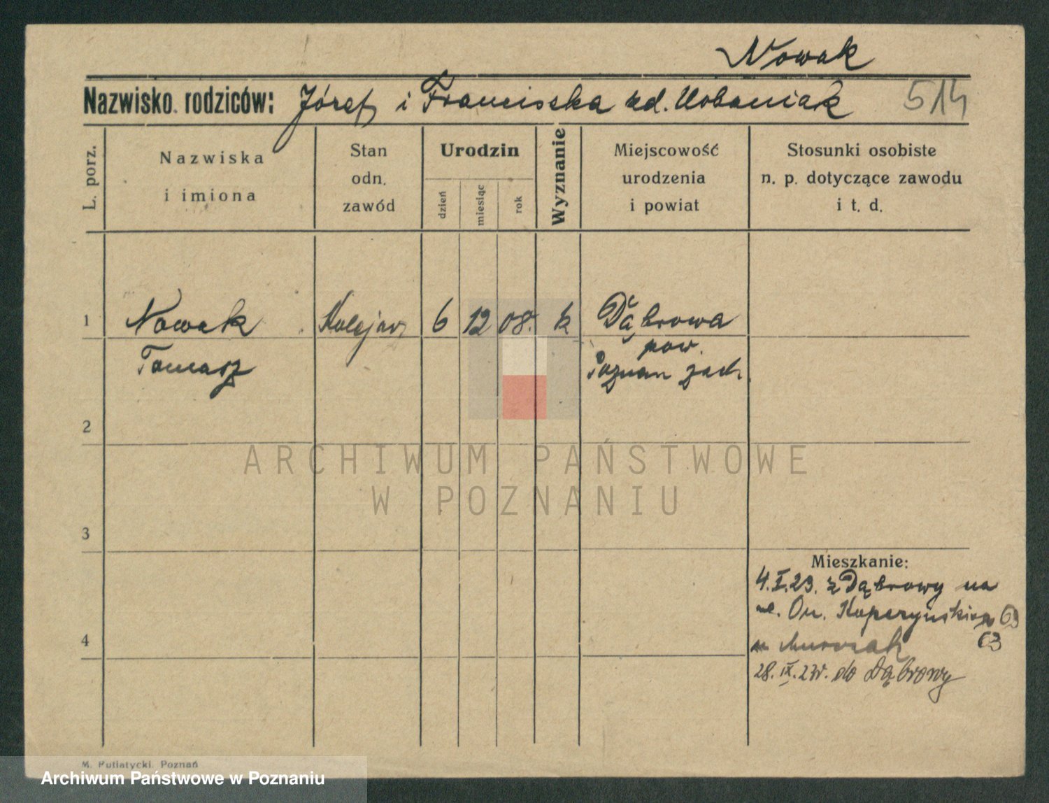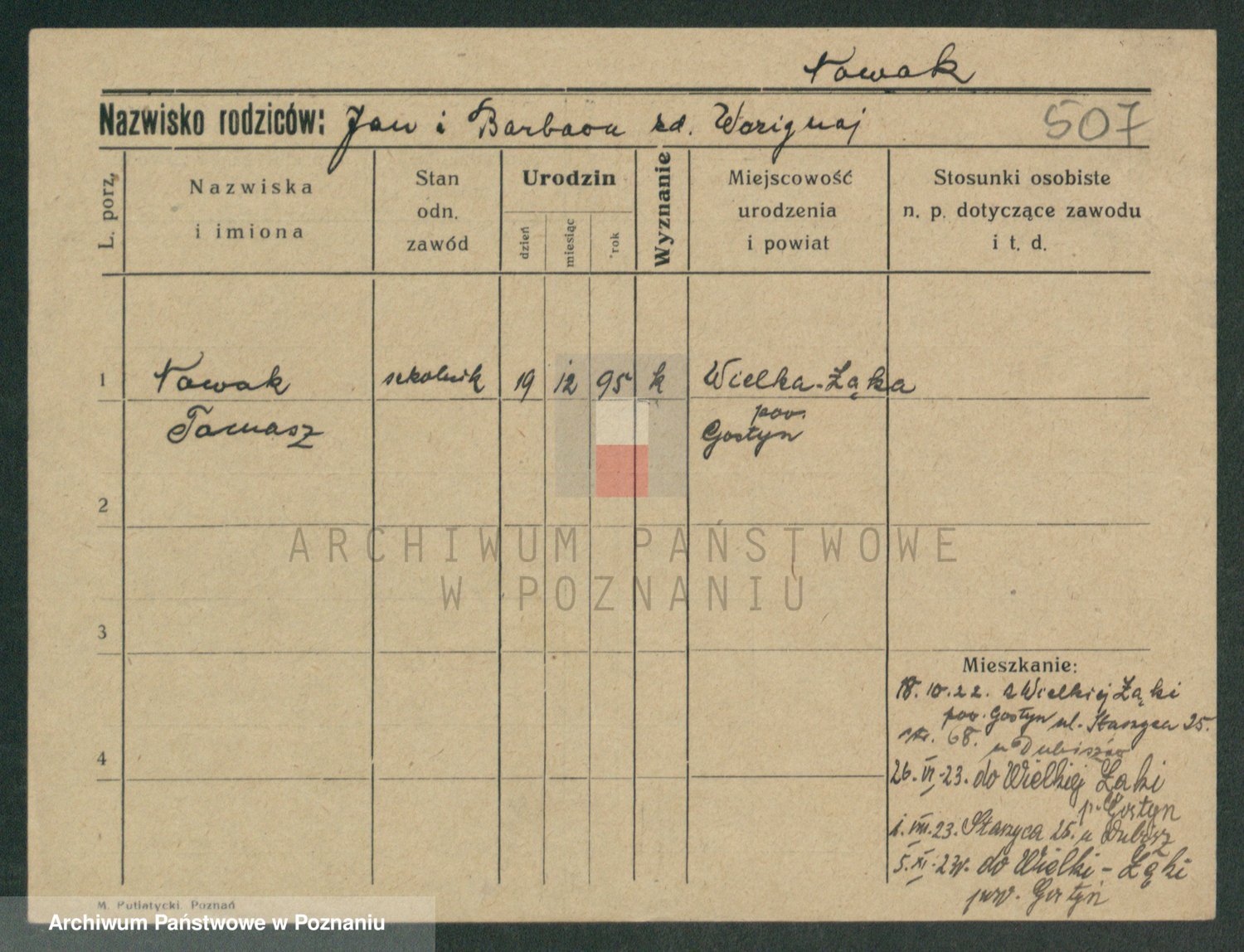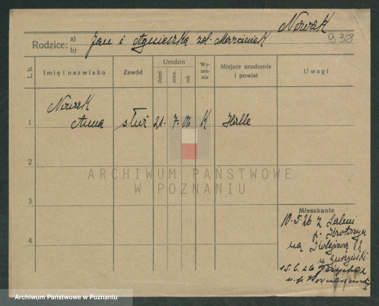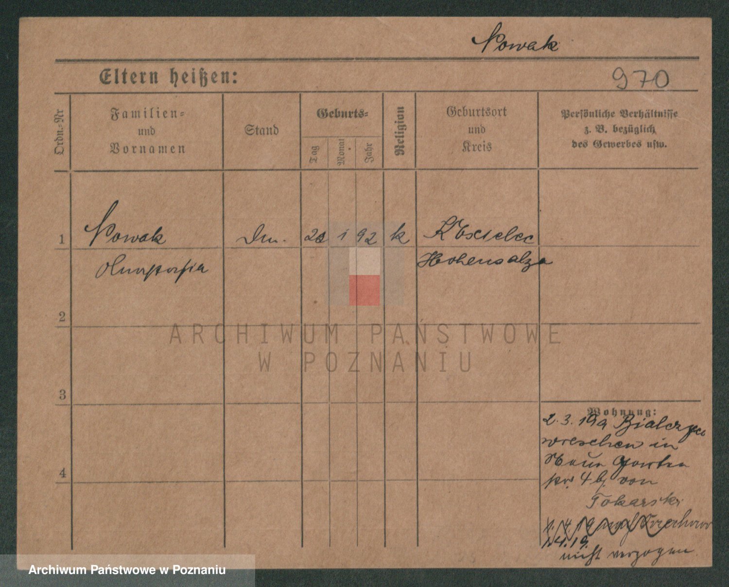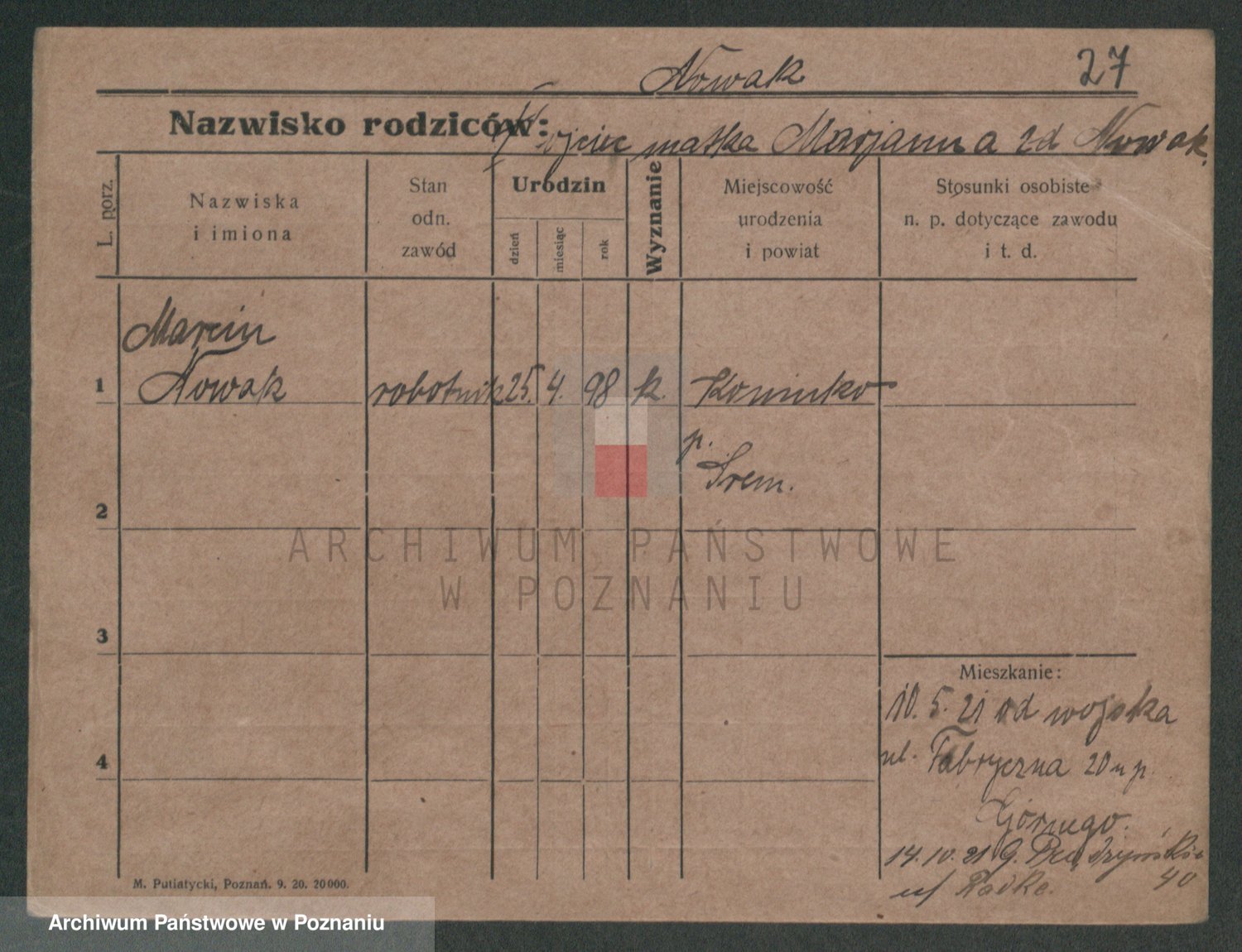 Podgląd karty osobowej dostępny jest po kliknięciu na nazwisko lub ikonkę karty. Można dokonywać powiększenia (ikony na górze) lub przechodzić między kolejnymi skanami (strzałki po bokach).