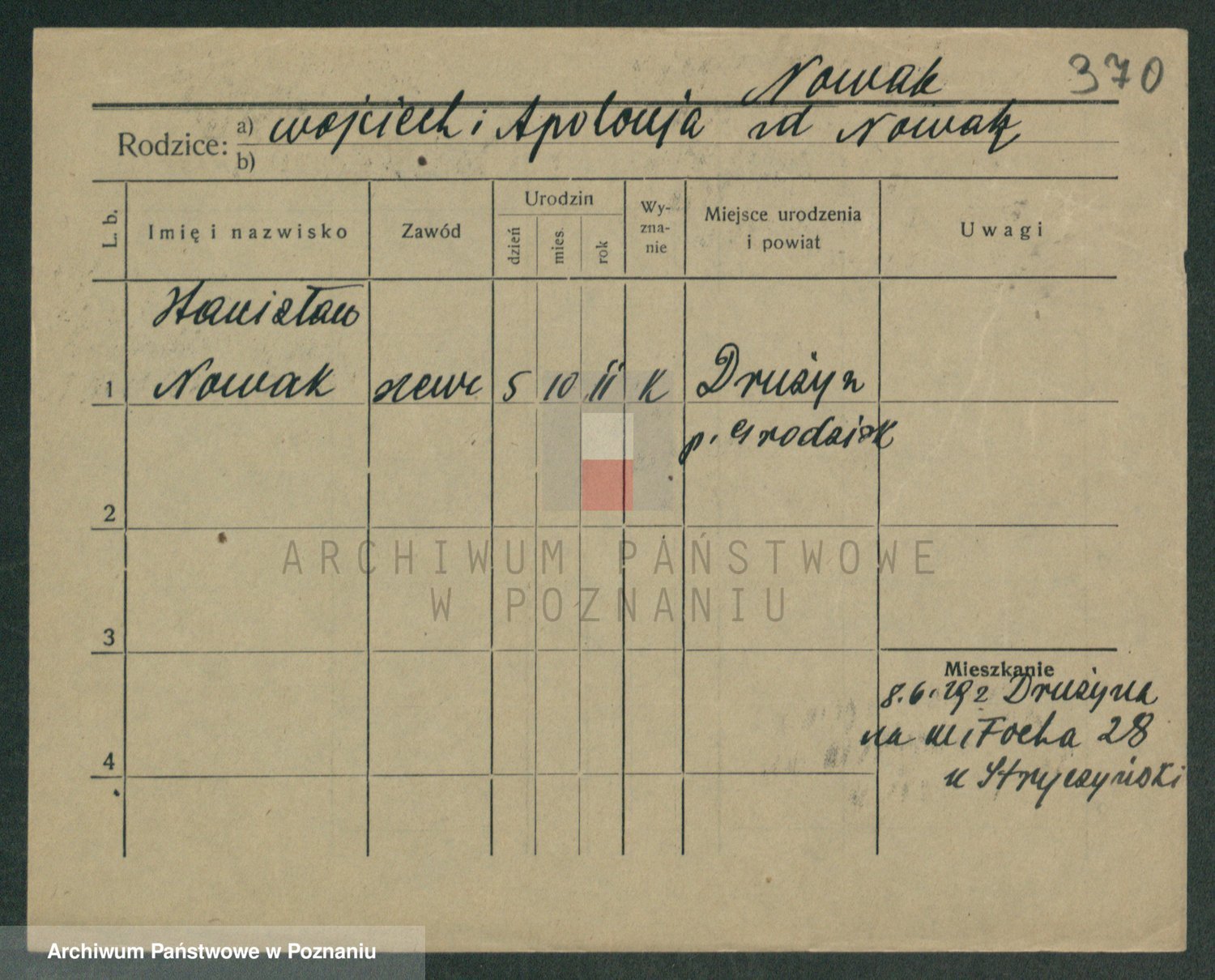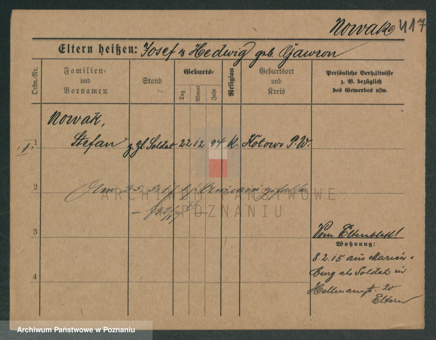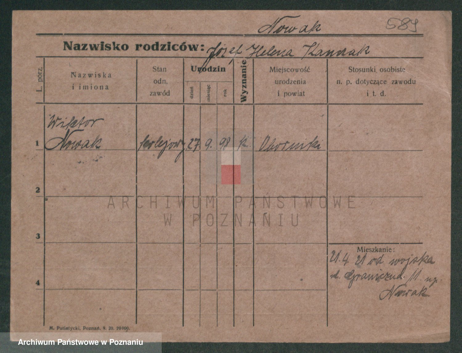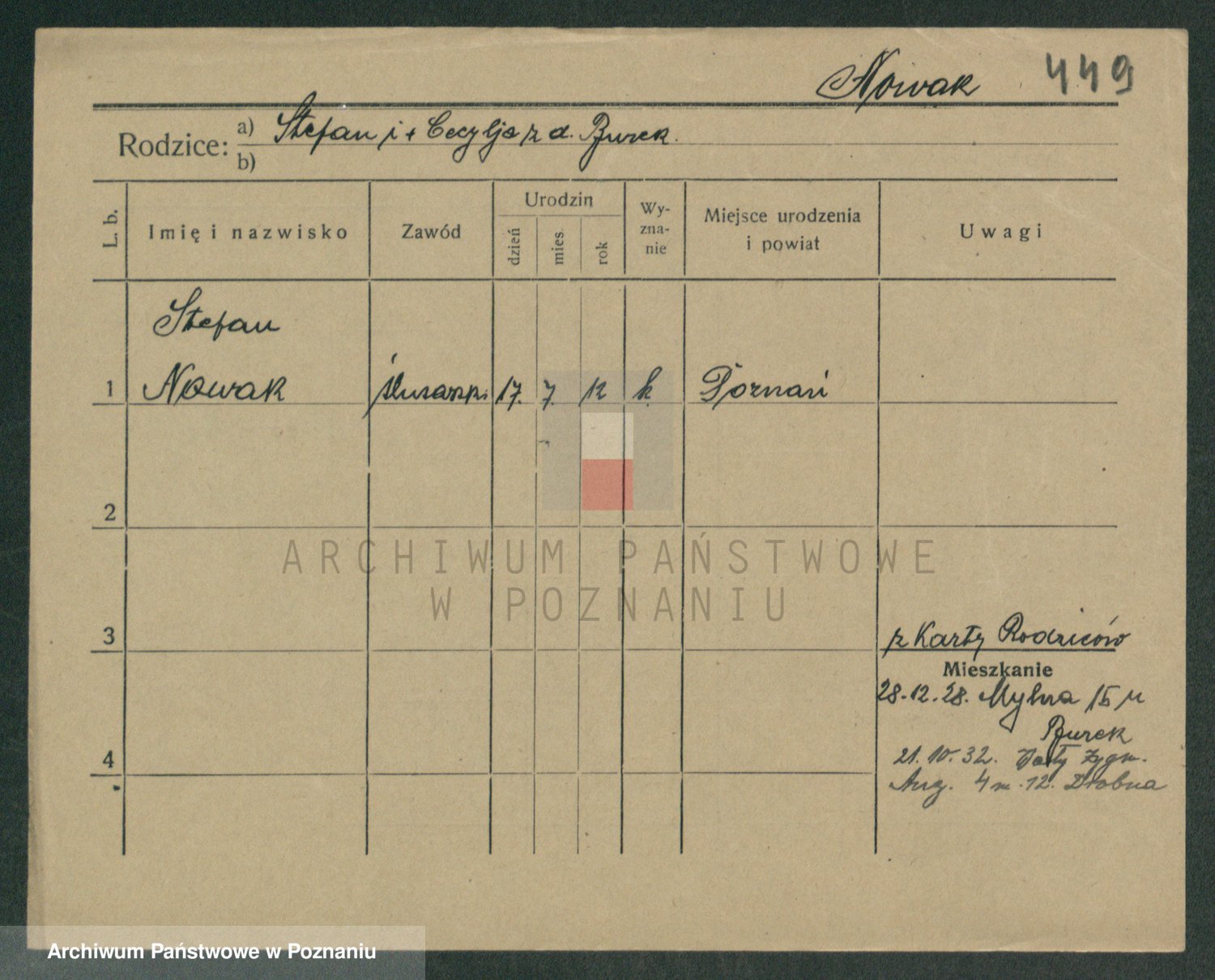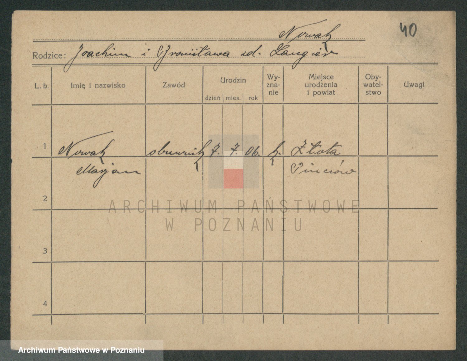 Podgląd karty osobowej dostępny jest po kliknięciu na nazwisko lub ikonkę karty. Można dokonywać powiększenia (ikony na górze) lub przechodzić między kolejnymi skanami (strzałki po bokach).