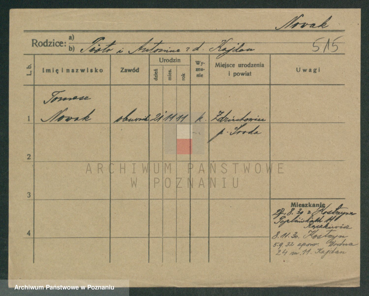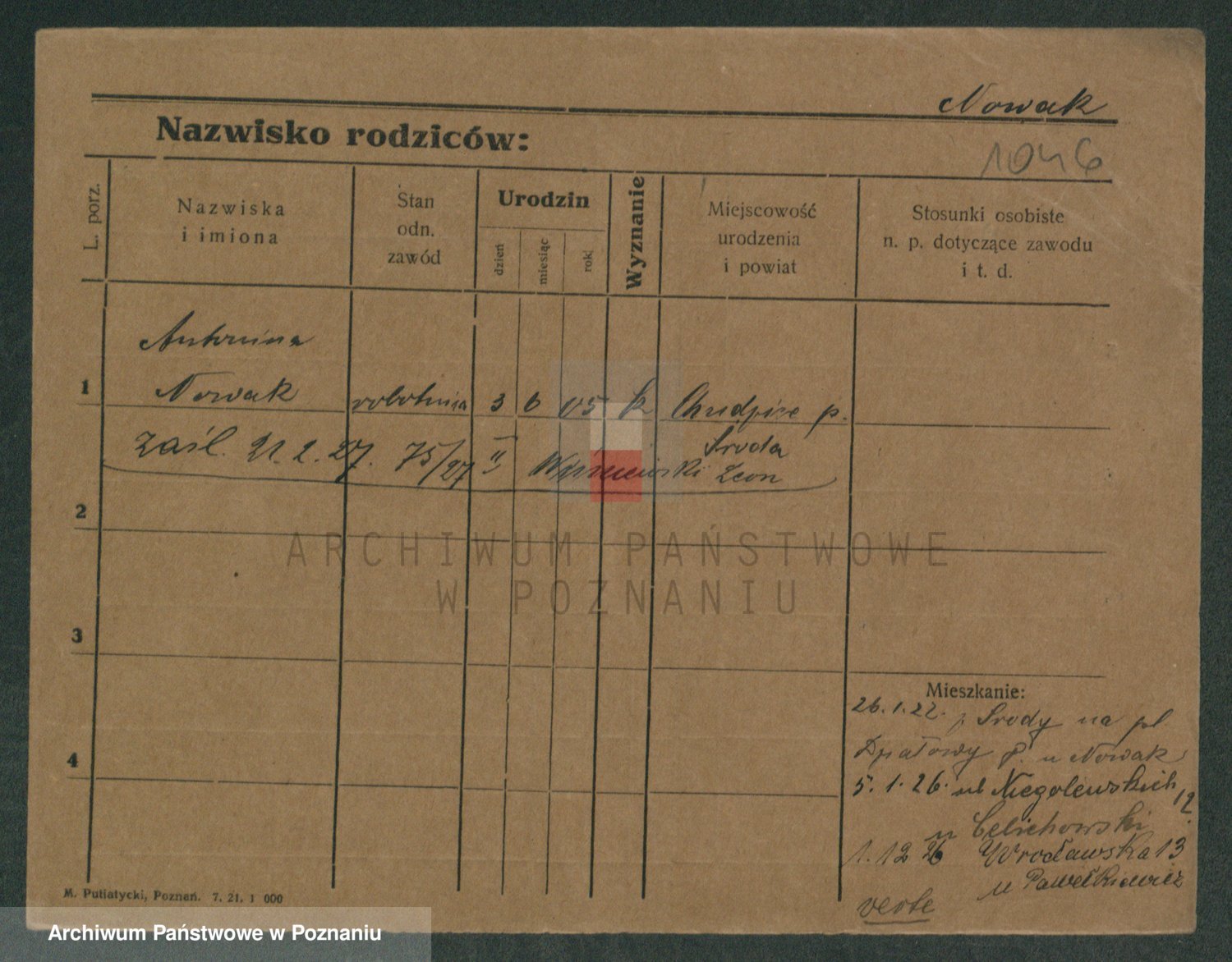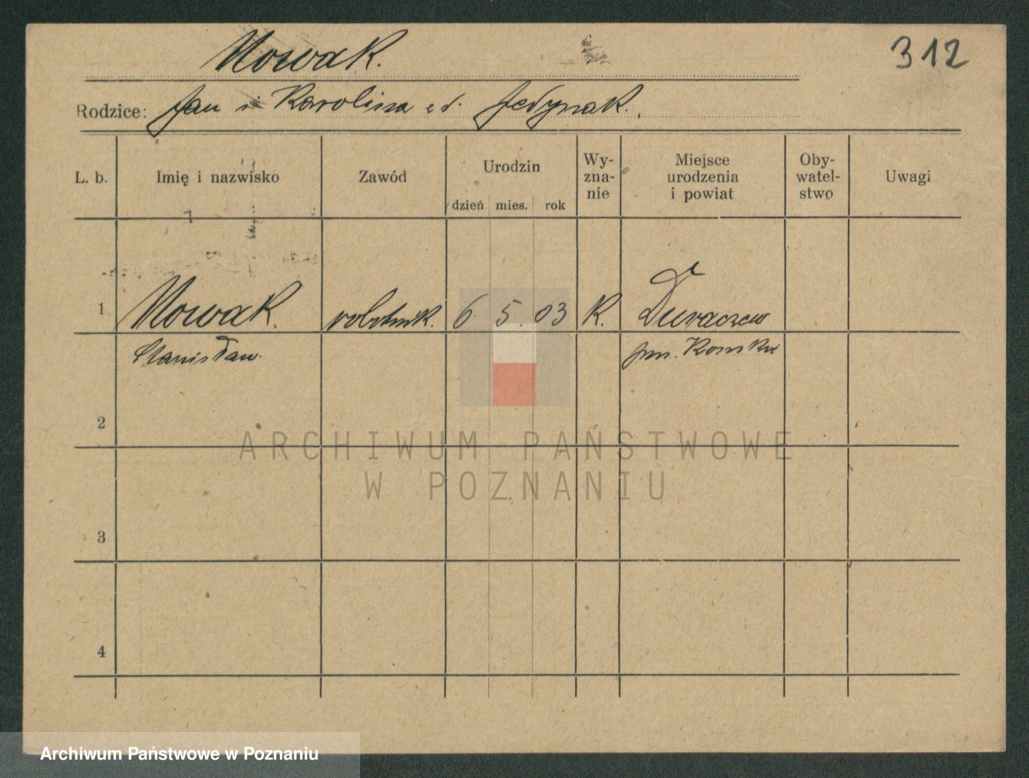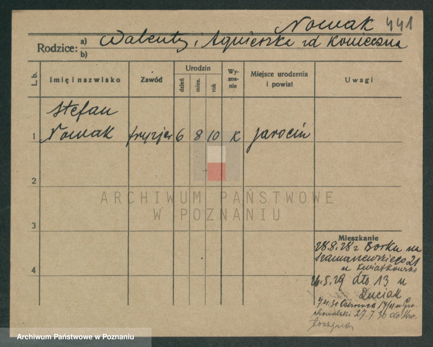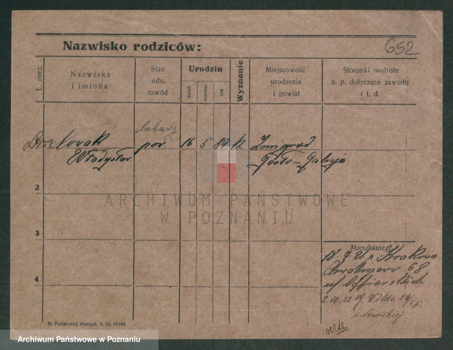 Podgląd karty osobowej dostępny jest po kliknięciu na nazwisko lub ikonkę karty. Można dokonywać powiększenia (ikony na górze) lub przechodzić między kolejnymi skanami (strzałki po bokach).