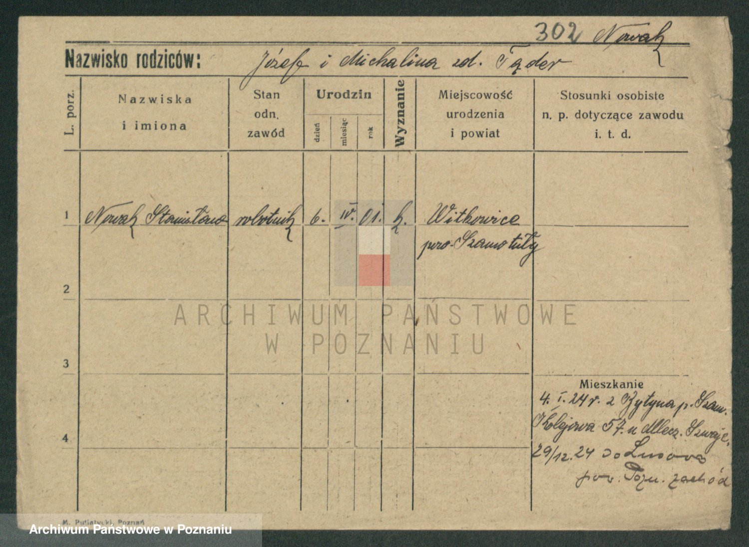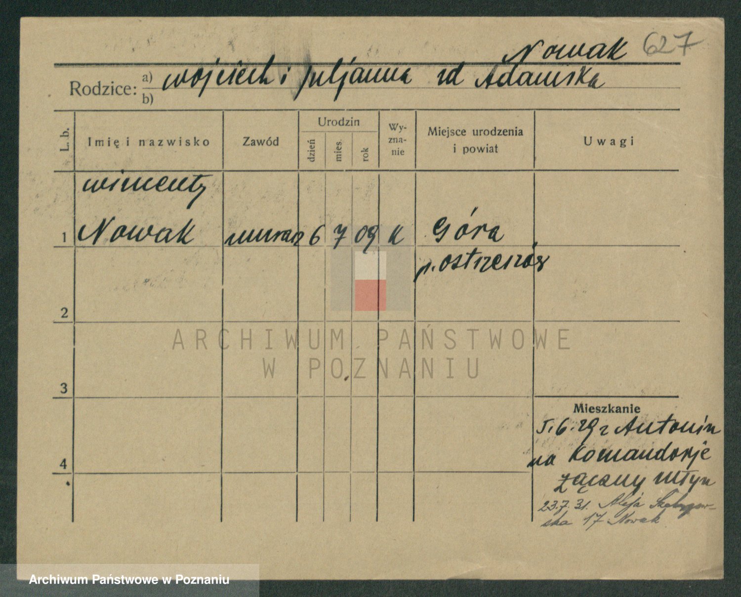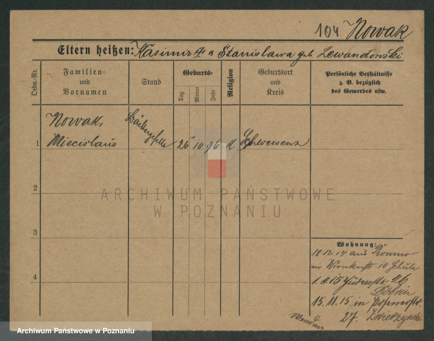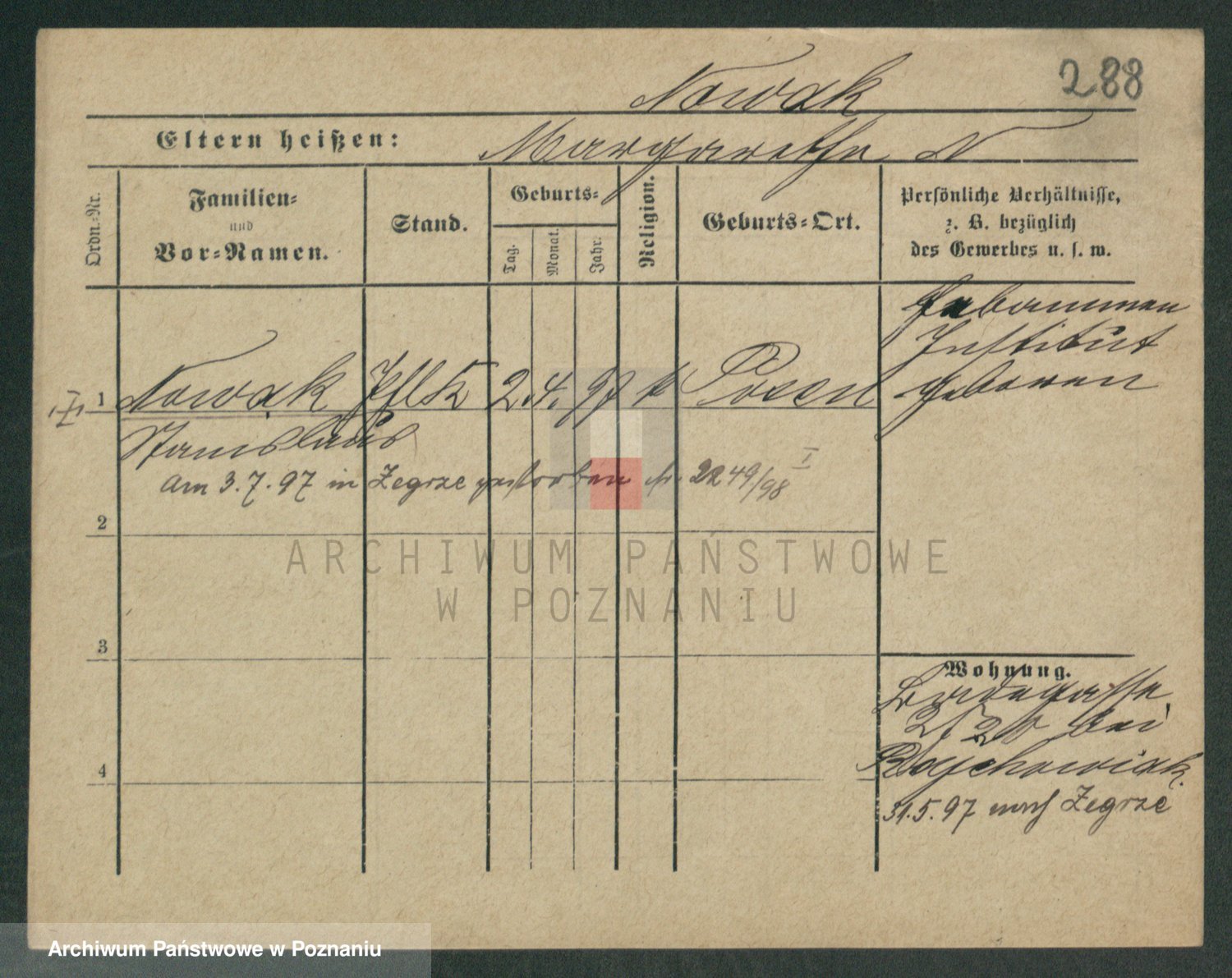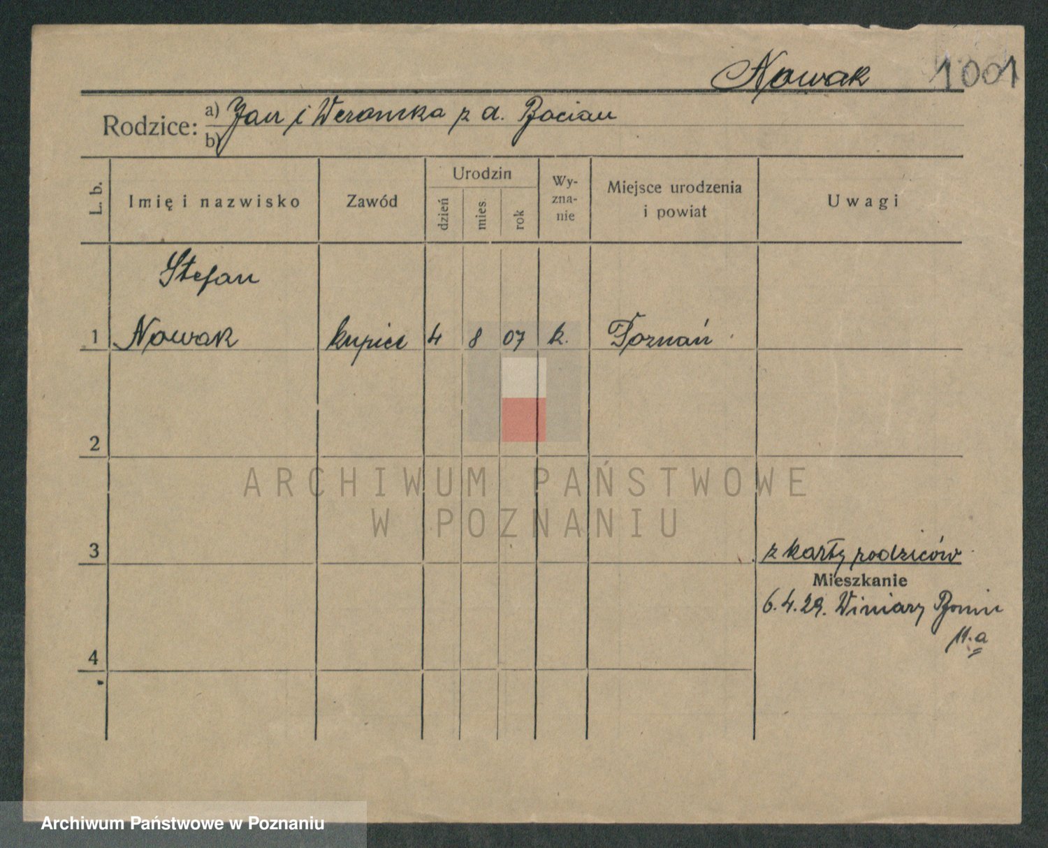 Podgląd karty osobowej dostępny jest po kliknięciu na nazwisko lub ikonkę karty. Można dokonywać powiększenia (ikony na górze) lub przechodzić między kolejnymi skanami (strzałki po bokach).