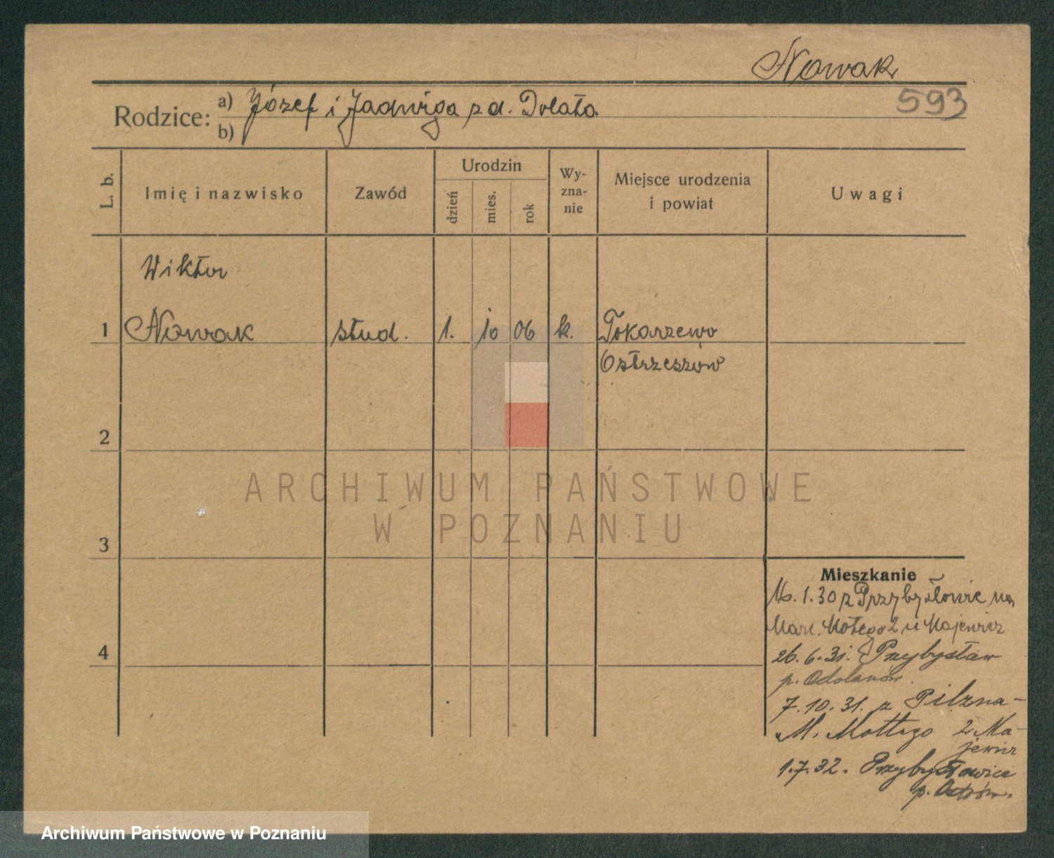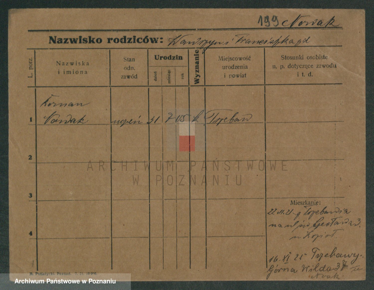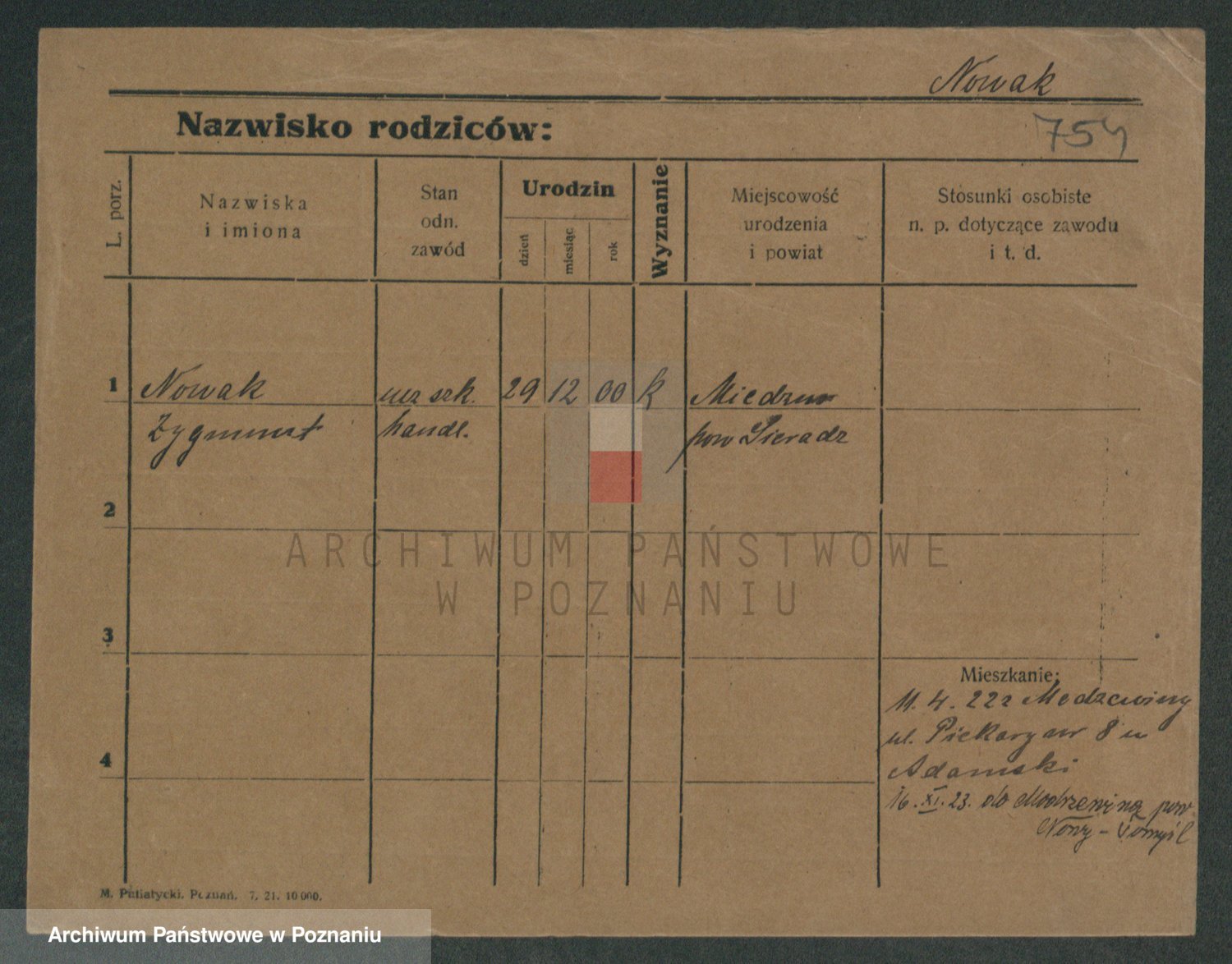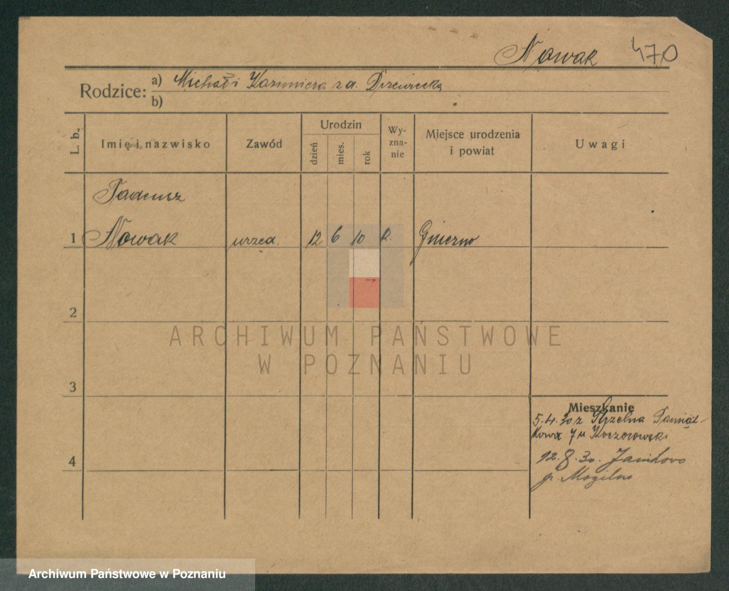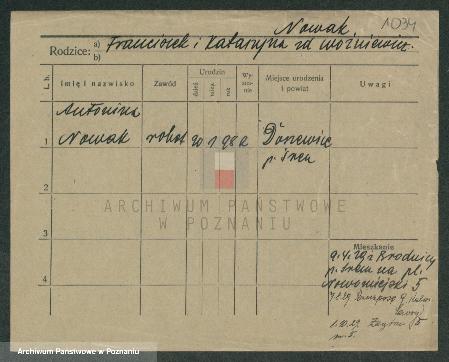 Podgląd karty osobowej dostępny jest po kliknięciu na nazwisko lub ikonkę karty. Można dokonywać powiększenia (ikony na górze) lub przechodzić między kolejnymi skanami (strzałki po bokach).