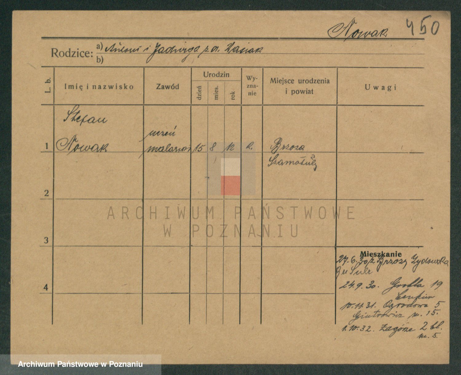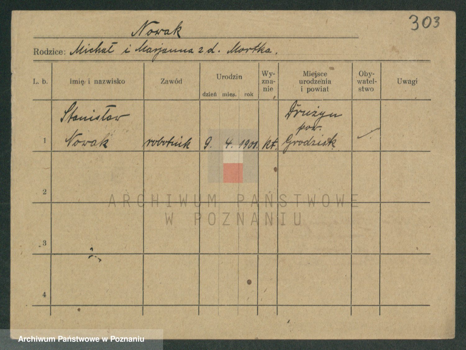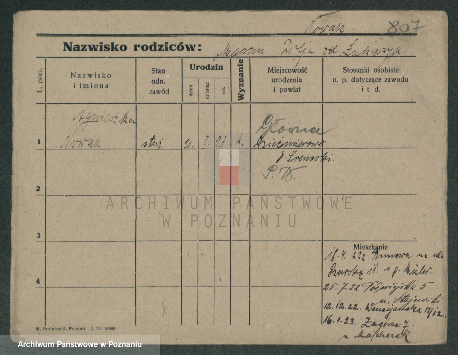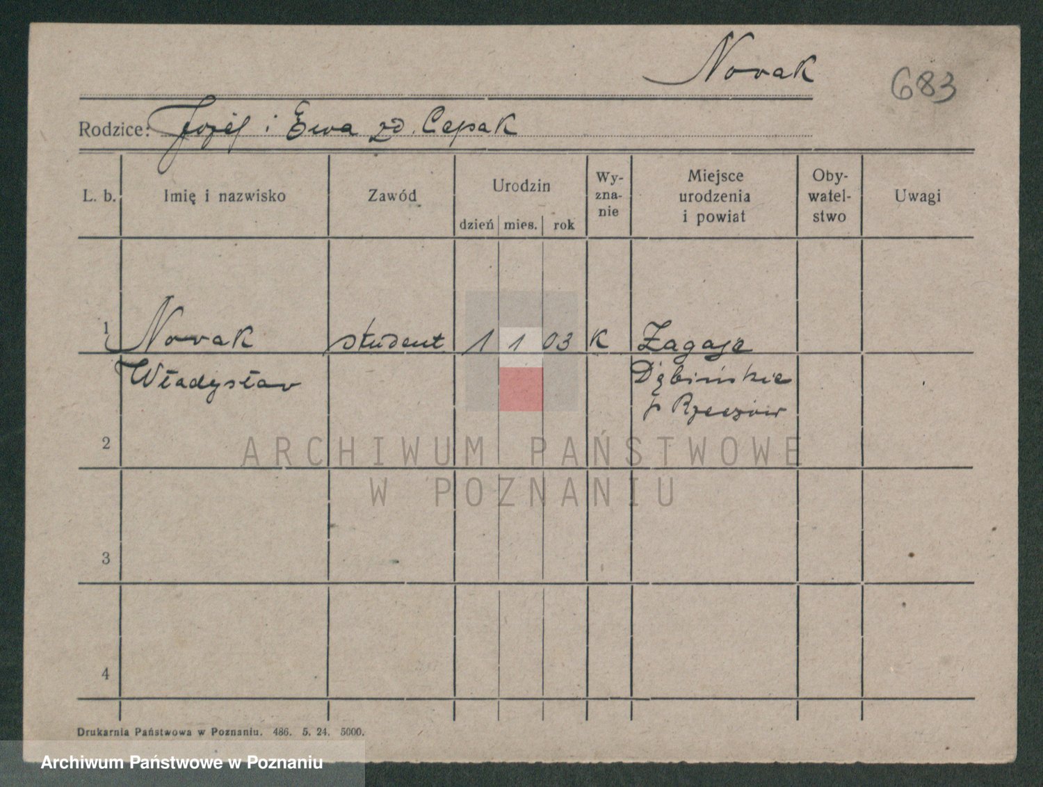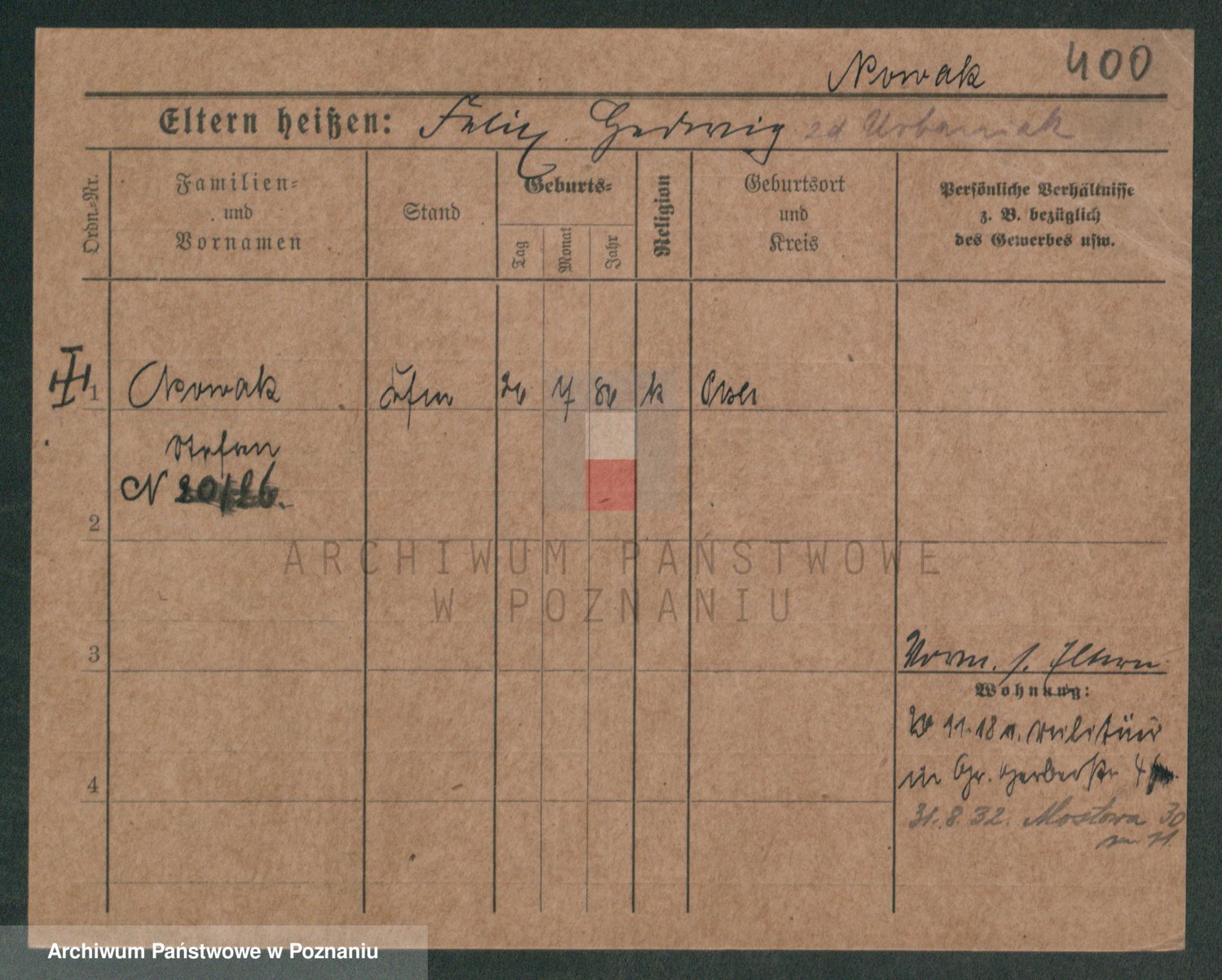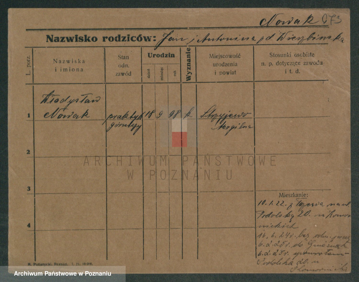 Podgląd karty osobowej dostępny jest po kliknięciu na nazwisko lub ikonkę karty. Można dokonywać powiększenia (ikony na górze) lub przechodzić między kolejnymi skanami (strzałki po bokach).