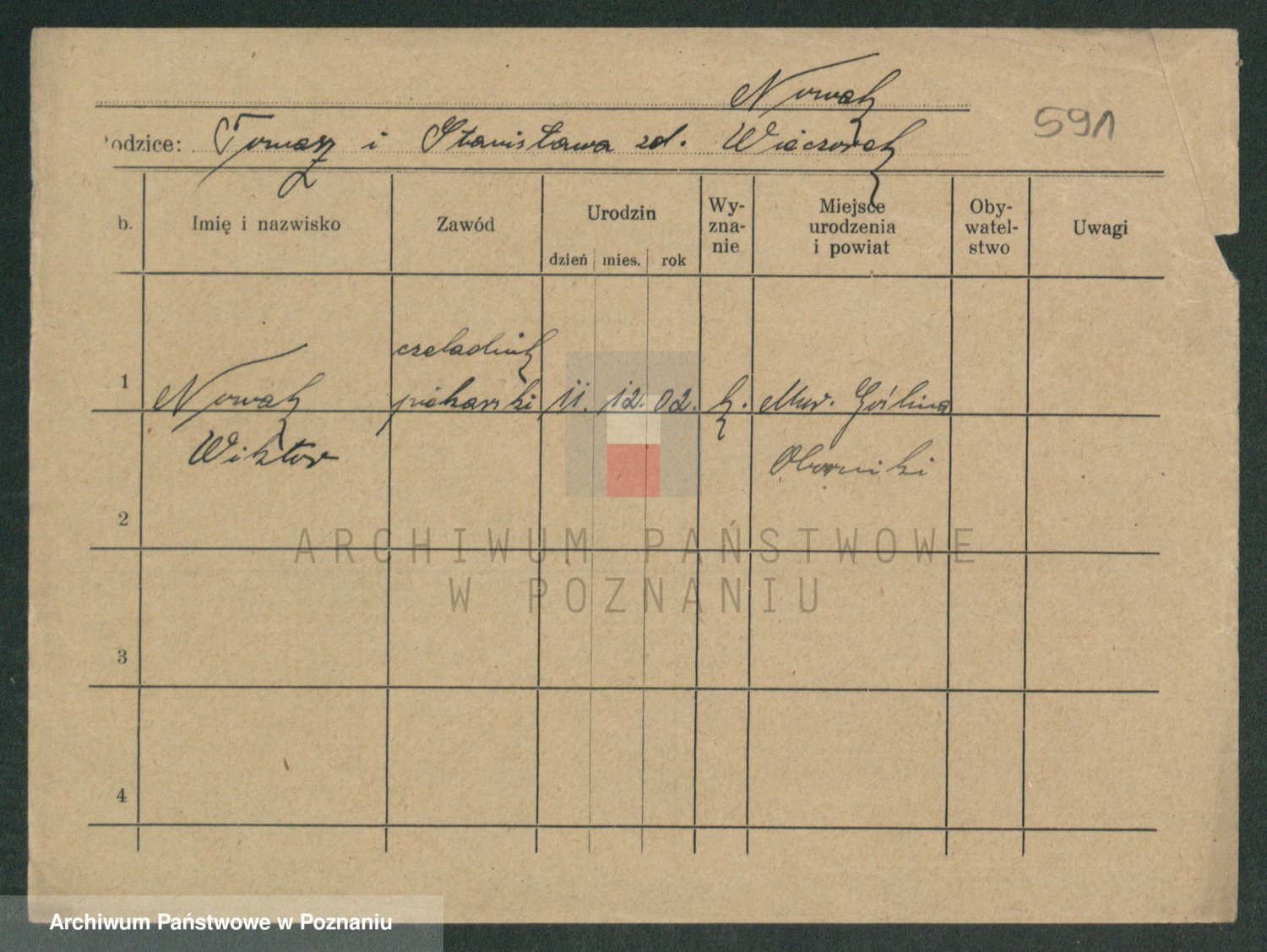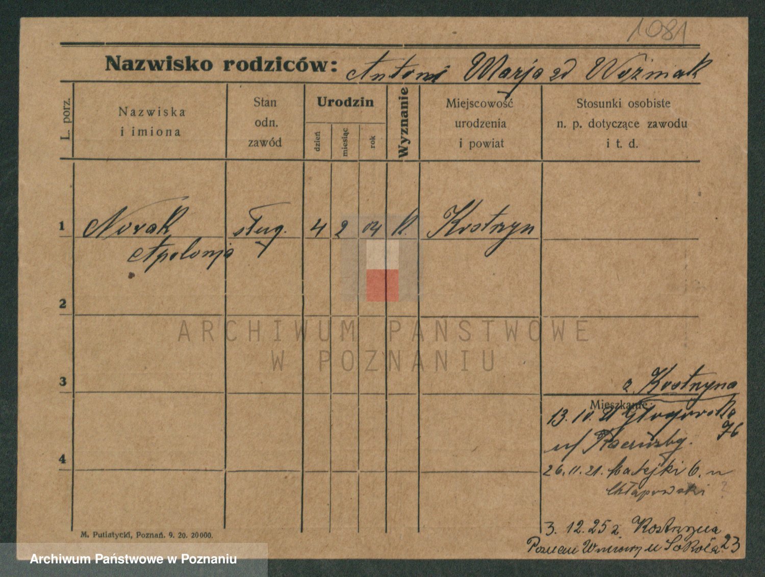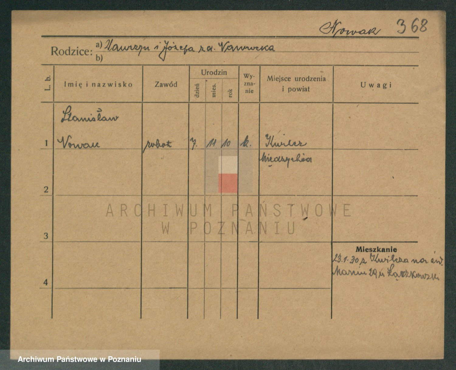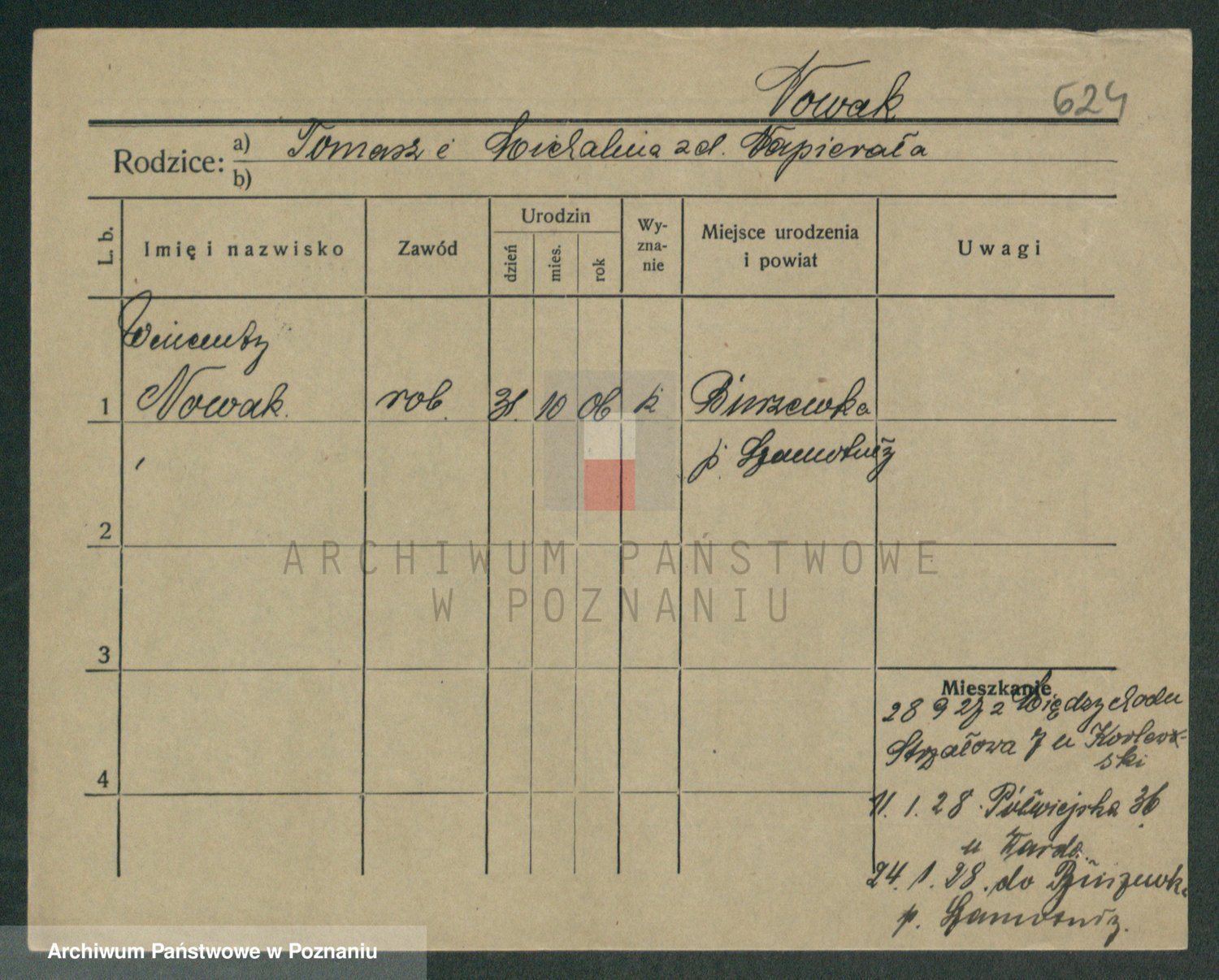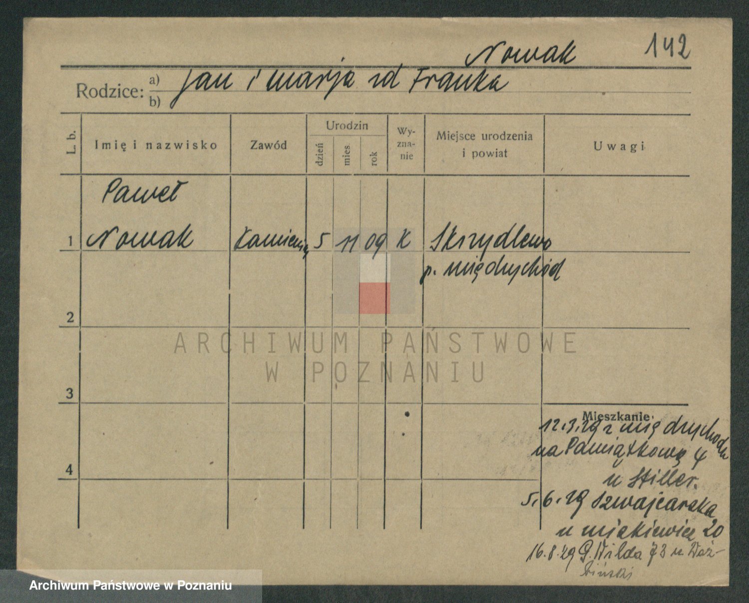 Podgląd karty osobowej dostępny jest po kliknięciu na nazwisko lub ikonkę karty. Można dokonywać powiększenia (ikony na górze) lub przechodzić między kolejnymi skanami (strzałki po bokach).