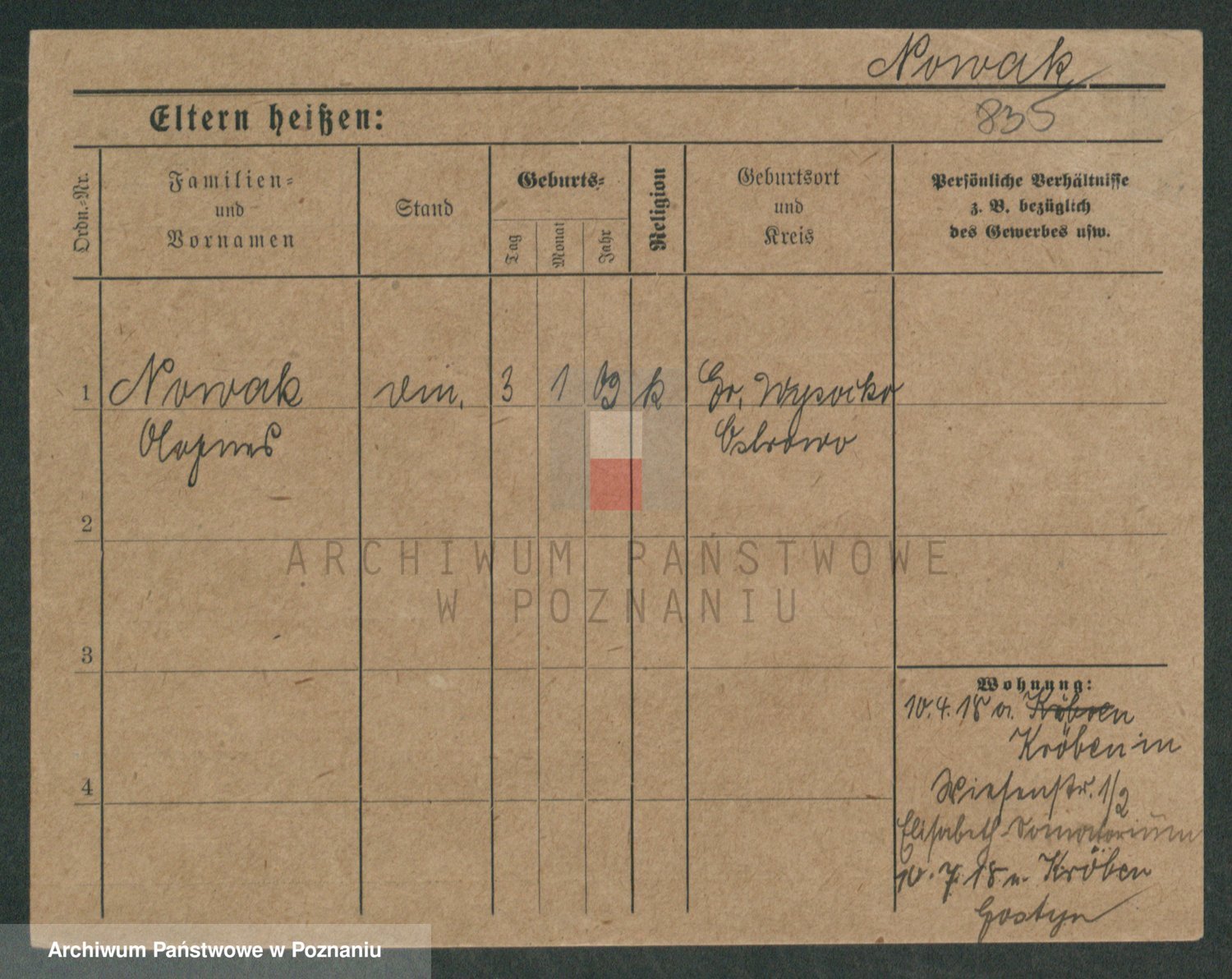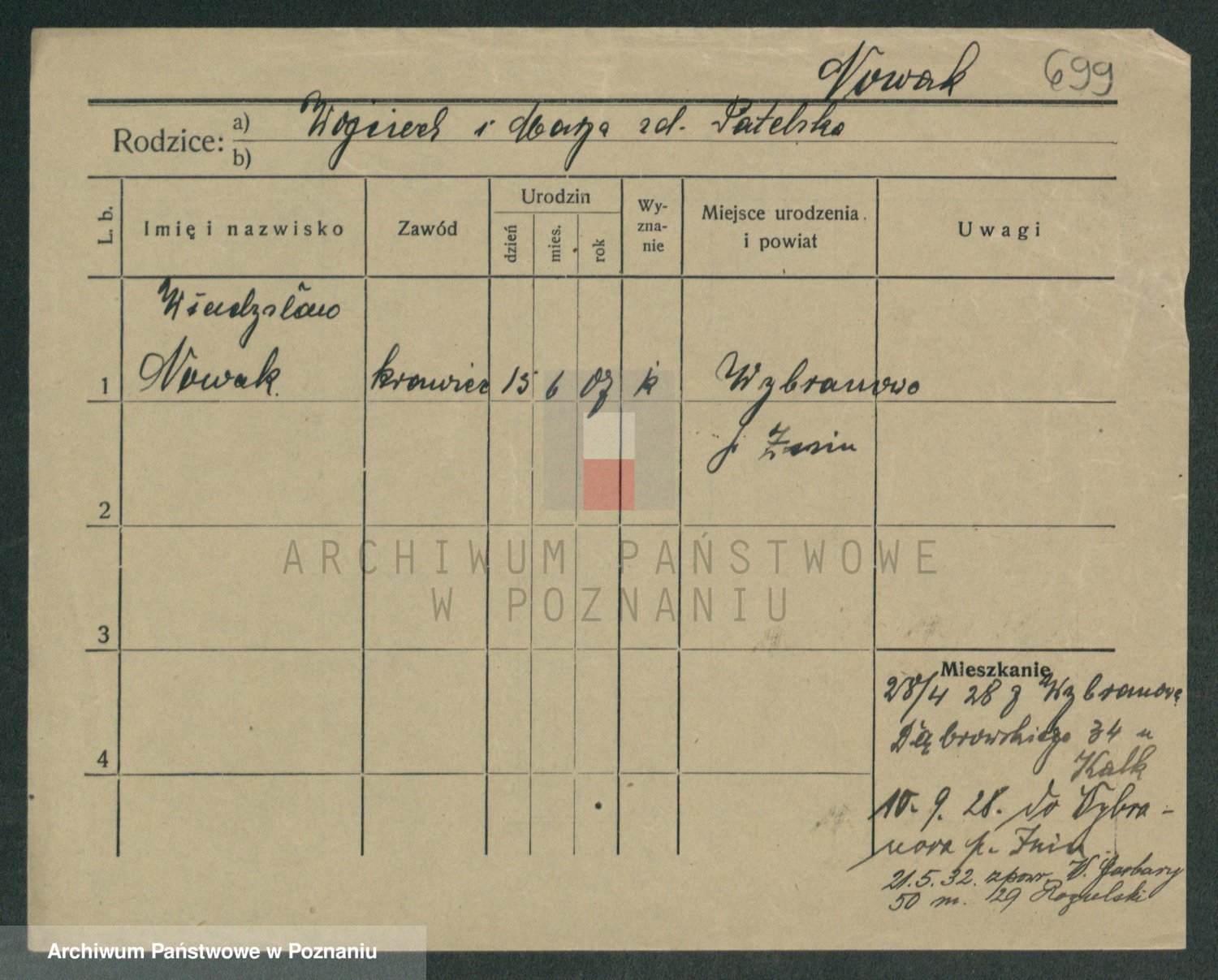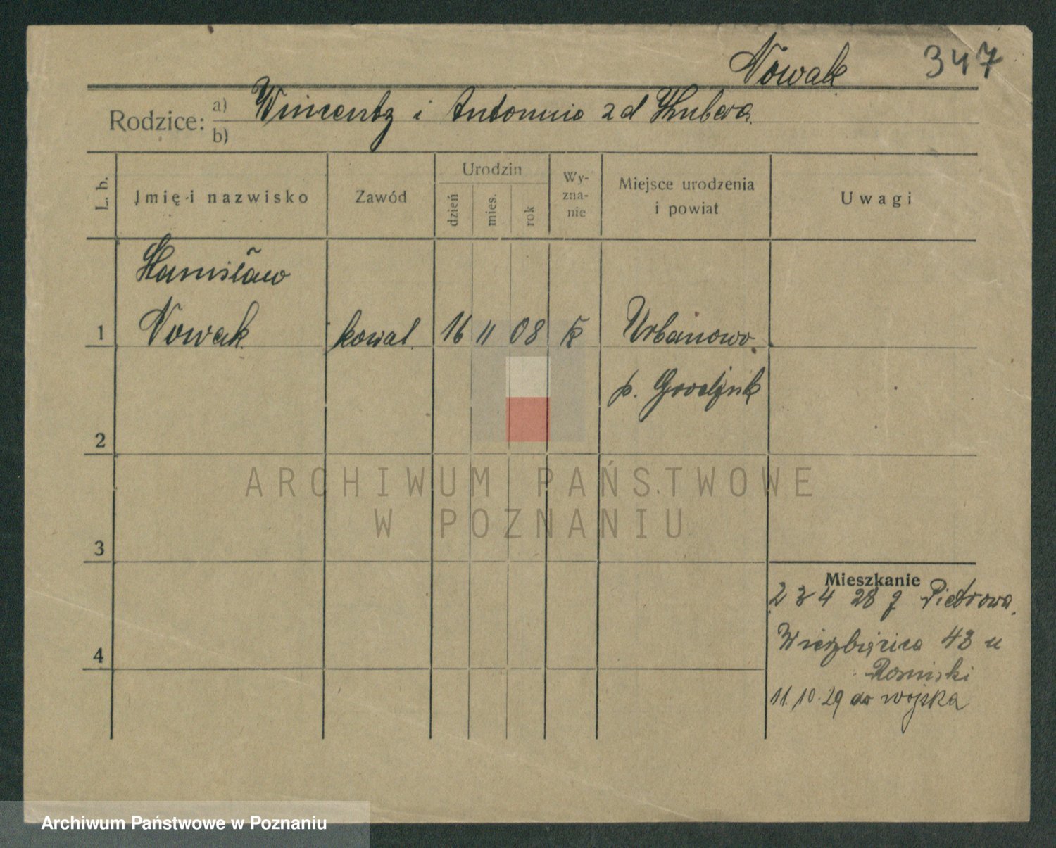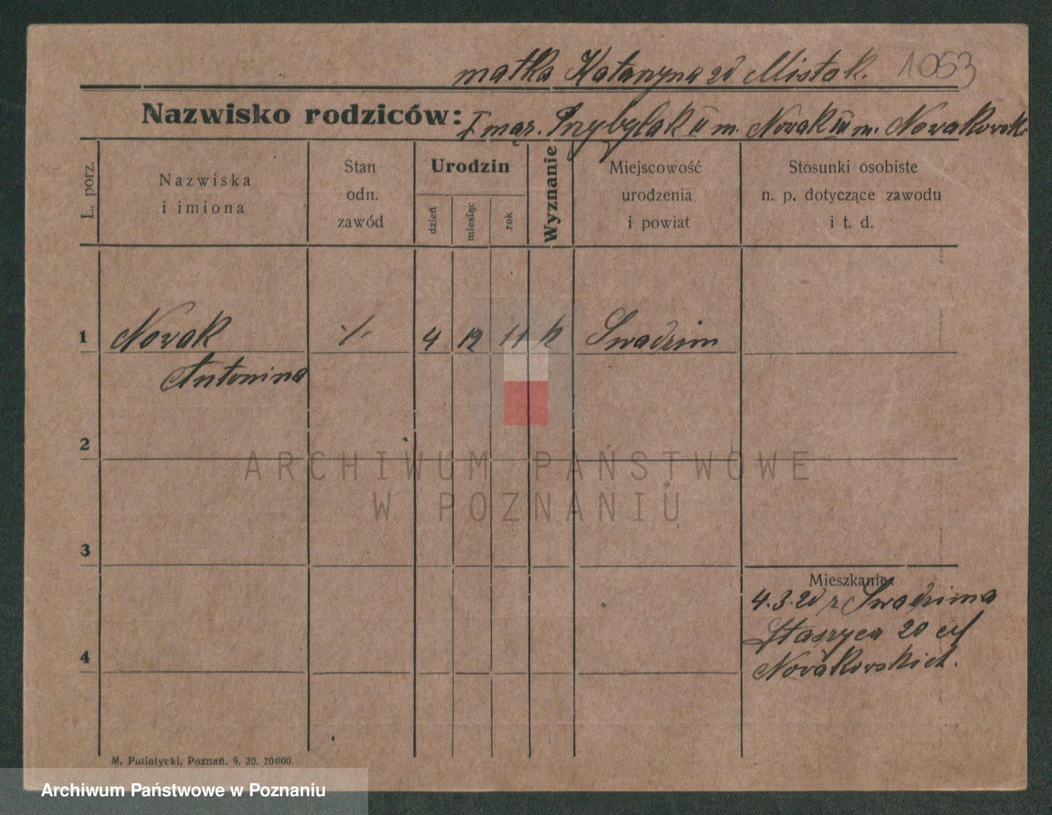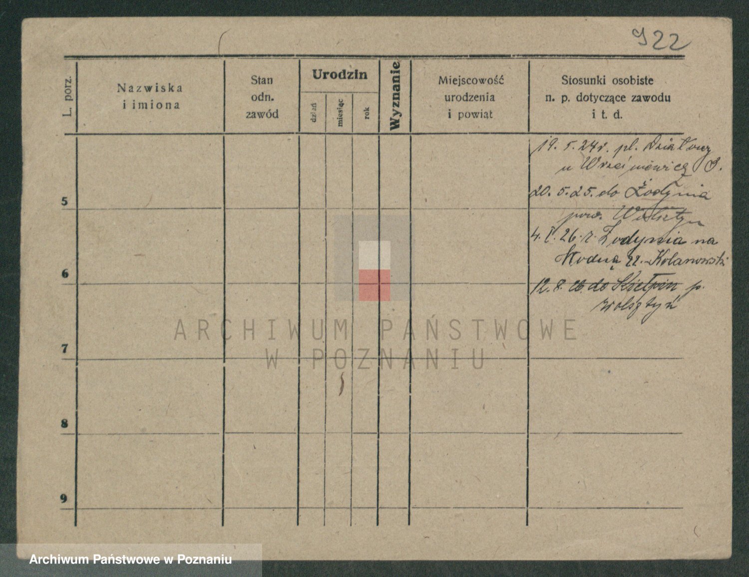Podgląd karty osobowej dostępny jest po kliknięciu na nazwisko lub ikonkę karty. Można dokonywać powiększenia (ikony na górze) lub przechodzić między kolejnymi skanami (strzałki po bokach).